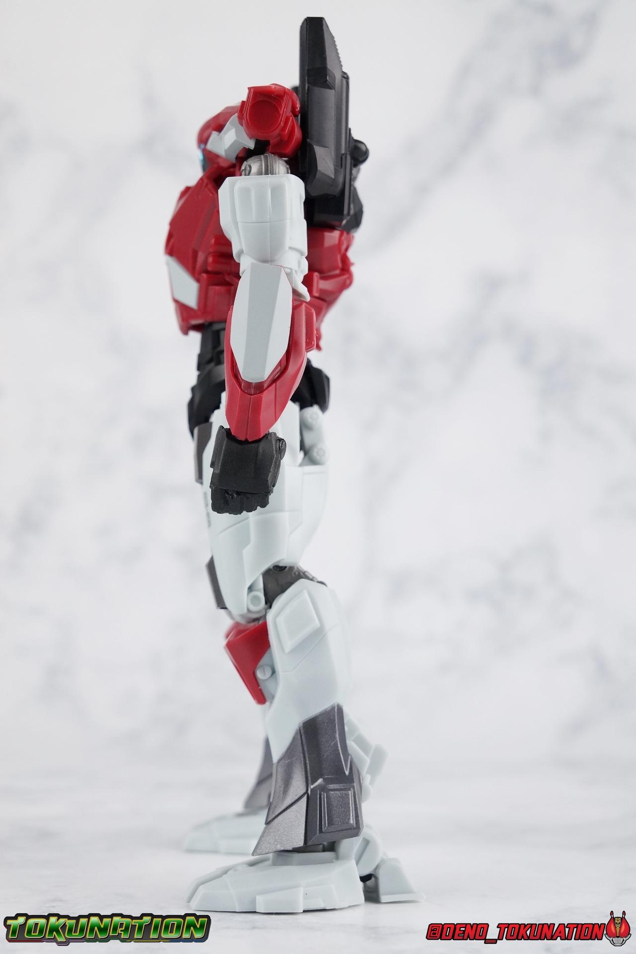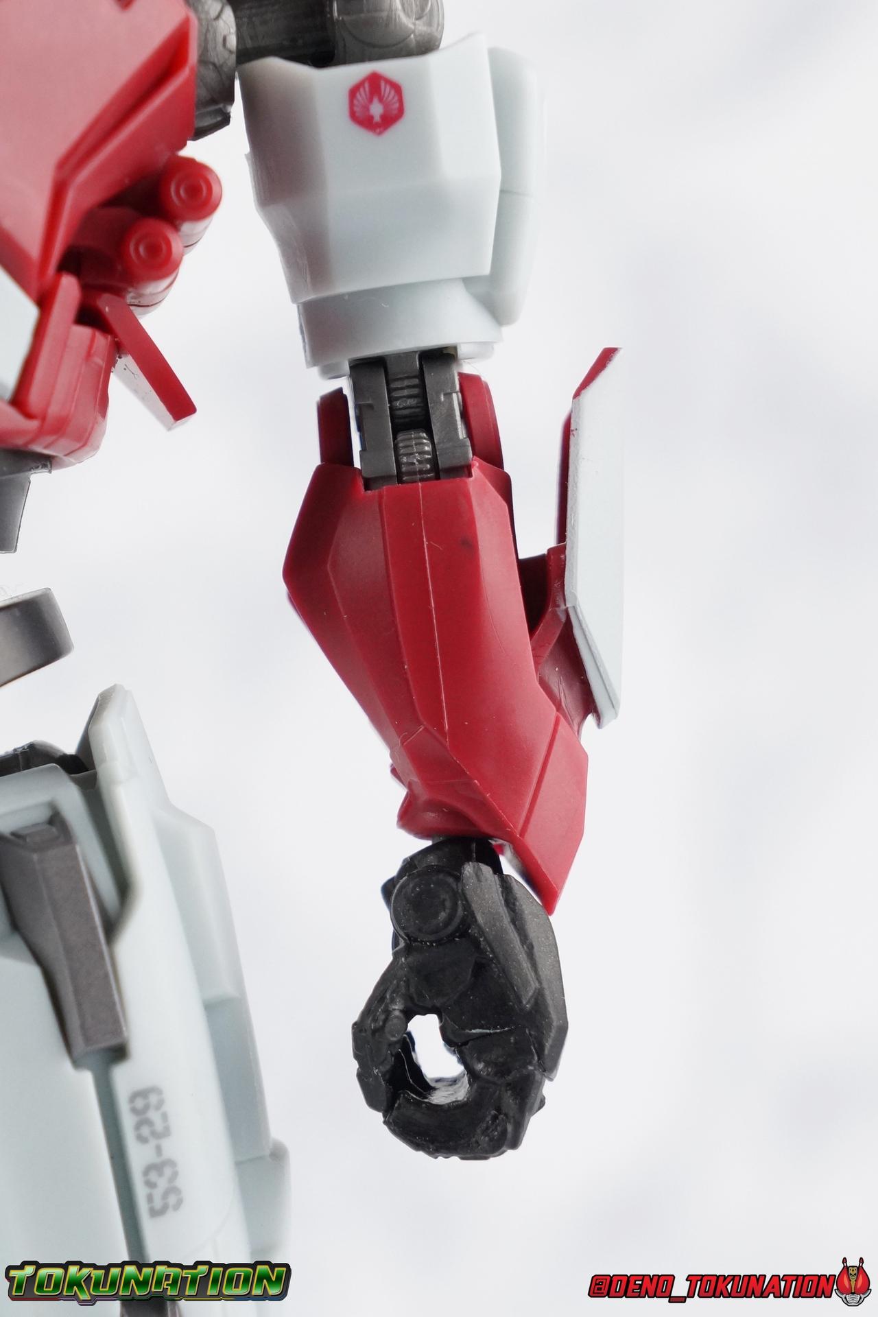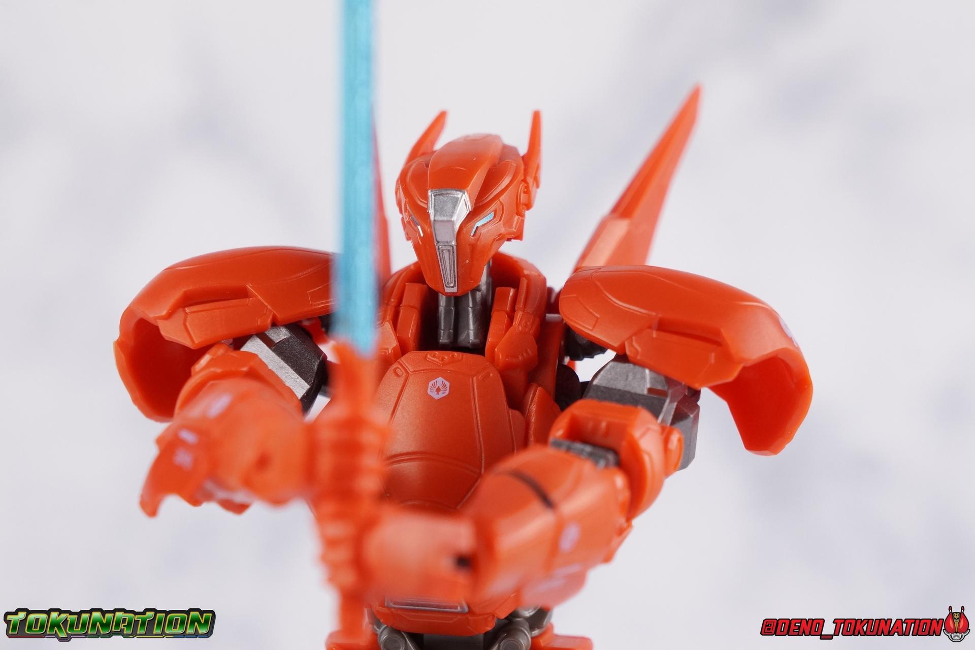 Aside from Gipsy Avenger, this was the one figure I was most excited for in the line. Saber Athena, is an elegant and sleek design that stands with the best of classic & modern giant robot designs. Having the figure in hand now it really does not disappoint at all. Saber Athena in universe was designed for speed and agility and the Robot Spirit is itself quite poseable to suit this. From the ground up, Athena is just supremely poseable in every conceivable way. I could honestly pose this figure for hours. Starting with the feet, Athena has incredibly free moving ankles. The ankles are on the usual double ball joint, though with a forward angle molded in. The ankles can amazingly fold up and forward nearly parallel to the shin which blows my mind. Because of how slim the upper & lower legs are, you can literally fold the leg up and back on to itself. I LOVE this kind of poseability. It's just a wonderful by-product of a good design. Following the example of the other 5 Jaegers, Athena has the same hip/waist design. Double ball joint, swing hips and all. No waist joint, no surprise there. The upper body can spin a complete 360, though it's up and back movement is sadly a bit limited. Like her legs, Athena's arms extremely well thought out. While she features a similar shoulder system to the other Jaegers, there's no body bulk to limit them as much. The shoulder pads are a bit limited in how they can angle out of the way but it's not detrimental. Thanks to the room around the double shoulder joint, you can get quite a lot out of these arms, including full use of the elbow joint. The head is a bit different than the other Jaegers, being a bit more streamlined and narrow. It reminds me very much of an Ingram from Patlabor. Unlike most of the others it's on a raised neck joint instead of down in the chest/shoulders. So you lose none of the double jointed aspects of the neck and the head is entirely free to move around. Of special note are the "wings" on the back, for lack of more accurate terminology. These are meant to be the area where the swords are stored for this Jaeger, though no such storage was built into the figure. They're on ball joints which all them to fold completely down and rest on the exterior of the back, they can also angle in or out depending on you're liking. Accessories Saber Athena comes with a set of accessories true to her name. 2 - sword holding fists. Oddly, Saber Athena is packed with open palmed attached and the weapon holding hands are in the parts tray. 2 - Ionic Twinblades. These short swords, as I mentioned above, are stored inside the back-mounted wings. In the film at least. No such storage option was built into the figure itself. They look jsut a bit small in the figure's hands but they get the job done. 1 - Ionic Sword. This larger version of the Twinblades is meant to be a combined form of the two. I don't think it would have been terribly difficult to just make them combine, but I appreciate the inclusion of an extra weapon. Especially one that seems to scale a little better with Saber Athena. Final Thoughts: Guardian Bravo & Saber Athena 6 figures in I wasn't sure what more this line was going to be able to offer to spice things up. Honestly though I think I enjoy these two quite a lot. They're a really nice change from the big bulk of Titan Redeemer & Bracer Phoenix, though neither really has the same spark that Gipsy Avenger or Obsidian Fury did. All in all, Robot Spirits Guardian Bravo & Saber Athena are more than welcome additions to this line. Once again I recommend picking these up, especially if you can score them at a discount at your local Toys R Us as I did. P.S. We're going to be having a special bonus gallery from Uprising in the next week or so as well. A certain 7-11 Japan exclusive is currently making it's way to me so we'll be sure to get that gallery up for your viewing as soon as possible!