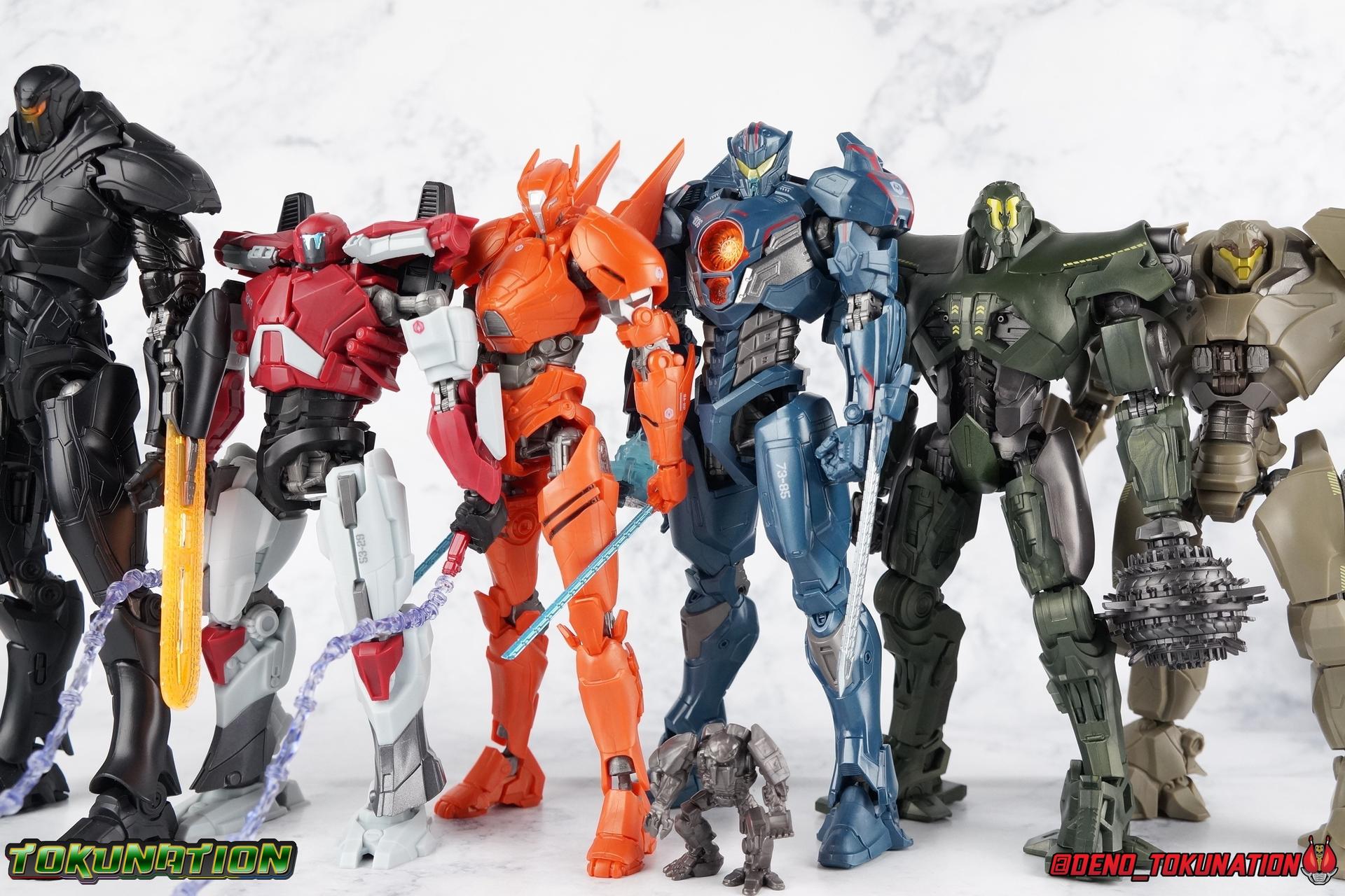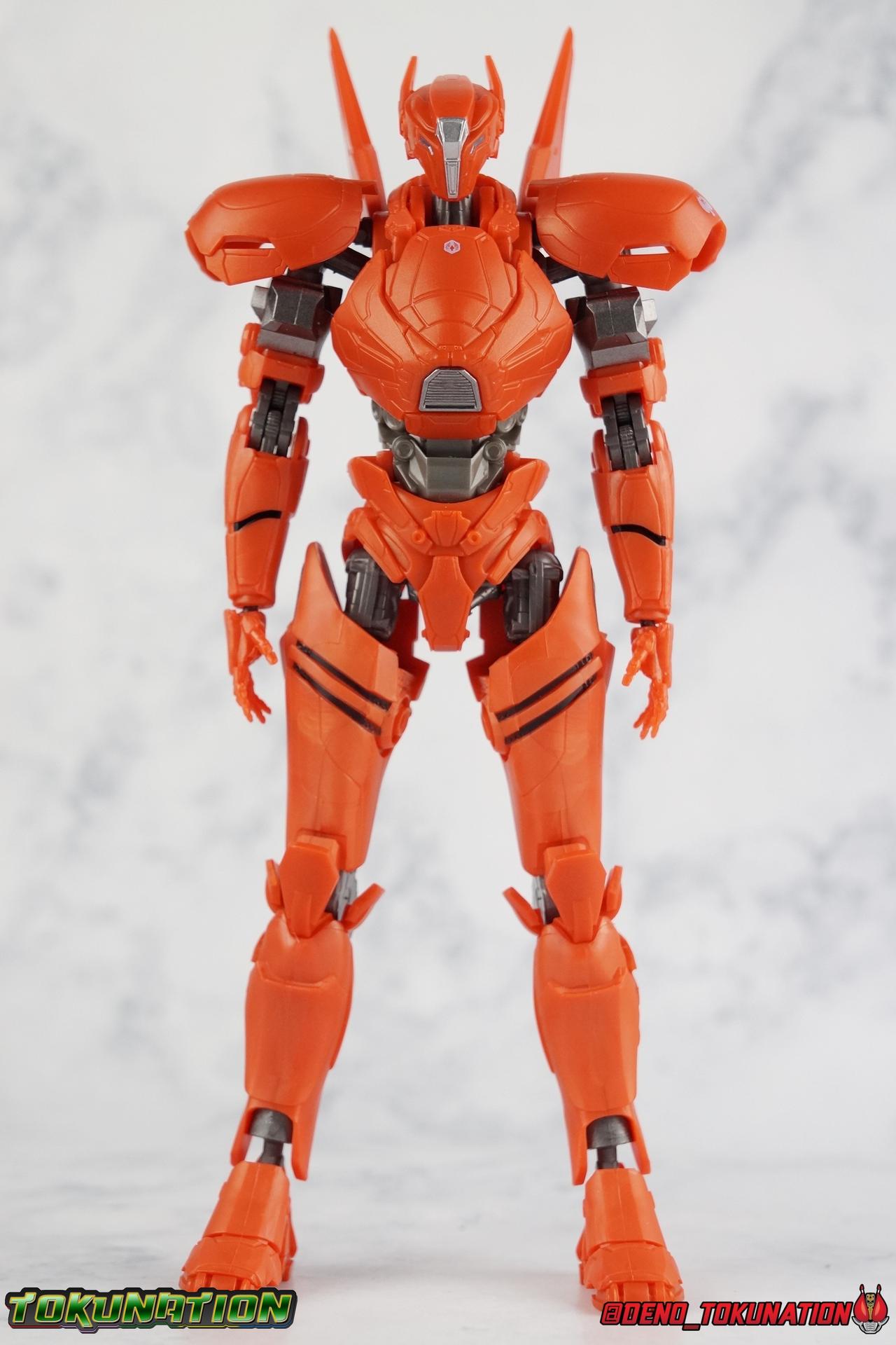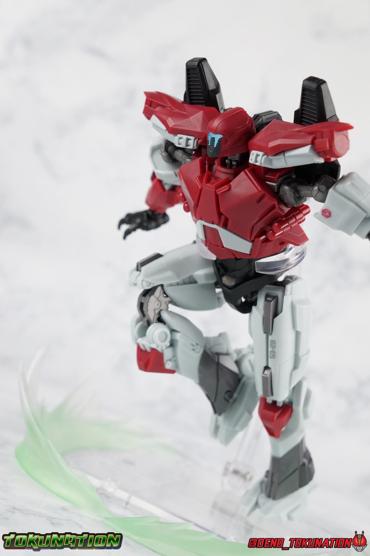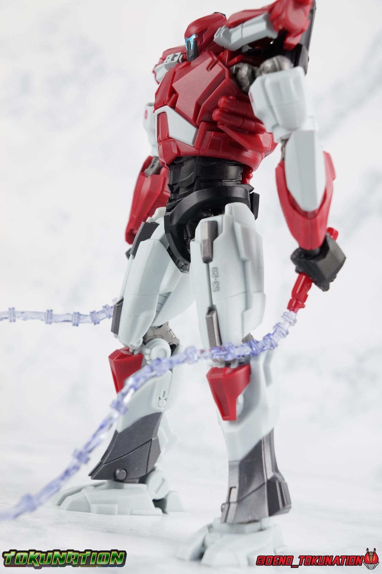Packaging As I mentioned in my previous reviews, the Pacific Rim Robot Spirits have gone in a new direction this toyline hasn't really before in terms of packaging. Each figure comes in a box with a punched tag to hang it on a retail store hook. It's definitely a new thing for Robot Spirits/Damashii to so openly market these figure at mass market retail. But perhaps their appeal and simultaneous release in both Western & Asian markets contributed to this decision? In either case these boxes are very unique and totally their own thing within the line. Even in regards to how slim and tall they are. Part 1: Guardian Bravo In a similar fashion to Titan Redeemer & Bracer Phoenix, Guardian Bravo is a very traditional design. A standard bulky humanoid robot, with pretty squat proportions. Though Bravo looks a bit more heroic, that's largely thanks to it's bright color scheme. Of all 6 Jaegers released thus far, this one is by far the most colorful and that really helps it stand out from the pack. Luckily much of the articulation we've seen throughout the line is also on full display as well. Bravo's feet are a bit unique, with huge flat bases for stability, they also feature double ball joints. The double joints in the knees are also quite good, allowing the back of the leg to rest up against the thigh parts. We get the exact same type of double ball joint hips and waist-swing joint. Making dynamic posing a breeze with this guy. The lack of a waist joint is still disappointing, but the upper body does have some decent range from side to side, though it can't spin all the way around. I will say that the arms look really awkward to me. The design is extremely similar to Obsidian, Redeemer, & Bracer, but the joint is completely exposed. The shoulder pads are largely pointless unfortunately. They're on ball joints with a fair bit of range to swing forward, but without any usable reason to do so. They do not however rotate upward, so when you attempt to move the arm up, they often pop right off. The shoulder joint design seems to be almost universal however. A double balljoint with a swivel just above the actual bicep. This go around we get some really great elbows on par with Gipsy Avengers as well and thanks to the position of the wrist socket, he has fists that are very functional. The combination of the various arm joints in Bravo 's arms allows him to make some great dynamic attacks. Finally that brings us to the head, which definitely puts me in mind of something akin to a GM or Vifam like design. It's a good grunt type head. It sells the Guardian Bravo design as something that would look good as a mass production unit. Accessories Like most of the line, Guardian Bravo comes with just the essentials: 2 - open palm hands. Like the other Jaeger's before it, for some bizarre reason the wrist socket on these is molded so that the hand would be bent backwards. I don't know why they did this with all of them, I would have preferred being able to rest the hands down by the sides a bit more. 2 - Elec-16 Arc Whips. These interesting weapons in universe are said to be "proto-metallic successors to the chain sword." As accessories go, I quite like them. Made of a nice translucent purple/blue, these things definitely look electrified. They're also made of a nice flexible soft plastic that allows you give while posing them. The grips fit right down into Bravo's standard hands quite well. My wife saw me writing up my review for these figures, she dubbed the Arc Whips "laser ropes:. I do wish they could have included something to replicate Bravo's wrist blasters from the final battle. But once again I recognize the need to keep accessories & therefore cost down on these.