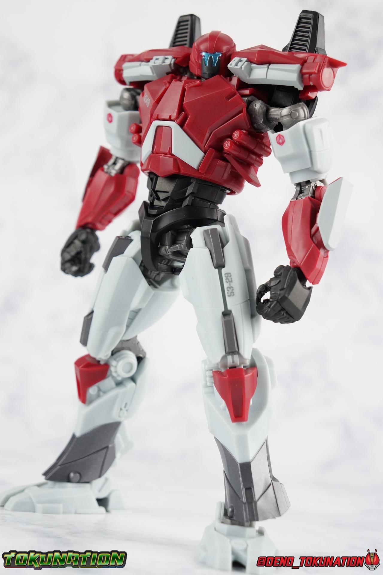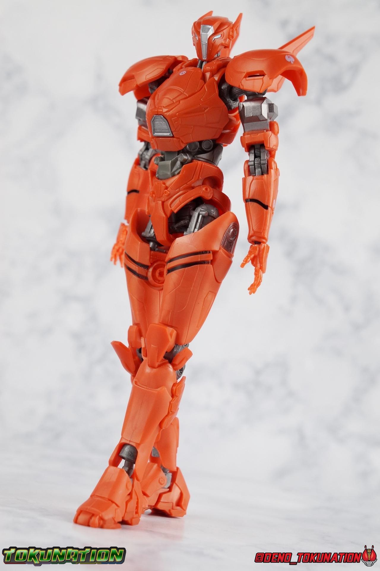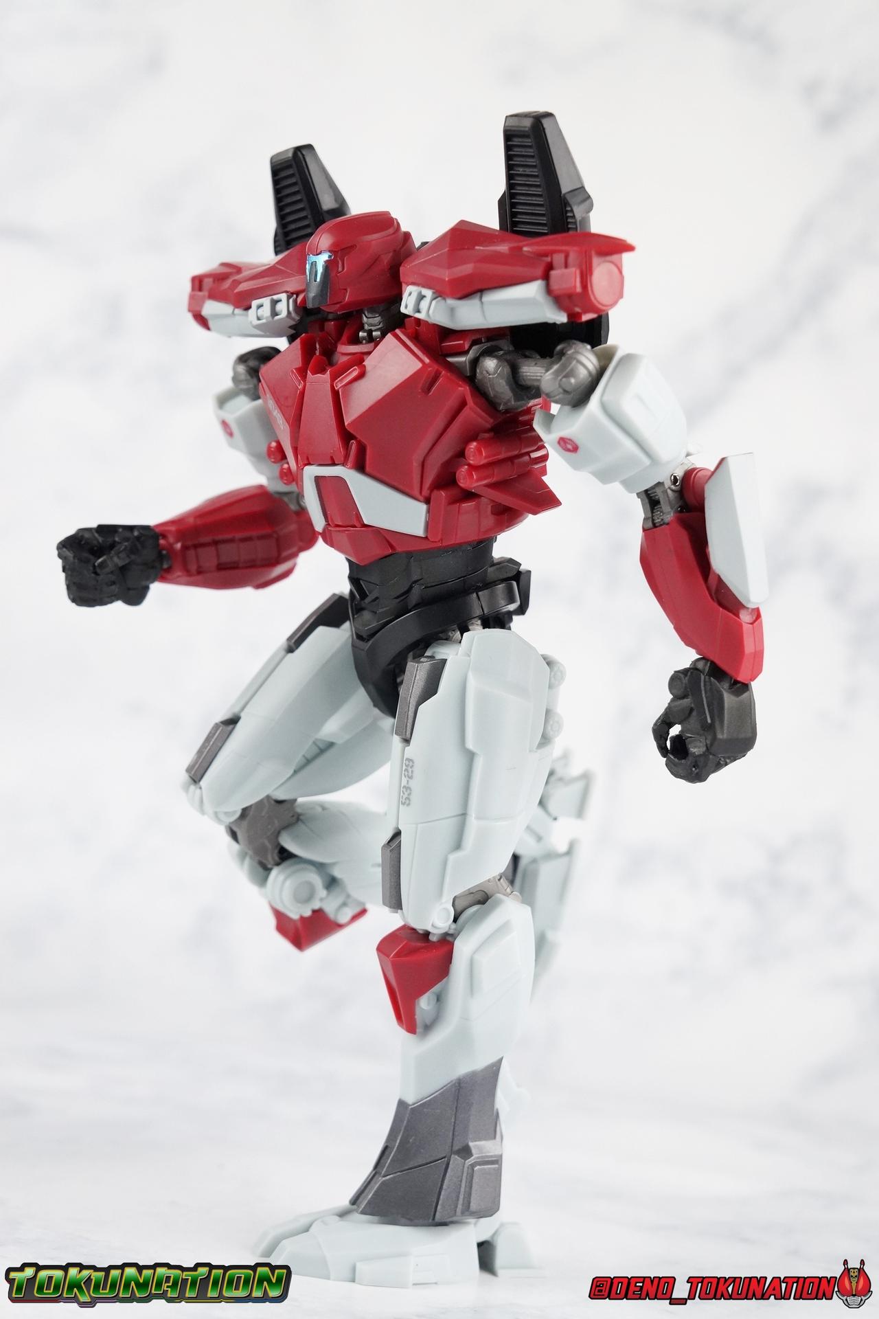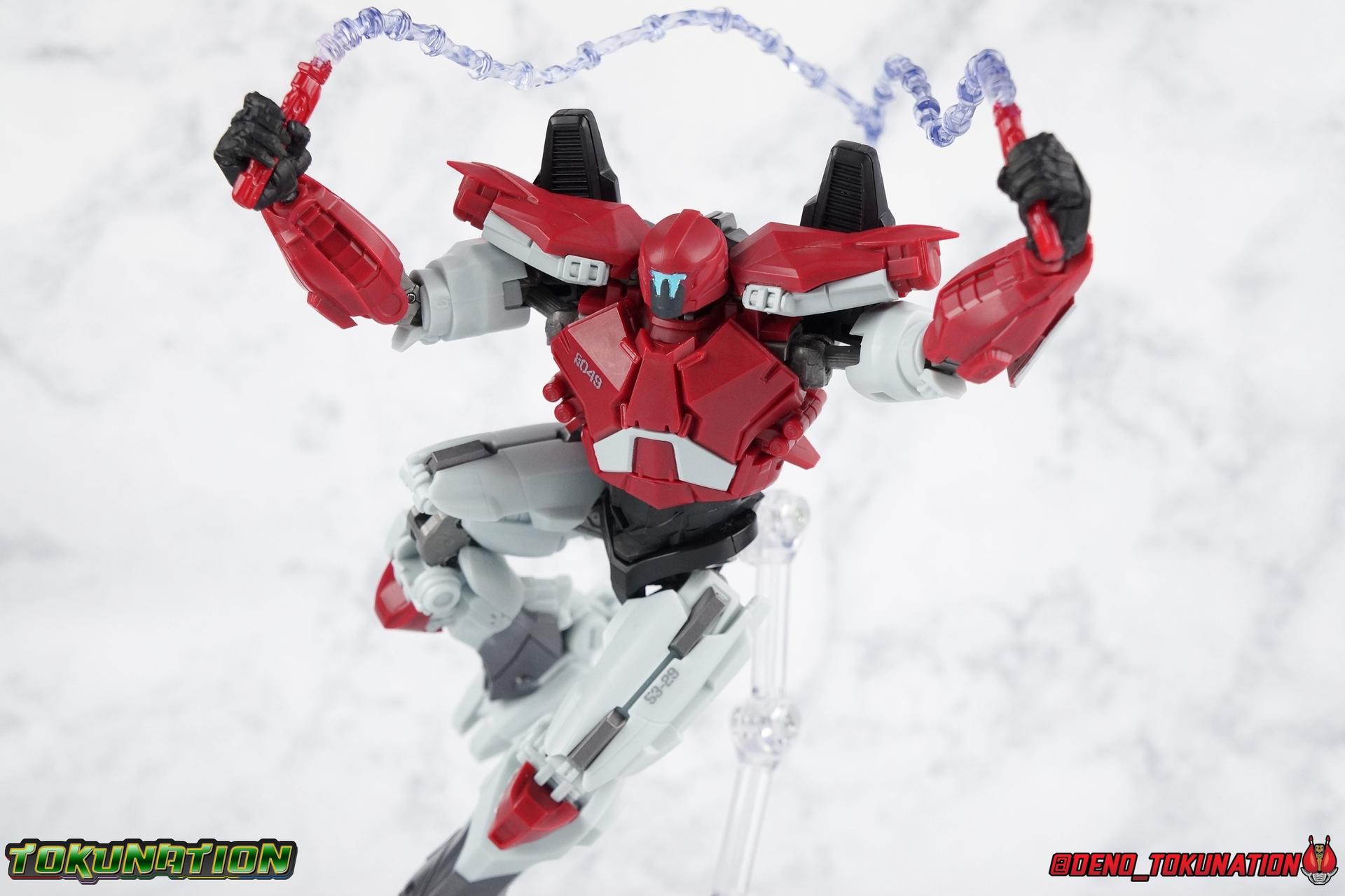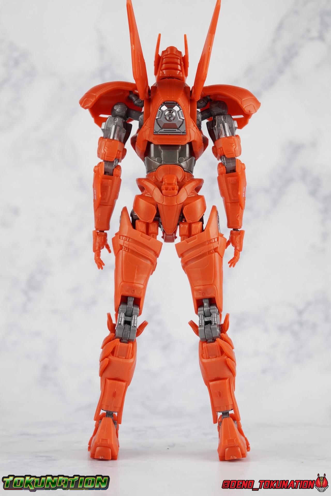 Packaging As I mentioned in my previous reviews, the Pacific Rim Robot Spirits have gone in a new direction this toyline hasn't really before in terms of packaging. Each figure comes in a box with a punched tag to hang it on a retail store hook. It's definitely a new thing for Robot Spirits/Damashii to so openly market these figure at mass market retail. But perhaps their appeal and simultaneous release in both Western & Asian markets contributed to this decision? In either case these boxes are very unique and totally their own thing within the line. Even in regards to how slim and tall they are. Part 1: Guardian Bravo In a similar fashion to Titan Redeemer & Bracer Phoenix, Guardian Bravo is a very traditional design. A standard bulky humanoid robot, with pretty squat proportions. Though Bravo looks a bit more heroic, that's largely thanks to it's bright color scheme. Of all 6 Jaegers released thus far, this one is by far the most colorful and that really helps it stand out from the pack. Luckily much of the articulation we've seen throughout the line is also on full display as well. Bravo's feet are a bit unique, with huge flat bases for stability, they also feature double ball joints. The double joints in the knees are also quite good, allowing the back of the leg to rest up against the thigh parts. We get the exact same type of double ball joint hips and waist-swing joint. Making dynamic posing a breeze with this guy. The lack of a waist joint is still disappointing, but the upper body does have some decent range from side to side, though it can't spin all the way around. I will say that the arms look really awkward to me. The design is extremely similar to Obsidian, Redeemer, & Bracer, but the joint is completely exposed. The shoulder pads are largely pointless unfortunately. They're on ball joints with a fair bit of range to swing forward, but without any usable reason to do so. They do not however rotate upward, so when you attempt to move the arm up, they often pop right off. The shoulder joint design seems to be almost universal however. A double balljoint with a swivel just above the actual bicep. This go around we get some really great elbows on par with Gipsy Avengers as well and thanks to the position of the wrist socket, he has fists that are very functional. The combination of the various arm joints in Bravo 's arms allows him to make some great dynamic attacks. Finally that brings us to the head, which definitely puts me in mind of something akin to a GM or Vifam like design. It's a good grunt type head. It sells the Guardian Bravo design as something that would look good as a mass production unit. Accessories Like most of the line, Guardian Bravo comes with just the essentials: 2 - open palm hands. Like the other Jaeger's before it, for some bizarre reason the wrist socket on these is molded so that the hand would be bent backwards. I don't know why they did this with all of them, I would have preferred being able to rest the hands down by the sides a bit more. 2 - Elec-16 Arc Whips. These interesting weapons in universe are said to be "proto-metallic successors to the chain sword." As accessories go, I quite like them. Made of a nice translucent purple/blue, these things definitely look electrified. They're also made of a nice flexible soft plastic that allows you give while posing them. The grips fit right down into Bravo's standard hands quite well. My wife saw me writing up my review for these figures, she dubbed the Arc Whips "laser ropes:. I do wish they could have included something to replicate Bravo's wrist blasters from the final battle. But once again I recognize the need to keep accessories & therefore cost down on these.