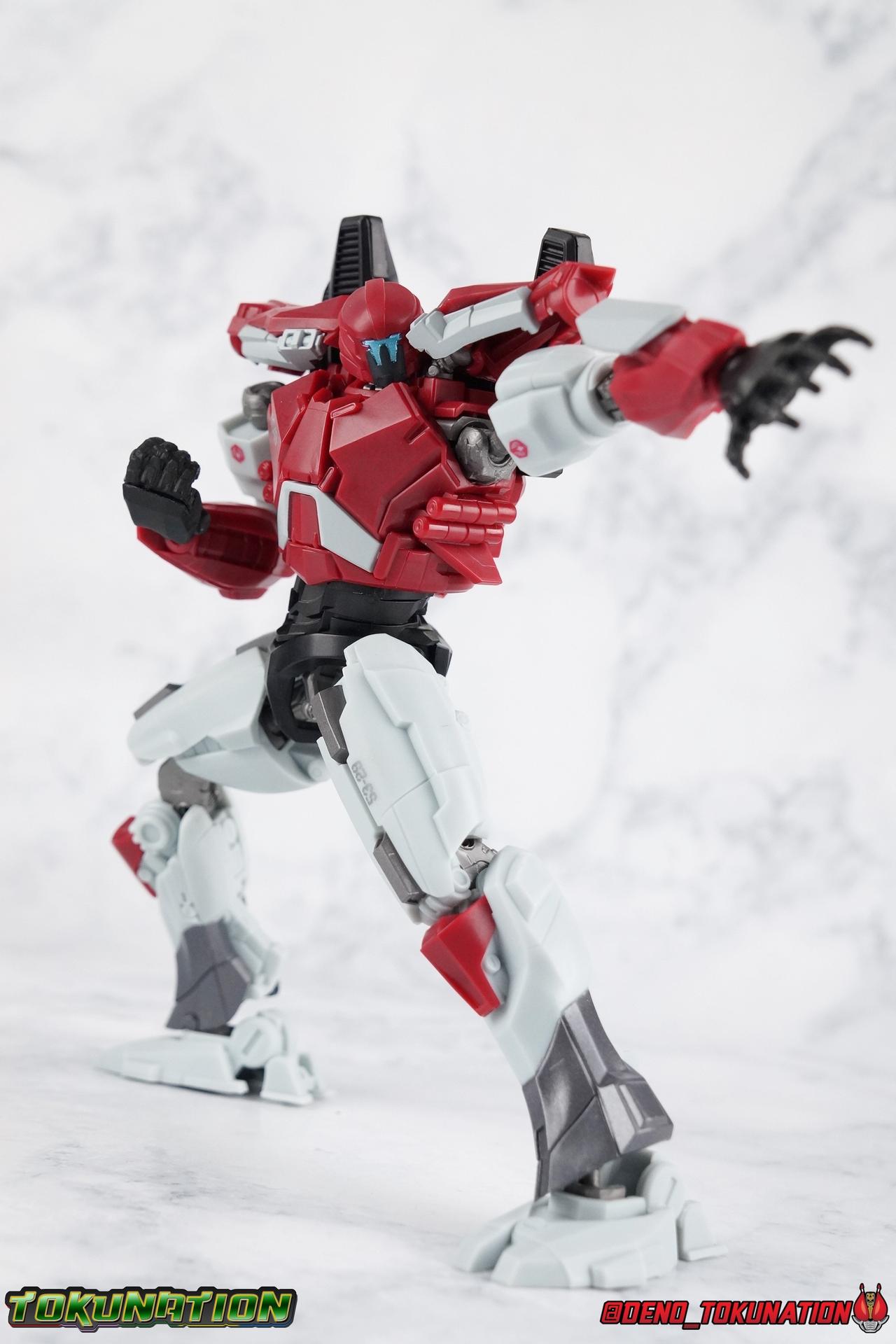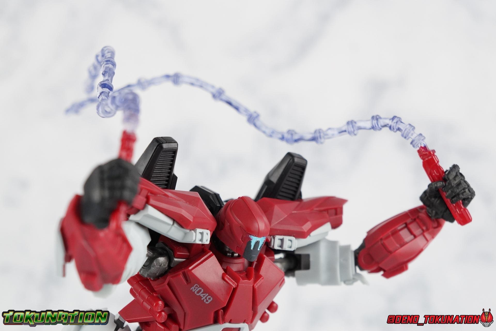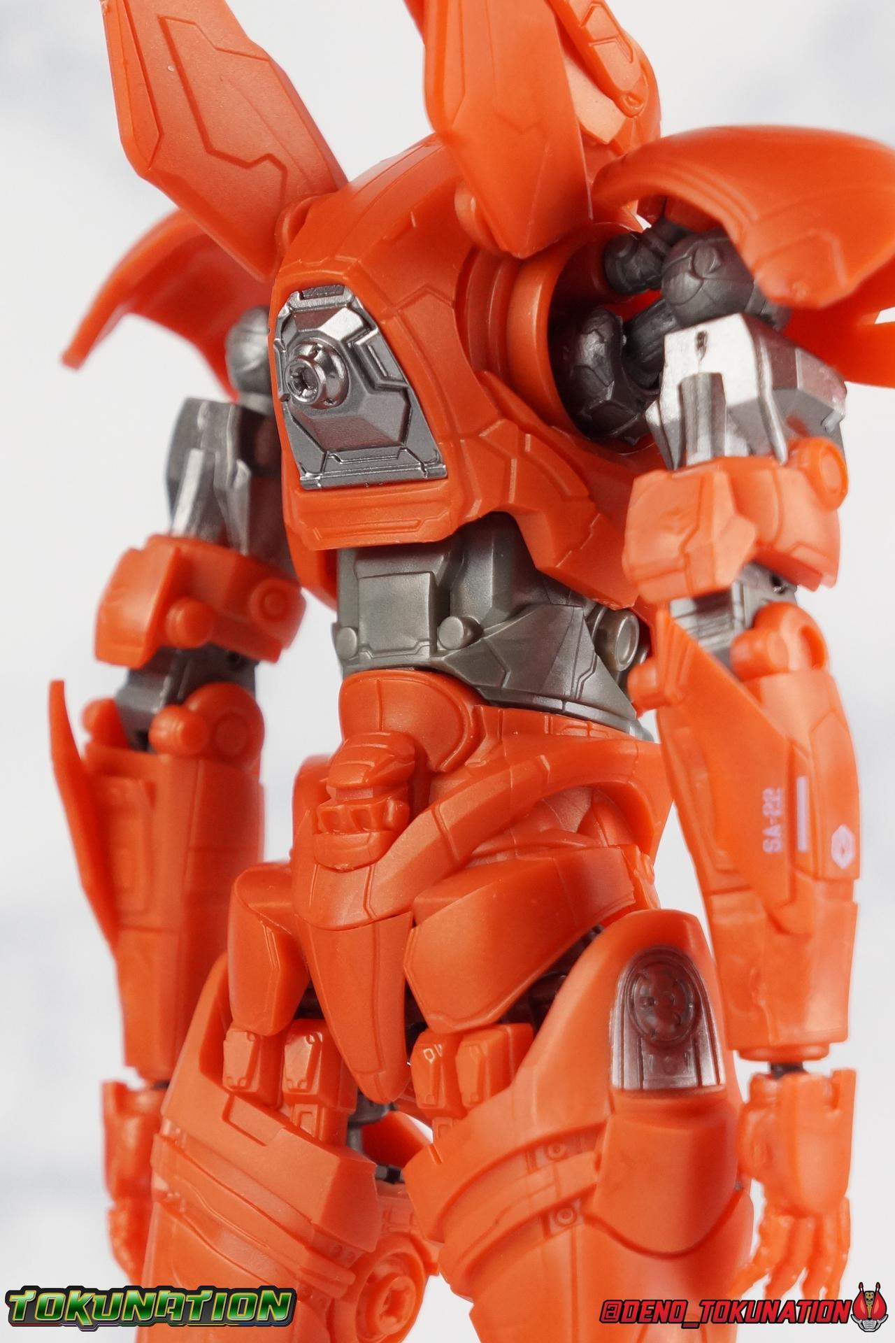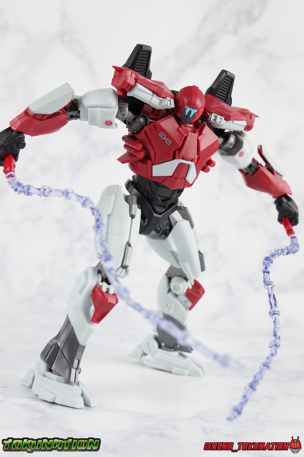 Packaging As I mentioned in my previous reviews, the Pacific Rim Robot Spirits have gone in a new direction this toyline hasn't really before in terms of packaging. Each figure comes in a box with a punched tag to hang it on a retail store hook. It's definitely a new thing for Robot Spirits/Damashii to so openly market these figure at mass market retail. But perhaps their appeal and simultaneous release in both Western & Asian markets contributed to this decision? In either case these boxes are very unique and totally their own thing within the line. Even in regards to how slim and tall they are. Part 1: Guardian Bravo In a similar fashion to Titan Redeemer & Bracer Phoenix, Guardian Bravo is a very traditional design. A standard bulky humanoid robot, with pretty squat proportions. Though Bravo looks a bit more heroic, that's largely thanks to it's bright color scheme. Of all 6 Jaegers released thus far, this one is by far the most colorful and that really helps it stand out from the pack. Luckily much of the articulation we've seen throughout the line is also on full display as well. Bravo's feet are a bit unique, with huge flat bases for stability, they also feature double ball joints. The double joints in the knees are also quite good, allowing the back of the leg to rest up against the thigh parts. We get the exact same type of double ball joint hips and waist-swing joint. Making dynamic posing a breeze with this guy. The lack of a waist joint is still disappointing, but the upper body does have some decent range from side to side, though it can't spin all the way around. I will say that the arms look really awkward to me. The design is extremely similar to Obsidian, Redeemer, & Bracer, but the joint is completely exposed. The shoulder pads are largely pointless unfortunately. They're on ball joints with a fair bit of range to swing forward, but without any usable reason to do so. They do not however rotate upward, so when you attempt to move the arm up, they often pop right off. The shoulder joint design seems to be almost universal however. A double balljoint with a swivel just above the actual bicep. This go around we get some really great elbows on par with Gipsy Avengers as well and thanks to the position of the wrist socket, he has fists that are very functional. The combination of the various arm joints in Bravo 's arms allows him to make some great dynamic attacks. Finally that brings us to the head, which definitely puts me in mind of something akin to a GM or Vifam like design. It's a good grunt type head. It sells the Guardian Bravo design as something that would look good as a mass production unit. Accessories Like most of the line, Guardian Bravo comes with just the essentials: 2 - open palm hands. Like the other Jaeger's before it, for some bizarre reason the wrist socket on these is molded so that the hand would be bent backwards. I don't know why they did this with all of them, I would have preferred being able to rest the hands down by the sides a bit more. 2 - Elec-16 Arc Whips. These interesting weapons in universe are said to be "proto-metallic successors to the chain sword." As accessories go, I quite like them. Made of a nice translucent purple/blue, these things definitely look electrified. They're also made of a nice flexible soft plastic that allows you give while posing them. The grips fit right down into Bravo's standard hands quite well. My wife saw me writing up my review for these figures, she dubbed the Arc Whips "laser ropes:. I do wish they could have included something to replicate Bravo's wrist blasters from the final battle. But once again I recognize the need to keep accessories & therefore cost down on these.