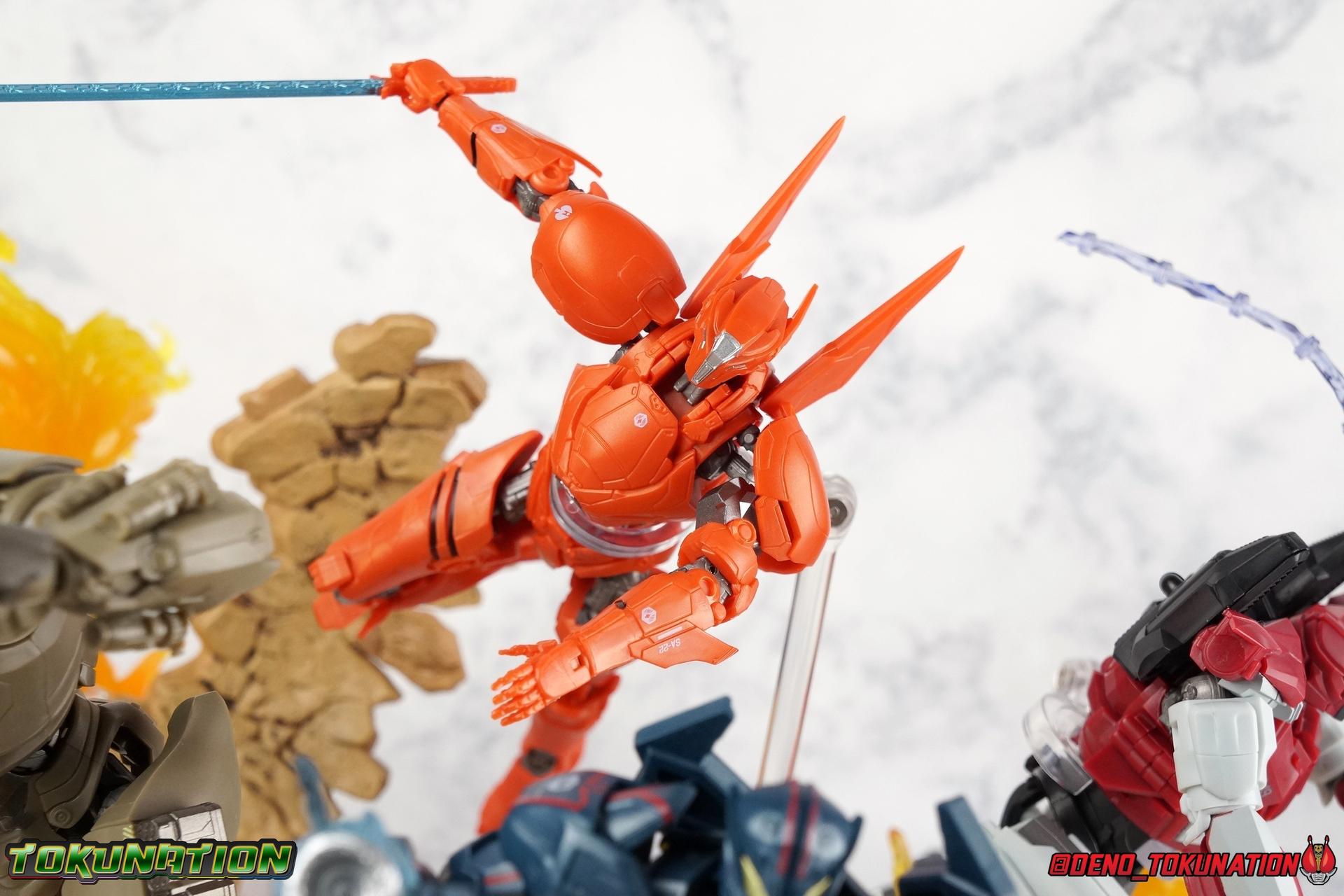 Following up from our three previous galleries for Pacific Rim Uprising we cap things off this time with another two-for-one special, with Guardian Bravo & Saber Athena! Two of the most advanced Jaegers in the PPDC fleet, Bravo embodies the bulk and power of it's predecessors and improves on the chain sword melee weapon with it's own electrified Arc Whips. Saber Athena meanwhile is the newest and fastest Jaeger to date. Built for speed and finesse, Athena is a remarkable close range fighter. Can these two next gen fighters turn the tide of the war? Are they at least nice additions to the Robot Spirits line? Read on!