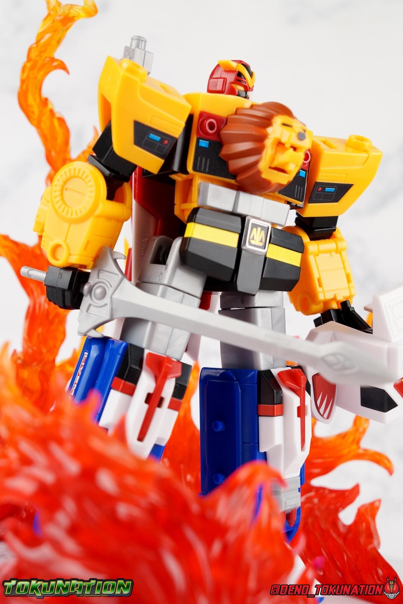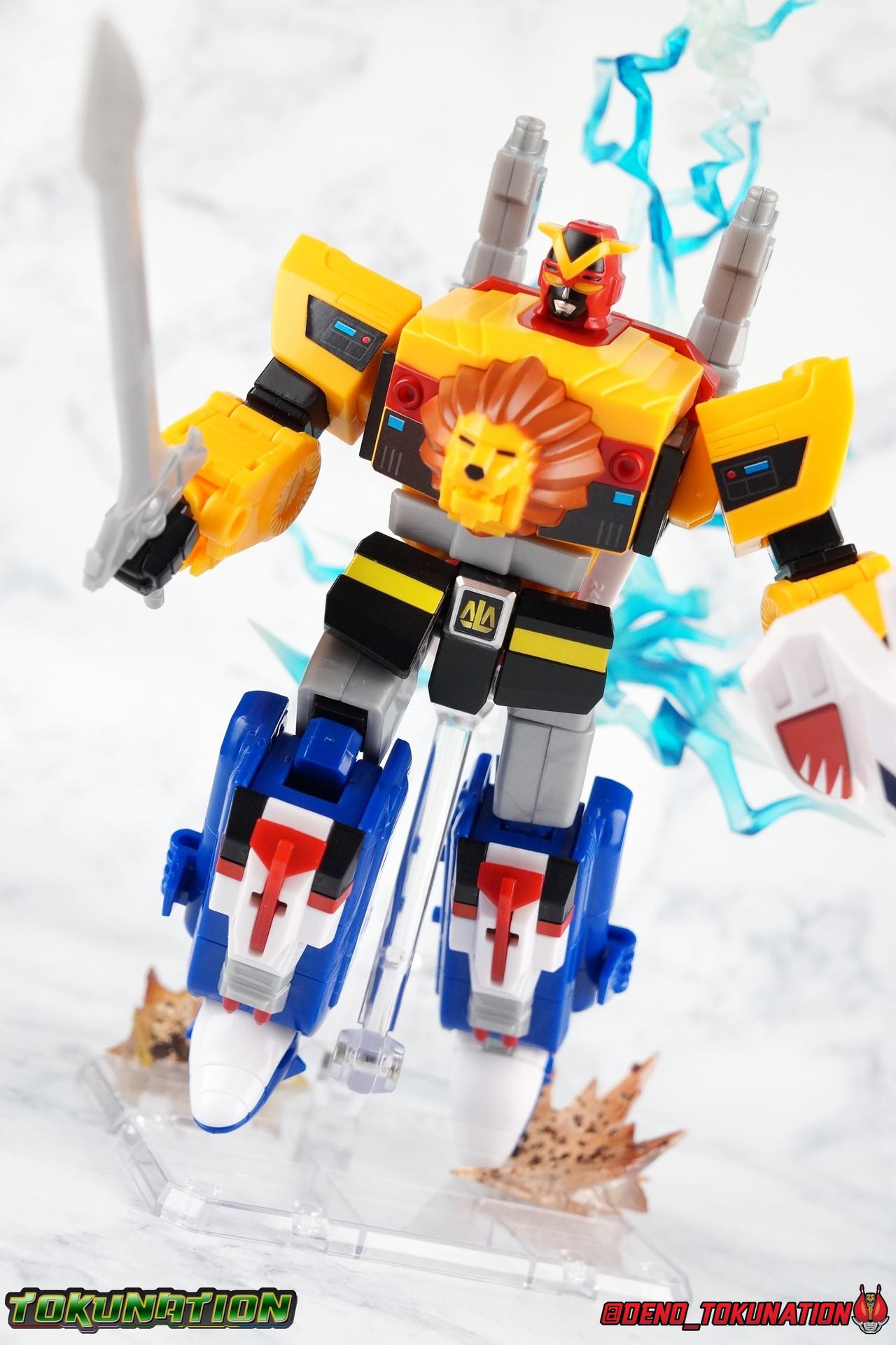 Now for the main event, Live Dimension! By far the greatest strength of the Super Minipla line is it's ability to recreate combined robots so excellently. You get a great functional toy with some fantastic proportions and accessories. Unlike many minipla of the past, you can also get around most part swapping for the transformations. In Live Robo's case, a mere 3 parts are removed and totally set aside for this transformation. Only the plugs that cover the knee plugs on Sky Machine and the tail from Land Machine are left over in the end. I've included step by step photos to show you how to get from each individual machine into the parts you need. While I think those images can speak for themselves I do want to mention a couple of fascinating things about the combination that I love. First, the way the lower half of Sky Machine slides down to accommodate the Land Machine chest, then slides back up to lock it in place and hide Land Machine's front legs just blows my mind. Likewise the way in which Land Machine's legs rotate out on that shared black joint within the chest is just incredible to me. The way it moves is just so fluid it's hard to believe this is a minipla. Once you've assembled Live Robo, you have one hell of a fun little figure. Without getting into the weapons yet, Live Robo is a great and poseable action figure in it's own right. The feet have side tilting joints thanks to how the feet are built, while the ankles can tilt forward and back too. Because of the nature of joints in the thighs we also get a nice knee joint connected to Aqua Machine that extends out it's main body. Then there's a mid-thigh swivel as well as a rotating hip joint. Now the hips are TIGHT, scary forceful on my Live Robo. Just be wary. All of this adds up to some extraordinary articulation in the lower body. This thing can stand on one leg with the other wrapped around it's back even. Despite it's complicated assembly even the torso can rotate pretty freely. The shoulders are each on a sort of butterfly joint that allows them to move very high up (at the cost of looking a bit inaccurate) but the arms can also swing out quite wide. Now for my one big complaint, the elbows have almost no range. Mostly because they have to accommodate the way the lion legs transform, they can only rotate forward about a quarter turn before they impact the opening forearm panel. The rotating biceps and fists can help alleviate some of this but it's still imperfect. Finally the head is on a small but useful balljoint that allows it to move a lot more than it appears at first glance. Able to spin around completely and angle up or down just a bit goes a long way to helping create personality for this mecha. Now for weapons. Live Robo comes with a shield formed from Sky Machine called the Live Shield. A square peg on the handle allows it to fit snugly into either hand of the Live Robo and it's hinged to pose it out of the way. We also get the mighty Chojuken or Super Beast Sword. Oddly this accessory isn't painted nor are there stickers included for it so the hilt remains in accurate. I don't paint or panel line or do anything outside of what the stock instructions give me for model kits. I like to straight build everything, that's just the way I am and I'll always be. If you've ever seen Gundam Build Fighters, think of me like Straight Build Shimon. I don't feel like I should have to recreate missing details they should simply be there, and I'm not particularly good at it either. So these little inaccuracies are frustrating, but not deal breaking. Final Thoughts Super Minipla is a revolutionary toyline for Super Sentai. As someone who typically collects DX toys, Robot Damashii, S.H. Figuarts, and Chogokin type figures, I was not prepared to be up for another toyline. But the chance to own a classic design like the Live Robo in an affordable way was something I couldn't pass up on. And I'm glad I didn't. If Bandai keeps it up and does more pre-Zyuranger mecha then I may actually be all in on this line. For now, I'm extremely please with how Super Minipla Live Robo has turned out.