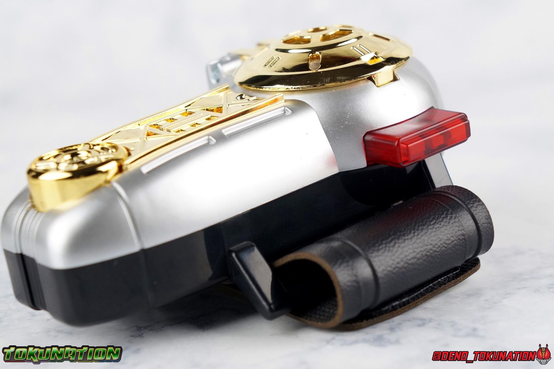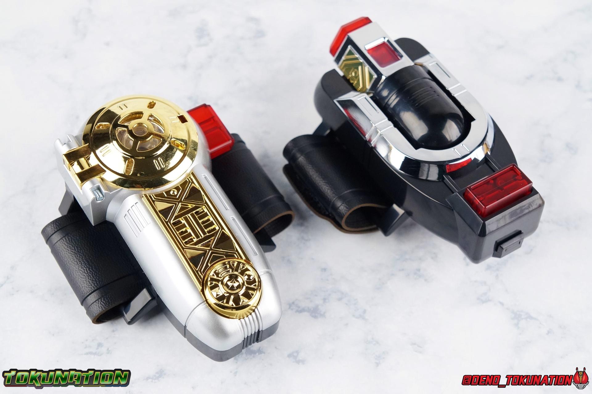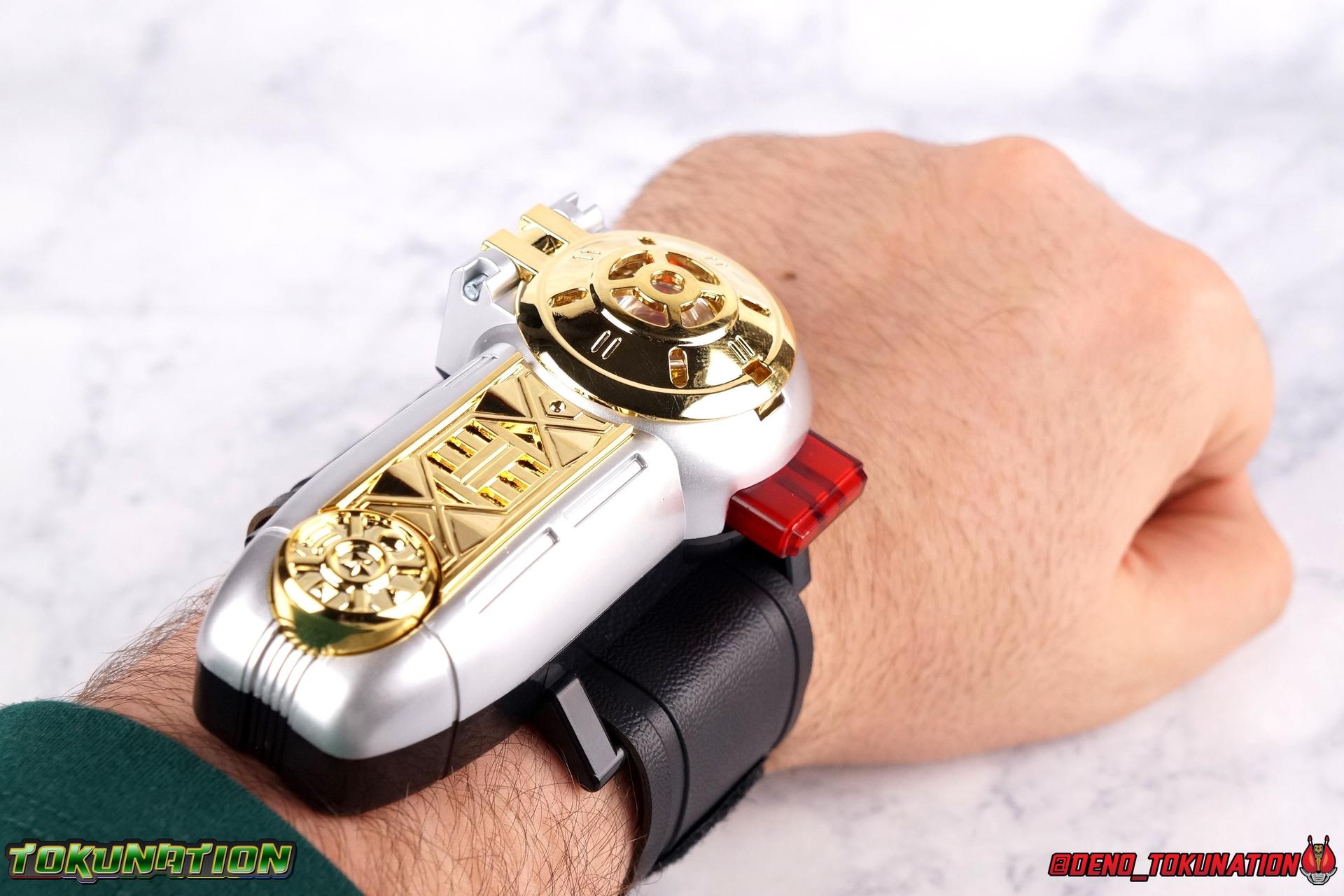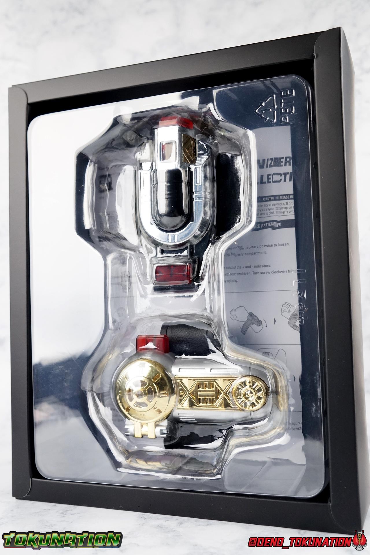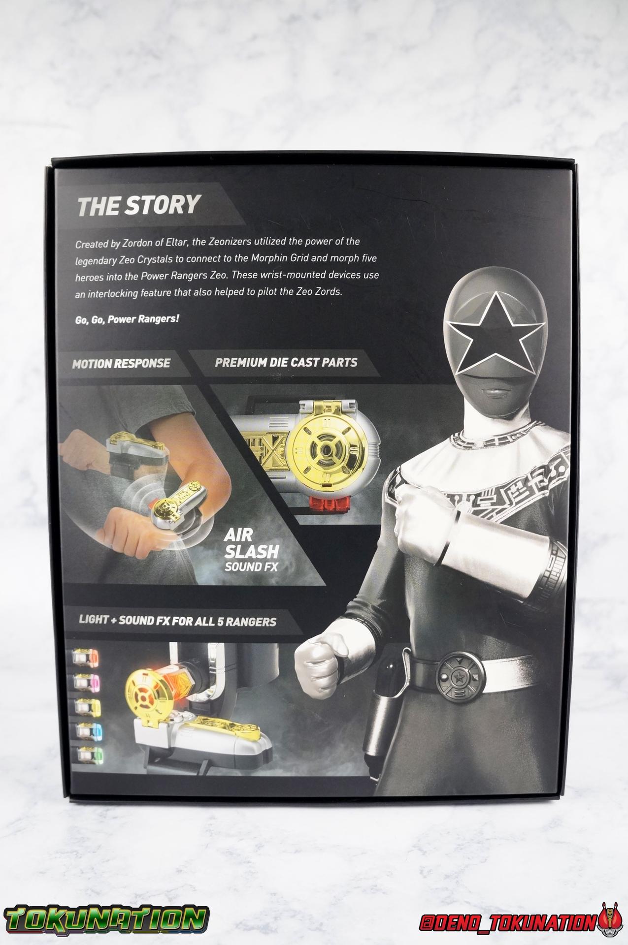 It's been a while since we've tackled a Legacy release from Bandai, and with their time with the Power Rangers license coming to end, we thought it appropriate to take a look at one of their last high end releases. Making it's way out to retail currently at Toys R Us (as they go our of business themselves) is the Legacy Zeonizer! Part of a pair of Power Rangers Zeo releases, the other being the Zeo Gold Staff, it's unfortunate that these collector's items herald both the end of a retail chain and a toy license. But here we go! Packaging Making a dramatic change at the end of the Legacy toyline, the Zeonizer comes in very slick and collector oriented packaging. The new black box style packaging themes very well with the mainline toys we're seeing right now Ninja Steel/Super. This box is a very quality piece of packaging. Featuring some nice hi-res stock photos as well as a brief overview of Power Rangers Zeo and the toy's features, this box really sells you on the collector nature of the item. But nothing does this more so than the absence of tape. This is a really welcome change. You can easily open and handle this item without breaking a packaging seal. This also means that it's easier to steal in store. Hence why when I purchased mine, it was locked inside of a case, which is honestly a smart idea. The Zeonizers inside the box, are packed in a loose fitting plastic clamshell. There are no tabs holding the halves together, however the slipcase box fits on there so snugly that you don't have to worry about anything floating about in the box. Overall I'm just happy to get away from slavish MMPR homages and recreations in packaging. This is super sleek and nice. Zeonizer(s) Now, the Zeonizers for the unfamiliar are separated into two wrist mounted braces. Simply known as left and right Zeonizers, this pair was the first big departure in the franchise from the classic Power Morpher and coins. Thankfully that also means a big departure for the Legacy toyline. Let's start with the finer details. The Legacy Zeonizers are intricate recreations of the show prop used in Power Rangers Zeo and the Choriki Sentai Ohranger source footage. The best part of this recreation is pf course the size of the wrist straps. If you were like me and cherished your Zeonizer as a kid, when you grew up you realized that strap was barely appropriate for a child. The nice thing about Legacy as a toyline has been it's gearing towards the adult collector. In this case, the Zeonizer winds up being sized for an adult sized forearm with wrist straps that (albeit just a little too short) match well. The straps also feature engraved "Zeo tribal" emblems in the center that are quite nice. The interior of the straps is a bit cheaply made bu they get the job done. Beginning with the left Zeonizer, this is where a majority of the chrome detailing, diecast, and all the electronics are present. Like the original toy we get some gorgeous gold chrome through the center. At the bottom end there's another one of those Zeo tribal symbols. HOWEVER this one is actually a moving dial. Before making use of the dial, flip the on switch on the back of the Zeonizer. Doing so activates a powering on sound effect and activates the LED at the end of the Zeonizer. Now, the dial comes into play. In it's standard position, when you turn the dial you'll activate an "It's Morphin' Time!" line as well as the default white light mode of the LED. While in this mode, if you press the red lever on the side to activate a Morph, what instead plays is the entirety of the Power Rangers Zeo Opening Theme, lyrics and all! It will continue to play until you activate another feature of the Zeonizer. The next turn of the dial after this will officially set it to the Kat/AKA Zeo Ranger I - Pink mode. Each time you turn the dial you change to another ranger color and voice cycling through Pink, Yellow, Blue, Green, & Red. I mean colors literally as well since the LED changes color to match the ranger. Now, the voices in this thing definitely sound like the characters they're meant to be, but I am fairly certain these are just soundalikes. Bandai didn't go the extra distance with this one like they did with Saba. But it's still a pretty cool and fun effect. It doesn't matter which direction you turn the dial as the voices still activate in the same order. Each time you choose a ranger color and press the transparent red lever on the side, you activate the Morphing sequence for that ranger. You can simply press the red lever to test this out, obviously to accurately recreate it you need to use the other Zeonizer. Again, each ranger selection changes the color of the Zeonizer's LED to match as well. For now though, you can run through each rangers Morph by just pressing it to get these sound effects Dial turn: "Pink" Morph: "Zeo Ranger I - Pink!" followed by sound effects. Dial turn: "Yellow" Morph: "Zeo Ranger II - Yellow!" followed by sound effects. Dial turn: "Blue" Morph: "Zeo Ranger III - Blue!" followed by sound effects. Dial turn: "Green" Morph: "Zeo Ranger IV - Green!" followed by sound effects. Dial turn: "Red" Morph: "Zeo Ranger V - Red!" followed by sound effects. The Zeonizer also has this cool "Air Slash" sound effect that's built into every mode. Regardless of whether it's in default mode or in any of the 5 ranger colors, when you abruptly move the Zeonizer or wave it around, you activate this sort of battle sound effect that often sounds like a generic karate chop. Like everything else, these chops are color coded for each ranger mode as well. I should mention that the Zeonizer LED is so bright that it shines through the silver plastic on the side. I turned off my photo lamps and had only the tiniest bit of natural light in my studio when I took the photos of the two Zeonizers combined. These things produce a ton of light. If you leave the Zeonizer laying around for a few minutes it will eventually play the ringing/communication noise that my vintage toy