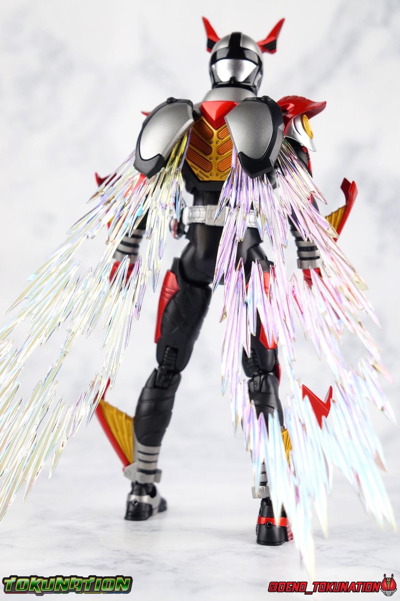 In anticipation of the release of today's subject, last year we took a look way back at the original S.H. Figuarts Kamen Rider Kabuto Hyper Form. A figure that came out in a much earlier era of figuarts development. and featured many of the defects and pitfalls of the Kabuto line specifically. However, as they have done over the last several years, Bandai has finally rectified the mistakes of Kabuto's final form with S.H. Figuarts Shinkocchou Seihou Kamen Rider Kabuto Hyper Form! This figuart walks the path of heaven, read below to find out why! Packaging The familiar Shinkocchou Seihou slip cover box makes another appearance! Nothing can be said about it this time that hasn't been said before. It's gotten a bit stale over time but it's still a pleasing type of box to see. Main Figure If you haven't checked out any of my previous Kamen Rider Kabuto galleries over the years, please, feel free to peruse them now! Especially the Shinkocchou Seihou ones as they give you the best idea of what to expect here: SHF Kabuto Hyper Form (Original) Seihou Kabuto SHF Hercus, Ketaros, & Caucasus SHF The Bee SHF Kabuto Extender SHF Dark Kabuto (Original) Seihou Dark Kabuto SHF Gatack (Original) Seihou Gatack Seihou Kick Hopper Seihou Punch Hopper The Seihou Kabuto mold that began all of this over 4 years ago, has aged supremely well. The first Seihou figuart release, this body has been resued a number of times and just seems to get better with each successive release. At it's base, Kabuto Hyper Form is still that same tried and true mold with brand new armor and detailing. The legs are essentially the same pair we've come to know over the last few Seihou releases. The difference here is the additional of "wing" armor to each of the ankles. In a perfect world these would be able to fold out and expose the full hidden wing for Hyper Clock Up. This figure opts to make those swap out parts, as detailed in the accessories section below. Other changes to the legs are merely cosmetic, being paint apps. I've always found it really interesting that Hyper Form has asymmetrical feet, the right one being red. I just really dig that. Kabuto's waist is largely unchanged. The original belt and Kabuto Zecter are still present. Though now we have the addition of the Hyper Zecter on the left hip. It can be unplugged for any other figuart to hold onto, it's lever is also hinged to move down for activating Hyper Cast Off. The arms come out similarly to the legs with just paint additions and new "wing fins" on the arms. We do however get some stellar new shoulder pads that still angle perfectly up and over the torso when needed. The red cover flips up for Hyper Clock Up, again detailed below with the accessories needed for the full conversion. The largest change to this mold is the entirely new torso armor, front and back. For the chest, there's basically an immobile version of regular Kabuto's. The basic shape is there at least underneath everything else. On top of this are two silver and red curved strips that come down from the collar. These parts "split" open for Hyper Clock Up. They're held on be a pair of small pegs on either side of the chest. For Clock Up you just remove these and reattach the new parts. The exposed chest details underneath are just exquisite. The back side of the figure features a new carapace type of armor, that basically looks like two hard stunted wings. These are all balljoints so keeping them properly aligned can sometimes be difficult. Mine had a little paint splotch on there straight out of the box but it's nothing huge. The replacement parts for Hyper Clock Up are basically identical, but include attach points for the included wings of light. Finally that brings us to Kabuto's drop dead gorgeous helmet. I have always loved the base Kabuto rider form, but Hyper Form is still one of my favorite final forms ever. The head is a large reason why. Taking the initial design cues of the standard helmet, this one just feels like such a perfect natural progression beyond that. The Seihou finally fixes the completely goofed up proportions of the original Hyper release and nails the compound eye color. I just could not be happier with how this turned out. This figure is the centerpiece of my Kabuto collection now. Accessories I would say by any decent measure, that Kabuto Hyper Form comes with more accessories than any other Seihou release, rivaling even Hibiki. 3 - Zecters (Sasword, The Bee, & Drake). Each of these Zecters is expertly detailed when compared to those that came with the original Hyper Form release. They don't really have any functionality on their own aside from a couple of moving parts for various combinations, but they are extremely nice recreations that can interact with the Perfect Zecter sword. 1 - Final Sword Perfect Zecter. The primary weapon of this form, the Perfect Zecter is an appropriately big and powerful looking weapon for Kabuto. On it's own, the Perfect Zecter is pretty cool even if it doesn't do a lot. It's real features come into when combined with the other 3 Zecters. Each plugs on at a specific point on the sword. To attach the Drake Zecter there's a small gold piece near the hilt that needs to be removed, there's some detailing on the Drake Zecter itself that replaces that detail. The completed Perfect Zecter Sword Mode requires you to attach the 3 Zecters as well as flip out the Cross Guard on either side of the hilt. For Gun Mode, flip The Bee Zecter's tail forward,push the blade of the sword down so the hilt is angled at the trigger, then flip Sasword Zecter's tail back for the trigger guard. I realize that in either combo this thing is huge and kind of unwieldy, but it's always been one of my favorite final form weapons so I kind of have blinders on. Honestly that's me with Kabuto in general, I just really liked the show. 1 - Set of Hyper Clock Up Parts. This set of parts requires you to do a little disassembly of you Kabuto Hyper, but the payoff is well worth i