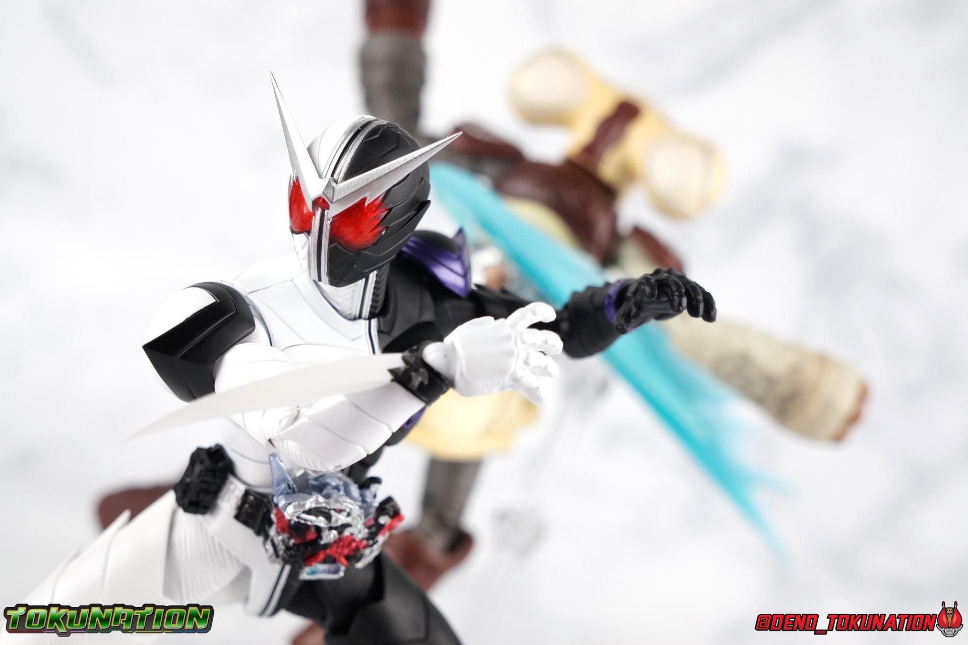 Begins Night. The incident that set the events of the Kamen Rider W series into motion. This incident also heralded the birth of Kamen Rider W's first and most ferocious form. One so powerful that, for a time, Phillip & Shotaro purposefully avoided using it or they'd risk losing control entirely. Eventually mastered, this form was a force to be reckoned with until the introduction of Xtreme. On occasion used to fight some of W's fiercest opponents, even Kamen Rider Eternal. Now, after languishing for nearly a decade with the original figuarts release, Bandai has recreated this powerhouse form in S.H. Figuarts Shinkocchou Seihou Kamen Rider W Fang/Joker! Packaging The familiar Shinkocchou Seihou slip cover box makes another appearance! Nothing can be said about it this time that hasn't been said before. It's gotten a bit stale over time but it's still a pleasing type of collector's packaging. Main Figure As with the previous line of Kamen Rider W figuarts, the Seihou releases rely heavily on repaints. Fang/Joker is just the latest such, soon to be followed up by Heat/Metal & Luna/Trigger. The nice thing about that is, that we know what to expect when it comes to this release and others from the line. As with base Cyclone/Joker W, that's excellence. Feel free to peruse my review below, but it will be very similar in wording to my Cyclone/Joker review. This figure accurately recreates the suit you've seen in numerous episodes and movies down to it's finest details. I've said this many times with Shinkoccouh Seihou releases, but I truly think the W body is the peak of engineering in the line so far. In every conceivable way these are magnificent figuarts. For a frame of reference, the original W Figuarts were largely a product of their time. The contrast between the old line, and what we have now, is stark. For starters the S.S. release nails the details and coloring. A nice flat black for the left half, and a fantastic glossy white finish on the right. The best bit being the gorgeous deep purple used for the Joker half's details. The body itself is mostly unchanged, but what you will obviously notice are the extra spikey protrusions that have been added to the contours of the body. The natural lines of the suit all come up and out to a point and I just absolutely love it. The couple of comparison shots I included really illustrate the subtle differences between this one and base W. Now, the Double Driver! This belt is still the crowning achievement of W Seihou line. A functional belt at this scale still just blows me away. This figuart includes both the Fang & Joker Memories, one of which fit's into it's slot rather snugly. However as with most any of the normal memories in this line, the Joker one falls out extremely easily. I do find that the way the Fang Memory folds down and over the driver isn't perfect, it always seems to come out a bit crooked to me. The form is 100% there, and because this figure is a repaint of the magnificent Seihou W mold, it has the functionality too. Seihou W has the articulation to pull off everything, and the proper sculpting for the joints needed for it to look perfect while doing so. The extending knee joints that look like a natural expansion of the costume the near seamless thigh swivels, the way the upper arms & shoulder come together and separate just as you need, and the miraculous way the upper torso is designed. This figure just looks stunning in hand. Seihou W releases just have a way of doing that. The other most recent release, Eternal, is just the same. I absolutely hate that character and that figure still massively won me over. This figure can pull off most any pose you recall the character making, and looks absolutely perfect while doing so. Accessories Fang Joker includes a wealth of accessories, frankly it's perfect. 6 - sets of hands. That's pretty any and everything you could need, feral hands, hands for holding memories, hands for holding the included blade, pointing fingers. It's really just the perfect selection. 1 - Fang Memory. Now, don't get me wrong, this thing is great for it's scale. But I'm very disappointed that it's not the full memory. It's sort of a half transformed state, you can still rotate the memory and full body to conform to the W Driver. But it's individual dino mode is lost. I'm really shocked that a regular dino form of the memory wasn't also included. It's one of the few faults I've been able to find in the W line of Seihou Figuarts. 1 - Joker Memory. Just a repack of the one from Cyclone/Joker. Just be careful, like basically all of the Seihou W stuff, this memory will fall out at the drop of a hat. 1 - Arm Saber. This part is actually attached to a replacement forearm. You can pull W's arm off at the elbow and this plugs back on quite snugly. It can be a bit awkward to pose with sometimes but I dig it. 1 - Shoulder Saber. A replacement shoulder pad is attached so you can just pop off the normal one and plug this one on. I find this a little more difficult than it needs to be, but it works. 1 - Shoulder Saber Dagger/Boomerang. I wish the blade on the shoulder part has just removeable, but you can have W hold this individual Dagger part while he's posed with the normal shoulder pad. It fits just a bit too tightly in his weapon hand for me. I feel like it's going to get scraped each time I do it. 1 - Maximum Saber. Attached to a replacement ankle cuff, W's foot comes right out on a peg, be careful reattaching it, don't jab yourself like I did. Aside from the lack of a dino mode Fang Memory, I'm very satsified with these accessories. Final Thoughts As far as repaints (with slight remolds) go, this is an excellent one. It's just another example of how a good figure design can really sell you on something, even if you don't like it. That's just my relationship with Kamen Rider W. I've never loved the show, but the designs were pretty slick, and these Seihou Figuarts have just been nailing it. Fang/Joker is another love
