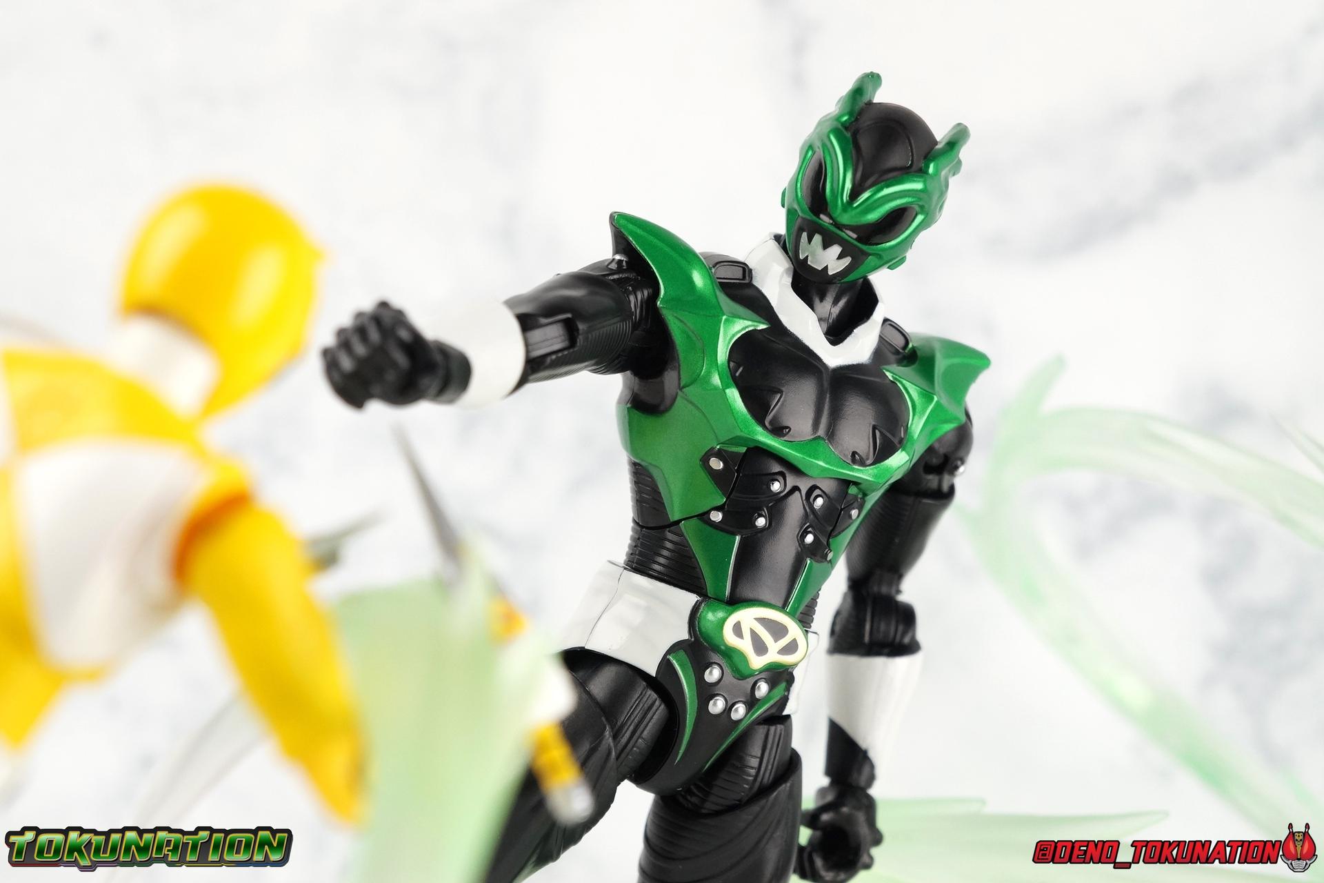 In 1969, humanity made it to the Moon for the first time, but something else had been there much longer. Dispatched to Earth's moon on a secret mission was Dark Spector's right hand lieutenant, Psycho Green! The original Psycho Ranger was meant to free Rita Repulsa, but a crash delayed his mission until the moon landing woke this mighty evil again. Detecting this threat, Alpha 5 & Zordon assembled their first team of Power Rangers! This inexperienced team would face severe casualties at the hands of Psycho Green, though they did manage to defeat him in the end. His dagger disappeared somewhere in the midst of his destruction, perhaps one day it will turn up again? Making his debut in the Legacy toyline is the SDCC 2018 Exclusive Legacy Psycho Green Ranger! In the gallery below I've done my best to recreate a number of panels from the Boom! Studios MMPR #20 issue in which Psycho Green first appeared. I don't typically buy many Legacy figures considering the S.H. Figuarts collection I have. So the Zyurangers are playing stand in for the 1969 Rangers. Enjoy! Packaging Psycho Green comes in a version of the newest and last iteration of Bandai's Legacy packaging. Specifically branded for the 25th anniversary of the franchise. Retail Legacy figures dropping right now like Psycho Red and Dino Thunder White come in extremely similar window boxes to these, albeit in a lighter color scheme. Psycho Green (and fellow exclusive Psycho Silver) are in new style boxes that also feature slip covers. Honestly it's pretty great, premium style, packaging that I wasn't expecting. The packaging features a very short bio for the character as well as some stellar artwork on the front of the slipcover. Both the modern Saban era logo as well as the original Mighty Morphin Power Rangers logo are present. That one is obviously to brand this character to the current MMPR comics it originates from. The entire presentation just really works for me and is far better than I'd have ever expected from Bandai on one of their last PR con exclusives ever. They at least deserve credit for that. Main Figure Here we are. I don't normally buy Bandai America toys anymore, most anyone can tell you that about me. But when I initially saw the announcement for the Legacy Psycho Rangers, I have to say, I got VERY excited. Power Rangers In Space is absolutely my favorite season of the franchise ever and the Psychos were great villains. Likewise, I loved Denji Sentai Megaranger and the Nezirangers are by far the best and most original evil Sentai that franchise has ever come up with. These are some rock solid villain designs that I've waited 20 years to own in some kind of figure form. No matter how I feel about Bandai America, I had to give them a shot for these characters. If you've ever handled one of the previously released Legacy figures, then you basically know what you're getting out of Psycho Green. The Psycho Ranger Mold (which will largely be unchanged across the 7 uses of it) is a pretty intricately detailed one, considering what's come before it. Most of the ranger figures we've seen in the line before have the same basic bodies, at least structurally, with a moderate degree of paint apps that close the gap on detailing. This one has far more molded in detailing than the standard. The lower legs can seem a bit plain aside from some white and green highlights, but the thighs are packed with sculpted lines that extend from the thigh across the interior joint into the waist. While articulation is fairly standard across this line, the hips do impact the waist armor from certain angles so you may lose a little variety because of that. Also I'm unsure if this defect is widespread or limited to my copy, but the knees have become incredibly squeaky and loose after just posing them for this photo shoot. So be cautious. The waist and upper body are packed with unique detailing as well as some gorgeous metallic green paint. The waist swivel is pretty free moving but also tight enough to maintain poses well. For this part of the figure I'm pretty surprised at how crisp the paint apps are actually. The belt in particular is very sharp. But honestly the whole torso looks really fantastic. It's an extremely well defined sculpt that I honestly did expect from this company. This is accentuated by that wonderful metallic paint too. Each rivet and line in the armor is executed just right, I mean look at those lines across his back! Surprisingly the ab articulation also manages to function without breaking the sculpt horribly, in a way more reminiscent of something like Marvel Legends than previous Legacy figures. The arms are mostly standard for a Legacy figure. Though I feel like they're a bit too long compared to the upper body personally. A bit more sparsely detailed than the rest of the figure, I do appreciate the accuracy of paint apps on the fists and shoulders. The only real limitation here is that the shoulder armor that extends out off the body does keep the arms from swinging up and out as much as they're designed too. Lastly, there's the head. While it does look nice, I feel this is maybe the biggest issue the figure has. The details are very soft and ill-defined. It's all there in a general sense, but the sharpness and depth have been lost somewhat. There's also a fair bit of mold flashing on the ears(?) of the head and there are a number of minor paint defects as well. I feel like it misses the mark just enough to be a detraction but not entirely detrimental to the figure as a whole. Honestly the wildest thing about this figure is that 20 years later, Osamu Abe's fantastic designs for the original 5 Nezirangers have come to life in figure form and even managed to feature a brand new take on the design in the process. This really puts some much needed perspective into the "Legacy" name of this toyline. Accessory Despite the premium exclusive nature of this figure, it has the same pitfall as practically every Legacy figure that Band