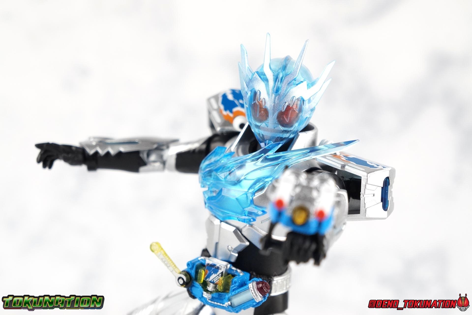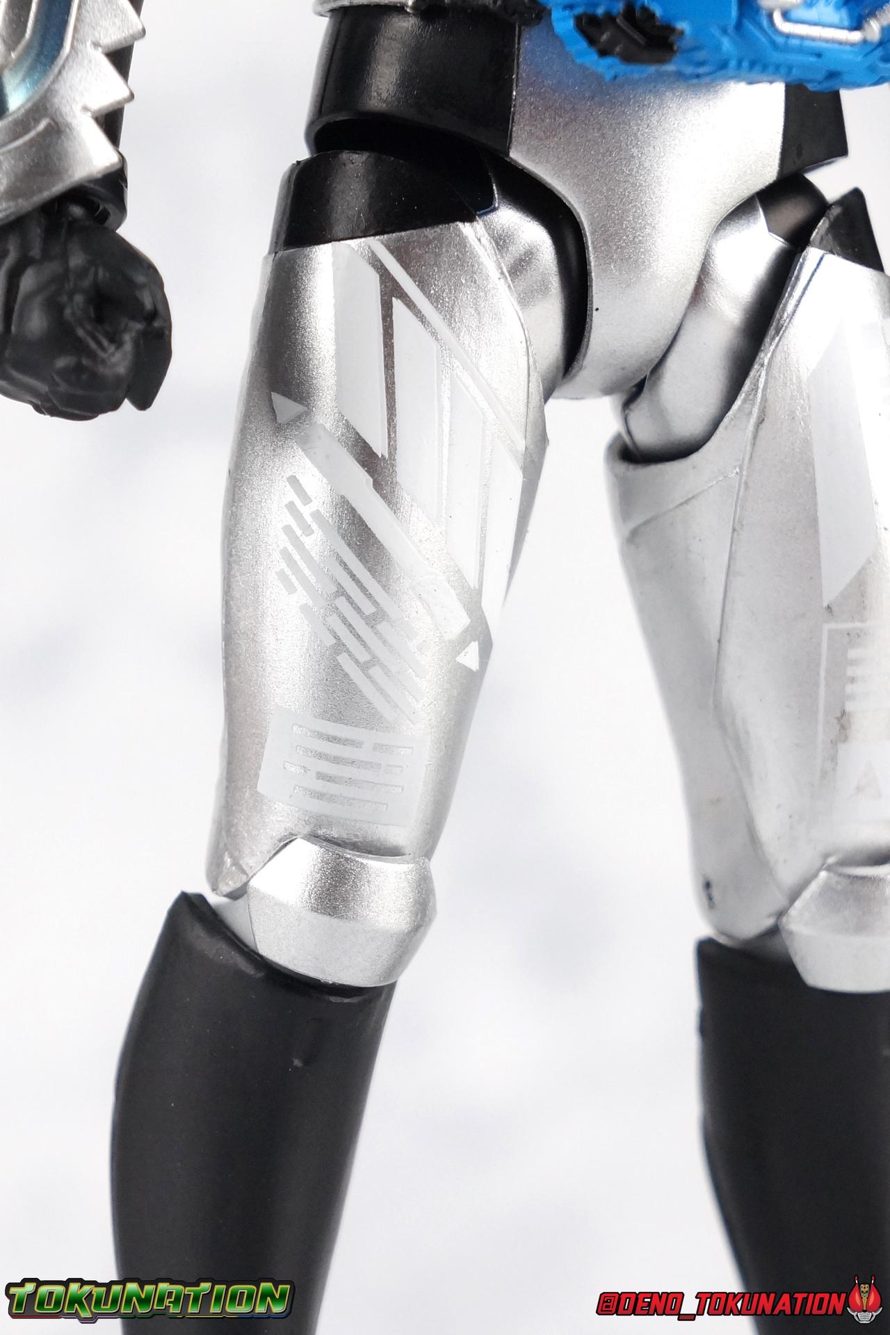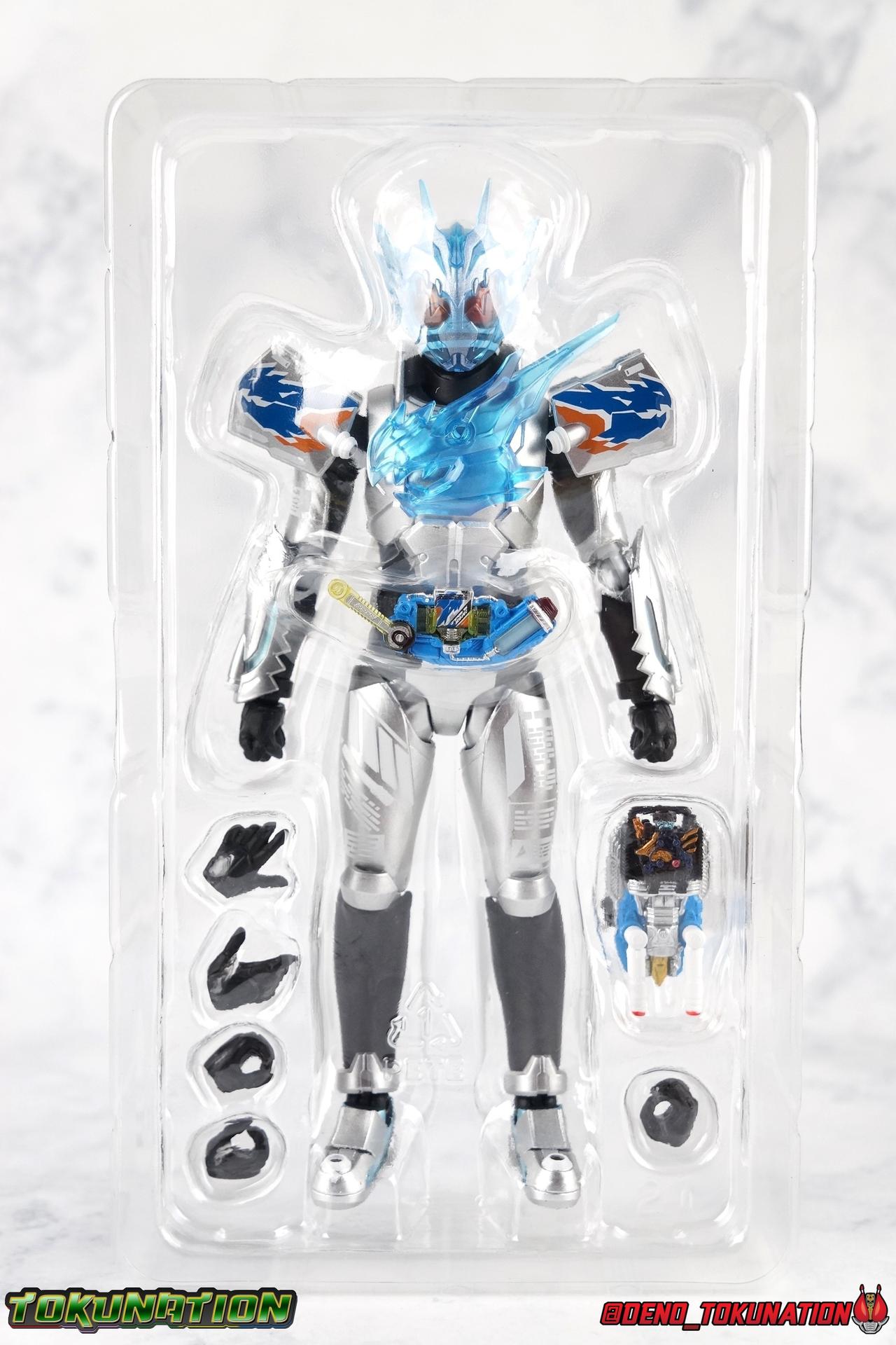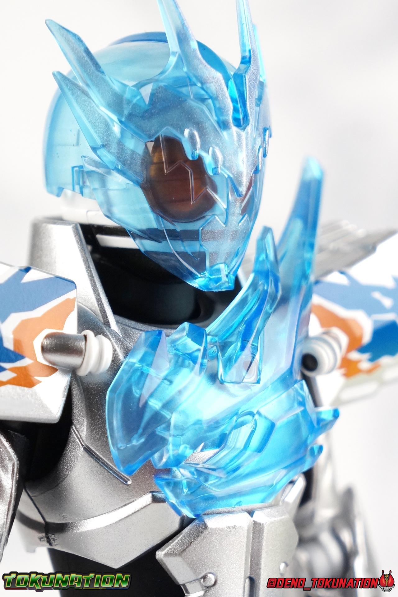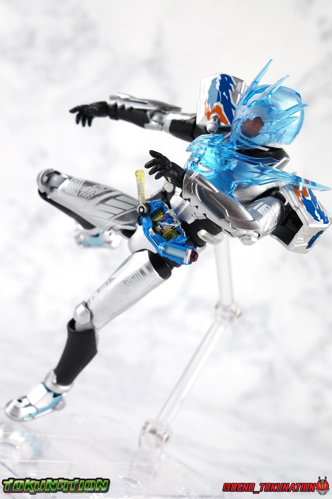With a 3 sided war for Japan's future (and the power of Pandora's Box) underway, Hokuto's own warrior Kamen Rider Grease has appeared. His arrival on the battlefield brings with it the powerful and dangerous Sclash Driver. Fueled by Sclash Jellies, this wild driver has detrimental side effects on the users' body. In Ryuga Banjou's case, his drive to find a reason to fight, to protect his friends has given him the strength to overcome these hazards. But will this power be enough? When the time comes, can the muscle headed hero face his destiny? We'll see today in our gallery of S.H. Figuarts Kamen Rider Cross-Z Charge! Packaging Charge continues the trend of two-tone boxes for Build releases despite the rather bland combination of blue & gray on it. This one's not particularly interesting honestly, but I'm not here for the box. I'm legitimately quite happy to finally have a chance to review this figure and form. Main Figure It's odd the by the time this form has finally made the crossover to figuarts, that it literally doesn't exist in the show anymore. Cross-Z Charge took over for Banjou's original Cross-Z form fairly early on. The original only having a few outings to speak of including 1 movie. But with the introduction of Cross-Z Magma, Charge was literally no longer viable. That was several months ago now. Despite this I've been excited to see how this design translated to toy form and I'm pretty happy with the results. Cross-Z Charge is pretty strikingly different when compared to Cross-Z, Magma, or Great. It's shiny silver and translucent blue color scheme really go a long way to setting it apart from Cross-Z's various evolution's. But that's pretty appropriate given the different Driver being used, the transition from Grease to Grease Blizzard is very similar. Anyways, that striking color scheme is what I'd like to touch on first. Charge is almost fully painted in a really gorgeous metallic silver. The only notable exceptions being the shins, abdomen, and translucent parts. The finish on this is really excellent, I've only noticed a few iffy spots where the application is either over sprayed or a little under applied. The legs are accented by some ice blue on the feet, and some very sharp white techy detailing on the thighs. The legs themselves feel like they have a much greater range of movement than the standard Build/Cross-Z or Night Rogue/Stalk molds. I do wish the ankles had a little more clearance, but the overall performance of the legs is nice. The waist features a brand new driver as well, the Sclash Driver! I always liked the design of this driver and felt like it's ultimately been under used. Originally billed as the "big upgrade" near the middle of the series, and certainly used to great effect by Grease, Rogue, & Cross-Z, it has been outclassed. To the point that by the oncoming series finale, only Rogue is still using it. And even then he's about to get a Build Driver based upgrade form in an upcoming DVD/V-Cinema. That's all beside the point. This driver works very well at this scale. The Wrench handle can move up and down and the include Dragon Sclash Jelly can be removed as well as inserted into the Twin Breaker weapon. The upper body has an elaborate translucent blue dragon emblem stretched across it that I'm totally in love with. In a coincidence of the suit and toy designs, the peg holding the dragon to the chest is placed where the eye is so it syncs up well enough to hide it despite the translucence. The sculpt for this part is very well defined and the blue plastic just the right opacity. The arms are pretty much standard, though the elbows are hindered a little bit by the way the forearm ends on a point. They do look quite nice thanks to that silver paint application and the white tamphographed details on the biceps. The shoulder pads have magnificent airbrushed style dragon art that would look very much at home on the side of a van I would love to drive. I love it. These big dumb shoulder do however limit some of what you can do with the upper arms, they tend to impact the chest at very strange angles, though they are surprisingly well jointed. It's imperfect but they work. Finally, the head. Made with the same glorious clear plastic as the chest. I absolutely *Love* how it turned out. I half expected the opaqueness of the plastic to be off like in the past with Meteor Storm. But I'm happy to report that it's dead on. The faceplate is sharp and well defined, while the features underneath it shine through in almost any lighting. They just nailed it on this one. Bravo. Overall this is a really excellent figure that I think excels in several areas that the first Cross-Z did not. It's not absolutely perfect, but it's turned out so much better than I ever expected too. Accessories Charge comes with a pretty balanced set of accessories: 2.5 - sets of hands. That's an open pair, one set of open fists for either holding the Sclash Driver handle or possibly the handlebars of the Machine Builder, and one left hand to hold the Twin Breaker. 1 - Twin Breaker. This dual mode weapon always looked a bit clumsy to me in the show, but I like it for the most part here. The hand meant to grip it, holds it an angle but that can help navigate around the forearm a bit. I wish it could rest flush against the arm but that wouldn't be entirely accurate. The twin breaker comes packaged in Beam Mode with the gun barrels pointed forward. You can easily transition it to Attack Mode by rotating them back and extending the golden spear point in the middle. This locks nice and snugly in place, just be careful not to scratch it. The Twin Breaker also comes equipped with the Cross-Z Dragon and Dragon Full Bottle. They can be removed and are identical to those included with standard Cross-Z. They fit very snugly into the slots of the Breaker so you'll need a little force to get it out. These slots can also accommodate any Full Bottle, or Sclash Jelly. Really that's everything this form coul