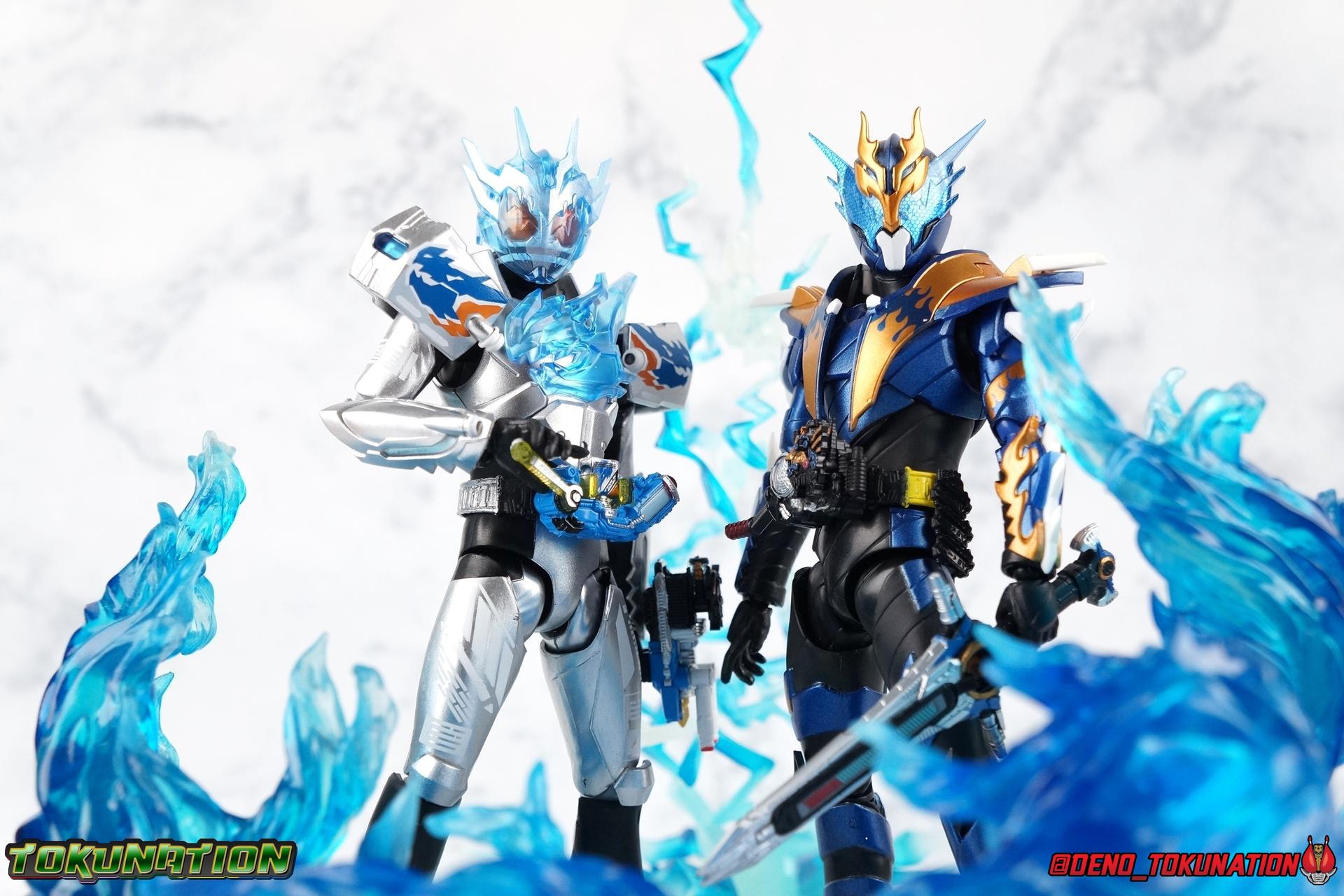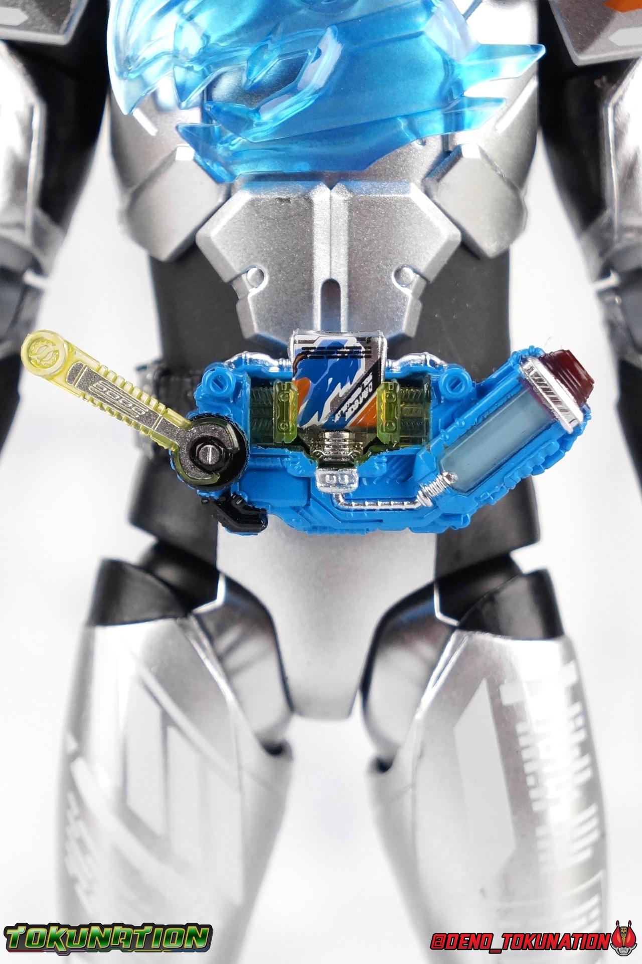 With a 3 sided war for Japan's future (and the power of Pandora's Box) underway, Hokuto's own warrior Kamen Rider Grease has appeared. His arrival on the battlefield brings with it the powerful and dangerous Sclash Driver. Fueled by Sclash Jellies, this wild driver has detrimental side effects on the users' body. In Ryuga Banjou's case, his drive to find a reason to fight, to protect his friends has given him the strength to overcome these hazards. But will this power be enough? When the time comes, can the muscle headed hero face his destiny? We'll see today in our gallery of S.H. Figuarts Kamen Rider Cross-Z Charge! Packaging Charge continues the trend of two-tone boxes for Build releases despite the rather bland combination of blue & gray on it. This one's not particularly interesting honestly, but I'm not here for the box. I'm legitimately quite happy to finally have a chance to review this figure and form. Main Figure It's odd the by the time this form has finally made the crossover to figuarts, that it literally doesn't exist in the show anymore. Cross-Z Charge took over for Banjou's original Cross-Z form fairly early on. The original only having a few outings to speak of including 1 movie. But with the introduction of Cross-Z Magma, Charge was literally no longer viable. That was several months ago now. Despite this I've been excited to see how this design translated to toy form and I'm pretty happy with the results. Cross-Z Charge is pretty strikingly different when compared to Cross-Z, Magma, or Great. It's shiny silver and translucent blue color scheme really go a long way to setting it apart from Cross-Z's various evolution's. But that's pretty appropriate given the different Driver being used, the transition from Grease to Grease Blizzard is very similar. Anyways, that striking color scheme is what I'd like to touch on first. Charge is almost fully painted in a really gorgeous metallic silver. The only notable exceptions being the shins, abdomen, and translucent parts. The finish on this is really excellent, I've only noticed a few iffy spots where the application is either over sprayed or a little under applied. The legs are accented by some ice blue on the feet, and some very sharp white techy detailing on the thighs. The legs themselves feel like they have a much greater range of movement than the standard Build/Cross-Z or Night Rogue/Stalk molds. I do wish the ankles had a little more clearance, but the overall performance of the legs is nice. The waist features a brand new driver as well, the Sclash Driver! I always liked the design of this driver and felt like it's ultimately been under used. Originally billed as the "big upgrade" near the middle of the series, and certainly used to great effect by Grease, Rogue, & Cross-Z, it has been outclassed. To the point that by the oncoming series finale, only Rogue is still using it. And even then he's about to get a Build Driver based upgrade form in an upcoming DVD/V-Cinema. That's all beside the point. This driver works very well at this scale. The Wrench handle can move up and down and the include Dragon Sclash Jelly can be removed as well as inserted into the Twin Breaker weapon. The upper body has an elaborate translucent blue dragon emblem stretched across it that I'm totally in love with. In a coincidence of the suit and toy designs, the peg holding the dragon to the chest is placed where the eye is so it syncs up well enough to hide it despite the translucence. The sculpt for this part is very well defined and the blue plastic just the right opacity. The arms are pretty much standard, though the elbows are hindered a little bit by the way the forearm ends on a point. They do look quite nice thanks to that silver paint application and the white tamphographed details on the biceps. The shoulder pads have magnificent airbrushed style dragon art that would look very much at home on the side of a van I would love to drive. I love it. These big dumb shoulder do however limit some of what you can do with the upper arms, they tend to impact the chest at very strange angles, though they are surprisingly well jointed. It's imperfect but they work. Finally, the head. Made with the same glorious clear plastic as the chest. I absolutely *Love* how it turned out. I half expected the opaqueness of the plastic to be off like in the past with Meteor Storm. But I'm happy to report that it's dead on. The faceplate is sharp and well defined, while the features underneath it shine through in almost any lighting. They just nailed it on this one. Bravo. Overall this is a really excellent figure that I think excels in several areas that the first Cross-Z did not. It's not absolutely perfect, but it's turned out so much better than I ever expected too. Accessories Charge comes with a pretty balanced set of accessories: 2.5 - sets of hands. That's an open pair, one set of open fists for either holding the Sclash Driver handle or possibly the handlebars of the Machine Builder, and one left hand to hold the Twin Breaker. 1 - Twin Breaker. This dual mode weapon always looked a bit clumsy to me in the show, but I like it for the most part here. The hand meant to grip it, holds it an angle but that can help navigate around the forearm a bit. I wish it could rest flush against the arm but that wouldn't be entirely accurate. The twin breaker comes packaged in Beam Mode with the gun barrels pointed forward. You can easily transition it to Attack Mode by rotating them back and extending the golden spear point in the middle. This locks nice and snugly in place, just be careful not to scratch it. The Twin Breaker also comes equipped with the Cross-Z Dragon and Dragon Full Bottle. They can be removed and are identical to those included with standard Cross-Z. They fit very snugly into the slots of the Breaker so you'll need a little force to get it out. These slots can also accommodate any Full Bottle, or Sclash Jelly. Really that's everything this form coul