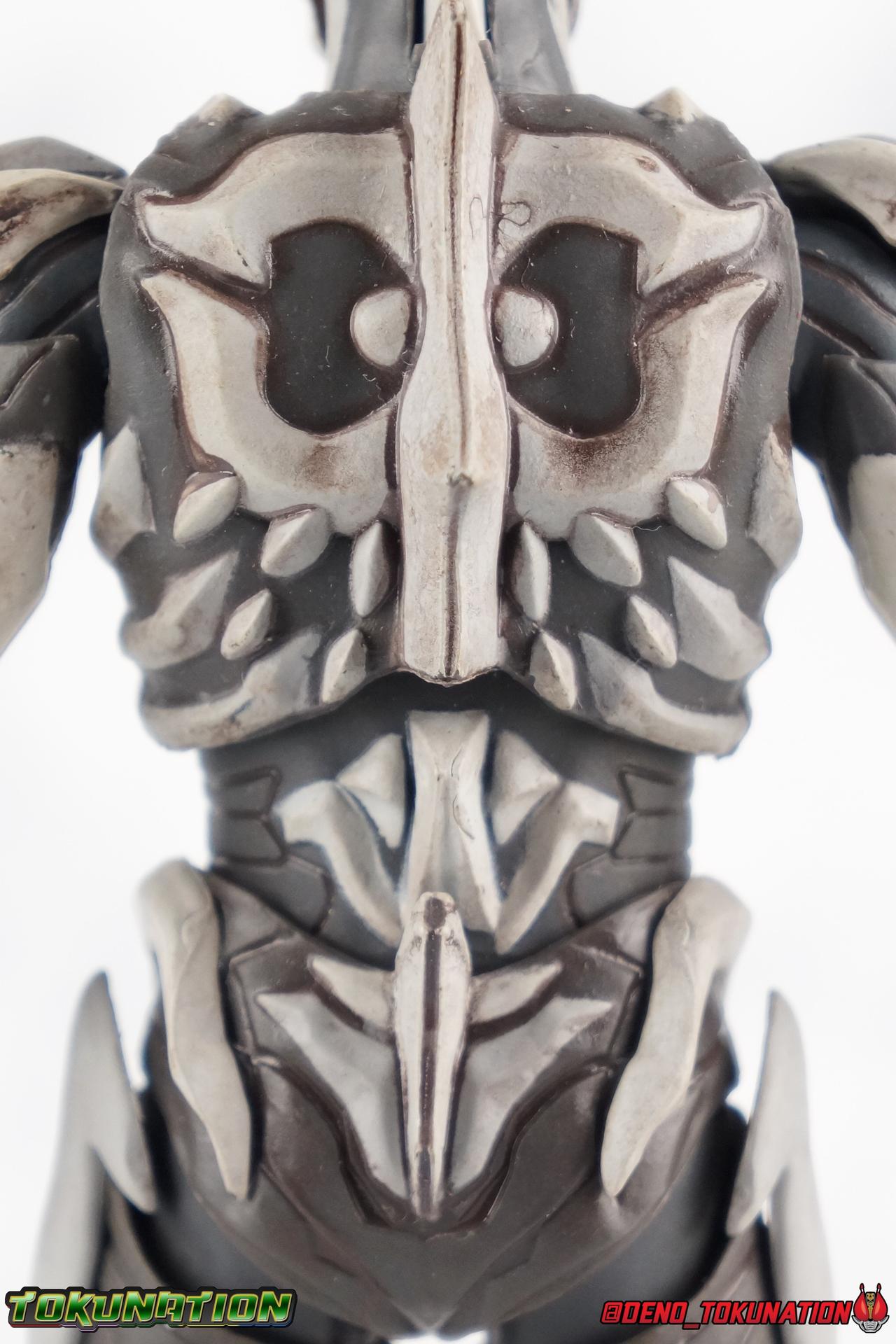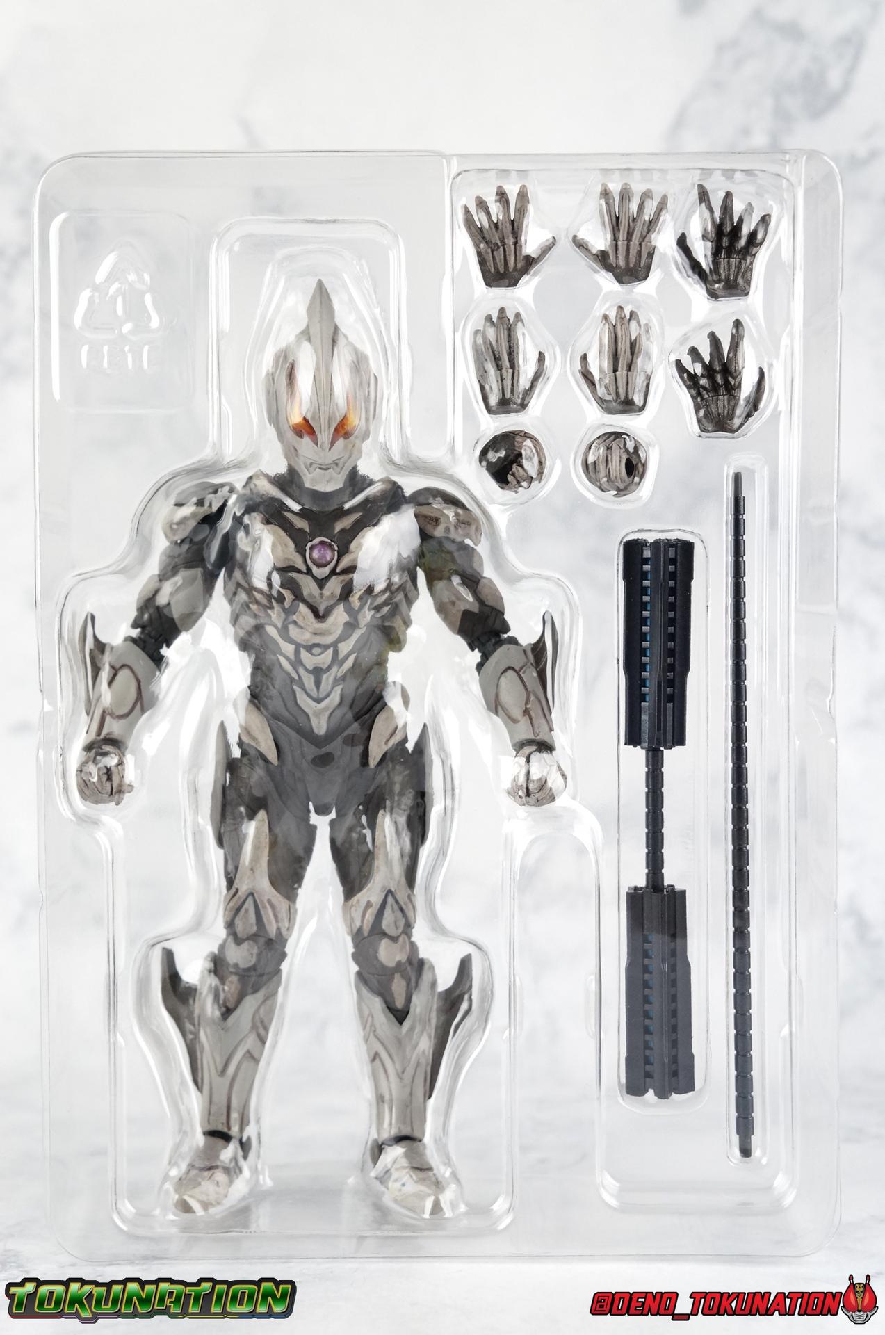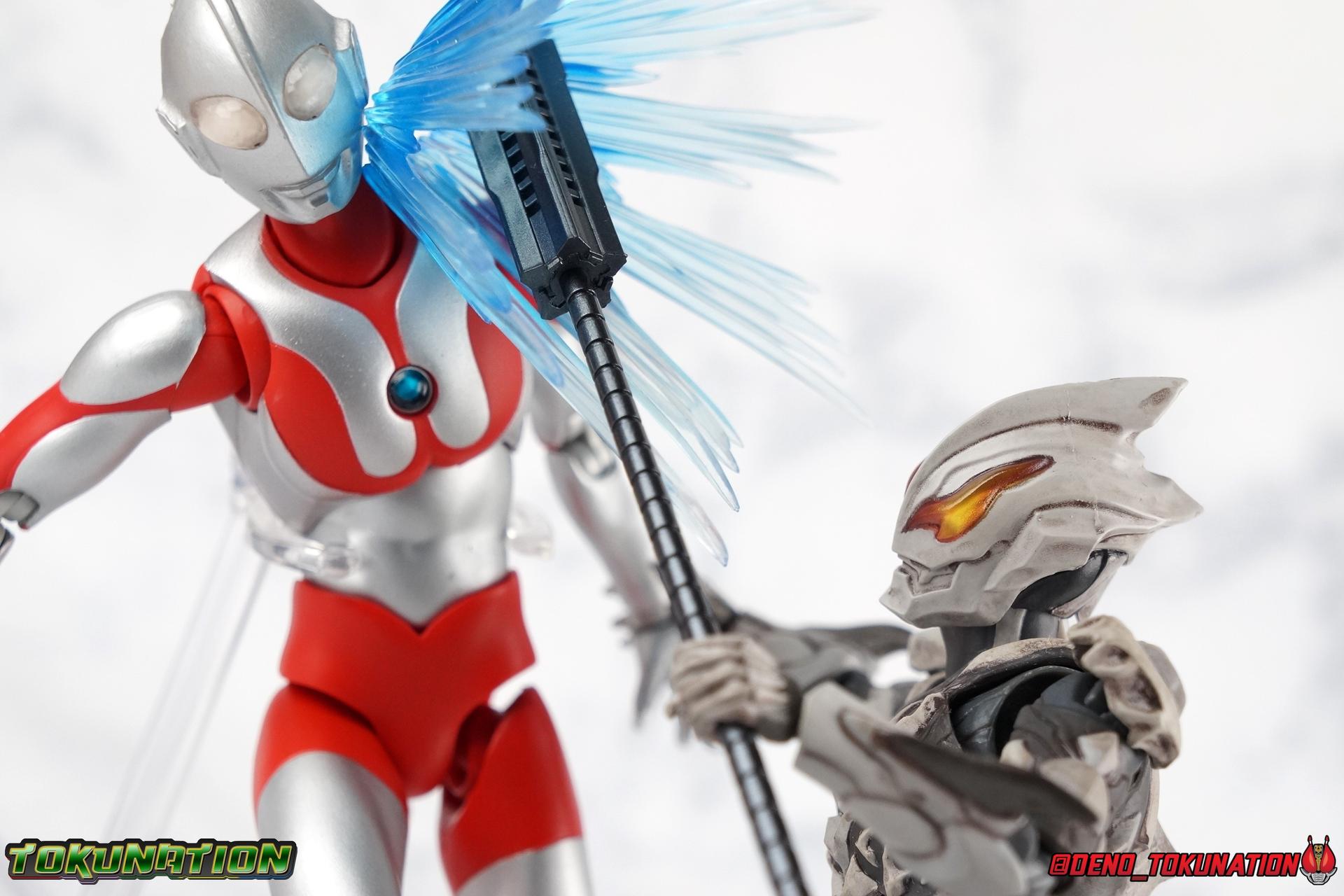 The greatest evil in this universe and all others, Ultraman Belial has risen again! Harvesting Kei Fukuide's Sturm Organs, and using the Dark Lugiel & Alien Empera Capsules, Belial attains his most powerful form ever. Powerful enough to destroy the universe for real this time, stronger than Ultraman Geed's own Royal Megamaster, Belial may finally be unstoppable. His body has obtained supreme power in our gallery of S.H. Figuarts Ultraman Belial Atrocious! Packaging Belial's packaging is just gorgeous, such a departure from the old Ultra-Act days. Belial came out in that line when plain black boxes were it. So this is radically and fantastically different. The design is elaborate, the stock photos are gorgeous, and the spine art is superb. More of this please. Main Figure Belial Atrocious is the first new collector themed figure the character has received since the original Ultra-Act Belial from 2010 & subsequent Kaiser Belial from 2011. Quite a gap for a character that I personally find to be the best villain the franchise has ever produced. Clearly Tsuburaya sees his popularity as well since Belial has made some sort of cameo or appearance as a power-up, been given a full return, or a new form numerous times in the last decade. But Atrocious is the first of Belial's myriad of forms outside his most iconic to get the Tamashii treatment. Given the general quality and design issues that many Ultra-Act suffered from, especially in the early days of Belial, I had hoped that this figure would be quite the improvement. There are some issues however. Undoubtedly Belial Atrocious is an insanely gorgeous form. A devilishly decadent design, Atrocious looks like the reanimated monster that Belial has continued to be for years. The entire suit takes it's major design cues from a skeleton, or at least a monstrous skeletal bone structure of some sort, and it honestly almost tops the original Belial design for me personally. It's a really great, imposing, and menacing form. The figure is intricately detailed, and has a dark paint wash to bring out more of the grit and grime of this form, and it does so quite nicely. Functionally however, I'm not a huge fan of this figure. This mold sadly suffers from the overly ornate design, being designed with pretty standard articulation. The ankles are standard fair and don't really have much issue with the shin parts. The knees are sadly limited to about a 90 degree angle thanks to the thickness of Belial's legs. The biggest issue with the lower body however, is the way the hips interact with the waist. Each leg has a built in thigh swivel and is attached to the interior of the waist. Frankly I don't care for the design of the hips though because it really breaks up the lower body sculpt. But these joints are also frustratingly tight and don't have enough clearance. The bone protrusions on the outer thighs are a real pain. If you aren't careful when spreading the hips out, you'll inadvertently nearly break them off as they stick right into the waist parts. You can angle the legs so that these parts go inside the waist, but that isn't the correct way for them to look, and you still can't get the full range out of the joints either. Now the upper body has issues as well. The upper and lower torso are separated in way that does doesn't draw your eye's attention. However they're also very very tight, and there isn't a ton of range in how the upper part can float around the lower. The waist connector is similarly a bit limited. This whole chunk of the body is gorgeously sculpted and painted though. In particular I LOVE Belial's back. The bone protrusions are organized in such a way that they almost look like a crude monstrous face. There's something about that design that I just love. The arms are fairly standard for an Ultraman figuart with functional elbows, wrists with pretty great clearance, and bicep swivels as well. Though these are a little too tight. The shoulder pads however are garbage, plain and simple. The hinge which holds them together is made from absolutely the flimsiest plastic possible ensuring there's no real tension holding them together. Even if you take the time to arrange them out of the way before moving the arm, the slightest nudge will send them off. Finally, that Atrocious head. I meant that in a good way! Atrocious has a magnificently malicious head sculpt. The classic Reionic/Belial eyes have never looked better than in this devilish form and generally light catches them in just the right way to make them look as though they're glowing. I still think of the original Belial as a tough design to beat, but this one certainly gets close. I just hate to say it, but the figure itself is a bit of a mixed bag. On the one hand, I absolutely love Belial as a character. But being his first figuart, I did expect better. I feel that some of the design choices were poorly thought out, while others were just poorly executed. Accessories 1 - set of Giga Battle Nizer parts. Belial's most iconic weapon, the Giga Battle Nizer has been with him since his early days. This go around, the device functions exactly the same way as the old Ultra-Act. It's packaged in it's more compact form but the staff extension is included. In fact, the sculpt of the figuart version seems nigh identical to the Ultra-Act weapon, simply downsized. 4 - sets of hands. Included are two types of open palms, one slightly more menacing, the other more of a general open stance. A pair of open fists for holding the Battle Nizer, and lastly a dark black pair of hands. This pair is meant to represent Belial Atrocious' Astros Hell Claws. They aren't quite claw-like enough for my tastes, especially given the original figure's giant poseable talons. But they work fine. I wish this figure had come with some form of energy effect to replicate any of Belial's numerous moves. Even some scaled down versions of the Battle Nizer parts the original Belial came with would have been nice. But that's reall