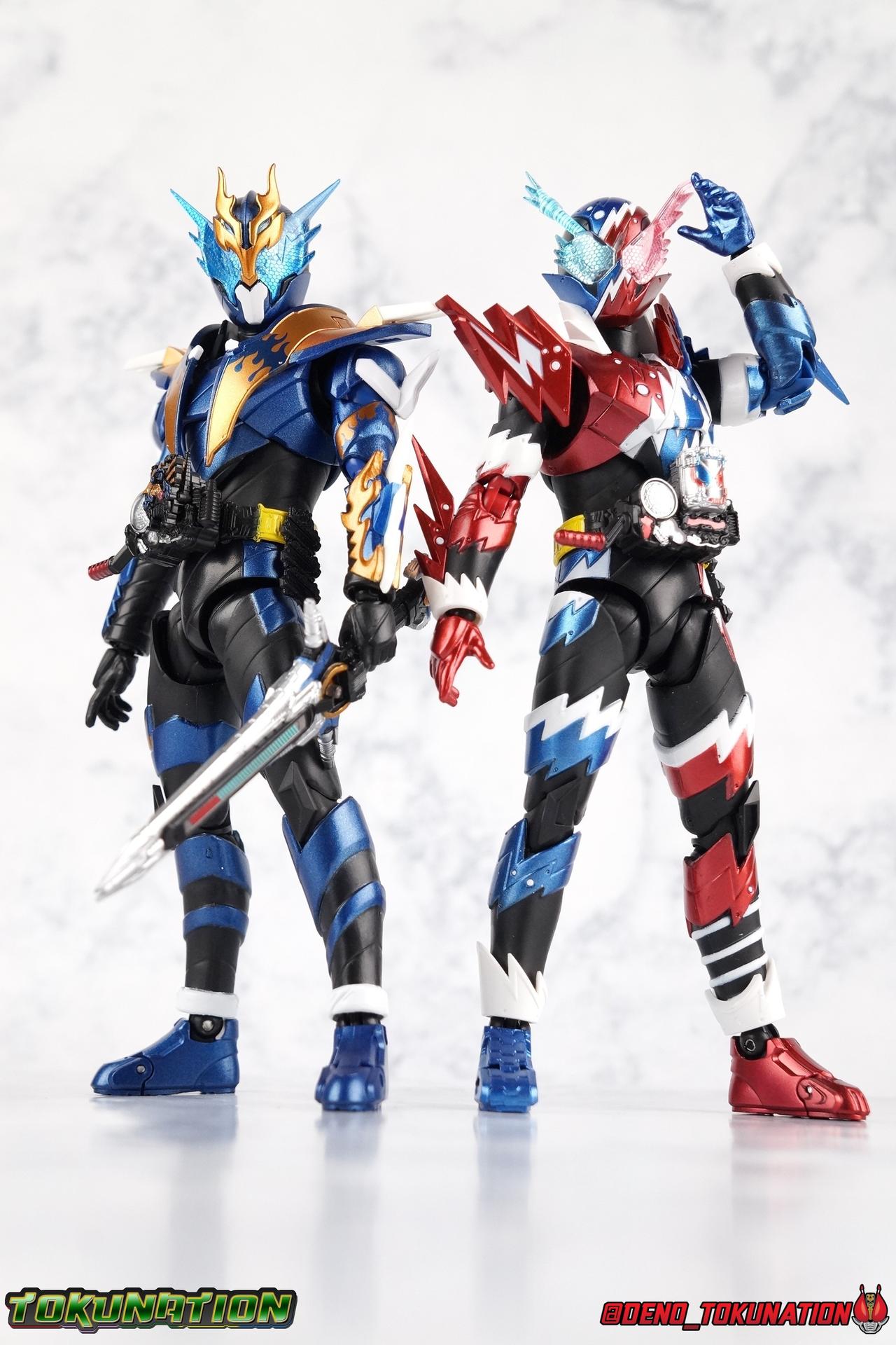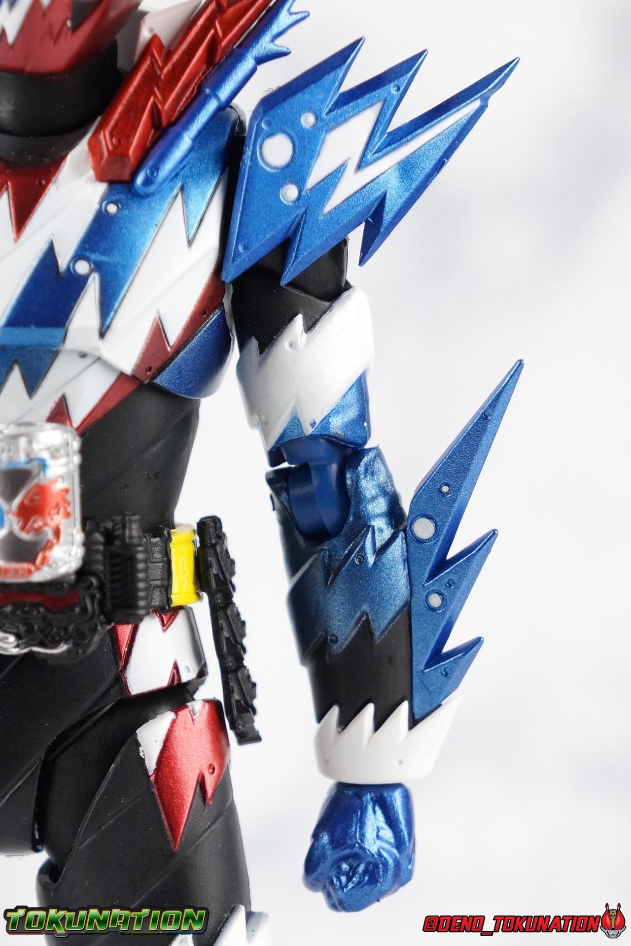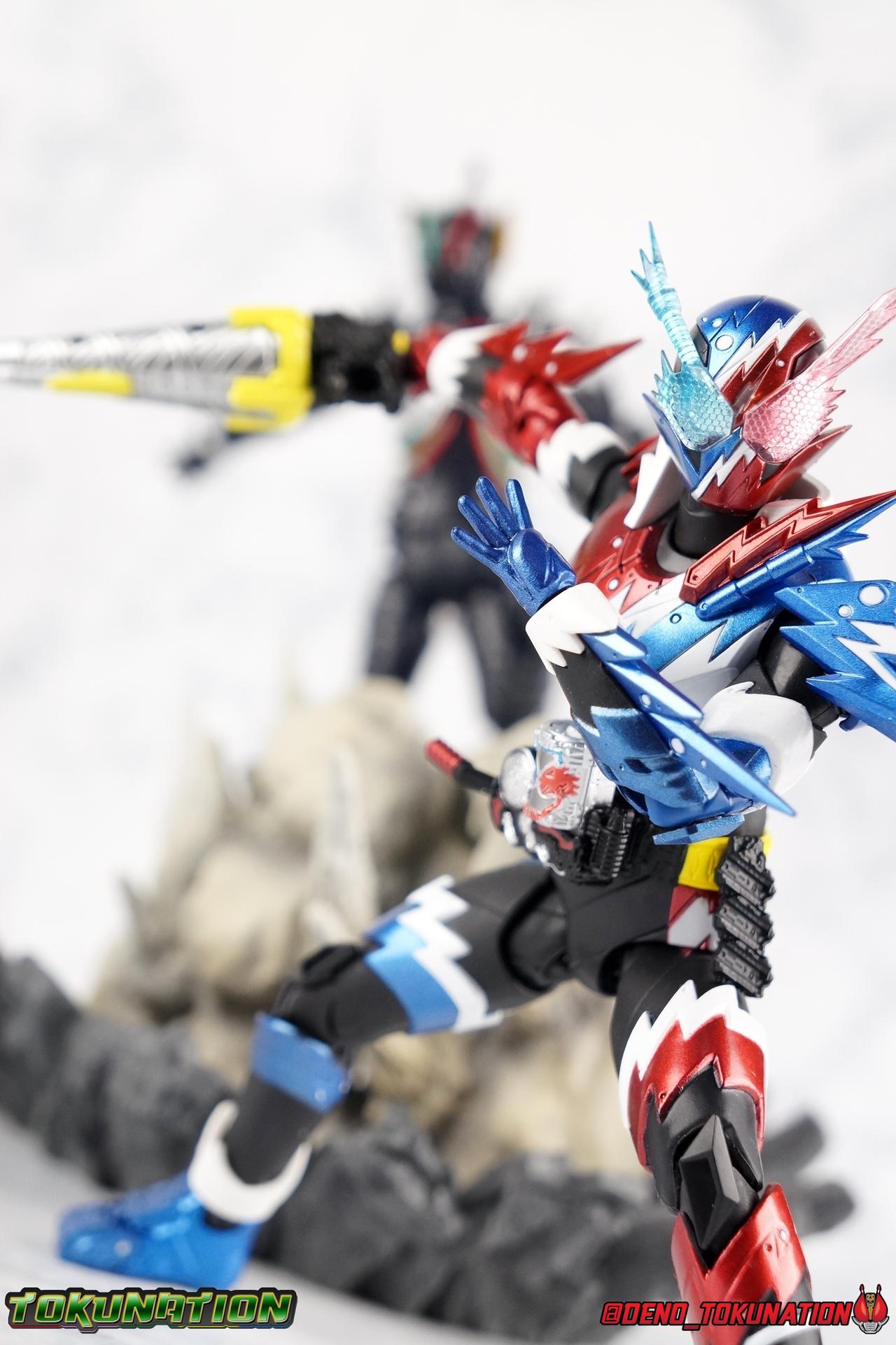 Faced with the truth about Souichi Isurugi & Blood Stalk, Sento has one last ditch plan to stop him. Distill the power of Pandora's Box into a new power up item! Now that he knows the truth about Souichi, and himself, can Sento really wield this power? Find out in our gallery of S.H. Figuarts Kamen Rider Build Rabbit Tank Sparkling Form! Packaging Sparkling continues the trend of two-tone boxes for Build releases and much like the solid color Ex-Aid boxes, this style has gotten a bit stale rather quickly. Honestly it's not terribly important to me how boxes look anymore anyway. Main Figure Build Sparkling builds (HA HA HA) off of what we've seen from the line already, and I mean that literally. The main Build mold has only made 2 outings in the line so far as Rabbit/Tank and modified as Cross-Z. Sparkling sees it for a third time. If you've had experience with either of those releases then you know all the essentials of this mold and what it can do. Here's a brief refresher. With the lower body, the legs are largely identical to Build aside from the new electrical white strips. Like Cross-Z, Sparkling seems to have some tolerance issues with the legs. The knees creak on mine the same way Cross-Z's hips did. The hips are quite tight as well. So just be careful handling him, it seems like a recipe for disaster. Apply heat and shock oil where necessary. For articuation, these legs function identically to the last two uses of the mold. The Build Driver is once again carried over and identical to it's previous outings. The new feature here is of course the Rabbit Tank Sparkling Full Bottle which is modeled on a typical can of soda. The Bottle is removable, there's no functionality to it though, the pegs can't recede into the can form like the DX toy. Weirdly, because of the way it's designed to slot into the holes on the Driver, it can also fit nicely into the Bottle holster on the hip. For the upper body, the primary change is the new electrical burst pattern that stretches over the chest and up to the left shoulder. You can see the original diagonal lines from base Build's chest under the paint but the new sculpted detail obscures that somewhat. It's basically the same chest, just with these new details and paint on top. I also really dig thew little electric additions to the rabbit/tank protrusions on the shoulder. A new collar part has been added around the neck as well, continuing the electrical theme. With the arms we again see what are essentially identical parts to base Build just with new detailing, each forearm also now has a new protrusion on top of the detailing. The biggest change comes in the new shoulder pads which can look a little awkward depending on the angle you move them to. I tended to pop them off by accident a number of time while shooting this gallery. While keeping in line with the original Build's theme, Sparkling's head is by the far the best new addition. It's very much the super powered version of the Rabbit/Tank head, right down to the new electrified look of the compound eyes. I gotta say Sparkling has never been a favorite form of mine, but this head sells it so hard. It's just spot on. The new collar around the neck can get in the way of posing the head somewhat, but that's about the only drawback. Quite often, people have made the joke of "Sparkling is Pepsiman" which totally makes sense given this form's color scheme. I took that a bit further with some bonus shots attached in the second post. I hope you enjoy Target: Pepsi Prime! Accessories Sadly, Sparkling follows the standard Rabbit/Tank form's lead and comes with minimal accessories: 10 - additional hands. Weirdly not all in matching pairs either. 3 left hands, and 7 right hands of various posers. Which include multiple to hold weapons he doesn't actually come with and ride a motorcycle that was a previous web exclusive and included said weapons. The hand variety is fantastic. Honestly, I wish regular Rabbit/Tank had come this sort of variety. But these go a long way to helping Sparkilng feel like it has more than it does since it can utilize things from the rest of the line. If you're like me and had already picked up Machine Builder with the parts set then this figure is a perfect compliment. If not, then you'll likely be quite disappointed with the accessory selection here. Final thoughts Overall this is a really solid remold of a base figure that I quite like. I didn't really expect to like Sparkling that much, but it's succeeded in being a really great little addition to my Build collection. I usually tend to go completionist on shows I love and I'm really happy I did in this case. Build Sparkling Form is a really unexpectedly fun addition to any Build collection.