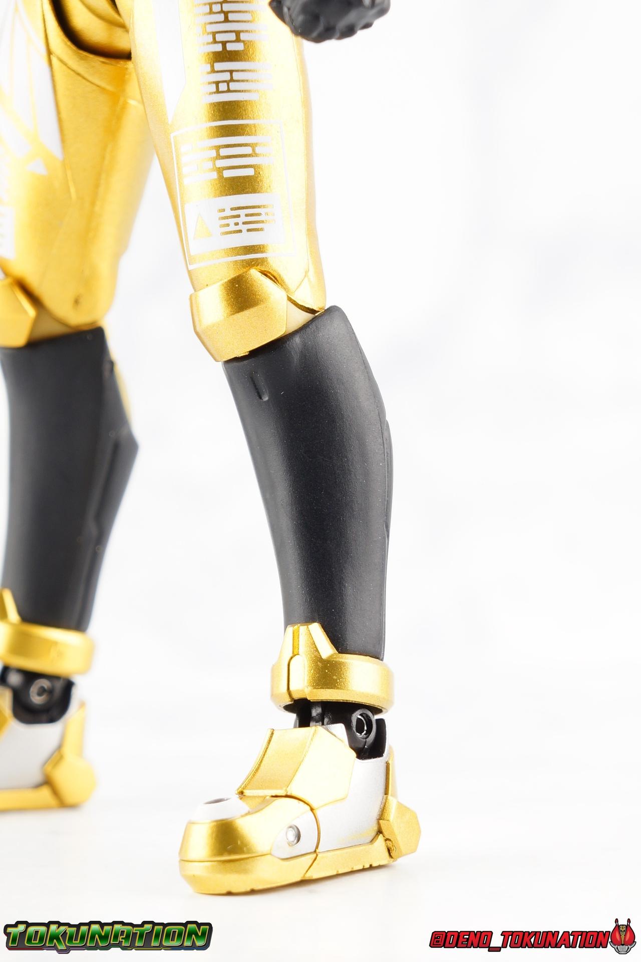 Kazumi Sawatari, was a humble farmer once. But the 3 sided war to unite or conquer Japan would change his destiny. At one time a foil to Sento Kiryu and his friends, Kazumi would come to find his greatest allies in this cobbled together cafe' crew. As Kamen Rider Grease, Kazumi would help defend Japan from the threats of industrialist Juzaburo Nanba, cybernetic aide turned insane rider Utsumi Nariaki, and the alien evil of Evolt. Driver in hand, Kazumi sacrificed everything to be a hero and stand up for those he lost, and those he loved. It's no wonder that the first collector figure of his rider form is already selling for huge markups now. Today's gallery will be a focus on S.H. Figuarts Kamen Rider Grease! Packaging As with previous Build releases, Grease has a bit of a two-tone package, themed on the "best match" aspect of the series. With Grease of course he only uses a Sclash Jelly to transform, so the two tones used are gold and brown. Not a lot of gradation between the two. So the box looks a bit boring, but does have some great stock photos adorning it. Main Figure Grease shares much of his body's basic tooling with the previously released Cross-Z Charge. While there are undeniable cosmetic differences, particularly in the upper body, if you've handled Charge. You can expect much of the same from Grease. The striking color scheme is what I'd like to touch on first. Grease is almost fully painted in a really gorgeous metallic gold. The only notable exceptions being the shins, abdomen and some of the hips, and of course the translucent parts. The finish on this is really excellent, I've only noticed a few iffy spots where the application is either over sprayed or a little under applied. The legs are accented by some silver applications on the feet, and some very sharp white techy detailing on the thighs. In fact this is all identical paint application and placement to Charge. The legs still feel like they have a much greater range of movement than the standard Build/Cross-Z or Night Rogue/Stalk molds. I do wish the ankles had a little more clearance, but the overall performance of the legs is nice. The waist features a brand new driver as well, the [B]Sclash Driver.[B] I always really dug this driver even if it was ultimately underused and completely replaced. Originally billed as the "big upgrade" near the middle of the series, and certainly used to great effect by Grease, Rogue, & Cross-Z Charge, it has been outclassed. To the point that by the series finale, only Rogue was still using it and even now, he's about to get a Build Driver based upgrade "Prime Rogue" in an upcoming DVD/V-Cinema. That's all beside the point. This driver works very well at this scale. The Wrench handle can move up and down and the included Robot Sclash Jelly can be removed as well as inserted into the Twin Breaker weapon. The upper body has an elaborate translucent black robot/mechanical design stretched across it that I really dig. The sculpt for this part is very well defined and the black plastic just the right opacity. The arms are pretty much standard, though the elbows aren't hindered in the same way as Charge. They do look quite nice thanks to that gold paint application and the white tamphographed details on the biceps. The shoulder pads have fantastic airbrushed style Robot art that would look very much at home on the side of a van I would love to drive. And these are on brand shoulders, totally different from Charge's. The pads on the shoulders can fully rotate to recreate Grease's rider kick. The forearms have been similarly remolded, though these parts make resting the Twin Breaker against the arm even more difficult than on Charge. Finally, the head, which is made with the same clear plastic as the chest. I really love how well the effect turned out on Charge, and the opacity of the helmet here is just spot on as well. The faceplate is sharp and well defined, while the features underneath it shine through in almost any lighting. There are very minor gray paint details on the face that draw out just a bit more detail as well. As with Charge, I really feel like they nailed it on this one. Overall this is another really great figure that while absolutely not perfect, is absolutely something of a must own for fans. Accessories Kazumi comes with everything he could really need: 4.5 - sets of hands. 1 left hand specifically meant for holding the Twin Breaker, 1 of each for holding Full Bottles, bike handlebars etc, and one pair of open palms for action poses. 1 - Twin Breaker. A straight repack of the one that came with Cross-Z Charge. This dual mode weapon always looked a bit clumsy to me in the show, but I like it for the most part here. The hand meant to grip it, holds it an angle but that can help navigate around the forearm a bit. I wish it could rest flush against the arm but that wouldn't be entirely accurate. The twin breaker comes packaged in Beam Mode with the gun barrels pointed forward. You can easily transition it to Attack Mode by rotating them back and extending the golden spear point in the middle. This locks nice and snugly in place, just be careful not to scratch it. It can accommodate two Full Bottles are Sclash Jellies as needed. 1 - Robot Full Bottle. Mine is molded a little crooked so it can't stand straight up but the real point of it is to interact with the Sclash Driver, Twin Breaker, or any other Full Bottle compatible device. 1 - Phoenix Full Bottle. Molded better than my Robot one, you can see the above for it's uses. Just be careful when trying to exchange any of these items. They are tiny and easy to lose and quite easy to scratch as well. I'm almost a little surprised that Grease doesn't included two Twin Breakers for the Double mode he gets when using the Dragon Sclash Jelly. Another item which could have been easily repacked here. But that's not Bandai's MO with this kind of stuff. Were it not cost prohibitive I'd actually pick up another Cross-Z Charge or Grease
