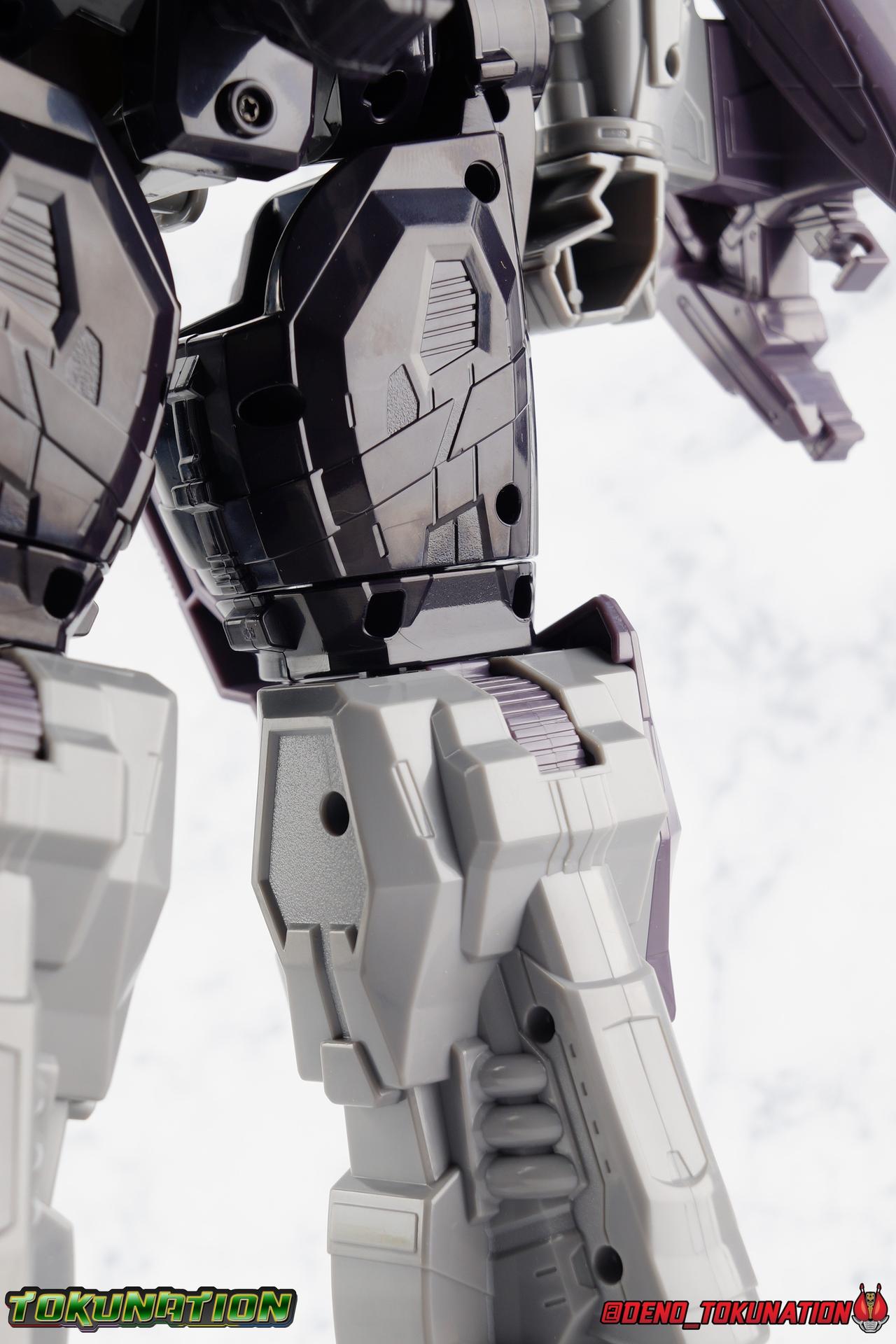 The massive mecha known as the Time Mazine is the last line of defense between the rebels of 2068 & the dark overlord Oma Zi-O. These mass produced defenders have even been known to be used by the Time Jackers... Sougo Tokiwa was given access to one thanks to Tsukuyomi travelling back in time from this bleak future. A means of travel to the eras of the legendary riders that preceded him, Sougo as the present day Kamen Rider Zi-O will gain the powers of the past to save (or dominate) the future! Packaging My favorite thing about DX packaging, toys which I don't handle much these days, is just how wacky and busy it tends to be. Tons of stock photos of various uses for whatever the item is, catch phrases, call outs, and character quotes from the show. There's just a lot going on, and I really like it. But by far the funniest thing about the box is the way it portrays Time Mazine on the back. It looks like a giant robot trying to squeeze it's legs together to hold in a poo frankly. Though, the toy itself tends to look like this in hand a little as well.... In box Time Mazine is all fully assembled, the only packed in separate part being the DX Ride Watch/ Main Figure Oddly enough, the Time Mazine is my first opportunity to handle merchandise from Zi-O. The Rider Kicks Figure line was a total turn off to me once I found out about the size. Figure's that small just have no place in my collection, so even with the armor gimmick, they weren't ever gonna sell me on that. But a giant robot, that turns into a flying time machine, and can swap out faces for Ride Watches? Yeah, I'm down for that. Time Mazine by the way, is a play on words. It's a combination of the english term Time Machine, and the Japanese word Majin/魔神, which means malevolent or demonic god. The "j" works it's way into the new word as a "z" sound. It's a fun play on words I can get behind. Now to start with the figure, this is a big boy. The Mazine will dwarf quite a few of the riders and other various robots in your collection. I included some group images below to show off the scale of this thing, and it's impressive. The Mazine is in it's Robo Mode straight out of the box, and while not perfect, there's a decent amount of articulation in this thing. Some of it isn't very useful, or in fact at all, but as you can see in the images you actually can get some use out of them. Time Mazine has ratcheting hips that can move forward and back by a couple clicks, though they have no outward movement. The thighs feature a pretty strong swivel joint to angle the legs out. The knees bend back to about a 90 degree angle as well. However the feet don't move at all. So while you can get the lower body into some cool poses, many aren't sustainable because the feet can't reach a stable position and the hips can't angle outward at all. The upper body articulation is limited to the head and arms. The arms feature fully rotating (closed) fists, a pretty great elbow bend that incorporates a swivel, and butterfly type shoulder joints. These shoulders work like this because of the Vehicle Mode transformation joints built into them. They can be pushed forward until the arms come parallel to one another and they angle very far up and out as well. Sentai Robos ain't got nothing on this big guy! The chest actually opens up as well. Grab the chest panel just below the face and pull down to reveal a cockpit scaled for Rider Kicks Figures! As I mentioned above, the RKF scale doesn't work for my collection at all, so I didn't have any on hand for the shoot. But some figuarts do tend to work decently well at this scale. The cockpit actually has some little arms that would hold an RKF in place, while the bottom is open ended so the rider's legs can go down into the Mazine's legs. I'm happy to see it scale this way even if it's not quite up to par with the show's portrayal of the cockpit. Time Mazine can also equip weapons from the RKF armors on it's arms, though again, I don't have any to demonstrate that with. The head also has some minor articulation in that it can swivel side to side. The head is in fact a dummy Zi-O Ride Watch. It's actually a hollow on the backside lookalike for the real deal Zi-O watch. It sets a bit further into the head than a proper DX Ride Watch would, plugging directly into the rectangular slot. Luckily DX Ride Watches fit just fine in there, any DX Gashapon or etc Ride Watch will. Literally any of them. The Mazine comes with the DX OOO TaToBa Combo Ride Watch as well, one which looks pretty cool as the head. I also had on hand the DX Den-O Sword Form & Wizard Flame Style Ride Watches during this shoot, so those are shown in the photos as well. Just don't mistake them for coming with Time Mazine. It only comes with the DX OOO watch and the dummy Zi-O watch. Time Mazine of course also has a Vehicle Mode. Though I would *very* generously consider this thing a "vehicle". It's a simple process to transform. Remove any Ride Watch attached, even the dummy one, push the shoulders fully forward, fold the shoulder armor flaps in and tab it together. Then rotate the arms around and tab them together, the whole assembly then rotates back flush to the panel where a Ride Watch would normally go. The final step is sadly the point where I realized they just gave up trying to do something meaningful with this toy. You just slightly bend the knees back so the knee armor/skis are flat on the ground. There you have this "vehicle". I really sincerely hope there's some other big DX vehicle coming that could combine with this thing because that's a pretty silly and useless vehicle mode. Accessories 1 - DX OOO TaToBa Combo Ride Watch. As mentioned above this is the full DX watch. Just pull the plastic tab out of the side to free up the batteries and start making some noise! The face of the watch of course rotates from the year to reveal the rider's full face. Gashapon watches rotate, but not in a way that reveals the face. It would have been nice to ge
