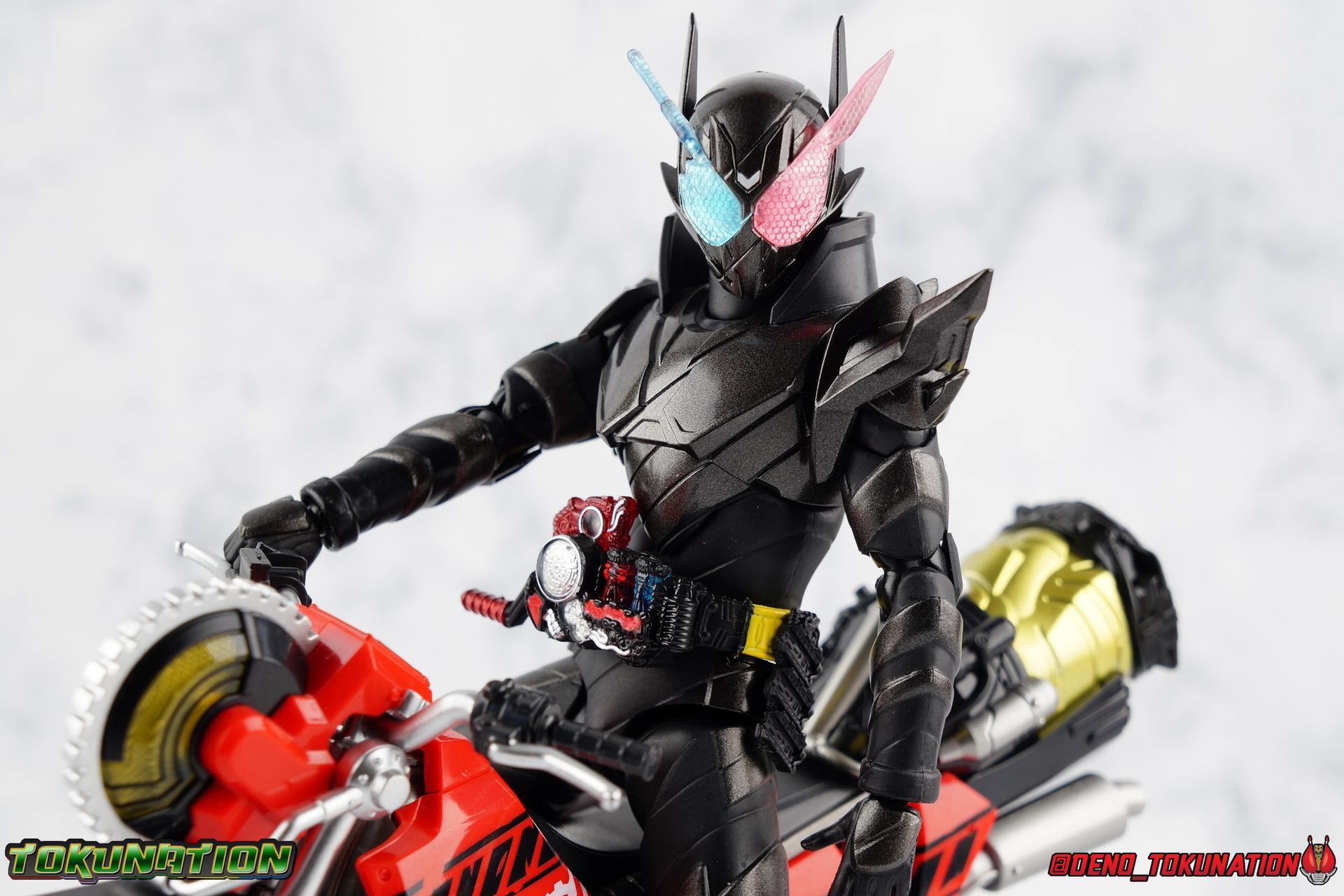 For the 2nd year in a row, Tamashii Nations has seriously delivered on their event exclusives. Cashing in with the extremely popular 2017 exclusive GenM Level 2 was clearly the correct move based on the value it still retains. And riding this years wave of popularity with Kamen Rider Build, Tamashii has made a similarly intelligent choice for their big exclusive. Unable to stave off new enemies and out of options, Sento sought help from his greatest enemy. The man known to our heroes as Souichi Isurugi would eventually reveal himself as the extra terrestrial threat, Evolt. But early on, he would torment and aide our heroes as it benefited his schemes under the guise of Blood Stalk. One of the most significant, and consequential, actions he undertook in these earlier days was giving Sento the Hazard Trigger. A weapon of incredible power, they couldn't possibly have known at the time it's dark origins, or what it was really based upon. Using this mighty power up, Build is able to achieve a dangerous new form, the black hazard, Kamen Rider Build Rabbit Tank Hazard Form! For better or worse Sento had to rely on this power, particularly and regrettably in his battles with Grease & the Hokuto Three. Packaging Following the recent trend of Tamashii Nations fall event exclusives, Hazard comes in a particularly gorgeous new slip cover box. Like GenM Level 2 last year, the slip cover was produced exclusively for the event release of the figure, while the later 2nd run being sold through the Tamashii Web Shop will not feature it. This slip features the event logos as well as a stunning shot of Hazard in blue flame on the back. The interior box is identical to what the Web release will be, but it does look so very nice. It's honestly hard for anything featuring this gorgeous form to look bad. Main Figure I know plenty of people like to link final forms to having detrimental side effects on their users, and there's some evidence to support that in the 1st half of the Heisei Era. Blade King Form is often cited. But I've never really considered that a benchmark for what makes a final form. To me, the more often dangerous forms are those that come close to final forms. The in-betweens, the new and experimental, the untamed powers, ones that require the hero to hone their skills to control. Dexterity gained using such forms prepares them for the final power to come. OOO PuToTyra is a great example of this. I do not consider this to be OOO final form no matter what some say. (It's Super TaToBa k?) In this zone of powerful and dangerous but not quite final are forms like Agito Burning, Kuuga Ultimate (again Rising Ultimate is the final, I will die on this hill), W Fang Joker, OOO PuToTyra, Wizard All Dragon, Drive Type's Dead Heat & Formula, etc. So Build Hazard Form fits right into that quarter to middle of series astronomically dangerous power-up category. But where does the figure fit in? For better or worse, Build Hazard is almost entirely a repaint of the standard Rabbit/Tank figuart. There are some newly mold parts, but it's a very similar release, as many figure's in this sub line have been. If you're familiar with one of them, you're likely familiar with several of them. The biggest difference here, is Hazard's tendency towards uniformity. Where many Build designs have asymmetrical elements to them, Hazard limits this mainly to the head. For now though, with the lower body the legs are largely identical to the original, aside from the absence of the rabbit "spring". Molded identically now, and painted in alternating shades of black, they look very sleek. The base of the body and legs in this case is a matte black, while the raised surfaces on the legs are more of a shiny speckled gray, which I really dig. It helps bring out detail that would otherwise not be as evident. For articulation, these legs function identically to the last three uses of the mold. The only limitations being some upward hip movement, and less than perfect knee bends. The Build Driver is once again carried over from previous outings. The new feature here is of course the addition of the new Hazard Trigger. The last several uses of the Build Driver do not actually have an open slot for the Trigger to be used, so it's molded into this one. If it is removable, well mine's in there quite tightly. The driver also features the same Rabbit & Tank Full Bottles seen on the first Build, though with slightly better paint apps. As always these bottles can be slotted into the left side hip mounted holster. For the upper body, we again see a new symmetrical component, the breast plate. While I love the interesting way the two-tone, uniquely molded halves of the chest normally are, this new uniform design adds some menace and power to the design, and draws your eyes to the center of the design as well. Interestingly the plate across the abs, is hinged to move up and out as necessary to get away from the Driver. The neckline also features a dramatic collar that accents the head really nicely and adds some fantastic artificial bulk and depth to the upper body. Color wise we see the base body in matte black, while armor and raised surfaced use that same nicely speckled black as the lower body. With the arms we again see what are essentially identical parts to the basic Build, Articulation works out the same for the most part. The only significant change are the new shoulder pads. The harsh and pointed design of these new shoulders adds to the overall menacing and powerful look of this figure. In a natural flow of design, they look like they're growing out of the new chest plate, and man I just really love them. Functionally they do hurt how much upward and outward movement there is in the shoulder. But they're no more worse than say Cross-Z Charge or say Blood Stalk's shoulders. The only true bit of asymmetry to this design is of course the head. This is a really striking and intense design that sets this form apart from all of Build's other to