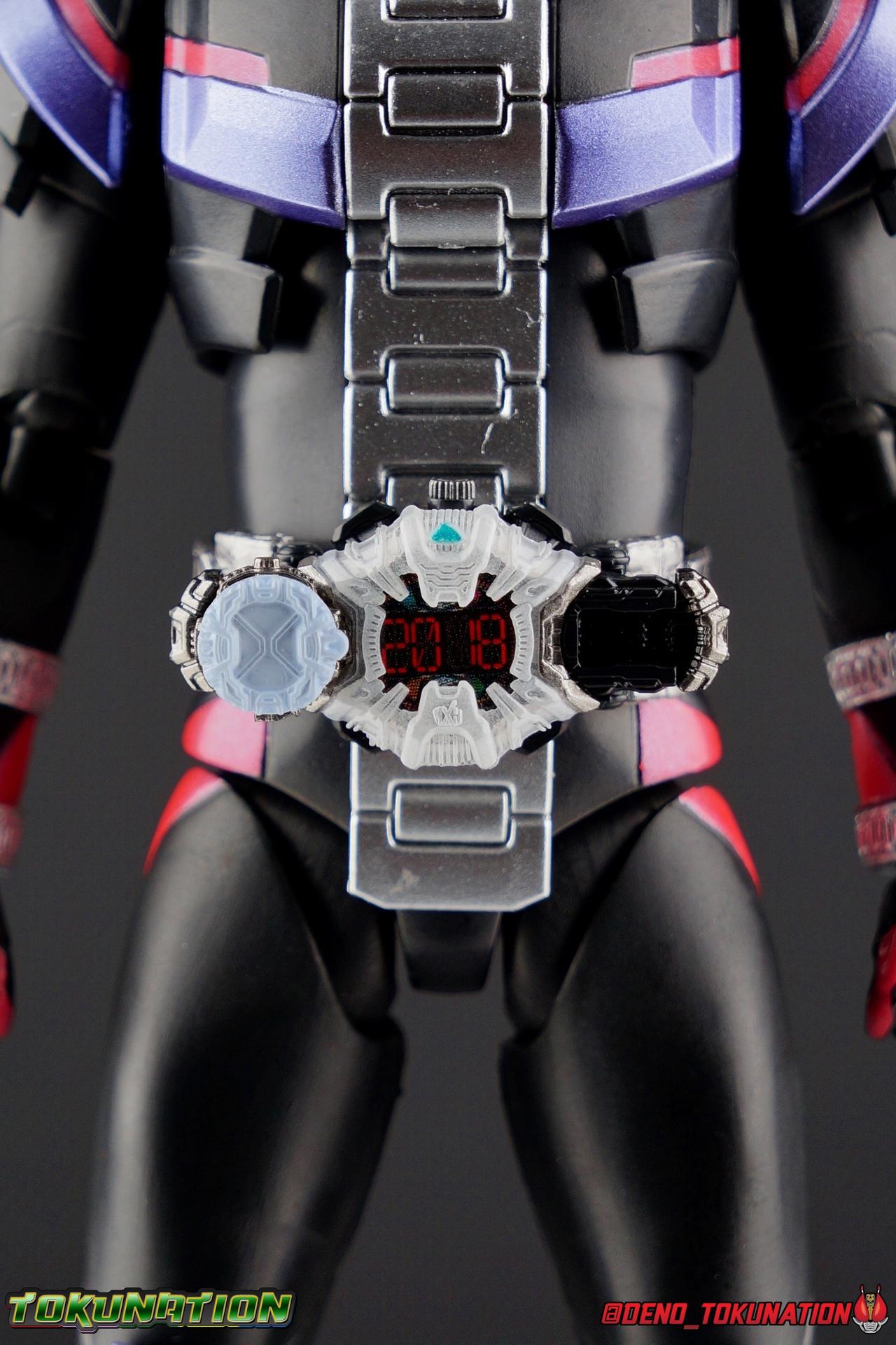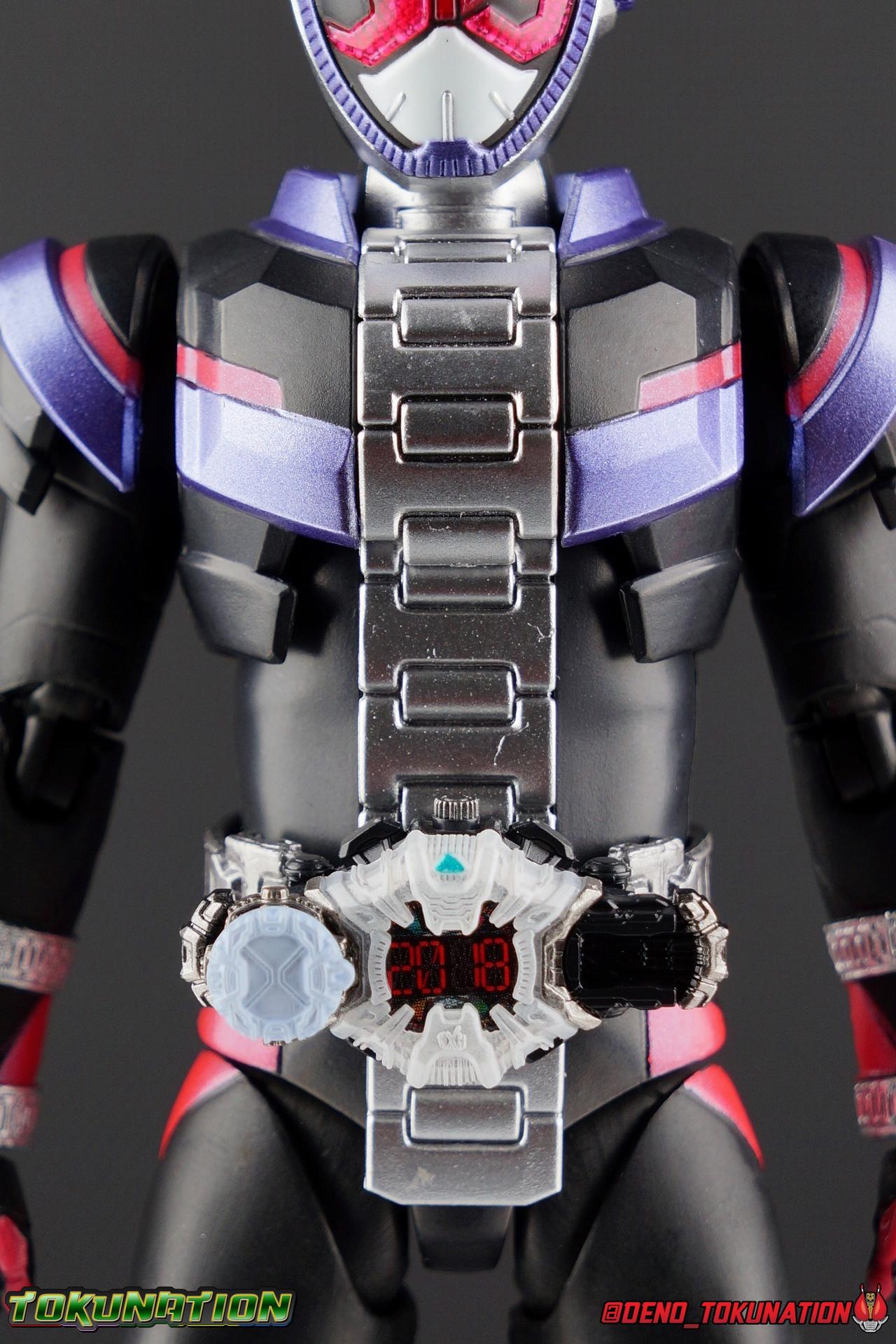 Since he was a child, Sougo Tokiwa dreamed of being a great king. Little did he know his dreams were prophetic. Should they ever come to pass, they could create a desolate future, one where Sougo became the evil overlord of time Oma Zi-O! In the present, Sougo begins his journey down the path of the overlord, defeating Another Riders as Kamen Rider Zi-O! With the Day of Oma swiftly approaching, will Zi-O become the future he's determined to avoid? Will all riders fall to the lord of time and space? Or will Geiz, the Time Jackers, Kamen Rider Woz, or even the destroyer of worlds Kamen Rider Decade, manage to contain his power? Time, will tell.... Packaging Zi-O's packaging is themed basically the same way as the new 20 Rider Kicks Heisei reissues. Those boxes all features the same hallmarks as his own, simply in a white color scheme. I actually think Zi-O's packaging is much sharper looking than the reissue line. Silver chrome on black just always work for me. The purple pink and silver color scheme is just nice, like his suit, it's all very complimentary. Main Figure Around this time every year I get the opportunity to check out the inaugural figure of a new Kamen Rider main line. A first impression is a really big deal to me. When the first figure is an absolute dud (Ghost) I rarely buy much of the rest of the line. When it's an excellent figure (Drive or Build for example) I buy practically everything and then some. So what kind of bar has Kamen Rider Zi-O set for this years line? A solid one. At 3240 yen. Zi-O was a well priced release. If you missed out on the initial pre-orders, it's out now and selling for a bit of a premium. Lack of accessories surely kept a lot of people from ordering it, but that apprehension may have backfired just a bit since any sort of re-issue isn't likely to occur during the show's run. Thankfully despite it's cheap price this is a pretty solid figure, and that starts with the base. Zi-O's legs provide a well rounded base of support. Wide flat feet, really solid toe bends, and nearly perfect ankles go a long way to allowing a figure to hit all the right balanced poses. Add to this basically wide open hip joints and double jointed knees and you've really got the full package. My only complaint is that the knee joints are quite tight and squeak when moved, and I could do with a better thigh swivel. As you can see with image 34 below, Zi-O's solid base of support allows him to execute very well balanced poses like that. This figure also features one of the best functional rider belts out there. The Ziku Driver is a really nicely detailed and functional piece that's more interactive than a lot of SHF scale belts, though you're just as likely to lose it's accessories. The Driver itself can rotate a full 360 degrees like the show prop and DX. The read out is permanently set to the year 2018 seeing as there's no armor swapping gimmick with the SHF's for Zi-O to change it. Each side of the Driver can however accept a Ridewatch. The right side of the driver comes with the Zi-O Ridewatch already attached. As with all the ride watches attached to this figure, none of them have accurately painted rider faces. Each opts for a simple base paint job, though the details of proper watches are sculpted into each face. And all aside from the Zi-O watch, are molded in a dormant position. More on that in the next section. The Bandai Figurise Standard mode kits all come with Ridewatches that have labels to make them look accurate. I'm not sure why a similar decision wasn't made here. I've seen a number of collectors make very nice labels for these tiny accessories. I just wish Bandai had done it for them in the first place. The upper body is wonderfully articulated, much better than I would have guessed initially. The lower torso has good rotation to it, but the surprise is how well the upper body can spin around it despite the bulk and the watch band running down the center. As you can see below it's got a pretty dynamic range to it going both directions as well as up and down. The sculpt of the watch band is well defined though I've seen some factory errors in the paint that irk me. The arms are also quite well done. While not perfect (I wish they could bend back closer to the bicep) they really do manage to get the job done. The shoulder pads are thankfully not a problem as can be the case with the first figure in a new line. There is a minor issue with the forearms though. Each has a double ridewatch holder on it. The left arm contains a completely blank watch, like those used by Time Jackers before creating an Another Rider. It also has what should be a Ride Striker Watch but the absence of any paint or label details makes it look pretty generic. The right arm has the Build Ridewatch and another blank. These watches are all set in the pre-position. As in the face is in the deactivated position, so even putting it on the Ziku Driver, it'll actually be in the wrong position no matter what you do. The big issue with the arms is that there's no cut in the mid-wrist to allow the holders to move around the arm. So posing Zi-O for his signature pointing up pose is imperfect. But it's not the worst thing in the world. Zi-O's helmet design is definitely an acquired taste for many. The pink visor spells out "Rider" in Katakana which is a pretty unique look for compound eyes. When light catches them the right though way they really sparkle. I find that some of the details around the watch face lining his head are a little spotty paint wise, but everything appears to be there. I'd honestly never noticed it before now, but the clock hands on his face are set to 10:10 which is actually a common standard setting in the watch world and works out to be a nod to his 20th Heisei Rider numbering. A neat touch! Overall the figure looks really good with the only real detractor being the way the Ridewatch's are unfinished. Accessories In what's become a more and more common trend with mainline f
