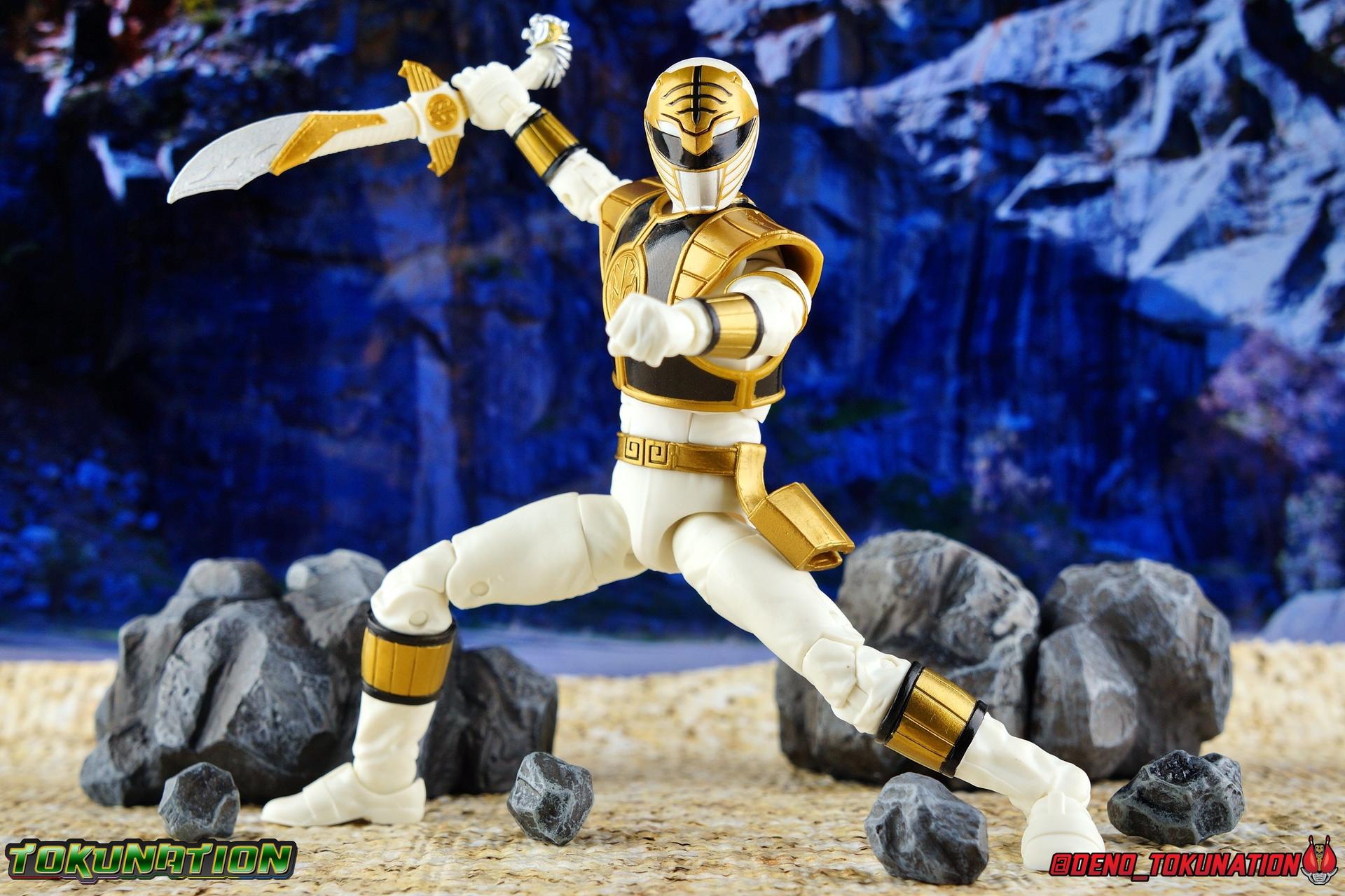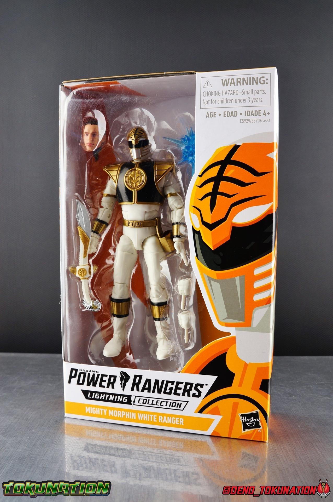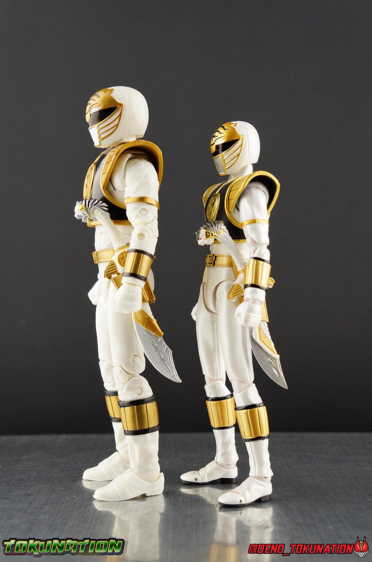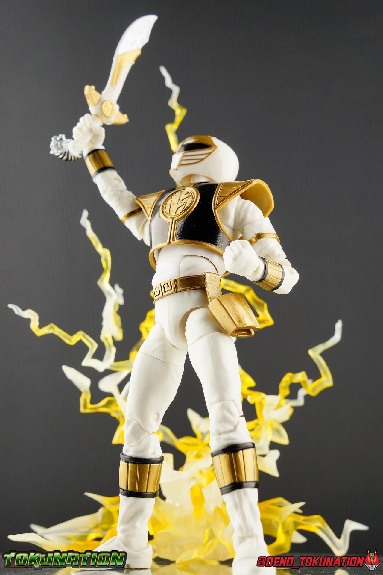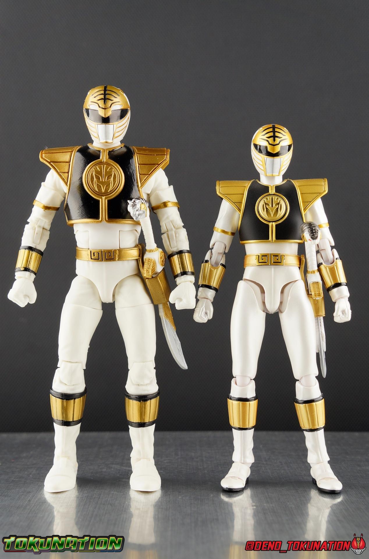 The time has finally come! After years of hoping for a proper collector oriented Power Rangers line of figures, Hasbro has delivered. The first wave of Lighting Collection figures has begun hitting retail in the last few weeks, and so far, the consensus is very positive. Wave 1 consists of SPD Shadow Ranger, Dino Charge Red Ranger, Mighty Morphin White Ranger, and Lord Zedd. To kick off our look at wave 1, we're starting today with the White Ranger! Packaging In creating this line, Hasbro was keen to make sure they appealed to collectors and fans of the franchise from throughout it's various eras. Given the aim to make this appeal to an older crowd, the packaging seems to have taken a page out of the Star Wards Black Series book. In similar collector style boxes, the Lightning collection figure's look a bit brighter thanks to a primarily white color scheme. But they also really pop thanks in no small part to some wonderful box art, lovingly crafted by artist Tom Whalen aka @strongstufftom on twitter. His artwork is breathtaking, and makes these figure's feel like just a bit more of a passion project from the folks at Hasbro. The artwork takes up a majority of the packaging, while the back of the box is relegated to a single stock photo of the figure. But that's not what we're here for anyway. Also the cardboard insert for the White Ranger has a pretty sweet gold Power Rangers thunderbolt on it that you can use almost like a diorama if you so choose. Main Figure We're finally here. It's been a long time coming, and fan's hopes are quite high. But having most of the first wave of Lightning Collection figures in hand myself, it's safe to say, they won't be disappointed. Straight out of the box, the Lightning Collection White Ranger has more personality and presence than literally any figure of the character Bandai America ever produced. No crazy roided muscles, no silly lanky proportions, just a solidly designed and executed figure. This figure features realistic proportions and sculpted details, it just looks like an actual person wearing a spandex suit, and that really is carried through to the sculpted details of the figure. But the articulation is undoubtedly what will sell many people on this figure above all other things. And it should because Hasbro nailed it with this one. For starters the White Ranger features full rotating rocker ankles as well as a clicking swivel joint for them to go back and forth. It's a tight joint but the combination of the two provides so much range and stability for the figure. Above this is a shin swivel as well, just above the gold leg cuff, allowing you to rotate that portion of the leg 360 degrees. Then we get a double jointed knee which allows you to fully bend the leg back in on itself. This is already fantastic but we also get a 360 thigh swivel as well as full hips with back/forth and outward motion. Going backward you will impact the sculpted, um, butt plate? But it hardly kills the articulation. All of this articulation is executed in the same fashion as Hasbro's Marvel Legends & Star Wars Black lines. They've had years to perfect the way they articulate figures and their now standardized joint designs translate perfectly here too. As I mentioned above the figure features a ton of sculpted in fabric folds to give it some extra realism. The subtle way this is executed around the thighs, knees, etc is really quite something and just adds to the collector nature of this release. The upper body is also very well done. While there's a large Tiger armor chest plate covering the upper body, it doesn't impact the ab joint at all. In fact the chest plate is made of a really welcome soft plastic that moves and folds as needed. Despite the soft material the chest plate has some greatly defined details and paint apps. And no this figure doesn't have the MMPR/Zyu chest diamonds under the shield as a number of Bandai figures did through the years. The ab crunch joint itself works about as well as any Marvel Legend or Star Wars Black type figure. It moves easily but locks in at each click securely. The arms are also in that Marvel/Star Wars family of design. Nice tight ratcheting and rotating shoulders? Check. Bicep swivel? Check. Double joint elbow? Certainly. And thanks to the exchangeable hand designs, we get full 360 wrists. The hands by the way are on a similar peg system to most Marvel Legends so they stay in securely but are quite easy swap out too. Finally that brings us to the White Ranger's helmet. As with nearly all other Hasbro 6" scale figures, the head is on a ball joint with forward and back swivel. This gives it a full 360 spin and enough room to arch back and forth for almost anything. A standardized design that continues to work. While many figures they produce in this scale have different size ball joints they all work the same and many can be swapped back and forth. The helmet itself is executed perfectly. All the right details are sculpted and painted and the head is proportionate to the body as it should be. Allllll of this articulation and design choice adds up to one heck of a nice figure which pushes the limits of what can be done at the $20 price point. It makes the Lightning Collection White Ranger an incredibly dynamic display piece. If you're interested in a size comparison to see just how well this figure will fit into your collection, I've provided several examples below. The obvious comparison people will seek is the S.H. Figuarts one. Older style Sentai figuarts, are quite small compared to Lightning Collection. As you can see compared to Tyranno Ranger (MMPR Red), the LC White Ranger stands about a head taller. Standing next to SHF Kiba Ranger, the difference is even more stark. That figure was intentionally slightly shorter because in Dairanger, Kou was a younger and shorter character. Although he gained some height when transformed he was still a bit smaller. So his Figuart was a bit smaller as well when compared to say Drago