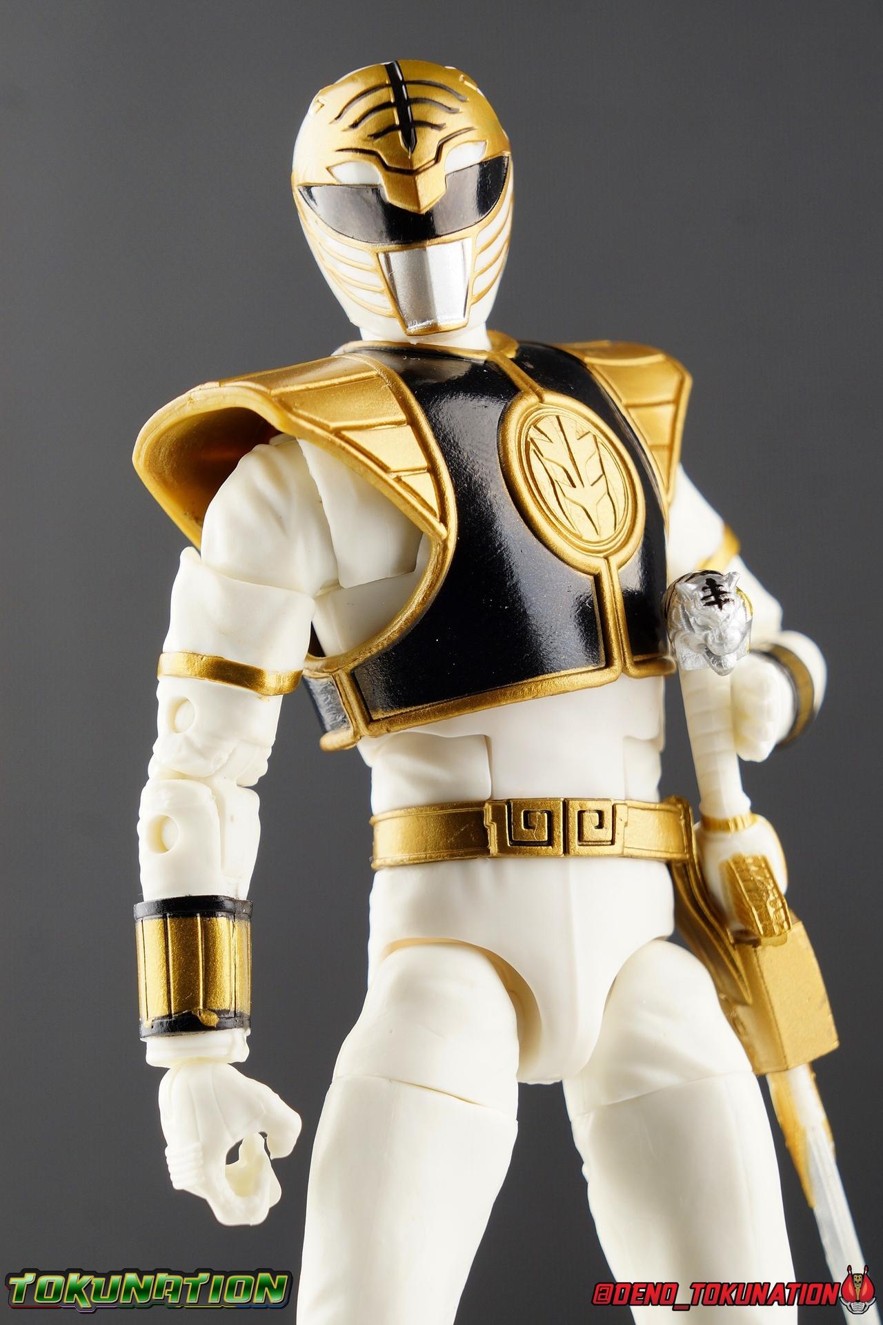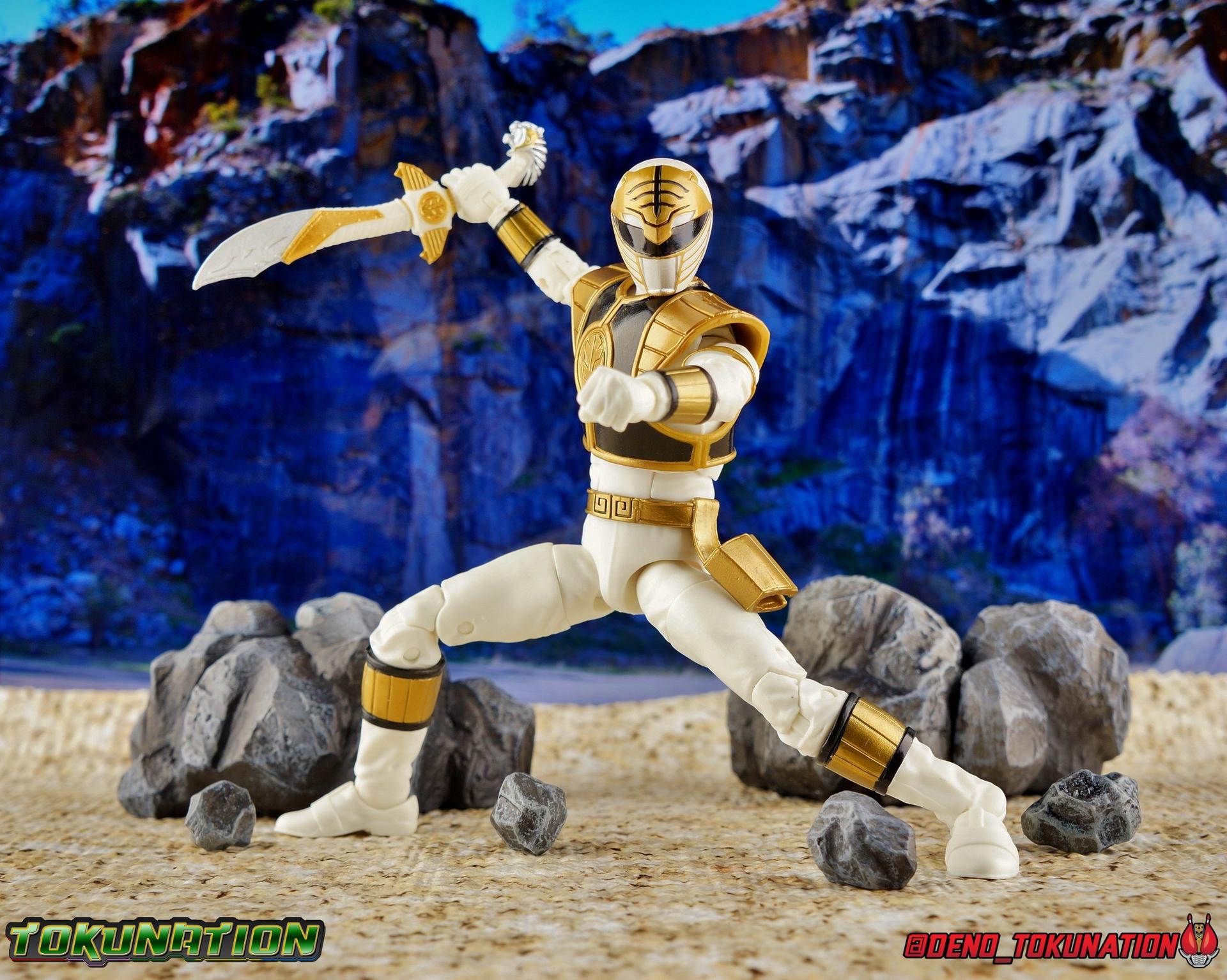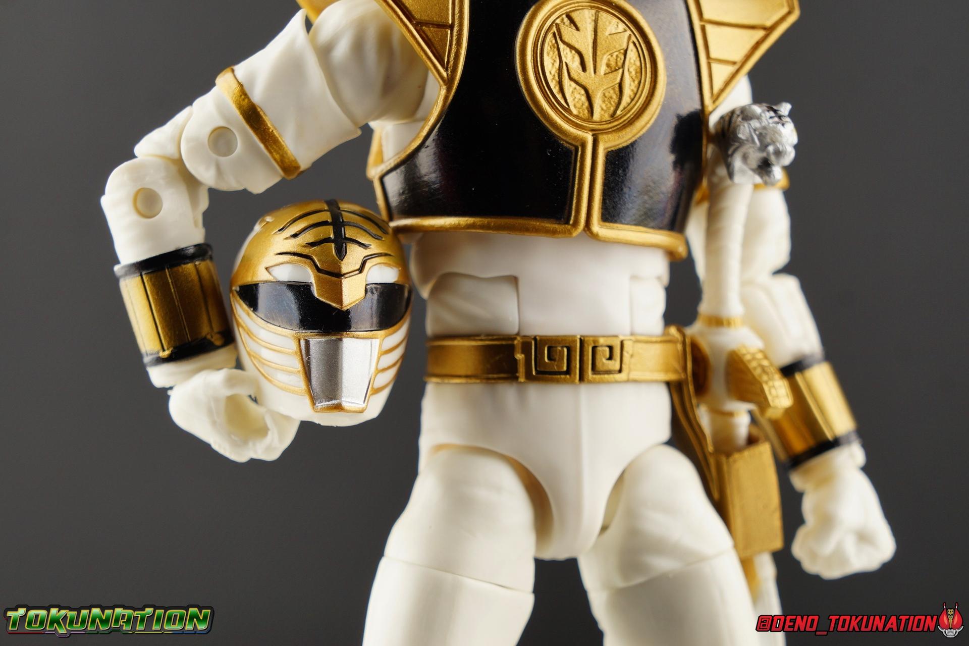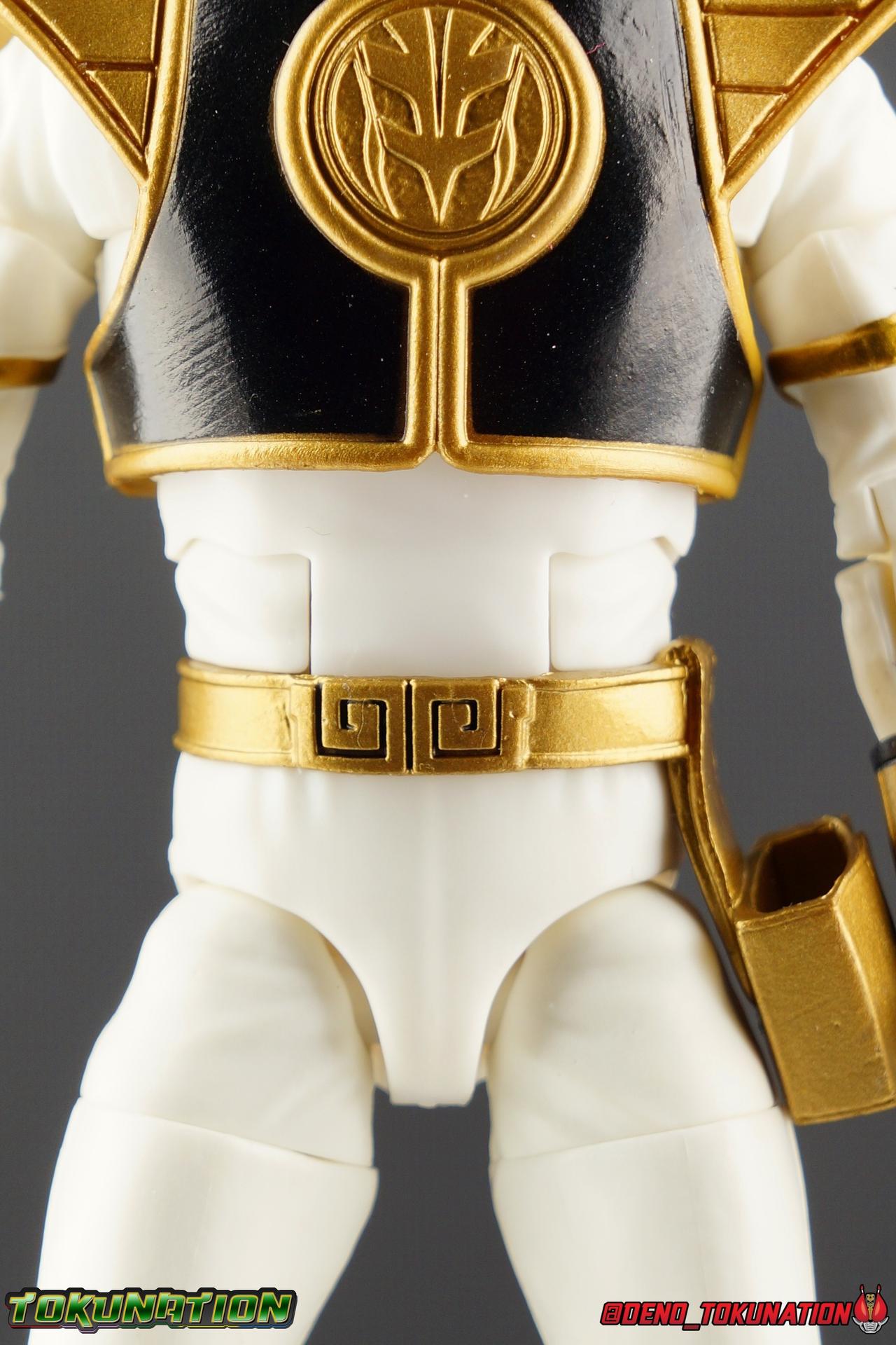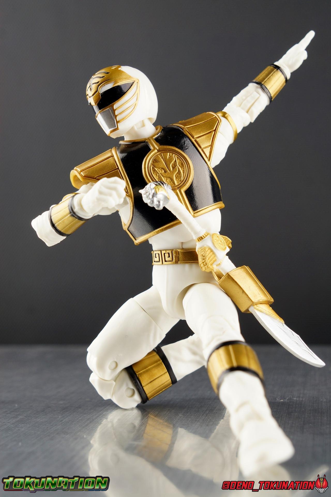 The time has finally come! After years of hoping for a proper collector oriented Power Rangers line of figures, Hasbro has delivered. The first wave of Lighting Collection figures has begun hitting retail in the last few weeks, and so far, the consensus is very positive. Wave 1 consists of SPD Shadow Ranger, Dino Charge Red Ranger, Mighty Morphin White Ranger, and Lord Zedd. To kick off our look at wave 1, we're starting today with the White Ranger! Packaging In creating this line, Hasbro was keen to make sure they appealed to collectors and fans of the franchise from throughout it's various eras. Given the aim to make this appeal to an older crowd, the packaging seems to have taken a page out of the Star Wards Black Series book. In similar collector style boxes, the Lightning collection figure's look a bit brighter thanks to a primarily white color scheme. But they also really pop thanks in no small part to some wonderful box art, lovingly crafted by artist Tom Whalen aka @strongstufftom on twitter. His artwork is breathtaking, and makes these figure's feel like just a bit more of a passion project from the folks at Hasbro. The artwork takes up a majority of the packaging, while the back of the box is relegated to a single stock photo of the figure. But that's not what we're here for anyway. Also the cardboard insert for the White Ranger has a pretty sweet gold Power Rangers thunderbolt on it that you can use almost like a diorama if you so choose. Main Figure We're finally here. It's been a long time coming, and fan's hopes are quite high. But having most of the first wave of Lightning Collection figures in hand myself, it's safe to say, they won't be disappointed. Straight out of the box, the Lightning Collection White Ranger has more personality and presence than literally any figure of the character Bandai America ever produced. No crazy roided muscles, no silly lanky proportions, just a solidly designed and executed figure. This figure features realistic proportions and sculpted details, it just looks like an actual person wearing a spandex suit, and that really is carried through to the sculpted details of the figure. But the articulation is undoubtedly what will sell many people on this figure above all other things. And it should because Hasbro nailed it with this one. For starters the White Ranger features full rotating rocker ankles as well as a clicking swivel joint for them to go back and forth. It's a tight joint but the combination of the two provides so much range and stability for the figure. Above this is a shin swivel as well, just above the gold leg cuff, allowing you to rotate that portion of the leg 360 degrees. Then we get a double jointed knee which allows you to fully bend the leg back in on itself. This is already fantastic but we also get a 360 thigh swivel as well as full hips with back/forth and outward motion. Going backward you will impact the sculpted, um, butt plate? But it hardly kills the articulation. All of this articulation is executed in the same fashion as Hasbro's Marvel Legends & Star Wars Black lines. They've had years to perfect the way they articulate figures and their now standardized joint designs translate perfectly here too. As I mentioned above the figure features a ton of sculpted in fabric folds to give it some extra realism. The subtle way this is executed around the thighs, knees, etc is really quite something and just adds to the collector nature of this release. The upper body is also very well done. While there's a large Tiger armor chest plate covering the upper body, it doesn't impact the ab joint at all. In fact the chest plate is made of a really welcome soft plastic that moves and folds as needed. Despite the soft material the chest plate has some greatly defined details and paint apps. And no this figure doesn't have the MMPR/Zyu chest diamonds under the shield as a number of Bandai figures did through the years. The ab crunch joint itself works about as well as any Marvel Legend or Star Wars Black type figure. It moves easily but locks in at each click securely. The arms are also in that Marvel/Star Wars family of design. Nice tight ratcheting and rotating shoulders? Check. Bicep swivel? Check. Double joint elbow? Certainly. And thanks to the exchangeable hand designs, we get full 360 wrists. The hands by the way are on a similar peg system to most Marvel Legends so they stay in securely but are quite easy swap out too. Finally that brings us to the White Ranger's helmet. As with nearly all other Hasbro 6" scale figures, the head is on a ball joint with forward and back swivel. This gives it a full 360 spin and enough room to arch back and forth for almost anything. A standardized design that continues to work. While many figures they produce in this scale have different size ball joints they all work the same and many can be swapped back and forth. The helmet itself is executed perfectly. All the right details are sculpted and painted and the head is proportionate to the body as it should be. Allllll of this articulation and design choice adds up to one heck of a nice figure which pushes the limits of what can be done at the $20 price point. It makes the Lightning Collection White Ranger an incredibly dynamic display piece. If you're interested in a size comparison to see just how well this figure will fit into your collection, I've provided several examples below. The obvious comparison people will seek is the S.H. Figuarts one. Older style Sentai figuarts, are quite small compared to Lightning Collection. As you can see compared to Tyranno Ranger (MMPR Red), the LC White Ranger stands about a head taller. Standing next to SHF Kiba Ranger, the difference is even more stark. That figure was intentionally slightly shorter because in Dairanger, Kou was a younger and shorter character. Although he gained some height when transformed he was still a bit smaller. So his Figuart was a bit smaller as well when compared to say Drago