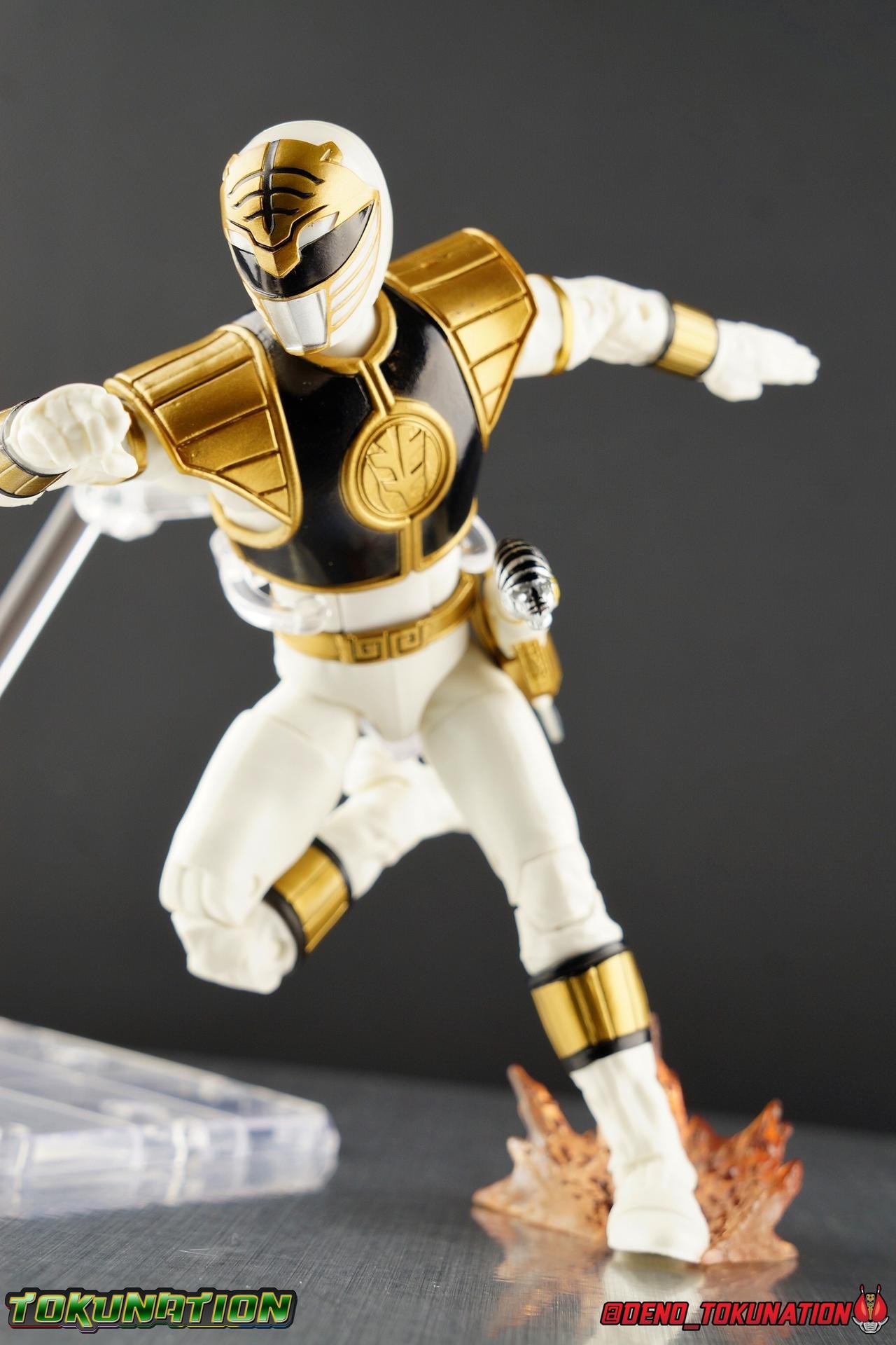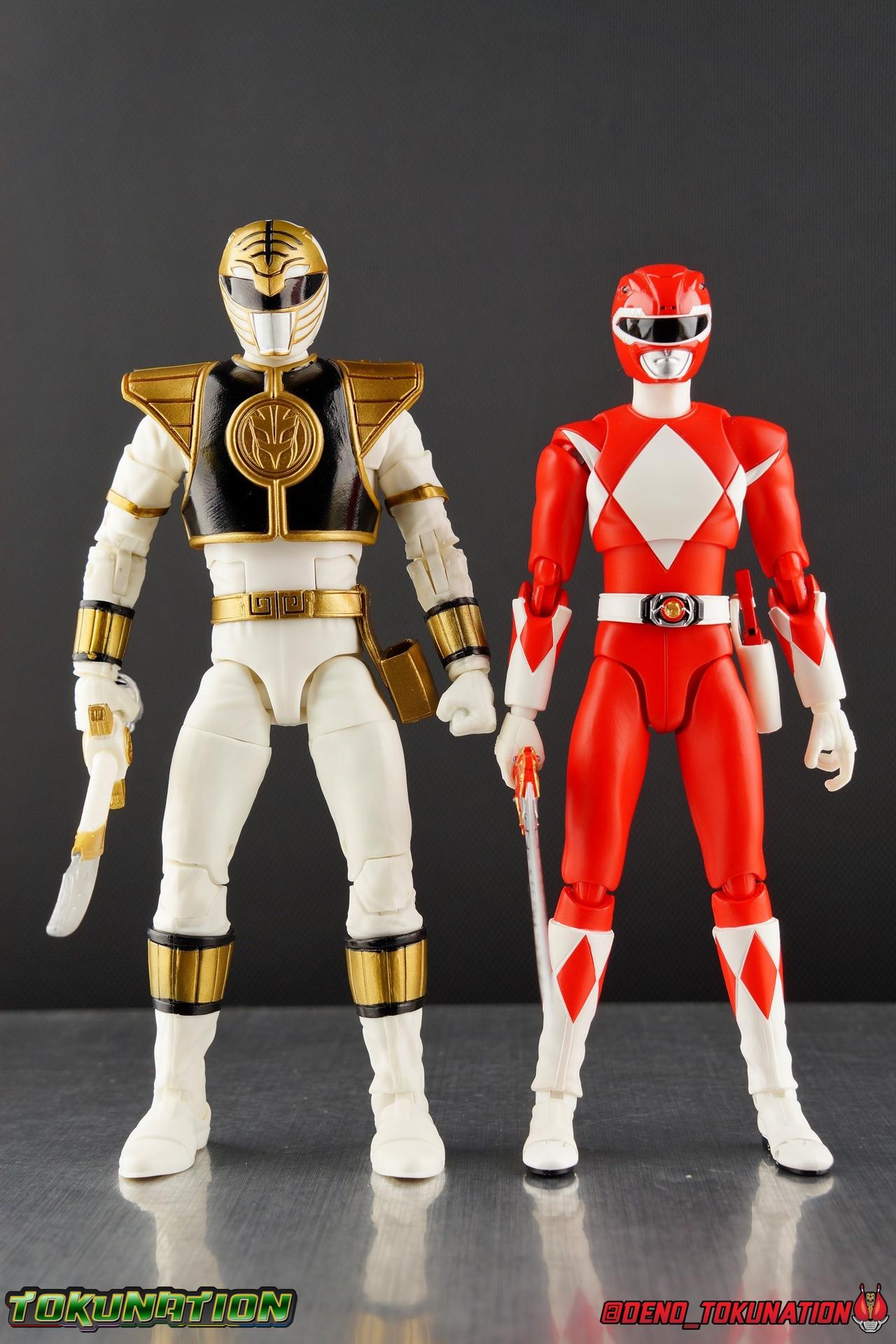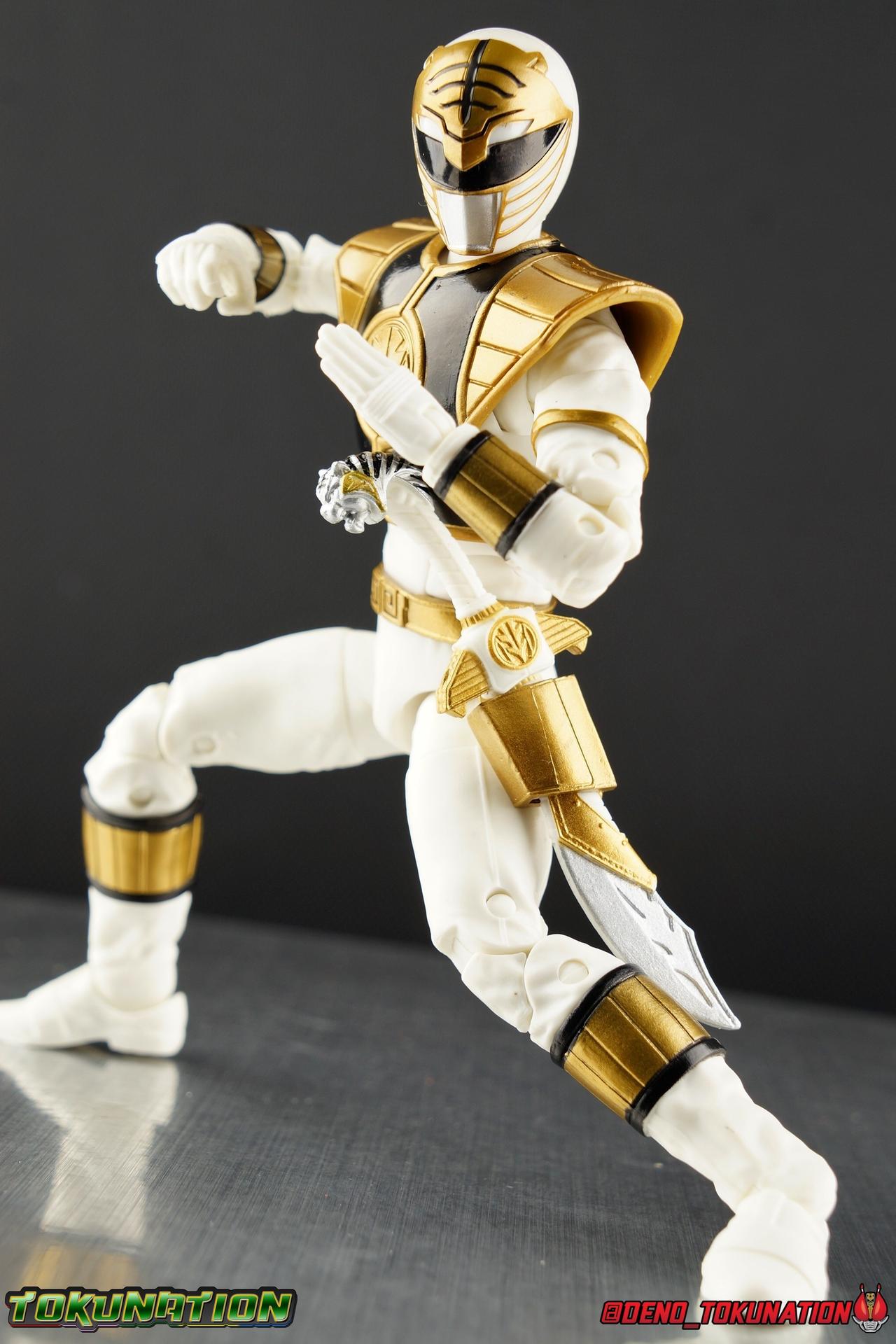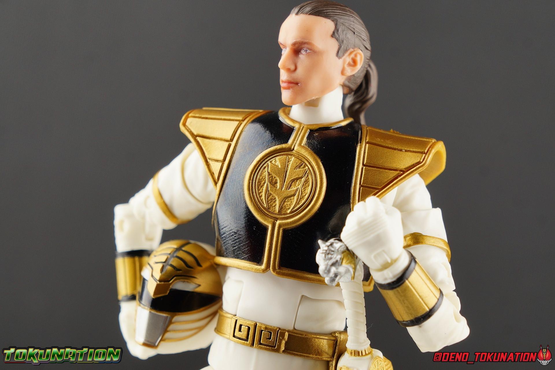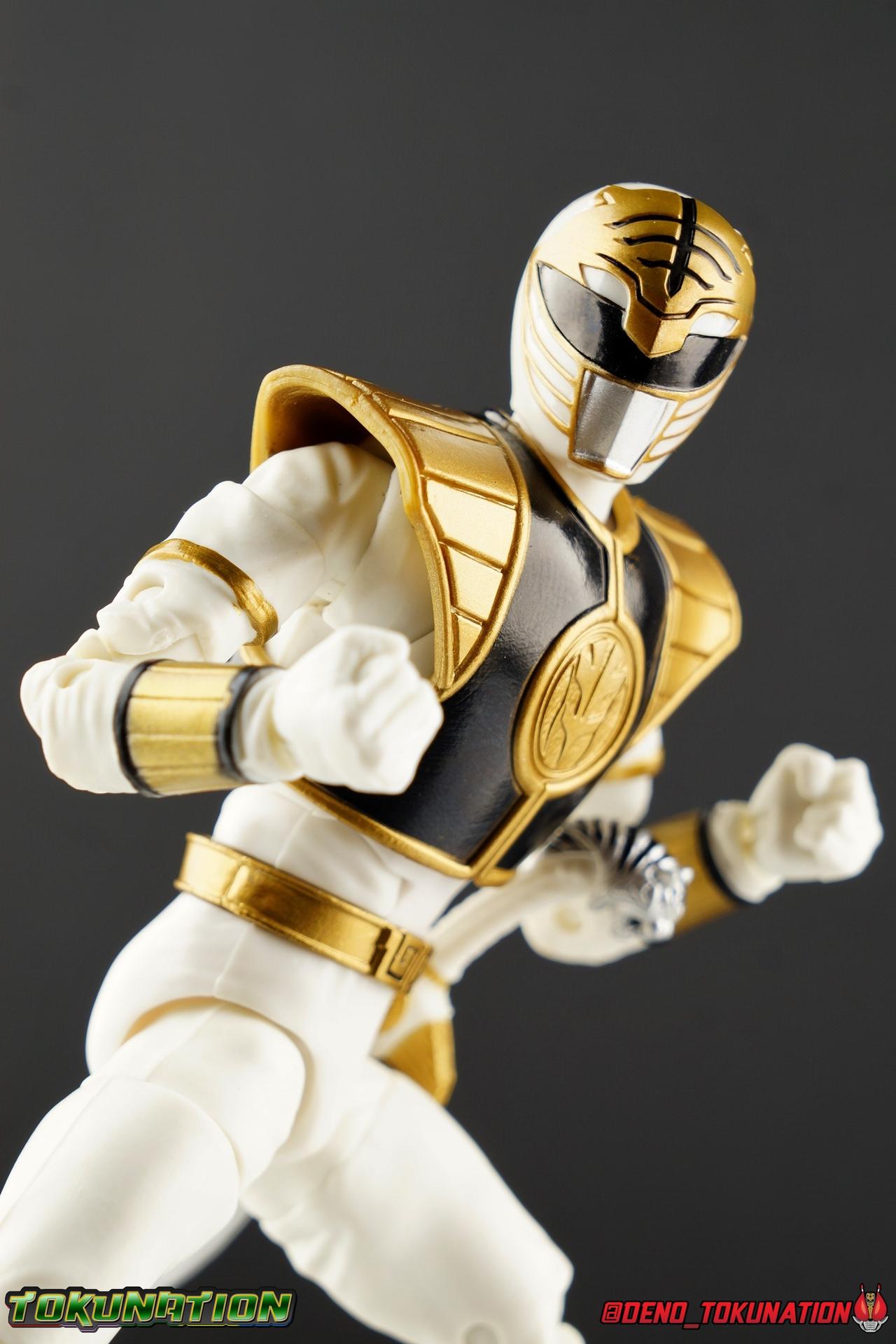 The time has finally come! After years of hoping for a proper collector oriented Power Rangers line of figures, Hasbro has delivered. The first wave of Lighting Collection figures has begun hitting retail in the last few weeks, and so far, the consensus is very positive. Wave 1 consists of SPD Shadow Ranger, Dino Charge Red Ranger, Mighty Morphin White Ranger, and Lord Zedd. To kick off our look at wave 1, we're starting today with the White Ranger! Packaging In creating this line, Hasbro was keen to make sure they appealed to collectors and fans of the franchise from throughout it's various eras. Given the aim to make this appeal to an older crowd, the packaging seems to have taken a page out of the Star Wards Black Series book. In similar collector style boxes, the Lightning collection figure's look a bit brighter thanks to a primarily white color scheme. But they also really pop thanks in no small part to some wonderful box art, lovingly crafted by artist Tom Whalen aka @strongstufftom on twitter. His artwork is breathtaking, and makes these figure's feel like just a bit more of a passion project from the folks at Hasbro. The artwork takes up a majority of the packaging, while the back of the box is relegated to a single stock photo of the figure. But that's not what we're here for anyway. Also the cardboard insert for the White Ranger has a pretty sweet gold Power Rangers thunderbolt on it that you can use almost like a diorama if you so choose. Main Figure We're finally here. It's been a long time coming, and fan's hopes are quite high. But having most of the first wave of Lightning Collection figures in hand myself, it's safe to say, they won't be disappointed. Straight out of the box, the Lightning Collection White Ranger has more personality and presence than literally any figure of the character Bandai America ever produced. No crazy roided muscles, no silly lanky proportions, just a solidly designed and executed figure. This figure features realistic proportions and sculpted details, it just looks like an actual person wearing a spandex suit, and that really is carried through to the sculpted details of the figure. But the articulation is undoubtedly what will sell many people on this figure above all other things. And it should because Hasbro nailed it with this one. For starters the White Ranger features full rotating rocker ankles as well as a clicking swivel joint for them to go back and forth. It's a tight joint but the combination of the two provides so much range and stability for the figure. Above this is a shin swivel as well, just above the gold leg cuff, allowing you to rotate that portion of the leg 360 degrees. Then we get a double jointed knee which allows you to fully bend the leg back in on itself. This is already fantastic but we also get a 360 thigh swivel as well as full hips with back/forth and outward motion. Going backward you will impact the sculpted, um, butt plate? But it hardly kills the articulation. All of this articulation is executed in the same fashion as Hasbro's Marvel Legends & Star Wars Black lines. They've had years to perfect the way they articulate figures and their now standardized joint designs translate perfectly here too. As I mentioned above the figure features a ton of sculpted in fabric folds to give it some extra realism. The subtle way this is executed around the thighs, knees, etc is really quite something and just adds to the collector nature of this release. The upper body is also very well done. While there's a large Tiger armor chest plate covering the upper body, it doesn't impact the ab joint at all. In fact the chest plate is made of a really welcome soft plastic that moves and folds as needed. Despite the soft material the chest plate has some greatly defined details and paint apps. And no this figure doesn't have the MMPR/Zyu chest diamonds under the shield as a number of Bandai figures did through the years. The ab crunch joint itself works about as well as any Marvel Legend or Star Wars Black type figure. It moves easily but locks in at each click securely. The arms are also in that Marvel/Star Wars family of design. Nice tight ratcheting and rotating shoulders? Check. Bicep swivel? Check. Double joint elbow? Certainly. And thanks to the exchangeable hand designs, we get full 360 wrists. The hands by the way are on a similar peg system to most Marvel Legends so they stay in securely but are quite easy swap out too. Finally that brings us to the White Ranger's helmet. As with nearly all other Hasbro 6" scale figures, the head is on a ball joint with forward and back swivel. This gives it a full 360 spin and enough room to arch back and forth for almost anything. A standardized design that continues to work. While many figures they produce in this scale have different size ball joints they all work the same and many can be swapped back and forth. The helmet itself is executed perfectly. All the right details are sculpted and painted and the head is proportionate to the body as it should be. Allllll of this articulation and design choice adds up to one heck of a nice figure which pushes the limits of what can be done at the $20 price point. It makes the Lightning Collection White Ranger an incredibly dynamic display piece. If you're interested in a size comparison to see just how well this figure will fit into your collection, I've provided several examples below. The obvious comparison people will seek is the S.H. Figuarts one. Older style Sentai figuarts, are quite small compared to Lightning Collection. As you can see compared to Tyranno Ranger (MMPR Red), the LC White Ranger stands about a head taller. Standing next to SHF Kiba Ranger, the difference is even more stark. That figure was intentionally slightly shorter because in Dairanger, Kou was a younger and shorter character. Although he gained some height when transformed he was still a bit smaller. So his Figuart was a bit smaller as well when compared to say Drago