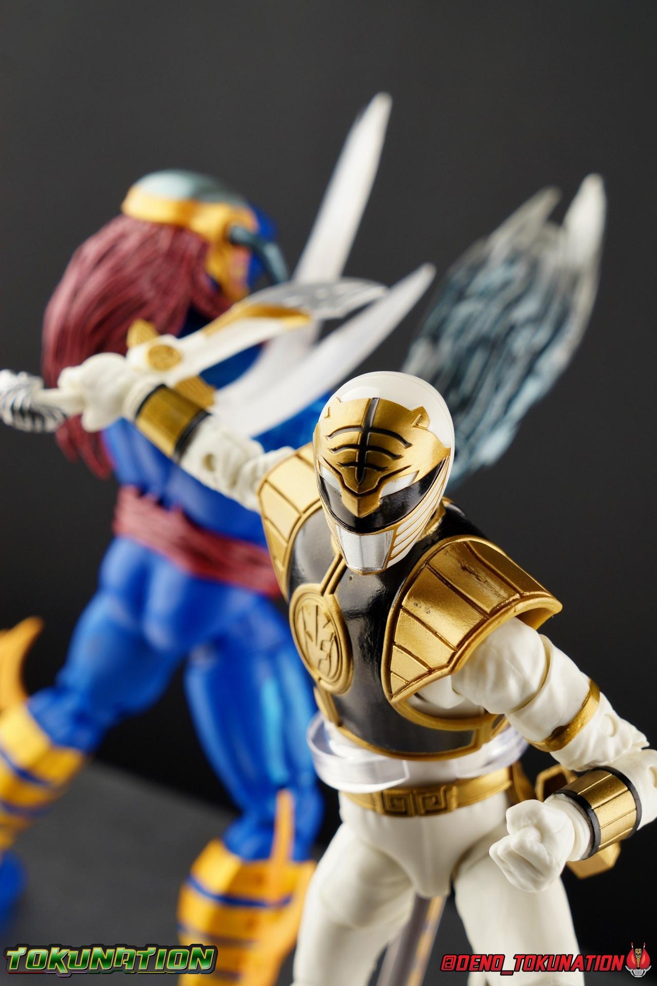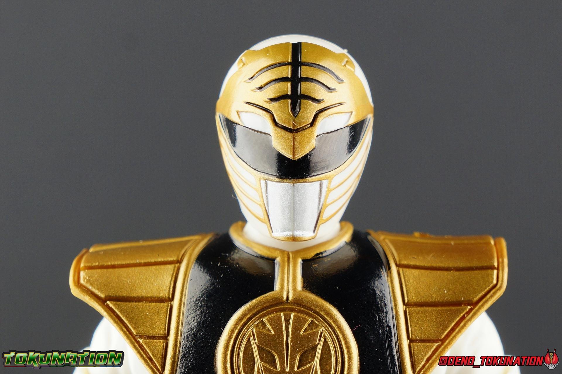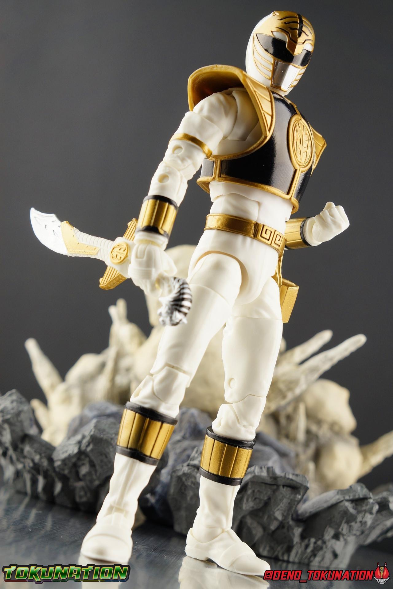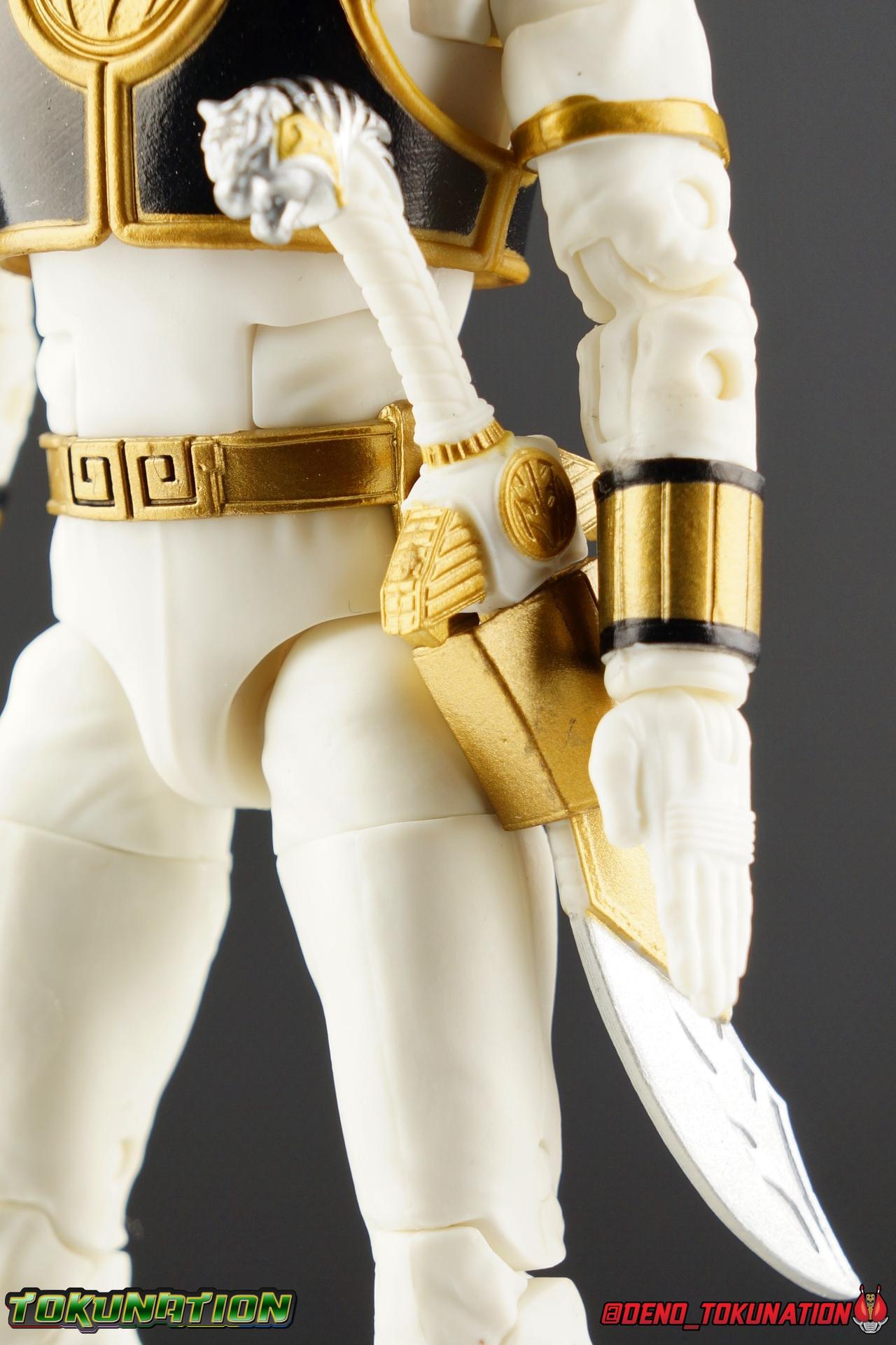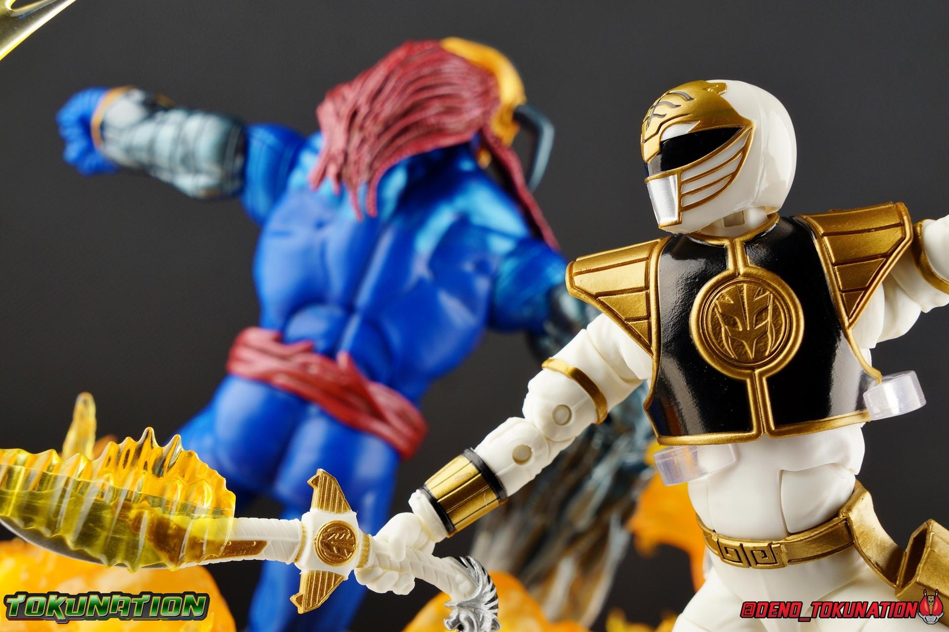 The time has finally come! After years of hoping for a proper collector oriented Power Rangers line of figures, Hasbro has delivered. The first wave of Lighting Collection figures has begun hitting retail in the last few weeks, and so far, the consensus is very positive. Wave 1 consists of SPD Shadow Ranger, Dino Charge Red Ranger, Mighty Morphin White Ranger, and Lord Zedd. To kick off our look at wave 1, we're starting today with the White Ranger! Packaging In creating this line, Hasbro was keen to make sure they appealed to collectors and fans of the franchise from throughout it's various eras. Given the aim to make this appeal to an older crowd, the packaging seems to have taken a page out of the Star Wards Black Series book. In similar collector style boxes, the Lightning collection figure's look a bit brighter thanks to a primarily white color scheme. But they also really pop thanks in no small part to some wonderful box art, lovingly crafted by artist Tom Whalen aka @strongstufftom on twitter. His artwork is breathtaking, and makes these figure's feel like just a bit more of a passion project from the folks at Hasbro. The artwork takes up a majority of the packaging, while the back of the box is relegated to a single stock photo of the figure. But that's not what we're here for anyway. Also the cardboard insert for the White Ranger has a pretty sweet gold Power Rangers thunderbolt on it that you can use almost like a diorama if you so choose. Main Figure We're finally here. It's been a long time coming, and fan's hopes are quite high. But having most of the first wave of Lightning Collection figures in hand myself, it's safe to say, they won't be disappointed. Straight out of the box, the Lightning Collection White Ranger has more personality and presence than literally any figure of the character Bandai America ever produced. No crazy roided muscles, no silly lanky proportions, just a solidly designed and executed figure. This figure features realistic proportions and sculpted details, it just looks like an actual person wearing a spandex suit, and that really is carried through to the sculpted details of the figure. But the articulation is undoubtedly what will sell many people on this figure above all other things. And it should because Hasbro nailed it with this one. For starters the White Ranger features full rotating rocker ankles as well as a clicking swivel joint for them to go back and forth. It's a tight joint but the combination of the two provides so much range and stability for the figure. Above this is a shin swivel as well, just above the gold leg cuff, allowing you to rotate that portion of the leg 360 degrees. Then we get a double jointed knee which allows you to fully bend the leg back in on itself. This is already fantastic but we also get a 360 thigh swivel as well as full hips with back/forth and outward motion. Going backward you will impact the sculpted, um, butt plate? But it hardly kills the articulation. All of this articulation is executed in the same fashion as Hasbro's Marvel Legends & Star Wars Black lines. They've had years to perfect the way they articulate figures and their now standardized joint designs translate perfectly here too. As I mentioned above the figure features a ton of sculpted in fabric folds to give it some extra realism. The subtle way this is executed around the thighs, knees, etc is really quite something and just adds to the collector nature of this release. The upper body is also very well done. While there's a large Tiger armor chest plate covering the upper body, it doesn't impact the ab joint at all. In fact the chest plate is made of a really welcome soft plastic that moves and folds as needed. Despite the soft material the chest plate has some greatly defined details and paint apps. And no this figure doesn't have the MMPR/Zyu chest diamonds under the shield as a number of Bandai figures did through the years. The ab crunch joint itself works about as well as any Marvel Legend or Star Wars Black type figure. It moves easily but locks in at each click securely. The arms are also in that Marvel/Star Wars family of design. Nice tight ratcheting and rotating shoulders? Check. Bicep swivel? Check. Double joint elbow? Certainly. And thanks to the exchangeable hand designs, we get full 360 wrists. The hands by the way are on a similar peg system to most Marvel Legends so they stay in securely but are quite easy swap out too. Finally that brings us to the White Ranger's helmet. As with nearly all other Hasbro 6" scale figures, the head is on a ball joint with forward and back swivel. This gives it a full 360 spin and enough room to arch back and forth for almost anything. A standardized design that continues to work. While many figures they produce in this scale have different size ball joints they all work the same and many can be swapped back and forth. The helmet itself is executed perfectly. All the right details are sculpted and painted and the head is proportionate to the body as it should be. Allllll of this articulation and design choice adds up to one heck of a nice figure which pushes the limits of what can be done at the $20 price point. It makes the Lightning Collection White Ranger an incredibly dynamic display piece. If you're interested in a size comparison to see just how well this figure will fit into your collection, I've provided several examples below. The obvious comparison people will seek is the S.H. Figuarts one. Older style Sentai figuarts, are quite small compared to Lightning Collection. As you can see compared to Tyranno Ranger (MMPR Red), the LC White Ranger stands about a head taller. Standing next to SHF Kiba Ranger, the difference is even more stark. That figure was intentionally slightly shorter because in Dairanger, Kou was a younger and shorter character. Although he gained some height when transformed he was still a bit smaller. So his Figuart was a bit smaller as well when compared to say Drago