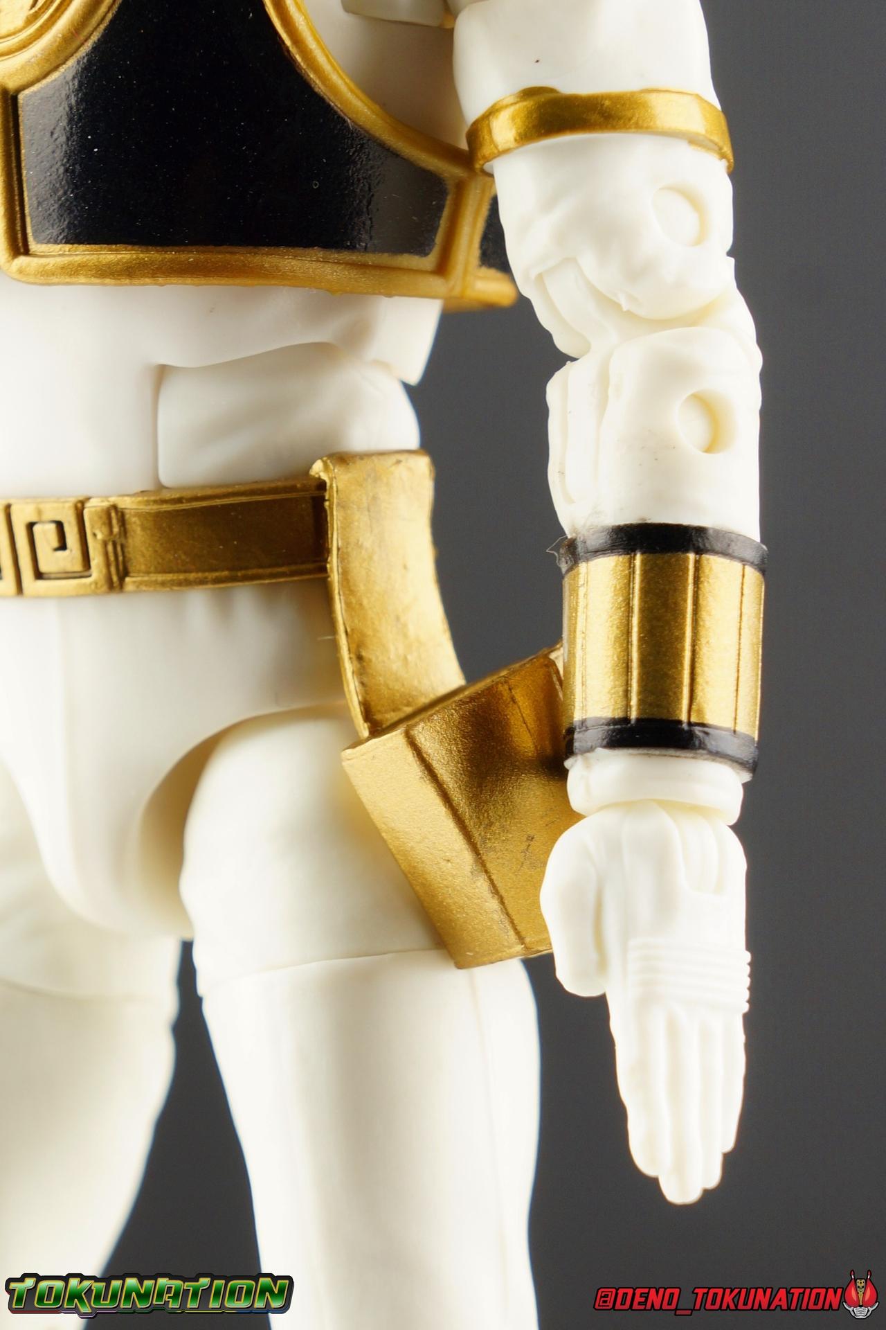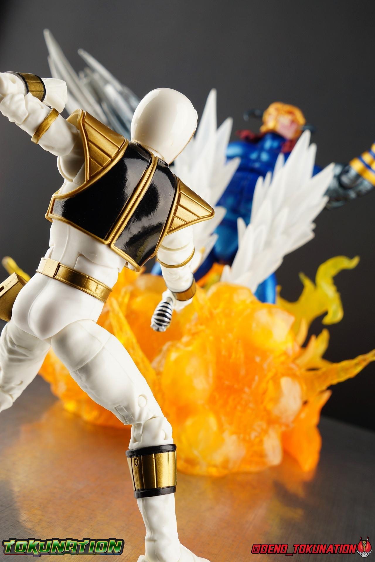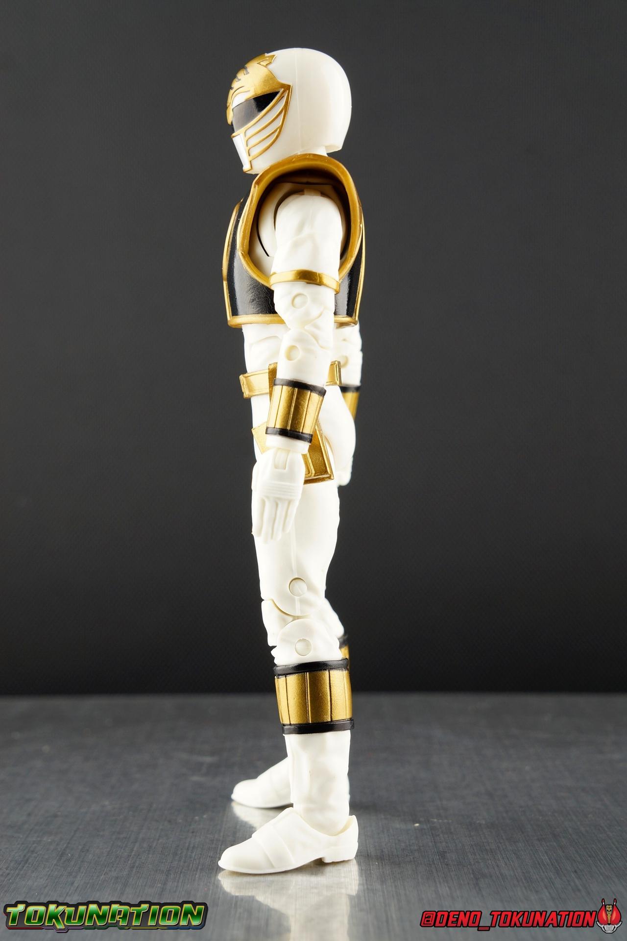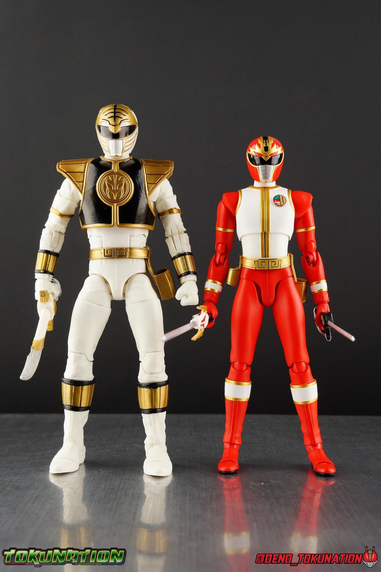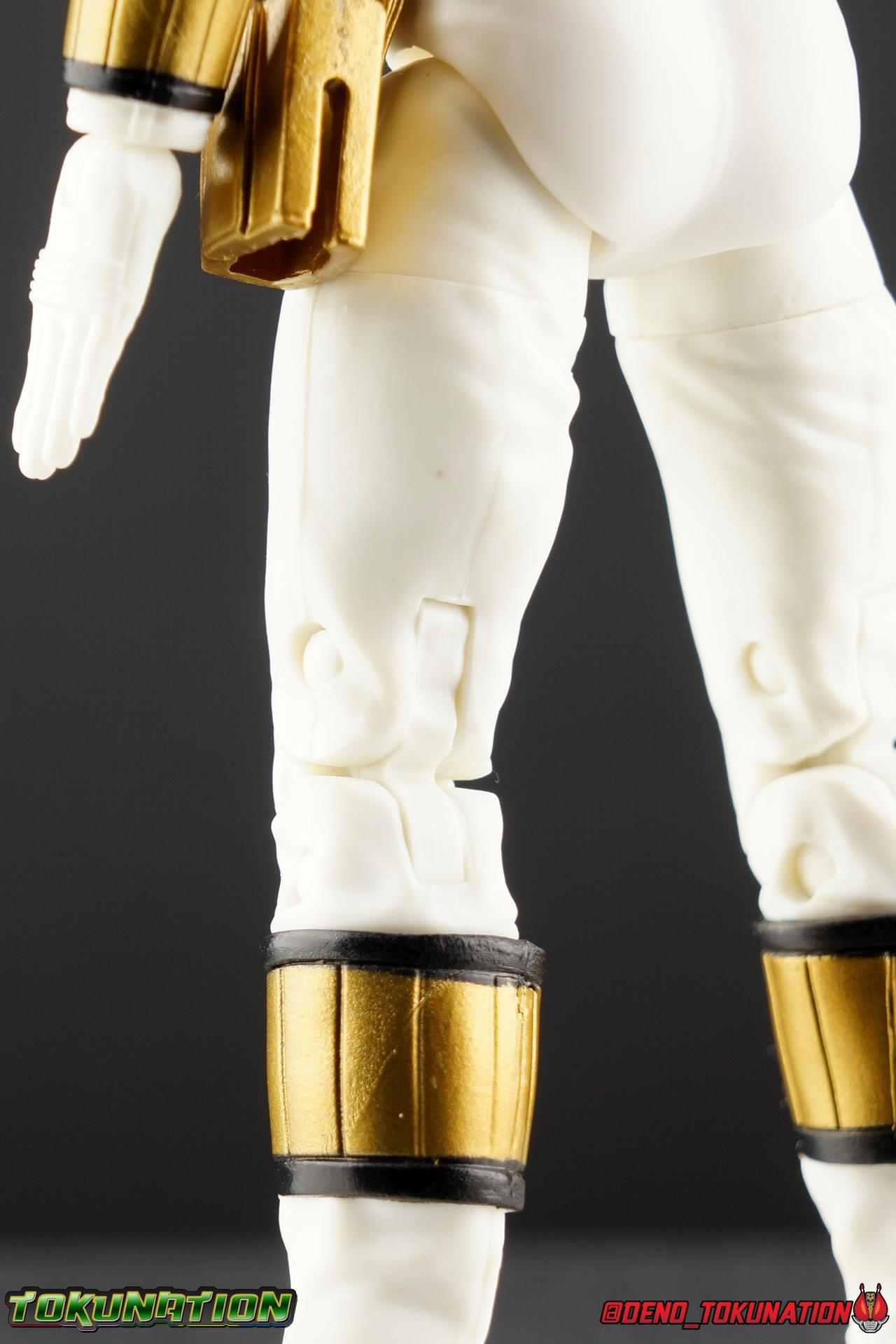 The time has finally come! After years of hoping for a proper collector oriented Power Rangers line of figures, Hasbro has delivered. The first wave of Lighting Collection figures has begun hitting retail in the last few weeks, and so far, the consensus is very positive. Wave 1 consists of SPD Shadow Ranger, Dino Charge Red Ranger, Mighty Morphin White Ranger, and Lord Zedd. To kick off our look at wave 1, we're starting today with the White Ranger! Packaging In creating this line, Hasbro was keen to make sure they appealed to collectors and fans of the franchise from throughout it's various eras. Given the aim to make this appeal to an older crowd, the packaging seems to have taken a page out of the Star Wards Black Series book. In similar collector style boxes, the Lightning collection figure's look a bit brighter thanks to a primarily white color scheme. But they also really pop thanks in no small part to some wonderful box art, lovingly crafted by artist Tom Whalen aka @strongstufftom on twitter. His artwork is breathtaking, and makes these figure's feel like just a bit more of a passion project from the folks at Hasbro. The artwork takes up a majority of the packaging, while the back of the box is relegated to a single stock photo of the figure. But that's not what we're here for anyway. Also the cardboard insert for the White Ranger has a pretty sweet gold Power Rangers thunderbolt on it that you can use almost like a diorama if you so choose. Main Figure We're finally here. It's been a long time coming, and fan's hopes are quite high. But having most of the first wave of Lightning Collection figures in hand myself, it's safe to say, they won't be disappointed. Straight out of the box, the Lightning Collection White Ranger has more personality and presence than literally any figure of the character Bandai America ever produced. No crazy roided muscles, no silly lanky proportions, just a solidly designed and executed figure. This figure features realistic proportions and sculpted details, it just looks like an actual person wearing a spandex suit, and that really is carried through to the sculpted details of the figure. But the articulation is undoubtedly what will sell many people on this figure above all other things. And it should because Hasbro nailed it with this one. For starters the White Ranger features full rotating rocker ankles as well as a clicking swivel joint for them to go back and forth. It's a tight joint but the combination of the two provides so much range and stability for the figure. Above this is a shin swivel as well, just above the gold leg cuff, allowing you to rotate that portion of the leg 360 degrees. Then we get a double jointed knee which allows you to fully bend the leg back in on itself. This is already fantastic but we also get a 360 thigh swivel as well as full hips with back/forth and outward motion. Going backward you will impact the sculpted, um, butt plate? But it hardly kills the articulation. All of this articulation is executed in the same fashion as Hasbro's Marvel Legends & Star Wars Black lines. They've had years to perfect the way they articulate figures and their now standardized joint designs translate perfectly here too. As I mentioned above the figure features a ton of sculpted in fabric folds to give it some extra realism. The subtle way this is executed around the thighs, knees, etc is really quite something and just adds to the collector nature of this release. The upper body is also very well done. While there's a large Tiger armor chest plate covering the upper body, it doesn't impact the ab joint at all. In fact the chest plate is made of a really welcome soft plastic that moves and folds as needed. Despite the soft material the chest plate has some greatly defined details and paint apps. And no this figure doesn't have the MMPR/Zyu chest diamonds under the shield as a number of Bandai figures did through the years. The ab crunch joint itself works about as well as any Marvel Legend or Star Wars Black type figure. It moves easily but locks in at each click securely. The arms are also in that Marvel/Star Wars family of design. Nice tight ratcheting and rotating shoulders? Check. Bicep swivel? Check. Double joint elbow? Certainly. And thanks to the exchangeable hand designs, we get full 360 wrists. The hands by the way are on a similar peg system to most Marvel Legends so they stay in securely but are quite easy swap out too. Finally that brings us to the White Ranger's helmet. As with nearly all other Hasbro 6" scale figures, the head is on a ball joint with forward and back swivel. This gives it a full 360 spin and enough room to arch back and forth for almost anything. A standardized design that continues to work. While many figures they produce in this scale have different size ball joints they all work the same and many can be swapped back and forth. The helmet itself is executed perfectly. All the right details are sculpted and painted and the head is proportionate to the body as it should be. Allllll of this articulation and design choice adds up to one heck of a nice figure which pushes the limits of what can be done at the $20 price point. It makes the Lightning Collection White Ranger an incredibly dynamic display piece. If you're interested in a size comparison to see just how well this figure will fit into your collection, I've provided several examples below. The obvious comparison people will seek is the S.H. Figuarts one. Older style Sentai figuarts, are quite small compared to Lightning Collection. As you can see compared to Tyranno Ranger (MMPR Red), the LC White Ranger stands about a head taller. Standing next to SHF Kiba Ranger, the difference is even more stark. That figure was intentionally slightly shorter because in Dairanger, Kou was a younger and shorter character. Although he gained some height when transformed he was still a bit smaller. So his Figuart was a bit smaller as well when compared to say Drago