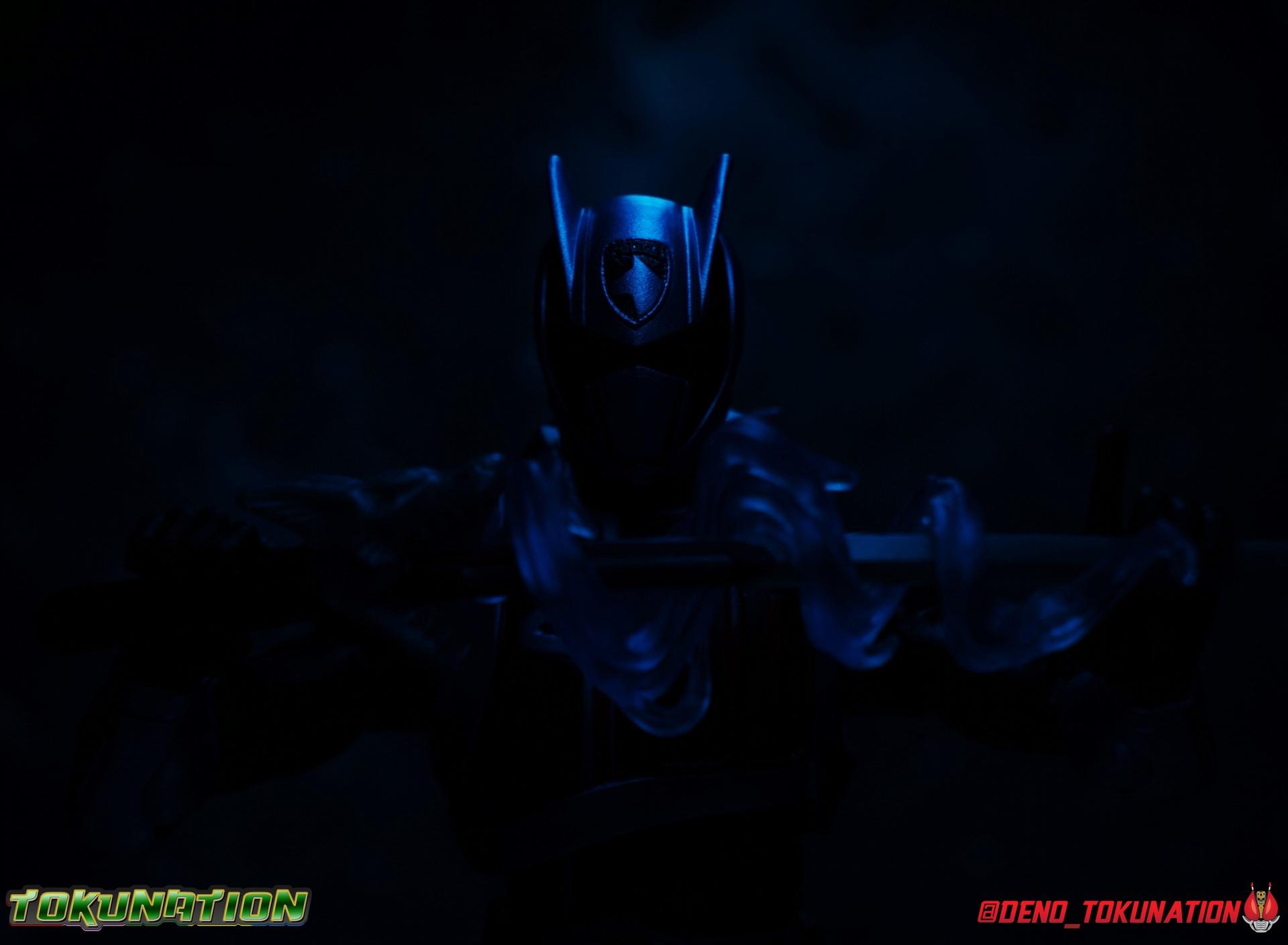 Joining Hasbro's Lightning Collection line of collector's figures in it's inaugural wave, Shadow Ranger is another long demanded release. For years fans have hoped for this hero to finally receive his due in figure form. Joining wave 1 wave mates MMPR White Ranger, Dino Charge Red Ranger, and Lord Zedd, how does the Shadow Ranger stack up? Read on to find out! Packaging In creating this line, Hasbro was keen to make sure they appealed to collectors and fans of the franchise from throughout it's various eras. Given the aim to make this appeal to an older crowd, the packaging seems to have taken a page out of the Star Wards Black Series book. In similar collector style boxes, the Lightning collection figure's look a bit brighter thanks to a primarily white color scheme. But they also really pop thanks in no small part to some wonderful box art, lovingly crafted by artist Tom Whalen aka @strongstufftom on twitter. His artwork is breathtaking, and makes these figure's feel like just a bit more of a passion project from the folks at Hasbro. The artwork takes up a majority of the packaging, while the back of the box is relegated to a single stock photo of the figure. But that's not what we're here for anyway. Also the cardboard insert for the Shadow Ranger has a pretty sweet deep red Power Rangers thunderbolt on it that you can use almost like a diorama if you so choose. Main Figure A couple weeks ago we had the chance to review our first Lightning Collection figure with the MMPR White Ranger. It's goes without saying that the White Ranger really sold me on this line. It was one of the figure's in Wave 1 I just had no intention of buying but on a whim I did, and it sold me on practically any release Hasbro throws at us. A solidly built and well executed figure. Shadow Ranger and Lord Zedd were the real prospects of Wave 1 for me. The two figure's I absolutely had to have. Thankfully Shadow Ranger lives up to the hype in much the same way as White Ranger. As with the White Ranger, the Lightning Collection Shadow Ranger has all the personality, presence, and functionality that no Bandai America ranger figure ever had. Continuing to keep the promises of this line, we have properly proportioned body parts and muscles, realistic sculpted details, something that once again achieves the actual person wearing a spandex suit look. And like White Ranger the articulation is undoubtedly what will sell many people on this figure above all other things. To start Shadow Ranger features the basically standard full rotating rocker ankles of the line, as well as a clicking swivel joint for them to go back and forth. It's a tight joint and the shin armor can impede it's movement slightly, but it's well done. Unlike White Ranger, there's no shin swivel but that makes sense given the armor on the leg. The armor itself can float a bit and with some limb disassembly I'm sure you could even remove them to use on other figures. Then knee is double jointed knee giving you full bends back. And the full thigh swivel makes a return as well as full hips with back/forth and outward motion. Using the swivel will break up the paint app on the right leg but that's hardly a concern. Going backward you will indeed hit the butt plate this go around too. All of this articulation is executed in the same fashion as Hasbro's other main lines for collector's. They've had years to perfect the way they articulate figures and their now (mostly) standardized joint designs translate perfectly here too. As I mentioned above the figure features a ton of sculpted in fabric folds to give it some extra realism. The subtle way this is executed around the thighs, knees, is just really well done. Think of it like the same way some later Showa renewal figuarts utilized similar tooling. The upper body is designed in basically the same way as White Ranger. The waist does of course have a nice S.P.D. buckle as well as a hip holster for the included Shadow Saber. The "100" chest armor is made of a softer rubbery plastic that's very flexible and allows you to articulate the upper body (wether rotating or ab-crunching) without much issue. Despite the soft material the chest plate has some greatly defined details and paint apps. A lot of collector's seem to have complained of spotty paint apps on this part and various other areas of the figure. I won't. Just be thankful Hasbro is even painting these figure's. Minor imperfections aside, at least they've bothered to paint these things up unlike the old days of nothing ever being painted from Bandai. There are some minor apps missing, like black detail lines on the blue armor, or the blue knuckles and fingertips on the hands, but ultimately this is minor when compared to, again, almost nothing ever being properly painted in the Bandai dark ages. The arms are still in that Marvel/Star Wars family of design. Nice tight ratcheting and rotating shoulders with full bicep swivels and double jointed elbows The shoulders do seem to sit a little low to me, but they aren't off putting in the slightest. Shadow Ranger comes with a hand intended to hold his sword attached to the right wrist, and more of splayed open trigger finger for his left hand. Which is odd since he has no blasters, but it can sort of hold his sword as well. Finally that brings us to the Shadow Ranger's helmet. As with nearly all other Hasbro 6" scale figures, the head is on a ball joint with forward and back swivel. This gives it a full 360 spin and enough room to arch back and forth for almost anything. A standardized design that continues to work. While many figures they produce in this scale have different size ball joints they all work the same and many can be swapped back and forth in many cases. The helmet itself is executed so well, with nice sharp mold lines and pretty spot on paint apps. Once again, with all of the articulation incorporated here and the general design of the figure, Hasbro has really knocked it out of the park and finally 