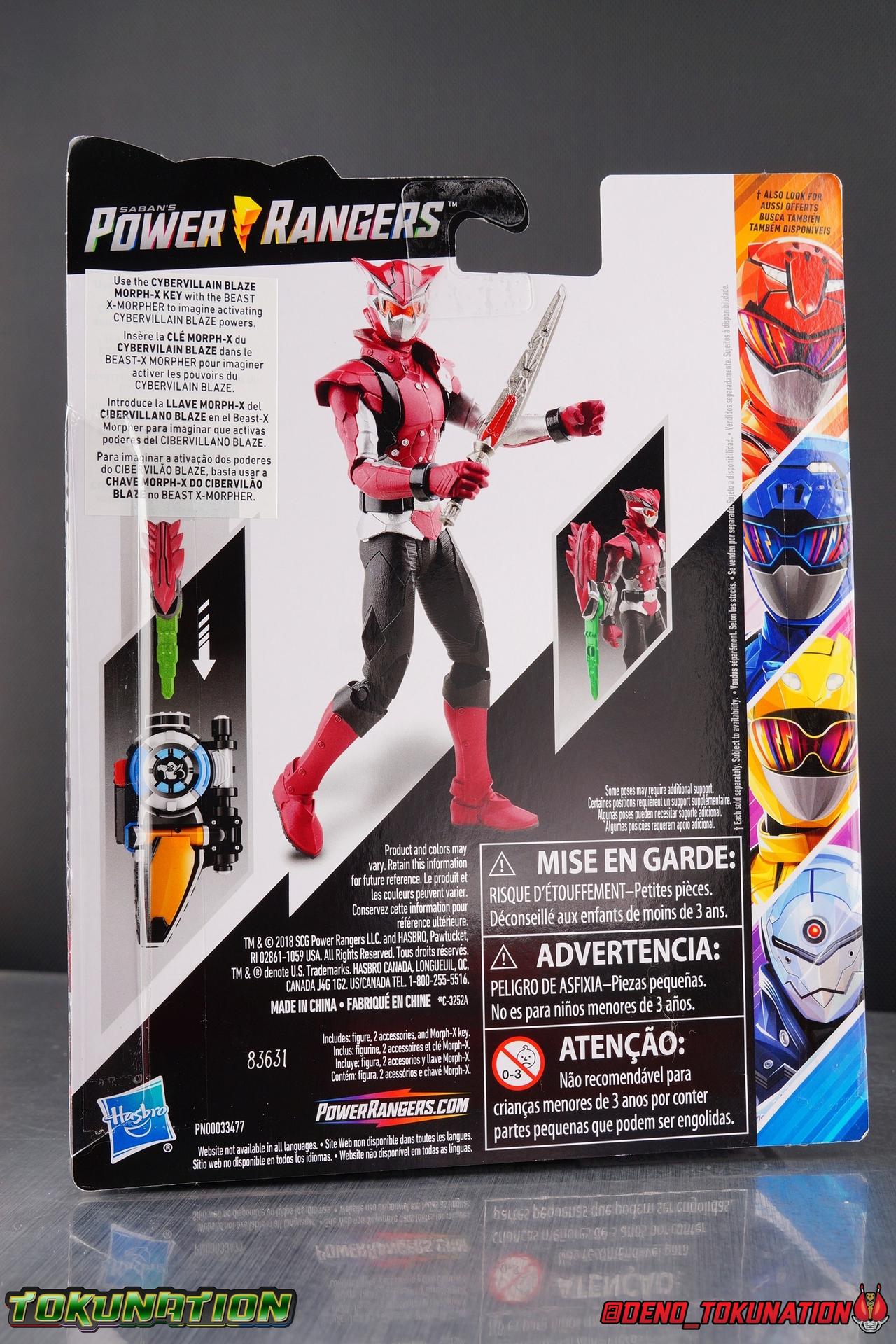 Grid Battleforce has tapped into the Morphin' Grid. Accessing the limitless energies within, the organization has sought to create a new generation of Power Rangers. 3 Recruits are chosen and their leader, their red ranger, will be none other than Blaze. Or he would have been. Thanks to the viral villain Evox, the Morph sequence is hijacked and ranger recruits Roxy & Blaze become something far more sinister. Their bodies left in comas, their mind's copied, Roxy & Blaze have become Avatars! These dark reflections of their true selves are loyal to Evox and have been given the ability to morph into their own dark ranger Avatars. Backed by Scrozzle and an army of Tronics, Roxy & Blaze are will menace the Beast Morphers as powerful Cybervillains for a long time to come. Packaging Power Rangers figure packaging shrank quite a lot over the years, as the figure's themselves did too. When Saban Brands revived the franchise in 2011, they brought out a totally new line of figure's inspired by those created for Samurai Sentai Shinkenger, but decidedly quite different. Initially their new line of Ranger figure's were at the 4" scale. But by the time of Megaforce & Super Megaforce, that scale had been largely phased out and replaced with a new 5" line of figures. While the packaging aesthetics didn't deviate a ton between each of the series that followed, Hasbro has taken things in a much bolder direction. Hasbro's Beast Morphers packaging is incredibly vibrant and a great evolution from what came before it. It's exactly the kind of change needed to really spice up the line and attract customers. Brighter colors and a less mundane packaging layout (looking at those very dark Ninja Steel card backs) go a long way to making a figure more appealing to potential buyers. A more standardized but larger brand logo is emblazoned across the front, but the most eye catching thing is the gorgeous new box art. Blaze's head shot is gorgeous. The back of the card back also features similar though smaller portraits for the rangers as well as Blaze. Each really looks incredible and I'd love to own prints of them. Both sides of the packaging also feature a cross-sell for the Beast X Morpher. Each figure in Wave 1 (and future waves) includes a key compatible with it to activate Morph and Battle sounds as well. Overall this is a really dynamic looking box for a "basic" figure line. It will definitely take up a little more retail space on shelf pegs. But given the fact that as you'll find out below, these figure's are bigger and better than any we've gotten before, these are bound to sell more readily than anything we've seen before as well. Main Figure Alright. So we got a really good impression of this line with the Red Ranger back in early April. Then saw what initial villain offerings were like earlier this month with the Tronic. Now we're finally ready to dive in with a review of our first Cybervillain, Blaze. As different as the Tronic is from the Basic Ranger mold, Blaze sits comfortably between the two types of figures. Design elements and articulation implementations from either side are in the make up of this figure. Thematically that makes a ton of sense given the nature of what an Avatar is in this show, and the origins of this suit's design from the Go-Busters source material. Villains can often be under represented in a lot of children's toylines, thanks in no small part to the fact that kids want to identify with the hero. Which totally makes sense. But we do so love a villain occasionally as well. Blaze one of the first explicitly villanous rangers in some time (sorry DC Dark Ranger). So one would hope his figure would really blow us away. As mentioned in my previous reviews, the new 6" line dwarfs the old Bandai 5" one and forgoes many of it's undesirable design traits. At a glance, it's apparent which of the two is the better line. But we have less of a direct comparison when it comes to villains, whose designs and articulation placement have tended to vary wildly over time. Despite appearances, Blaze's legs are actually really great for a figure at this price point ($9.84). While they are missing the outward hip movement that each of the heroic rangers features, but they do still have the swiveling rotating knee joint that makes them so versatile and forward/back hip movement. Honestly the lack of outward movement is more what I expected from this price point across the line, and honestly isn't terribly detrimental, especially if you're just picking these figure's up to build a nice display. Blaze does still lack ankle joints but none of the Basic line features ankles either so there's no loss here. All in all would I have liked more? Sure. But there isn't too much to complain about here either. This is still a great step in the right direction after villains of the past. While there's a little to be lacking in the articulation department, Blaze makes up for things with a number of sculpted details that really pop. Such as the flared out lower things, and ribbed inner thighs. And while the upper body is one piece without waist or ab joints, a common design aspect of the entire 6" Basic line, it is insanely well sculpted. Again, this is the first time ever that the Blaze/Dark Buster design has ever been translated to toy form. The riveted ab panels, the segmented armor, the belt, the shoulder straps, they all come together wonderfully at this affordable $10 price point. The chest emblem (like that on the Tronic) features some very small but well defined techy detailing that I greatly appreciate as well. Even those extended shoulder pads and that popped collar go a long way to giving this figure so much personality. It all comes together perfectly. The arms of course feature the same articulation cuts as the rangers & Tronic, and are likewise proportionate to the main body. They don't rest as properly flat against the body as the rangers, but they still look quite good. Each shoulder is hinged for outwar