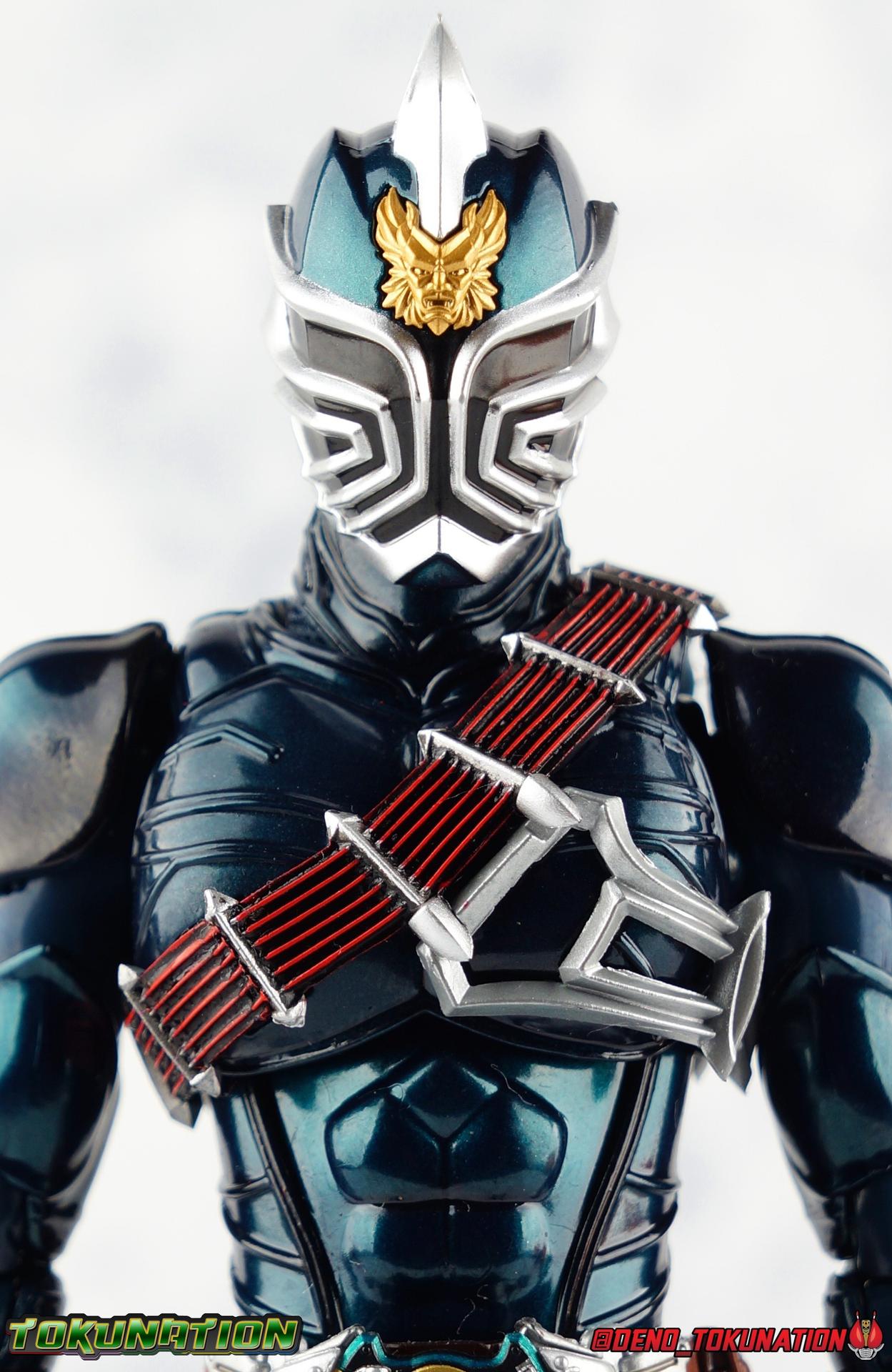 Kamen Rider Hibiki finally joined the S.H. Figuarts line for the first time over 4 years ago. Then last year, Tamashii finally made their second addition from Hibiki's world to this line with Kamen Rider Ibuki. And while the Oni Riders have been slow to appear in the Shinkocchou Seihou line, it looks like things are gaining momentum now! With an upcoming release for Kamen Rider Zanki on the way, we're taking today to look at his recently released apprentice and partner, Kamen Rider Todoroki! Like any Oni master, Zaoumaru Zaitsuhara took on an apprentice. Someone to pass along his skills to, his techniques, and one day his title as well. But the young man once known as Tomizo Todoyama had other plans. This skilled and kind warrior wasn't quite as experienced as his contemporaries Hibiki or Ibuki when he made his debut in the battle against the Makamou, but his dedication to protect others made him the hero he is today. Refusing to inherit the title of Zanki to create his own legacy, Todoyama took on the name Todoroki! Packaging It's the familiar Shinkocchou Seihou slip cover box once again! Not much can be said about it this time that hasn't been said before. It's gotten a bit stale (to me) over time but it's still a pleasing type of uniform collector's box thats great for storage. Main Figure First things first, like Hibiki, & Ibuki, Todoroki is just a really gorgeous figure. The sculpt of this body type is superb (even 4 years on!), really bringing to life these unique Oni Rider suits. In every way imaginable it captures the look of the on screen suit right down to the textured musculature. A favorite detail of mine. The design process Seihou's go through has always been much much more involved than that of the standard figuarts line and the best examples of this were the special booklets included with Kabuto & Hibiki. When the design begins with a sort of skeletal inner frame, and builds out what would be like a suit on a real body like this, you get a much more realistic application of articulation and proportion to the body as a result. Now despite the obvious cosmetic changes, Todoroki is exactly the same basic figure as Hibiki & Ibuki, even featuring identical articulation. When Bandai nails the basic design of the body, it can be truly astounding how outer level cosmetic changes can create a vastly different presentation. But of course, even 4 years later some of my issues with this mold still persist. I've always found the legs to be quite odd. To me, they look really long and at odds with the torso, especially when bent for crouching poses. Something about them looks off. They function well enough, though I've always thought this mold had one of the more strange figuarts hip joints out there. While the part separation undoubtedly gives them great range, the hips look very small by the time you angle them out fully, making the thigh seem huge by comparison. And while the knees function just fine, the feet irk me to no end. Despite being pretty big, too big if you ask me, they don't easily rest flat on any surface, and the toe bends are perpetually difficult to line up straight. It's just hard to get a release of this mold in a solid flat footed stance. But more to the point I've found 3 times now that the ankle joints just aren't quite strong enough either. Todoroki's belt is really loaded up with accessories like his predecessors. This figure comes with a lot and luckily you can store some of it on his belt given the display options you've chosen. When loaded out for static poses, the left hip can be outfitted with a Disc Animal holster with 3 non-removable discs sculpted in. Or you can keep the out of box standard part which is an empty holster for when you want him to hold the discs in hand. Straight out of the box, the center of the belt has Todoroki's Ongekishin Raigou attached. This rectangular piece is removable to simulate how it combines with the Ongekigen - Retsurai, though it does not actually combine (a seperate piece is included). It can be used with any Oni Rider that has a similarly designed belt. The upper body is identical to Hibiki, just removing the silver accent parts and replacing them with a fantastic bandoleer like sash as well as a silver mesh going under the left armpit. The upper and lower halves of the torso move independent of one another, though it's a tight fit to get either to move very far. I've always felt this body type was a bit stiff, but it gets the job done very nicely still. Todoroki's arms are basically identical to Hibiki & Ibuki, though like the rest of the body are painted in a nice glossy deep green. I really truly love the silver fade on the forearms. Something about that with the backdrop of dark green really gives this figure a nice premium feel. The left shoulder pad does impact the bandoleer at times so be careful not to scratch it, but thankfully the pads don't pop off frequently as they did with Ibuki. The left wrist also features Henshin Kigen Onjou. This one is in it's closed form, but an open version of the accessory is included to replicate Todoroki's transformation. And like Hibiki & Ibuki, Todoroki has a stunningly accurate headsculpt. All 3 riders have isnanely well detailed sculpts, but the Oni face on Todoroki's head is just top notch. The horn protrusion on his head is actually quite sharp as well, so watch out there. The head does tend to pop off a bit more easily than the others, which is odd given Ibuki was the one with a head swap option. It's astounding how different this mold has been 3 releases in a row. While the upcoming Zanki undoubtedly (and properly) isn't too different from his disciple Todoroki, I expect it to be another welcome addition. Accessories As with the other Oni Riders, Todoroki is fully loaded: 4 - sets of hands. This gives you basically everything you need to hold the other included accessories, Thankfully Bandai has even gone so far as to sculpt a small tab on the ends of a couple of the right