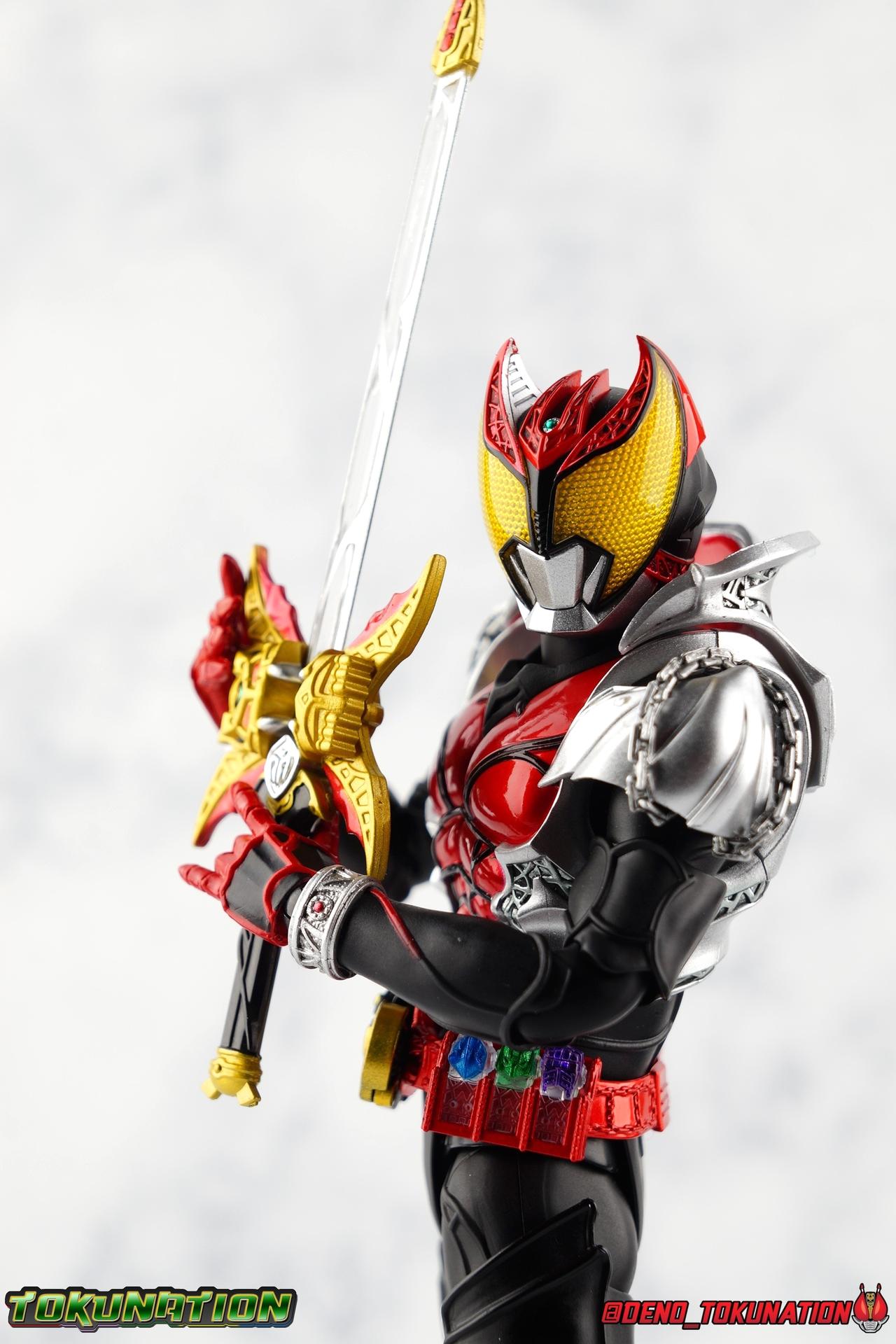 The shy young man Wataru Kurenai would rather spend his time crafting violins as his father Otoya did in life. But given that he's the son of the Fangire Queen as well, he was destined to become Kamen Rider Kiva, the Fangire King. And like the King's before him Wataru has one trusted partner, a member of the Kivat family, Kivat Bat III. With Kivat in tow, Wataru sets out to fight Fangires and protect humanity, just as his father did 20 years prior. But can Wataru overcome the fear and anxiety that have haunted him his entire life? Can he break the chains of his own fate and save the world? With a host of friends, family, and allies along the way, the history of Kiva and the Fangire plays out, across the past & present! It's time to break the chains and bust out a long awaited brand new gallery from Kamen Rider Kiva! S.H. Figuarts collectors have waited with baited breath for years, and years, for Tamashii Nations to finally deliver on the promise of Kiva. Well it may have taken until the end of the Heisei Era but he's finally here and we couldn't be more excited to share a proper review of S.H. Figuarts Shinkocchou Seihou Kamen Rider Kiva! ** This gallery contains 100 images, and is spread across the first three posts of this thread. Skip below to see the good stuff if you like! Packaging It's the familiar Shinkocchou Seihou slip cover box once again! Not much can be said about it this time that hasn't been said before. While it hasn't really changed, maintaining the same basic form factor with every single release, it's still a pleasing type of uniform collector's box thats great for storage. It's just great to finally see one of these boxes with Kiva's art adorning it! Main Figure It's been some time since the last new mold joined the Shinkocchou Seihou line. In fact Seihou Wizard was the last brand new mold the line gave us and that was last year. Since then we've had a few remolds/repaints but Kiva is the first truly new figure in a while. And with the Seihou line in particular, that always brings huge levels of excitement, and big expectations. How does the long awaited king stack up? Find out below! Kiva is an incredible addition to the line. I've said this many times with Shinkocchou Seihou releases in the past, but this one truly looks like it walked off the screen. It's an absolutely stunning recreation. From an engineering standpoint I'd say it's one of the best as well. The W mold was my long time favorite from the line, Rider 1 really upped the ante, and Wizard was an absolute delight. While I'm not sure that Kiva necessarily blows any of the other releases away, it is remarkably nice. Starting with Kiva's feet and legs, they provide a very solid base of support. The asymmetrical design of his right leg has always struck me as well, the chains always draw my attention. It's just such a unique look that sticks with you, much like how I've always loved Kamen Rider Kickhopper's leg design. For their part, these chains are molded in place but have some minor flexibility to them so that you can hopefully avoid litearlly breaking them. Kiva's toe bends function properly on both feet despite the bulk of the chains on one and the ankle tilts seem to be pretty even as well. Always good to see asymmetry that somehow still leads to symmetrical articulation cuts. The knee bends leave a little to be desired, coming out to about a 45 degree angle, but the hips make up for this shortcoming with a wealth of range. Which is totally necessary to recreate that iconic kick pose of Kiva's. Kiva's waist in it's dormant state out of box is just the red Kibuckle belt which holds his driver and trinkets. Fun fact, Kiva's belt was actually the final Heisei henshin belt to not be called a "Driver". From Decade on we've had nothing but Drivers. You'll need to grab the 6 individual Fuestels and 2 Fuestel holders included with Kiva and attach them to the sides of the belt to get his hips looking right. The big thing here of course is really the second star of the Kiva show, Kivat Bat III! The talkative sidekick to Watar Kurenai, Kivat also allows him to transform into Kamen Rider Kiva. On his own, Kivat is a tiny but slightly poseable bat. The ends of his wings can rotate up to simulate flight while his mouth opens to simulate his speech as well as to accept Fuestles. A small tamashii stage adapter is included to let you display Kivat flying around Kiva as well. To get him on the belt just plug his feet over the bar along the top of the belt and rotate him down, plugging him in place. He can still accept Fuestels in this state as well, plenty of clearance for the mouth to open. Kiva's upper body does some really interesting things that I appreciate too. The red armor that makes up his chest extends down around the ab area of the figure. Despite appearing to be one piece, the lower section actually sits under the chest and is independently articulated. As you push the torso down towards the waist, arching the back, the abs push up into the chest. This increases the range of movement and makes for more natural articulation as well. If you straighten the torso back out, you can see where th e tip of this ab armor is sort of tucked up into the chest and there's a small gap, pushing it back down seamlessly fills the torso once more. It's really genius. Likewise the figure's back also tries something interesting. The entire chunk of armor that makes up the collar around Kiva's neck and the armor extending down his back, is on it's own sort of raised joint that allows it to lift up from the back & shoulders. This gives the figure an interesting clearance extension. It's unnecessary, kind of bizarre, but really cool and appreciated. While side to side torso movement may be hindered somewhat by the silver armor around Kiva's ribs, it's hard to deny just how good and seamless the entire upper body looks. At first glance every bit of it look likes one piece, but there's so much complexity involved. I was worried tha