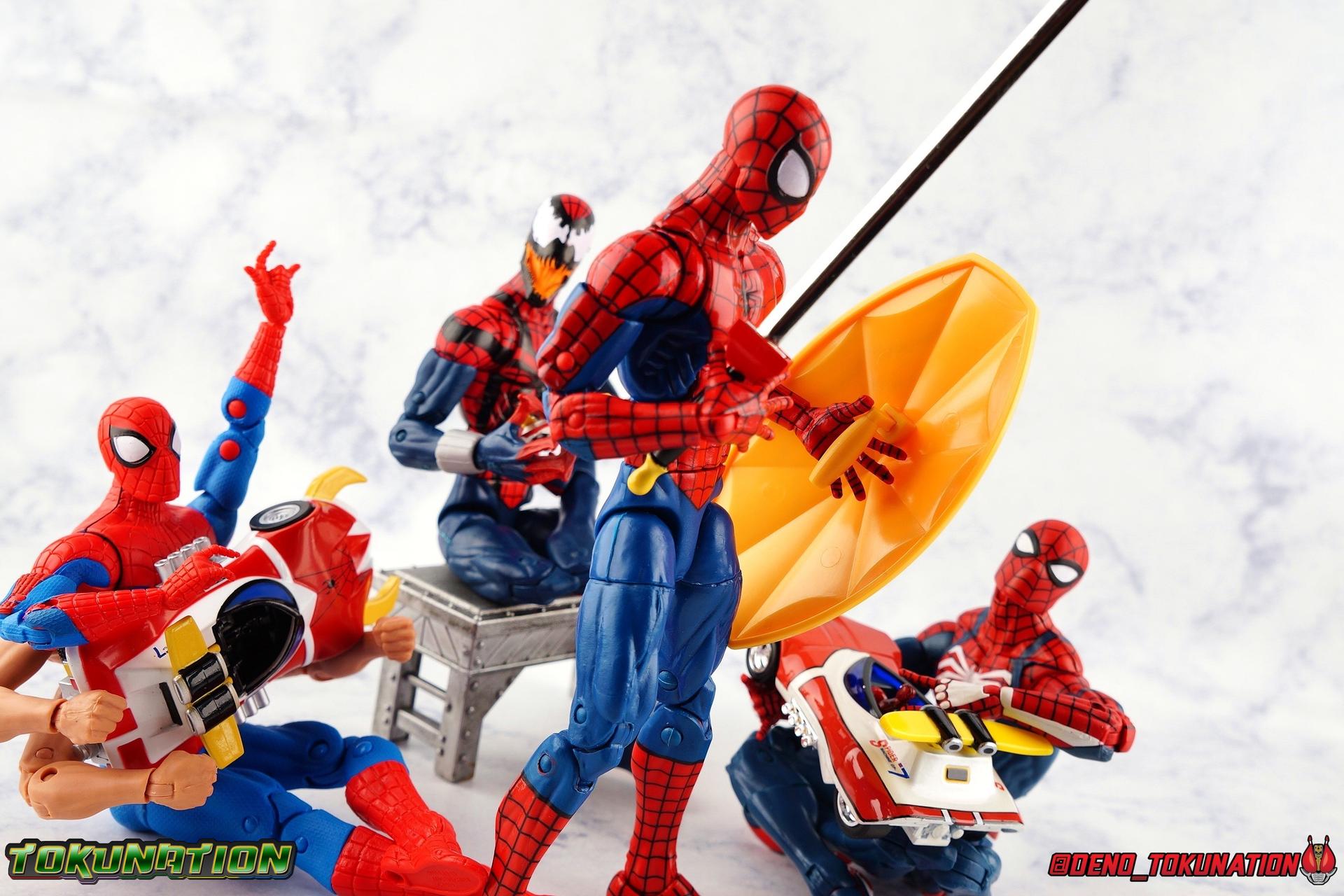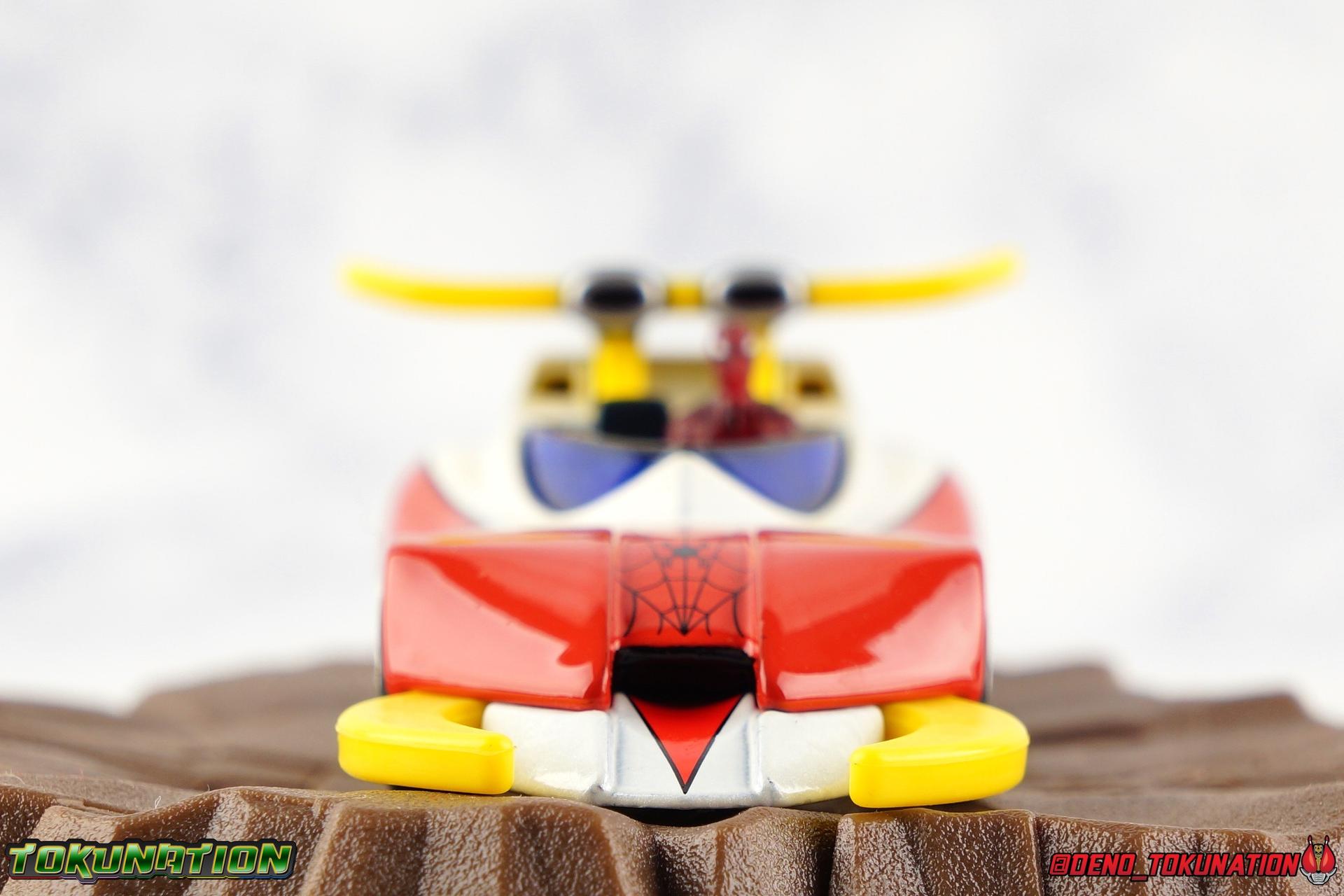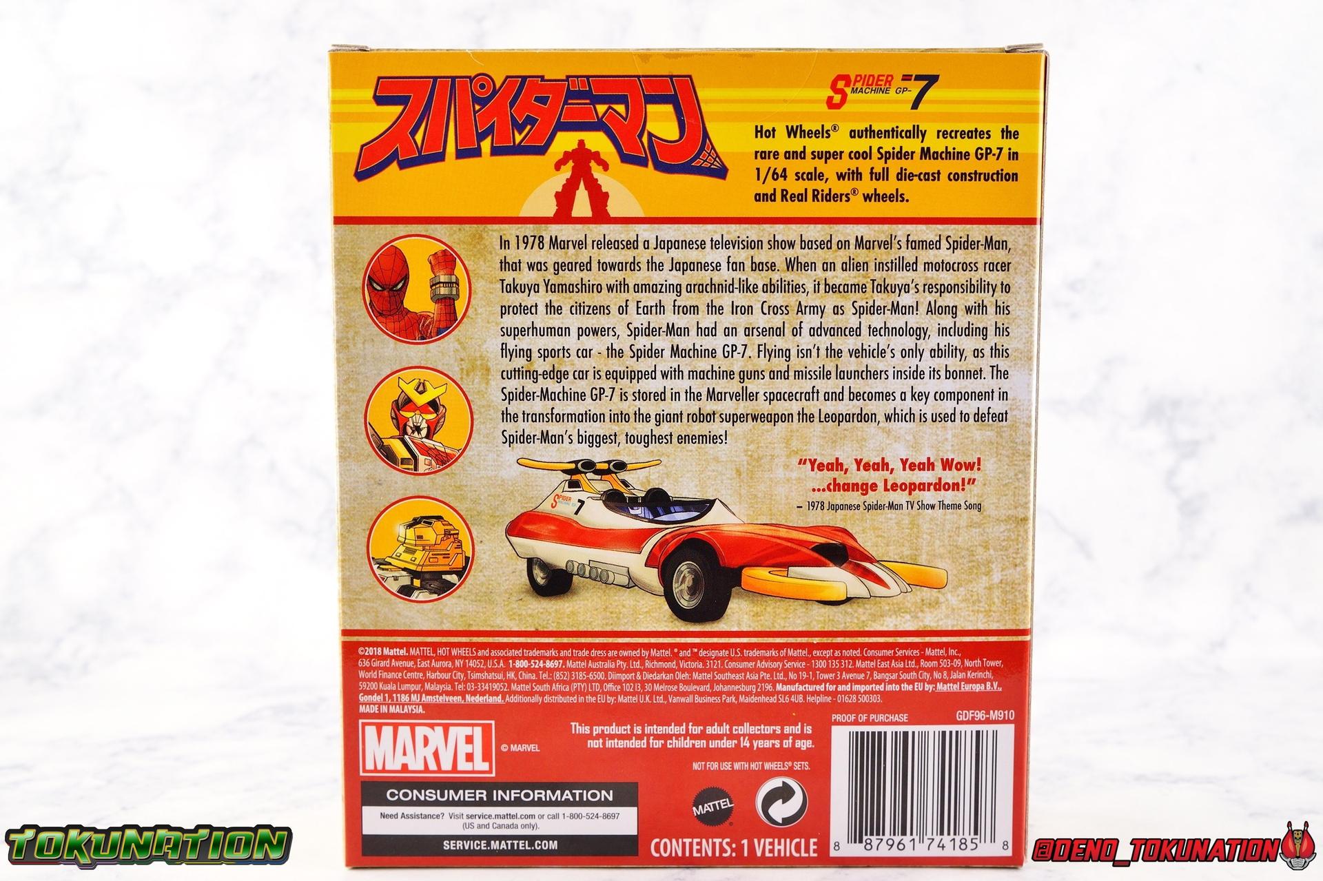 400 years ago, Professor Monster came to invade Earth with his Iron Cross Army. Active once again in 1978, his legions would cross paths with the young motocross racer Takuya Yamashiro. With a fate greater than he knew, Takuya was both destined to lose his father to Iron Cross, and encounter the strange race of the Planet Spider. Now infused with the Spider Extract, and given command of the mighty Spider-Machine GP-7 and Marveller, Takuya has become the Spider-Man! This Emissary of Hell will fight to defend the Earth for as long as it takes to stop Professor Monster and his hordes! The classic 1978 Toei produced Spider-Man series has become a bit of a cult sensation in the last decade here in the US. For a time it streamed in it's entirety for free on Marvel Entertainment's website, but since has been circulated in fan groups through less than legal means. What that's done though is build up a huge following for the series here. Perhaps a by-product of just how massive comic book hero Television and movies have become in the last decade, this series has indeed won a special place in the hearts of many a fan. The character's appearance in a handful of Marvel comics Spider-Man Spider-Verse event series, the possibility stated by filmmakers of him appearing in the next Into the Spider-Verse film, and a recent spate of new apparel being released has continued to cater to the western fan base for the series. This years SDCC gave us possibly the biggest nod to the character though with Mattel's release of the Hot Wheels Spider Machine GP-7! With all that out of the way, let's take a look at this little vehicle and see if it can whet our appetites for the emissary of hell! Packaging Mattel has gone above and beyond for the packaging of this exclusive. The exterior packaging is a really gorgeous spiderweb themed box with absolutely stunning Spider-Man artwork on the front. Though I've yet to track down exactly who the artist is that did this piece, it reminds me very much of the work of Alex Maleev or a similar artist. The rear of the box features a general breakdown of the series plot, a quote from the show's classic OP, and several new pieces of totally gorgeous artwork. Headshots of Spider-Man, Leopardon, and the Marveller, as well as a fabulous full vehicle shot of the GP-7! Inside this box is a more typical Hot Wheels bubble on cardback. Featuring more of that insanely nice artwork on the front, we get a great profile of the GP-7 through the bubble. The back however treats us to some of the best art of Spider-Man and Leopardon together I've seen in a very long time. I'd love to have a print of it to frame and put on my wall. The open back of the card gives another profile of the car through the bubble. Overall the presentation of the packaging is downright perfect. If you just picked up this relatively inexpensive exclusive at the con ($15.00 retail) then leaving it in the box as a display piece is a great option. I of course just had to crack my open for review! Spider Machine GP-7 The Spider Machine GP-7 is a downright sexy design and Hot Wheels has recreated it in all it's glory at their typical 1/64 scale. I'll be the first to admit I'm not a Hot Wheels or diecast car collector and I know that those fandoms can be pretty intense in the collecting scene. I'm simply reviewing this car as representation of a vehicle I love from a series I adore. So if I'm less familiar with the ins and outs of what to expect from a toy of this nature, please bare with me. The GP-7 is a pretty stylish design, and as far as toys of it goes, this is likely the most accurate one we've ever seen. You can see in my gallery below that I've included a bunch of comparisons to the old Charawheels style Spider Machine packed in with the GX-33 Soul of Chogokin Leopardon. Until this year that was our best option for owning the GP-7, and that came out in 2006! On the merits of it's design alone, the Hot Wheels GP-7 gets the general proportions and body styling of the design far better than the SOC release did. Here and there though there are choices I find odd. For one, and I'm unaware if this is typical of Hot Wheels, the Spider-Man figure is molded into the seat. Normally I wouldn't mind such a thing, if it were painted better. Upon close inspection it's mostly just a read torso with a haphazard black spider web application and some barely visible eyes. Were the figure a bit nicer and removable, I think it could improve the release a fair bit. While the general gloss of the paint job is quite nice, I find that some of the finer details are a a bit spotty and run across lines. But the SOC release didn't even have the black contour lines painted on it way back when, we at least get that here. And the "Spider Machine GP-7" tamphograph is gorgeous, just wonderfully clean and crisp. I will say that the rear end of the car bothers me a bit. The old SOC gets the general shape right, and the color of the tail lights. While the Hot Wheels opts only for the exposed engine beneath the rear end. Ultimately a combination of the two toys would result in the ideal rear end, but I don't think that it takes a way too much from the Hot Wheels release either. I do also have a personal preference for the painted silver exhaust pipes of the SOC rather than the chrome ones on the Hot Wheels. Final Thoughts Am I disappointed that the bonnet doesn't open to reveal the Spider Machine's weapons? Sure. But I'm not certain it was on the table to expect such a thing from a $15.00 Hot Wheels car either. The Hot Wheels GP-7 is a solid little vehicle. I was kind of hoping on total chance it would be compatible with SOC Leopardon's base but oh well. The truth is that this release looks fantastic with the SOC, every bit as good as the car that in fact came with it. Spider-Man merch of all varieties just seamlessly fits together if you ask me. There isn't enough to separate any one Spidey toy from another to keep them from all working in your display t
