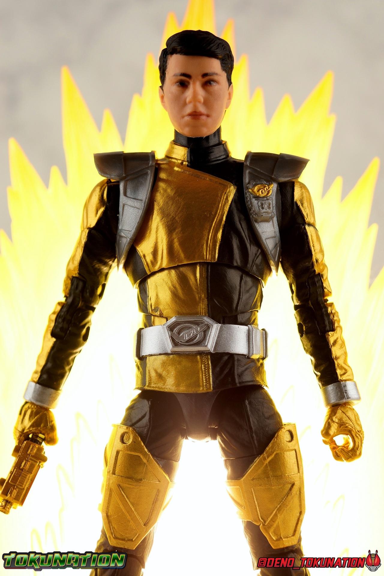 As a child prodigy, it was a no brainer that Nate Silva would join Grid Battleforce. Discovering a way to access the Morphin Grid and harness it's very essence as Morph-X energy, Nate would go on to create a new generation of Power Rangers! But with the emergence of the viral villain Evox and his deadly avatars & Tronic soldiers, the world would need more than 3 Power Rangers. Abducted by Blaze & Roxy, Nate hatched an escape plan with some Morph-X and Mantis DNA. Now Nate, as the Beast Morphers Gold Ranger with his partner Steel the Silver Ranger, protects the real world from the digital armies of Evox! Packaging In creating this line, Hasbro was keen to make sure they appealed to collectors and fans of the franchise from throughout it's various eras. Given the aim to make this appeal to an older crowd, the packaging seems to have taken a page out of the Star Wars Black Series book. In similar collector style boxes, the Lightning collection figure's look a bit brighter thanks to a primarily white color scheme. But they also really pop thanks in no small part to some wonderful box art, lovingly crafted by artist Tom Whalen aka @strongstufftom on twitter. His artwork is breathtaking, and makes these figure's feel like just a bit more of a passion project from the folks at Hasbro. The artwork takes up a majority of the packaging, while the back of the box is relegated to a single stock photo of the figure. But that's not what we're here for anyway. Main Figure Things really have moved along pretty swiftly with this line. It was only a few months back that the first wave of Lightning Collection figures had even made it to retail. Now, we've had two full retail waves release, had a retail and con exclusive two-pack, and had several more store exclusive releases revealed. Today I finally had the chance to crack open and review one of the first figures from Wave 2. The Beast Morphers Gold Ranger! Of course this is a Power Rangers collector's line, but undoubtedly there may be a good number of people (like myself) who have been craving a figure of this design for years as Beet Buster. Whatever your collecting or franchise preference may be, we can all agree that this toyline has catered to us all, and this figure is a prime example of that. The Gold Ranger is another new mold for the line, and we've already had quite a few unique molds already. This is probably one of the most interesting and well sculpted thus far in my opinion. Beast Morphers Gold has a pretty unique armored up design inherited from his Japanese counterpart and shared with their partner characters. The mechanical/armored look is something that works very well with this line, like with the simultaneously released Magna Defender. Gold's robotic style armor adds extra bulk to this figure making him look noticeably more imposing than others in the line. Paint details may obviously vary from figure to figure, but I'm really satisfied with the gold applications on mine, particularly on the legs. The legs themselves function in the same basic pattern as the rest of the line with minor caveats. For ankles, BM Gold has the same clicking and rocking joints we're used to, but thanks to his unique boot design you may lose a small bit of movement both forward and back. The ratchets on the ankles are also just a bit tighter so be sure to apply the right amount of force. Like most of the rest of the line, BM Gold also has rotating boots below the knee joint giving him some bonus articulation. The knees themselves function more or less exactly like other releases in the line like Dragon Shield Red or Zeo Gold, even if the extra thigh armor bulk maybe shaves a few degrees off. I appreciate that the thigh armor is attached and not a loose fitting cuff around the legs, though some sliding mechanism would have been welcome. They can impact the waist joint a bit when posing. There is of course no side to side waist joint so you may miss that, but I find that the way the rest of the torso is articulated manages to make up for this. As with the rest of the line the ab crunch is solid and strong, and the ball jointed upper body flows very smoothly. Hasbro also didn't skimp on the paint job for these parts, with the gold paint stretching across the seen usable portion of the joints and extending below the belt. The whole torso has this great sort of ruffled fabric look to it that I love, adding an extra dimension of realism to these figures. Around the Gold Ranger's chest is a gray shoulder strap harness features a molded in Transporter. Surprisingly this harness is made of a soft rubbery plastic and is entirely removable. You can slide it down off the arms and throw it on another figure if you so choose. Speaking of, the arms are of course more of the same that we've come to expect from the line. Solidly designed and constructed, they provide a really great range of expression for Gold and are totally uninhibited by the harness he wears. The hand pegs feel a little tighter on this release but still function just the same. And that beings us to the Gold Ranger's helmet which is done quite nicely. Some paint imperfections aside, it's a really great approximation of the show prop and thanks to it's ball joint can move in all the right directions. Perhaps the only drawback is the cuff around the back of the helmet which can impact the figure's back/shoulders. Honestly this is an all around very solid figure. I've been really impressed by the entire line thus far. I know people have their qualms about some QC and design choices, I do too. But at the $20 price point of this line, I can look past some of that. It's still leaps and bounds better than what we had before. Can you imagine if Bandai America had taken a crack at this design? "Beast Morphers Cheese Ranger" doesn't have the same ring to it you know? As an avid fan of Go-Busters I'm beyond thrilled to finally own this figure. While Lightning Collection figures tend to be slightly larger than S.H. Fi