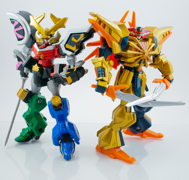 I don't like that Clawzord. I love the BoA one I have, I love the DX version I don't, I love it on the show. But the Clawzord just doesn't lend itself well to this kind of treatment. The colors scheme makes the plastic look cheap, the unpainted orange legs on the back definately look cheap. But then they do also on the BoA version. The head looks aweful. It looks alright on the figure on that spinning disc, but open like that it looks stretched. Like Stewie in PRS Cosplay. The Samura looks great, and perfect in comparison. But the Clawzord is a definate pass.