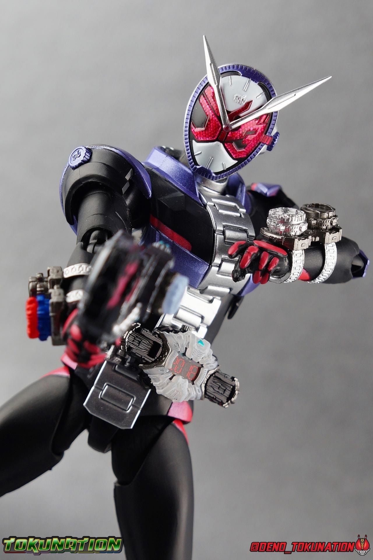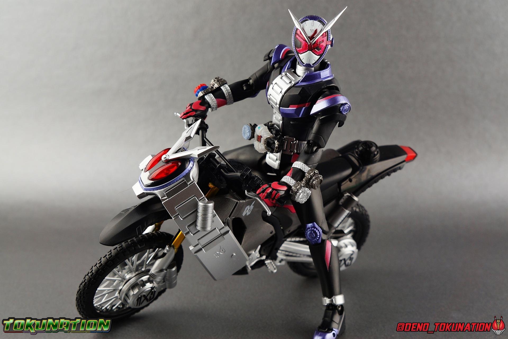 Ruling over space & time is great and all, but if you have to walk everywhere it's certainly less fun right? Cue the Ridestriker! Hailing from 2068, the Ridestriker is the personal Rider Machine of both Kamen Rider's Zi-O & Geiz. Each has their own Ridestriker, and though they came and went infrequently in series (appearing in only 5 episodes), what's a Rider without their Machine? Tamashii Nations has seen fit to not only bring us this versatile machine, but also to load it down with the signature weapons of the series two main protagonists. Thus filling the Zikan Girade & the Zikan Zax sized holes in many collections. Will you give this rider machine to the Overlord of time, or the Savior of the future? either way, it's Rider Time! Packaging The Ridestriker's packaging shares the same basic motif as the individual rider releases from Zi-O, though I think a wide design rider bike looks a bit stronger overall than the individual figures. Say what you will of Web Exclusives not having windows, the art design feels way more cohesive on a fully closed box like this and the theme works well. Main Figure The main component of this set if of course the S.H. Figuarts Ridestriker. While we'll get onto the wealth of accessories included below, I just want to touch briefly on the primary piece of the set. The Ridestriker is a real dual purpose Rider Machine, as both the Primary & Secondary rider of the series use it. Something we don't see terribly often in rider. I almost feel like it would have benefited from being sold in a two pack. As is I try not to double dip terribly often anymore though, so I only picked up one this go around. For a refresher, feel free to check out S.H. Figuarts Kamen Rider Zi-O & Kamen Rider Geiz galleries as well. The Ridestriker doesn't necessarily do anything to elevate what we typically see of Rider Machines in S.H. Figuarts, but what it does do it does just fine. Rarely do Figuarts vehicle really mix things up much. Which is, I believe, a big reason why we see them released in these accessory sets now far more often. Compared to other recent machines like Machine Builder and Lazer Level 2, this is another really solid bike that is thankfully of a bit more subdued design and color scheme. With a general watch design for the vehicle, the silver/black & minor pink accents really make this a sharp release. In practice in show, this bike transforms from a Ridewatch into said bike. Thankfully the design can be far more streamlined and made accurate to the bikes' design when dispensing with that gimmick for the Figuart. Areas of particular note are the Zi-O emblems on the front and rear wheel (which are sculpted), as well as a tampographed version on the main body. Looking closely you can also see a very delicately sculpted example of it on the far end of the watch band, while on the reverse side wee see the sculpted in "tabs" carried over from it's Ridewatch form. And although the front wheel has an emblem on the opposite side, the rear wheel features what would be the proper face of the ride watch form, which is a pre-applied label rather than a paint app. This is particularly funny because no actual physical ridewatch released in the line has a label for it's watch face at all. One more thing I really dig is of course the "face" of the Ridestriker. Hearkening back to designs like Battle Hopper, Acrobatter, and the like this adds a little bit of personality to the design. While I often find I have trouble posing Figuarts on their bikes (trust me it's user error, not the bikes themselves) Zi-O & Geiz seem right at home on the Ridestriker. And for fun, and despite not having the correct hands to do so, Woz also fits on it just perfectly. I really appreciate the specific hands included in this set for Zi-O & Geiz to grab the handlebars as they offer a really solid grip for the action shots you can see in my gallery below. Honestly it's really hard to screw up a Rider Machine in this line. As long as they work as solid bikes, and include plenty of accessories, they really can't do any wrong. This one is another winner. And as for accessories, see below! Accessories The big draw of this set is of course the plethora of accessories for Kamen Riders Zi-O & Geiz: 1 - Wheel base. Plug this over the front or rear tire on the Ridestriker to get a static pose out of it, if you'd rather not use the kickstand. 1 - Tamshii Stage adapter. This curved clear adapter is compatible with any standard Tamashii Stage arm plug. The part itself snaps onto the underside of the Ridestriker just in front of the rear wheel, and hugs around the underside of the engine. It's a nice snug fit, just be careful not to over stress the part when putting it on or taking it off. 1 - Zikan Girade Sword Mode. This sword form is of course one of the big draws of this set. In recent years (and continuing with the recently revealed SHF Zero-One) the signature weapon of the rider generally comes along later, packed with a vehicle or accessory set. Sometimes even coming with another form all together. The Girade is a much needed accessory for Zi-O and one that should definitely please if you picked this set up. If you didn't pick this set up, you may be kicking yourself in the near future though. The upcoming Figuarts Zi-O II release comes with his second sword, the Saikyo Girade, which in turn combines with the Zikan Girade to form the Saikyo Zikan Girade. Unfortunately, Zi-O II does not come with it's own Zikan to use with the Saikyo. So you'll need to have picked up this Ridestriker set to have it. Good luck to any and all looking to track it down after the fact. The Zikan Girade can accept ridewatches on the handle via the same rectangular plug as the Ziku Driver. 1 - Zikan Girade Gun Mode. I do feel like the Gun & Sword mode could have been consolidated into one functional accessory given the mechanics of the design. But having two separate weapons works out pretty nicely, especially given the above mentioned 