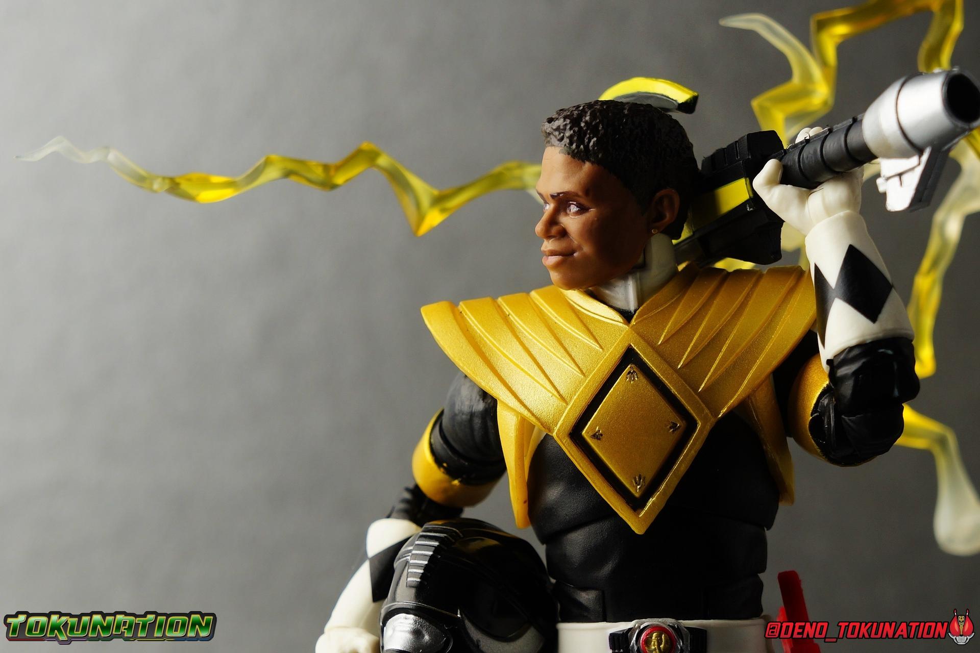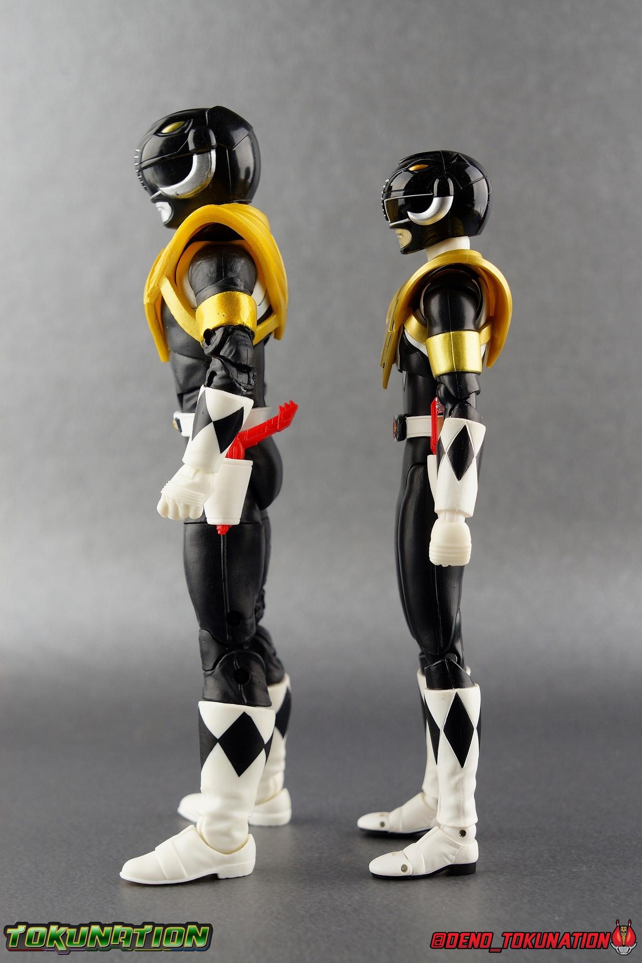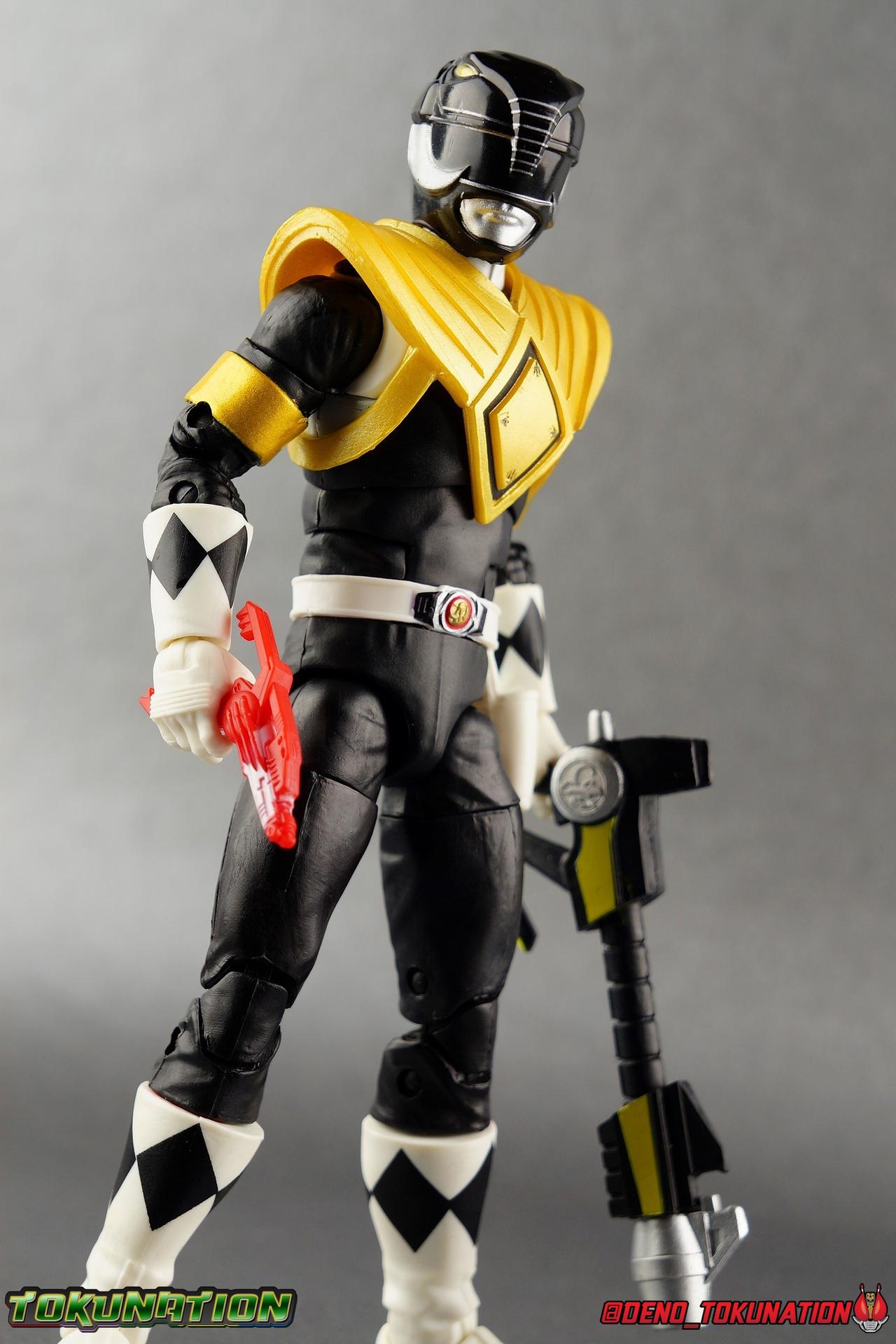 Set to impress Angela with a pair of pearl earrings for their big date, Zack has no idea that Rita Repulsa has tricked him taking the Pearls of Stillness! Spellbound to freeze everyone as soon as they're worn, the Power Rangers as well as Zack's date are stuck. Now it's up to Zack & Tommy to face off against the Oysterizer on their own. And in a moment of need, the Green Ranger's mighty shield can be passed to another. Wielding the Dragon Shield himself, the Black Ranger takes on the Oysterizer! You may recall (though it's been some years) that this form was the basis of an SDCC 2014 S.H. Figuarts exclusive, which I also reviewed way back when. 5 years later and we're getting a brand new take on it with the Lightning Collection figure. Just as a refresher, the Dragon Shield Black Ranger (5 years ago known as the Armored Black Ranger) originates from the "Zyu2" era of newly commissioned footage which Saban ordered from Toei to flesh out the end of MMPR season 1. So this interesting form is exclusive to American aired footage and believe it or not, this unique power up is featured in less than 1 minute of actual screen time. That's it! But it was often something fans wanted to see as an action figure for years prior to the release of the Figuart. Now we have a newer and cheaper alternative with the Lightning Collection figure as well. Packaging As we are all pretty familiar with the line by now, I'm sure I probably don't need to go through my usual list of reasons why it's awesome. Hasbro was keen to make sure these appealed to collectors and fans of the franchise from throughout it's various eras. And they also really pop thanks in no small part to some wonderful box art, lovingly crafted by artist Tom Whalen aka @strongstufftom on twitter. His artwork is breathtaking, and makes these figure's feel like just a bit more of a passion project from the folks at Hasbro. The Black Ranger's profile artwork takes up a majority of the packaging, while the back of the box is relegated to a single stock photo of the figure. Like Goldar and the recently released Psycho Blue Ranger, this release features features a non-standard color palette for the box. Rather than the predominantly white boxes of the mainline, this retailer exclusive is in a primarily black box. Main Figure While Zack's shielded form has previously been known as the Armored Black Ranger, (see the SDCC '14 exclusive) "Dragon Shield" seems to be the way Hasbro is deciding to name any other MMPR Ranger in the Green Ranger equipment now. For the purposes of this review I'm referring to him by the given Hasbro name, Dragon Shield Black Ranger. By now this mold has seen a few releases. First with the SDCC Dragon Shield Red Ranger, then again with the Fighting Spirit Green Ranger. So if you've handled either of those, you're in for an identical experience here. Black Ranger of course has all the same solid standard articulation as the other uses of the mold. Full rotating rocker ankles as well as a clicking swivel joint for them to go back and forth give us a solid start. Above this is a shin swivel as well at the boot cuff, allowing you to rotate that portion of the leg 360 degrees below the knee if you wish. Then we get a very playful double jointed knee which allows you to fully bend the leg back in on itself. This is already great but there's a (tight) 360 thigh swivel as well as full hips with back/forth and outward motion. Going backward you will impact that good old sculpted butt plate again. But it far from kills the articulation. All of these cuts are executed in the traditional Marvel Legends/Star Wars Black/Lightning Collection Hasbro styling, doing their best to not be obtrusive to the character's design. I will say that this go around with the mold I noticed a lot more play in the lower body joints. The hips in particular are a bit loosey goosey so to speak. Around Zack's waist is the ever iconic Power Morpher and belt. In this instance the Morpher is properly silver unlike the Green Ranger's gold one, and a new Mammoth coin is sculpted into it. On his left hip is a holster meant for the included Blade Blaster. However, where the SDCC Red Ranger releases included the smaller holstered version of Blade Blaster's dagger mode, Dragon Shield Black includes only the Blaster Mode. While it still fits into the holster just fine, it doesn't look quite right to see the back of the blaster mode sticking out from the hip like this. It's a strange omission to be sure, though one I'm certain may be in part due to cost concerns as well. Like his mold mates, the Dragon Shield Black Ranger has a pretty big but flexible piece of chest armor, the Dragon Shield. Thankfully the soft rubbery type of material used for the chest shields in this line is rigid enough to hold shape properly, but also flexible enough to allow mostly free movement of the upper body. I'd like to mention that I'm glad Hasbro didn't skimp on the white diamonds under the armor either. It's a superfluous detail, but one I appreciate. The lower torso has the same satisfying ratchet ab joint I've come to appreciate from the line as well, and the ball jointed upper body. The combination of the two gives you quite a bit to work with when posing. The arms hit the sweet spot with that classic butterfly style shoulder joint. As you angle the shoulder back, the armor slides out to fill the gap and vice versa. There's a full 360 rotating bicep swivel, double jointed elbows, and the same peg style hands as the rest of the line. Honestly if nothing else the arms have been generally phenomenal on all the Lightning figures. Making a great compromise of form and function. The Black Ranger's head round's out the figure. Nice and proportionate to the body, it's thankfully unobstructed by the shield armor. And owing to a standard ball jointed neck we get full rotation and plenty of back and forth with this one as well as an easy time of changing out for civilian heads across the line. Perhaps