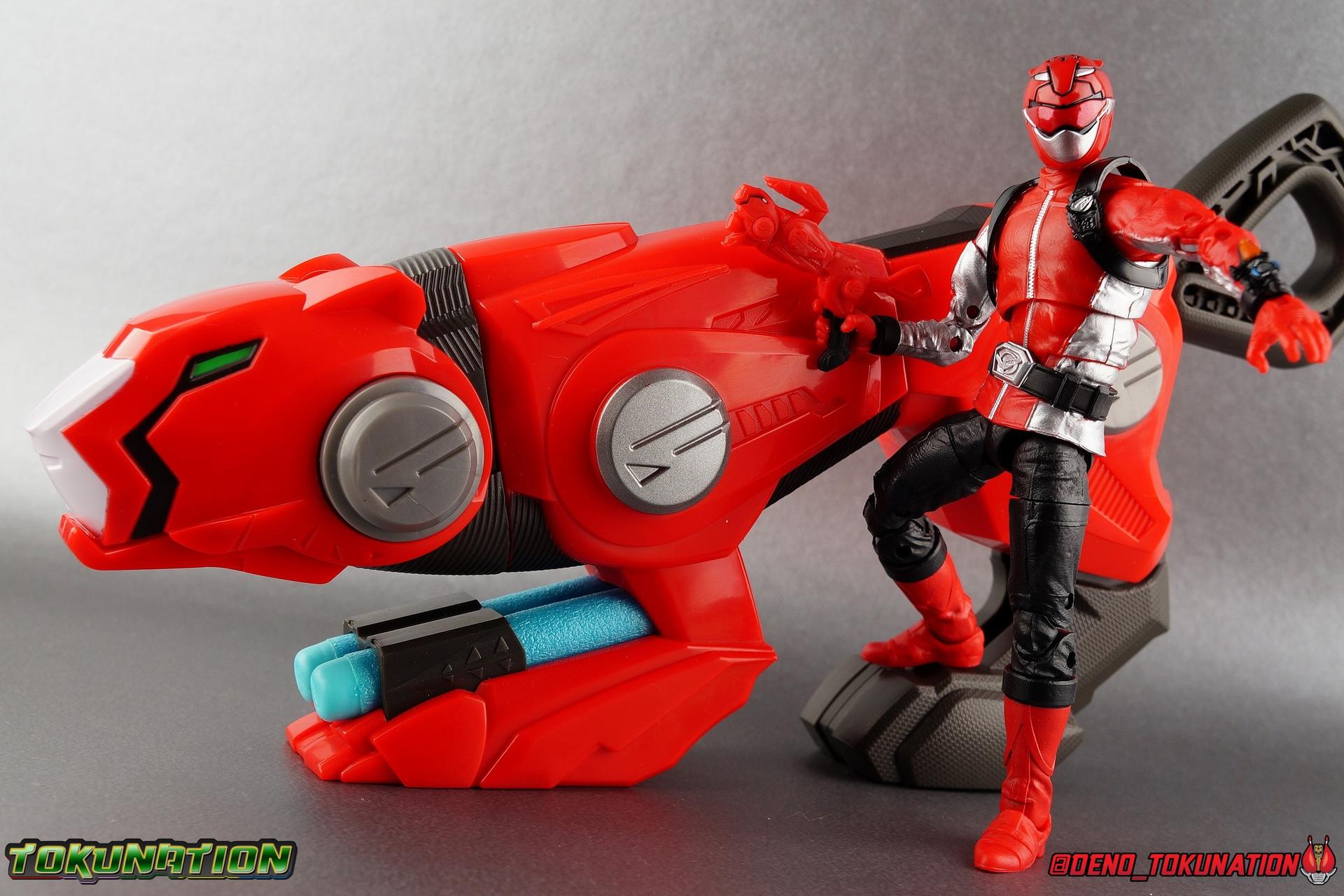 Devon Daniels wasn't destined for greatness, but given the chance, he became a hero. When the viral villain Evox entered our world to take control of the Morphin Grid, he attempted to create his own evil rangers, Avatars. Succeeding with Blaze and Roxy, it was thanks to Devon (and Zoey) that future teammate Ravi was spared from this kind of control. Dashing Evox's hopes further, Devon, Ravi & Zoey stepped up when Grid Battleforce needed them, to become the Power Rangers Beast Morphers! Now, hiding his identity from the city he protects and even his own father, Devon leads the Beast Morphers in their battle to stop Evox & the Avatars, and save the real Blaze & Roxy. Packaging In creating this line, Hasbro was keen to make sure they appealed to collectors and fans of the franchise from throughout it's various eras. Given the aim to make this appeal to an older crowd, the packaging seems to have taken a page out of the Star Wars Black Series book. In similar collector style boxes, the Lightning collection figure's look a bit brighter thanks to a primarily white color scheme. But they also really pop thanks in no small part to some wonderful box art, lovingly crafted by artist Tom Whalen aka @strongstufftom on twitter. His artwork is breathtaking, and makes these figure's feel like just a bit more of a passion project from the folks at Hasbro. Recently Tom has begun sharing the full versions of his ranger profile art on Twitter, most recently that of the 4 figures in wave 3. Main Figure The Power Rangers Lighting Collection continues to truck right along with regular releases. So many in fact that I'm honestly having trouble keeping up with my reviews! But you won't see me complain. I've enjoyed myself so much each time I've gotten a new LC figure in hand for review. Recently, Hasbro made the official announcement for Wave 3 which includes Ravi the Beast Morphers Blue Ranger. So I figured it was the perfect time to finally get my review of the Beast Morphers Red Ranger from Wave 2 out! So does this figure have beast morphin might? Read on to find out! This is another new mold for the line, and one that I've been really excited to tackle for a while. After just how excellent the Beast Morphers Gold Ranger turned out, I so hoped the Red Ranger could live up to my own hype. For years I've wanted to have a better Red Buster figure for my Go-Busters display. I've had all the Go-Busters Figuarts for years, but they definitely have their flaws. This figure really does fill that gap in my collection. Like many LC figures, the Red Ranger carries through much of the same standard articulation cuts we've come to know. Full rotating rocker ankles and a clicking swivel joint for them to go back and forth. A shin swivel at the boot cuff, allowing you to rotate that portion of the leg 360 degrees below the knee if you wish. A really solid double jointed knee which allows you to fully bend the leg back in on itself. In addition is a 360 thigh swivel as well as full hips with back/forth and outward motion. This standard articulation is wonderful and obvious, but it's the subtle sculpt on these parts that will sneak up on you. The boots themselves are uniformly painted red, which can hide the expertly sculpted design. But it's really the black thighs and knees that hide the most detail. The entire leg has this subtle sort of folded or creased look to it. It looks exactly like the kind of creasing you'd see on real leather, like what the show suits are made of. It's a brilliant and easily over looked detail on this figure. The upper body features the more or less standard design of the ratchet ab joint and the ball jointed upper body. The design pairing just makes so much sense and works so well, and always makes up for the lack of a proper rotating waste joint. You just can't beat it. Obviously with the way the Red Ranger's design features a zipper down the middle of the torso, the design will be broken up by using the upper body joint, but hey it's a toy, not a real person. Around the shoulders is a black chest harness with a molded in Transporter, just like what the Gold Ranger had. Both figures can quite easily slide these off their arms and swap them if you so choose. The arms are solidly designed, anchored by the butterfly joint in the torso, they provide a full range of movement. The double jointed elbow and peg in hands with wrist swivels really give the Red Ranger all the flexibility he needs, honestly even more so than an actor in the actual suit has available to them. The two-tone silver/red coloring of the arms means that the bicep swivel can break things up a bit, but it's not the kind of eyesore you'd expect it to be. The left wrist of course features a pretty decently detailed Beast-X Morpher as well. That brings us to the head. The Lightning Collection really has featured so many good headsculpts, ranger & civilian wise. Some may miss the mark ever so slightly, but the Beast Morphers Red Ranger is one of the winners. A really finely sculpted helmet with great paint apps, it truly gets the design spot on in my opinion. Looking back to the S.H. Figuart I've clung to for years, then looking at this, it's no contest which has the better headsculpt. As an overall package this is an excellent figure. It's take nearly 8 years for the Go-Busters, now as Beast Morphers, designs to finally get their due. Hasbro is doing fans like myself a real solid with releases like this. Accessories As always, you should expect a Lightning Collection figure to come with all the right accessories: 1 - Cheetah Beast Blaster. The Beast Blaster is a really unique weapon, and one created entirely for Beast Morphers. I reviewed the NERF Blaster version of this toy earlier in the year and it really is a fun piece. This weapon for the LC figure is molded in final attack position and sparsely painted. Weirdly enough, the version of this weapon that came with the 6" Basic Red Ranger actually has a few more paint apps. The blast