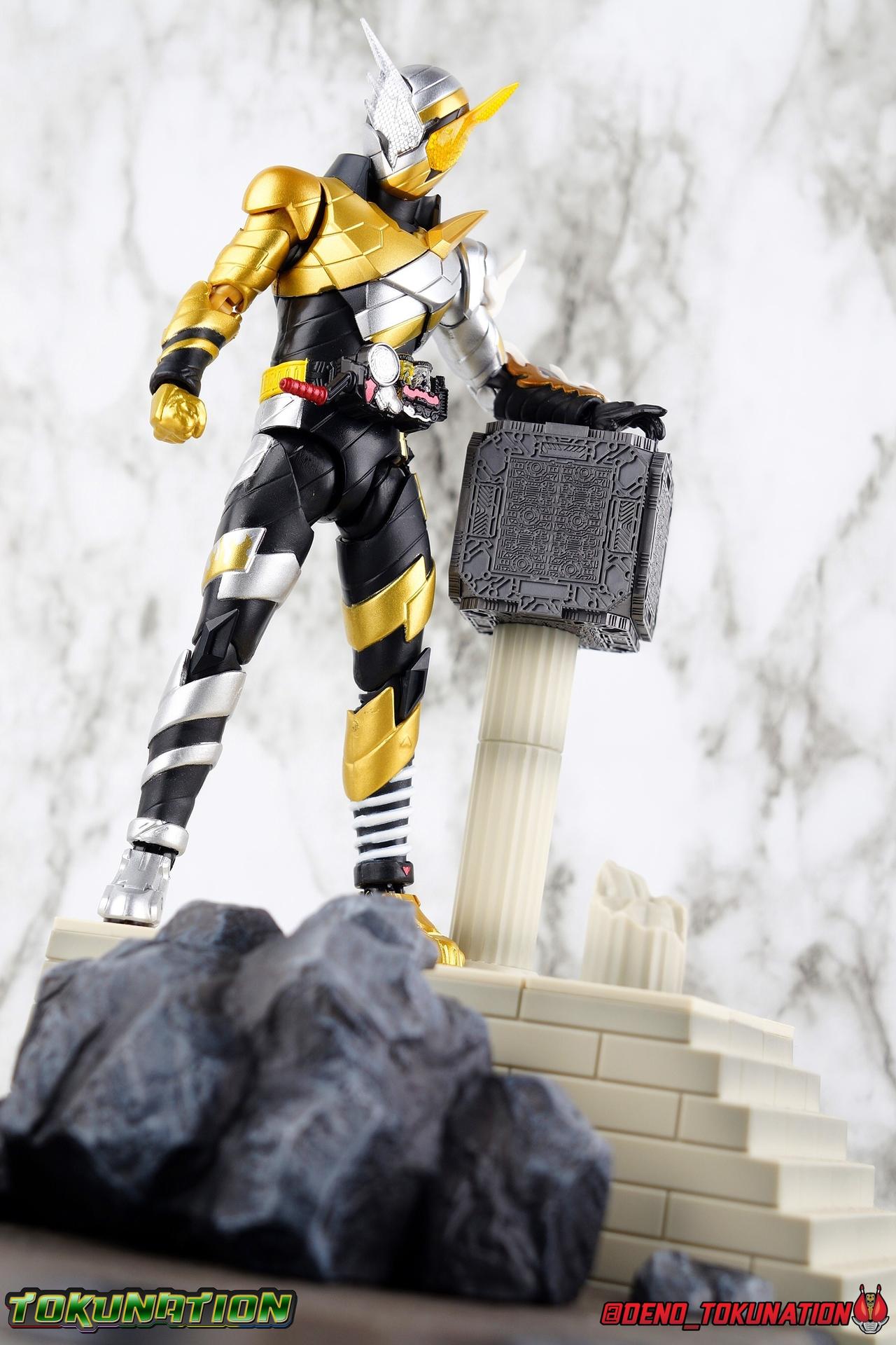 Two Earths, a single future. To save his world Sento has gambled everything on the power of the Pandora Box. Opening a bridge between universes, and using Evolt's energy as the catalyst, Sento seeks to fuse the two worlds to save them both. To create a New World, without Evolt. But when the alien menace possesses Ryuga one last time, Sento will use every last ounce of power he has to fight for this future. With Ryuga's help, one last experiment to save humanity begins. Gold & Silver, Rabbit & Dragon, Sento AND Ryuga. Build's final transformation, his Trial Form is born! With the unstable power of two Kamen Riders, can Sento save the New World he wishes to create? Packaging As a Tamashii Nations event exclusive, Rabbit Dragon has some seriously gorgeous packaging and box art. Event exclusives have gotten much more elaborate in recent years and this is by far the most gorgeous I've seen. The outer slip cover features the amazing logo for Tamashii Nations 2019 while the back side of it has a brilliant piece of monochrome artwork. Under the slip cover is the more standard type of Build packaging, but it still looks just a as good. Main Figure It shouldn't be any surprise by now, but I absolutely love Kamen Rider Build. The show resonated so much with me when it was airing. Few rider series have had the same impact on me that it did. It's right up there at the top with Den-O & Drive for me. So each new release this series manages to squeeze out is another small victory for me. And this form is something I absolutely never expected to happen, but always hoped for. Trial Form is honestly a pretty basic repaint for the most part. Much of this line is pretty basic parts reuse, with elaborate paint additions to differentiate them so Rabbit Dragon fits right in in that respect. The legs are physically identical to the base Build Rabbit/Tank form. If you haven't handled this mold by now, it's pretty great. The ankles don't have any armor to impeded their movement, the knees have a great back bend, and the hips are free of obstruction. As is usually the case with this mold these joints are nice and tight and provide a very stable base of support. The on indication in the legs you'll find that Cross-Z is part of this combination, is in the thighs. While the physical parts are from the original build mold, and we get new silver and gold paint apps, the right thigh features Kamen Rider Cross-Z's flame band paint app. The torso features yet another outing for the wonderful Build Driver. This item has made a number of outings in the line now, having only had significant paint alterations once with Mad Rogue. In this case the big change is in the Full Bottles. As the name of the form states, we get the Rabbit & Dragon bottles, which are not traditionally a Best Match, but due to Sento & Ryuga's bond, are compatible now. Rabbit is now Gold while Dragon is Silver. As always the bottles are removable and the crank on the right of the driver can turn. It's still one of my favorite 1/12 scale Drivers. There's still a Full Bottle holster on the left hip as well if you want to store any extra bottles there, though in my experience the fit is quite loose. Outside paint apps on the torso there are no mold changes. As always the combination of a ball jointed waste and upper body with a unique ab crunch, create a lot of possibility. I particularly love that the small angular part of the armor on the abs can actually hing upward allowing you to bend the torso a bit further. It was a feature I didn't even notice the first few times around with this mold, but ever since I discovered it it still blows me away. The right gold arm is the classic Rabbit/Dragon mold with no physical changes. The shoulder, elbow, and wrist all work fantastically allowing you to get Build in his signature poses. The right silver arm however, is a direct carry over from Cross-Z, and I love that sculpt so much. We get the protruding shoulder pad, the flame band on the bicep, the dragon flames molded into the forearm. I absolutely love it. Asymmetry in Build forms is my favorite aspect of them, and Rabbit Dragon illustrates this so so well. Finally, Trial Forms head is a wonderful fusion of Build & Cross-Z. Taking the right side Rabbit visor and combining it with half Cross-Z's dragon visor is a brilliant idea. The head itself is just builds without all the added Cross-Z bits, but the new compound eye combo looks brilliant in these colors. The Build line has absolutely some of the best Compound Eyes in the S.H. Figuarts line and Trial Forms just come alive in the right light. This whole figure comes alive. It's just stunning complete package. Absolutely everything I could have hoped for. Accessories This may seem sparse, but it's honestly perfect: 7 - additional hands. While we only get 2 left and 5 right, you get basically anything you need to replicate the forms briefs appearances as well as utilize other items in the Build SHF line. The gripping hands are good for using with the Machine Builder or Drill Crusher in particular. The expressive hands perfectly allow you recreate Build's poses, you get plenty of variety for display. 1 - Pandora Box. This is clearly the big draw of this figure. While the form itself is something truly special already, the inclusion of the Pandora Box is just the cherry on top. The build line has had quite a number of releases since it began, but the big question has always been, where on earth is the box? I was surprised it didn't come with the likes of Blood Stalk or Night Rogue, but seeing it finally hit the market like this is very satisfying. This is a hefty little cube with outrageously well defined details. The sculpt has so much depth and care put into it, it's a truly incredible little accessory. The only thing that could be better, is maybe one day getting the complete box with panels and molded in bottles. As is though, this is the ideal Build SHF accessory. This form has about a minute worth of screen tim