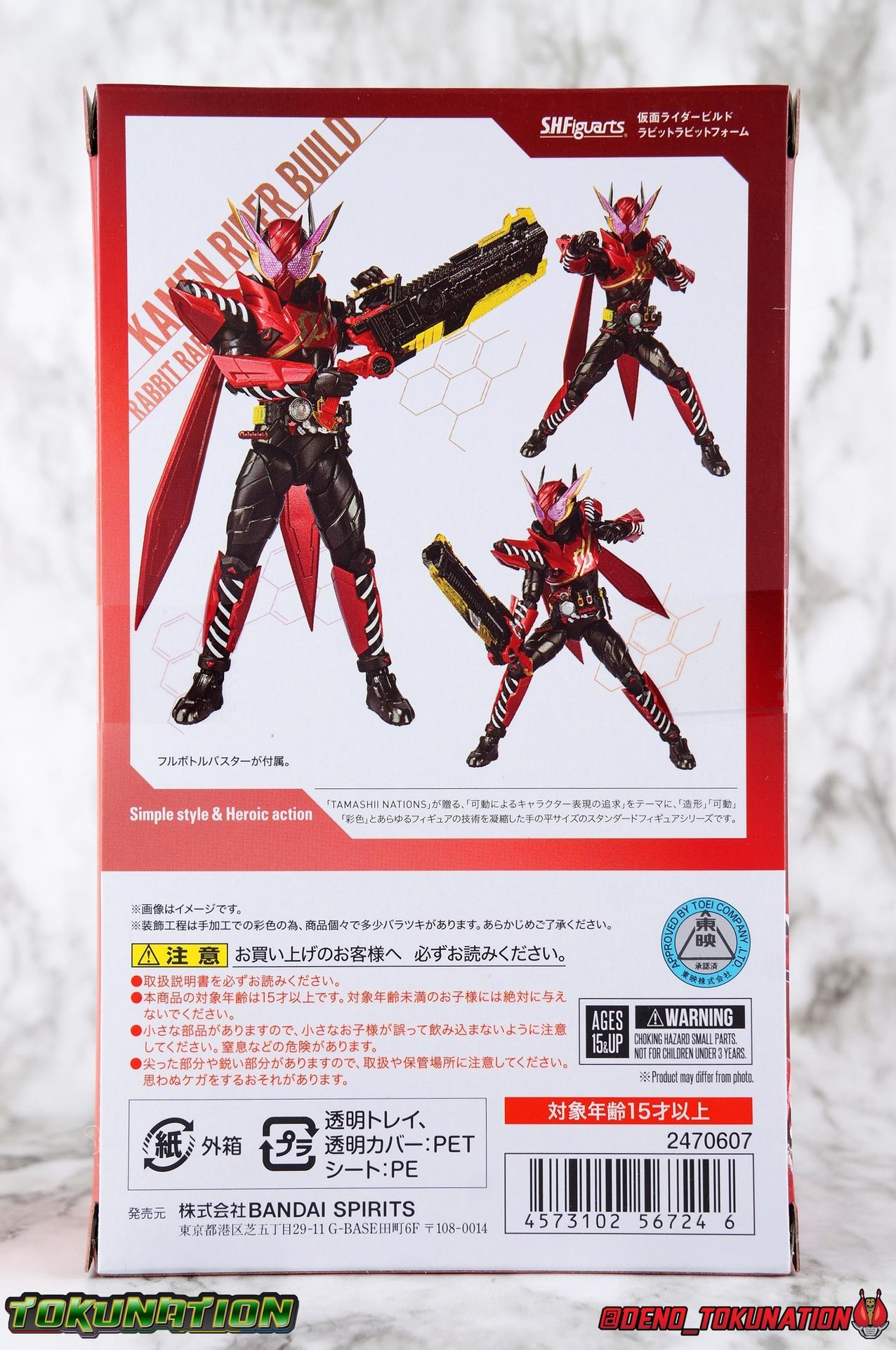 The Hazard Trigger, a weapon of unmatched power. With it, Sento Kiryu can gain the upper hand in any fight, becoming an unstoppable berserker in the process. To contain the uncontrollable power, Sento develops a new bottle to channel his strength and his consciousness. Surpassing the genius of Takumi Katsuragi, and maintaining himself within the chaos of Hazard Form, the Full Full Rabbit Tank Bottle creates Kamen Rider Build Rabbit Rabbit Form! Representing his home Seito in the 3-round battle, Build will test his new power against the dangerous Kamen Rider Rogue. Main Figure I mentioned it earlier this month when I reviewed Build Trial Form, but I absolutely love everything from Kamen Rider Build. It's one of a few series I consider it a necessity to own ever Figuart from. Even the BCR gimmick figures as well. It's just such a wonderful watch and every design felt so solid to me. Rabbit Rabbit Form is yet another stylish addition. Rabbit Rabbit Form is at a a basic level, a repaint of the tried and true Rabbit Tank Form. Much of this line is pretty basic parts reuse, with elaborate paint additions to differentiate them, and Rabbit Rabbit features some of the biggest addition to the classic base design. Since this form introduces us to one of Build's few symmetrical (mostly) forms though, there is less variation than you'd expect. The legs are physically similar to the left leg of Rabbit Tank, featuring the signature spring but contained in some new red armor. The ankles, it should be noted, do seem a little less dynamic than in previous uses of the mold. They lose some forward/back motion thanks to the cuff of the calve armor. The ankle joints as well as knees and hips are nice & tight, providing a very stable base of support. The torso features yet another outing for the wonderful Build Driver. This time with a couple significant additions. Carried over from the Hazard Form release is the Hazard Trigger, it's molded in place on the top right of the driver. I wish it was removable for a figure to hold, but if they were going to give us one of those I'm guessing it would have been with the actual Hazard Form figuart. The Driver also feature the new Full Full Rabbit Tank Bottle in it's collapsed form. It's removable as are all Full Bottles in the line, though it can't transform. An alternate accessory is included to replicate the cylinder form. As always an optional Full Bottle holster is attached to the left hip as well, though I refrain from using it out of fear of losing bottles. The torso features some radially different armor than Rabbit Tank, Sparkling or indeed Hazard. The new chest armor feels like a proper piece of torso armor wrapped around the figure, rather than two piece of armor fused together as is traditional of Build's red/blue forms. Emblazoned on the chest is the gold Build emblem. I've always really dug this gear like symbol and I wish more riders had something like it on their suits. The arms are likewise mostly new. The shoulders feature new pads with rabbit spring inspired designs. The basic design of builds arms means that these new shoulder have plenty of room to move out from the body to maneuver, while maintaining a very natural look. The forearms continue the springy armor look as well, though they don't affect the figure's poseability in one form or another. As always the Build mold's wrist design works wonderfully. Rabbit Rabbit also makes another pair of pretty huge additions to the design in the sort of rabbit coattails it has. In universe known as the "Mufflerabbit Accelerators". One is fixed to each side of the back plate with a small rotating ball joint at the base. They can spin a fill 360 at the joint, and can also spin 360 on the peg coming from the joint, while also being hinged for movement up and down. Making these things incredibly dynamic, not at all obtrusive, and because they're so lightweight they're never a problem for balance either. It's the best of both worlds and Tamashii needs to implement something akin to this a more figure. I'm looking at you Cronus! Finally Rabbit Rabbit's head has the obvious base of the Hazard Form, as seen by the black spires coming out from behind the rabbit mask. The new rabbit visors are easily some of the best I've seen from the line as well. The clarity of the underlying pattern is near crystal clear, and the gold accent really makes them pop. Accessories While it may not seem like a ton of stuff, this figure already has so many display options thanks to it's design and the accessories help accent this: 4 - sets of hands. As always, the Build line continues to give us a wealth of expressive options for each figure. Two sets of open palms, a set of weapon holding hands, as well as those for holding the Machine Builder's handlebars and striking Build's signature finger pointing pose. 1 - Full Bottle Buster. Originally this weapon was used mostly just by Rabbit Rabbit & Tank Tank. But later Build's standard form could also utilize it and he utilized it in Genius Form as well. The Buster can accept full bottles down it's barrel, those there's no locking mechanism or filler part to keep them from sliding back and forth unless you have it fully loaded. The trigger/grip can be folded down to transform it from Blade to Cannon mode as you wish as well. 1 - Full Full Rabbit Tank Bottle. This double sized Full Bottle in it's cylinder form can be used in the Buster or any other Full Bottle compatible device, though not quite in the same way because of it's length. Otherwise you may not get much use out of it since the folded version of the bottle comes attached to the Build Driver. That may not seem like a lot, but the other releases in this line has really knocked out all of the key accessories so far. The Full Bottle Buster was the last sort of big weapon or part we hadn't seen yet for Sento. So as far as accessories go I'm quite satisfied. Final Thoughts Seeing as I rarely have anything bad to say about a release from