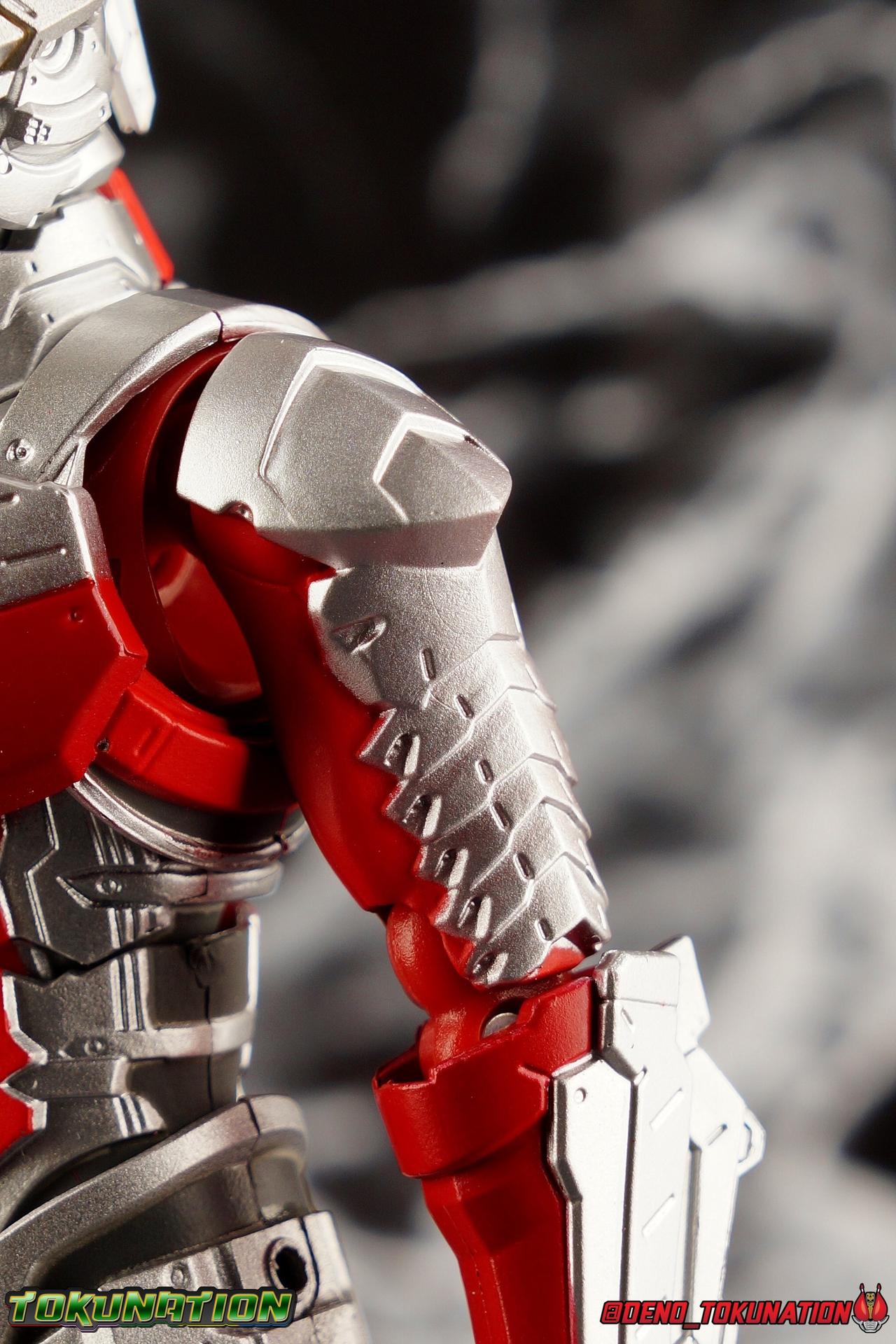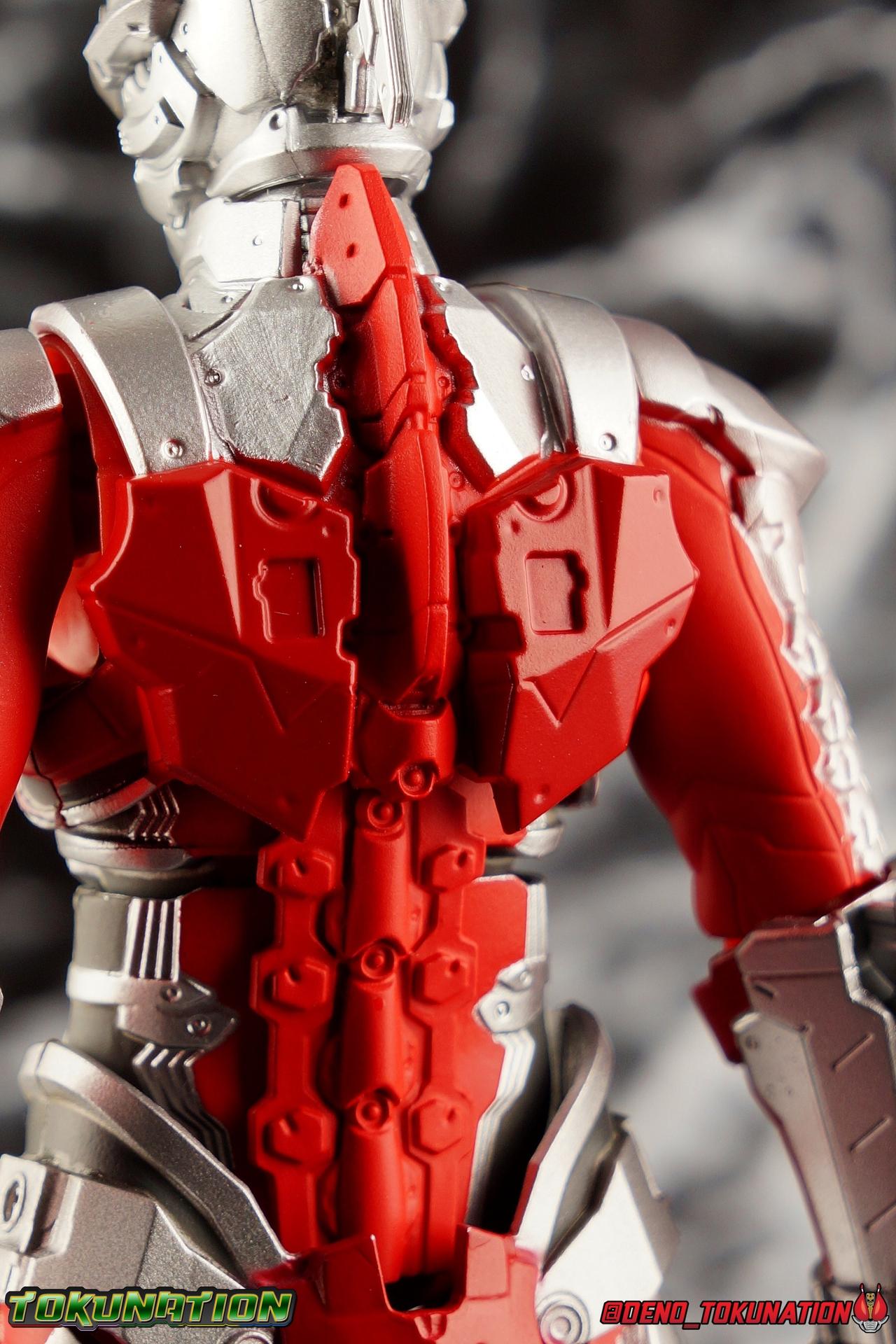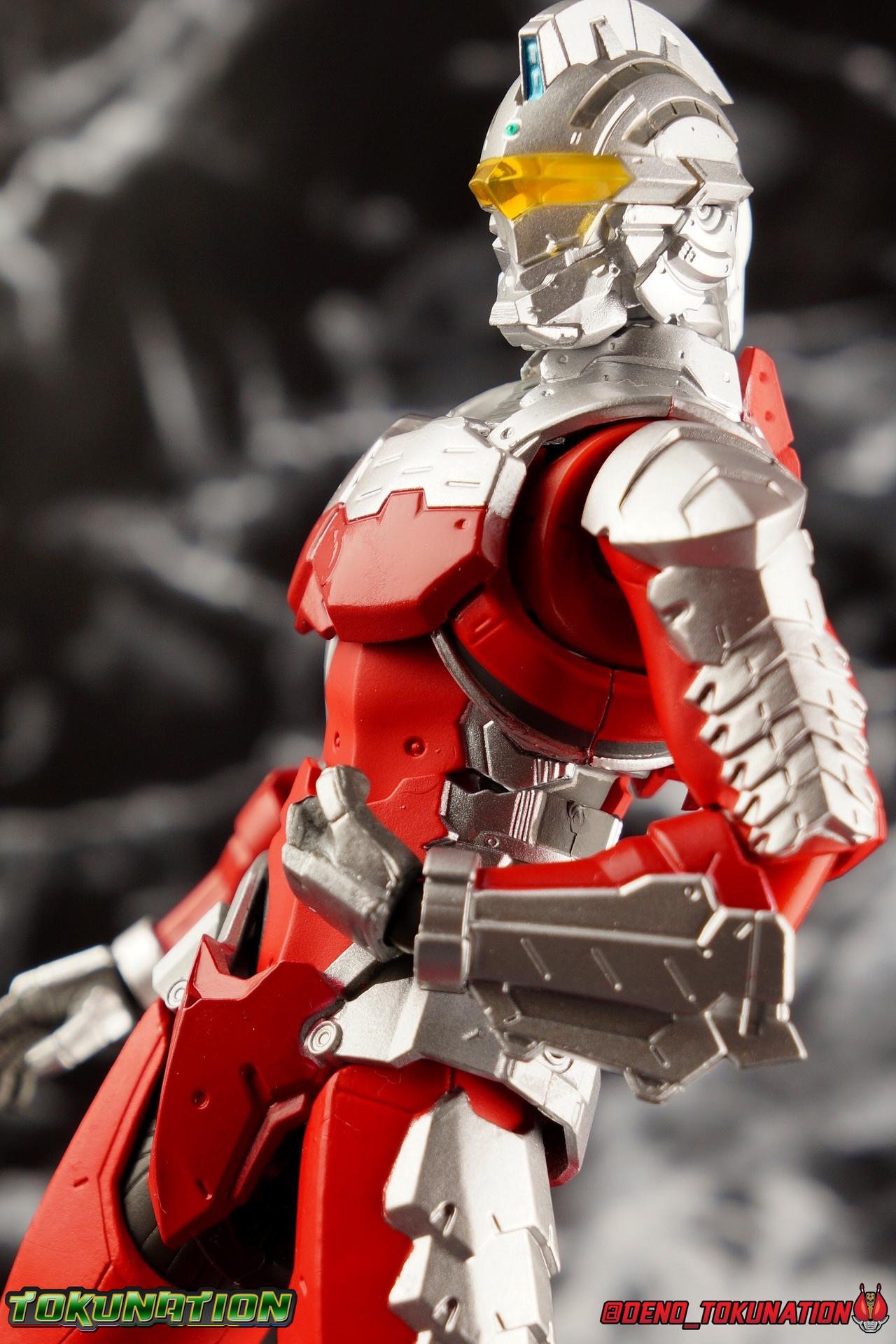 In a world where the giant of light Ultraman, left Earth years ago, the SSSP has found a new way to defend their world. Relying on individuals who possess the Ultraman Factor, and equipping them with suits of armor, the heroes of Earth fight back Kaiju! But in the case of Dan Moroboshi, he has no Ultraman Factor. Lucky for him, SSSP has developed a next generation Ultraman suit specifically for those who don't possess these abilities. The Ultraman Suit Ver. 7 not bestows non-powered individuals with the ability to fight Kaiju, but it can be upgraded after repeated combat. Evolving and adapting to any situation, the Seven Suit is a force to be reckoned with! This figure comes to us courtesy of our friends at Bluefin Brands and Team Rider. Check out their awesome selection of Kamen Rider items, Ultraman items, and more Tamashii Nations & Bandai Japan products! Packaging Like many figuarts of recent years, the Ultraman style packaging has undergone some drastic changes. And it's been quite a glow up for the figures based on the ULTRAMAN Manga which began in 2011. While Tamashii Nations initially produced figure based on the Manga designs, and they had some certainly unique packaging, the new line of Animation based figures steps it up even further. Ultraman Suit Ver. 7 comes in a gorgeous box with an outstanding piece of somewhat muted box art adorning the front. It stands in stark contrast to something like Ultraman Ginga's packaging, but in a very good way. It feels like it's part of the same toyline, but it's most certainly something all it's own as well. I also find it interesting that Ultraman is keeping in line with the older shape and size of Figuarts packaging that Kamen Rider began to shift away from in the Drive era, in favor of slimmer boxes. As characters of much larger stature, I think it helps set the line apart that Ultra Figuarts still come in larger packaging than their less titanic cousins. Main Figure Let's start with some background. The worlds of the ULTRAMAN Manga & Anime adaptation are a bit different from one another, so I want to zero in on the anime specifically. Shin Hayata was indeed the human host bonded to Ultraman, but after the final battle with Zetton Ultraman left Earth. For the last 10 years Shin has been fighting to protect the Earth using his Ultraman Factor based abilities, while donning a suit of armor that enhances them. Now, his son Shinjiro has taken up the fight as well, as the new Ultraman. The subject of our gallery however, is Dan Moroboshi. The name is of course familiar as in original Ultraman live action continuity, Dan was the host of Ultra Seven. In this world however, Dan has never bonded with an Ultraman, nor does he posses the Ultraman Factor. With no special abilities of his own, Dan uses the Ultraman Suit Ver. 7 to fight. A newer model of the Ultraman Suit, the 7 is designed for normal humans without the Factor. Because of this the Seven Suit is also designed to be regularly improved and upgraded after combat, to enhance it's abilities for specific situations. Right out the gate, we've got to talk about the sculpt on this figure. Tamashii Nations has produced some wild figures over the last decade+. Toku heros abound. But The Ultraman Suit Ver. 7, which I'll just refer to as the Seven Suit from here on as the fiction does, is chock full of finely sculpted details. It is without a doubt the most impressively sculpted 1/12 scale action figure I have ever handled. It's like what we see in the S.I.C. line form Tamashii, only more compact. This figure truly looks like the Seven Suit come to life. Whether your experience with it comes from the ULTRAMAN Manga or it's anime adaptation which is streaming on Netflix, you're going to be pleased. It very much feels like a person wearing an intricately manufactured suit of armor, and that's perfect. As intricate as the sculpt is, Tamashii has also implemented some new really clever articulation that I wasn't quite expecting. The feet kick things off (ha!) with the usual hinged ankles though they are much tighter than normal. The interesting bit here though is the bottom half of the shin guard, which is hinged to swing up, away from the foot, thus making it more flexible. I was literally about to complain about how limited the feet were until I discovered this flap and I was floored. That, and the entire ankle joint can be pulled down from inside the leg giving it even further range. The Seven Suit's feet are particularly long and flat as well, making them very stable in most positions. While the knees may not offer anything new, this double joint is surprisingly flexible given the armored nature of the figure. The back bend is strikingly good. The hips opt for the drop down design that is often maligned, but in this instance they work very well. The hips are able to pull down about a half inch allowing you to angle the legs out very very far and dodge the waist armor in the process. The figure can basically do a split thanks to this design. The entire upper body is quite the marvel as well. The torso is separated into 3 components, beginning with the abdominal section attached to the waist. Here, the waist armor is fixed in place, while the ab section is on a free moving ball joint allowing you to rotate it within the waist as well as arch it back & forth. This is one of the best implementations of this I've seen. The mid section of the torso is a separate piece which at first glance it doesn't appear to be. It also has a ball joint with limited range at it's base, allowing you to subtly tweak how you align the upper body as you wish. While the chest armor is on yet another ball joint, allowing it to spin a full 360 degrees around the mid section. This figure is insanely well engineered, it was planned to be very dynamic. And I greatly appreciate whoever designed this section of the body. In a really curious design choice, Tamashii has opted not to give the Seven Suit biceps swivels. Initially I wa