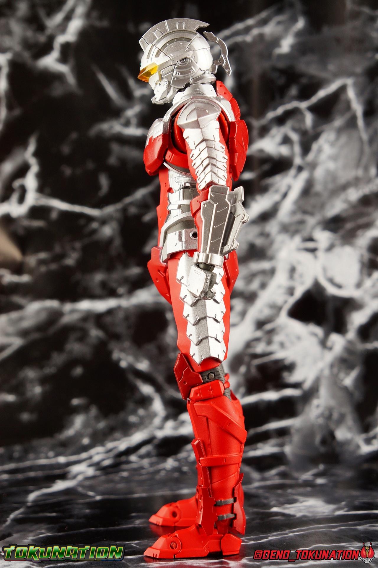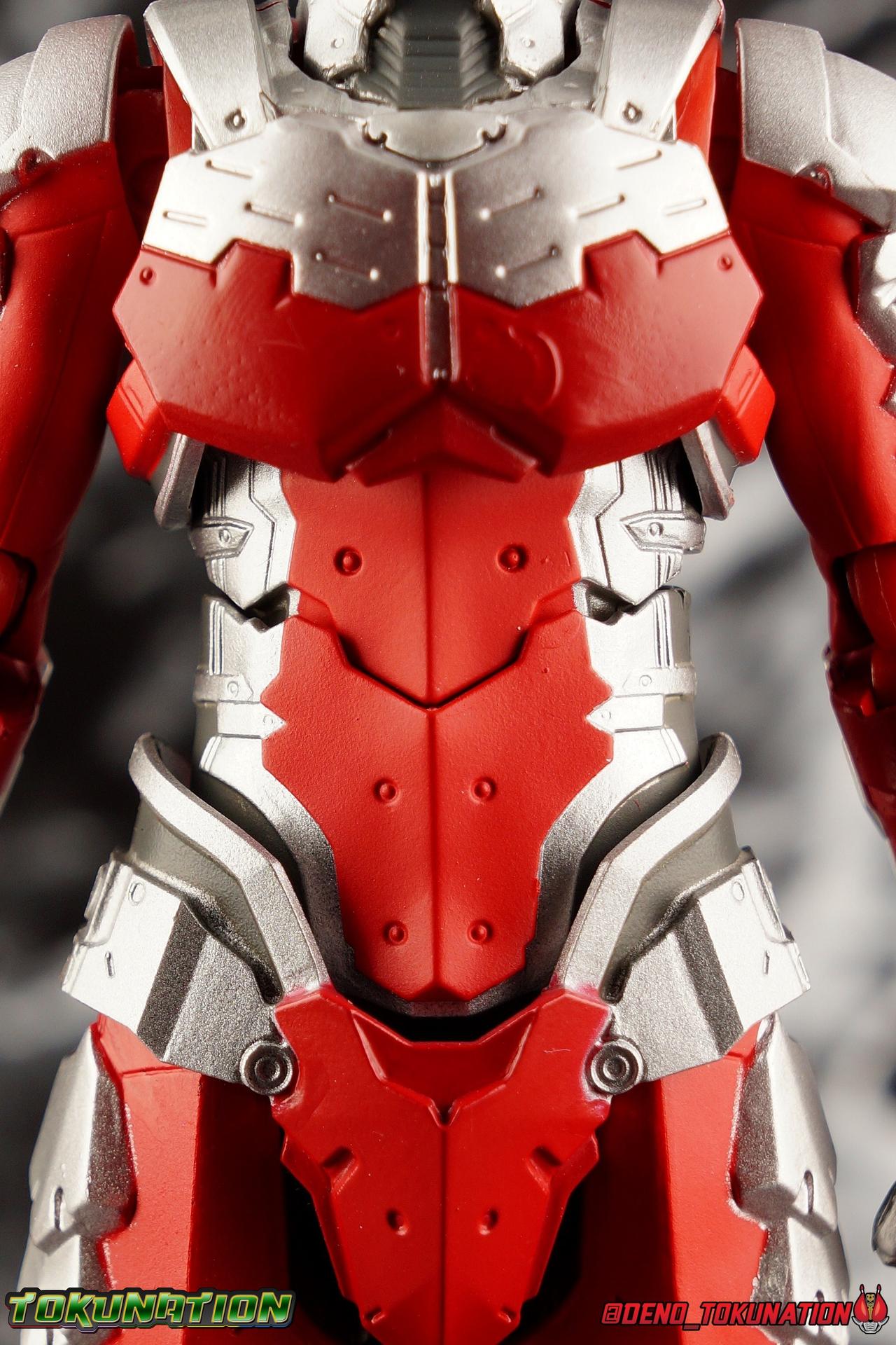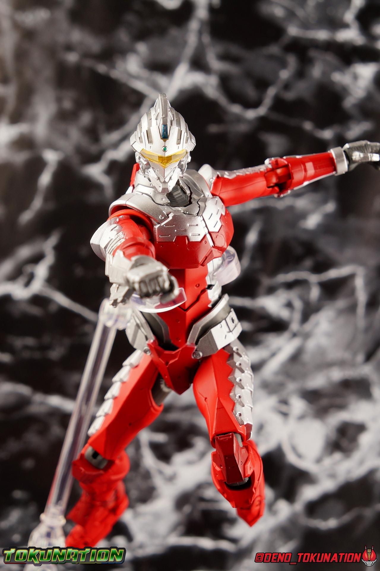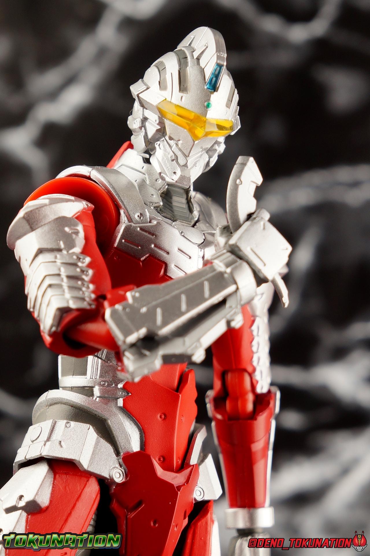 In a world where the giant of light Ultraman, left Earth years ago, the SSSP has found a new way to defend their world. Relying on individuals who possess the Ultraman Factor, and equipping them with suits of armor, the heroes of Earth fight back Kaiju! But in the case of Dan Moroboshi, he has no Ultraman Factor. Lucky for him, SSSP has developed a next generation Ultraman suit specifically for those who don't possess these abilities. The Ultraman Suit Ver. 7 not bestows non-powered individuals with the ability to fight Kaiju, but it can be upgraded after repeated combat. Evolving and adapting to any situation, the Seven Suit is a force to be reckoned with! This figure comes to us courtesy of our friends at Bluefin Brands and Team Rider. Check out their awesome selection of Kamen Rider items, Ultraman items, and more Tamashii Nations & Bandai Japan products! Packaging Like many figuarts of recent years, the Ultraman style packaging has undergone some drastic changes. And it's been quite a glow up for the figures based on the ULTRAMAN Manga which began in 2011. While Tamashii Nations initially produced figure based on the Manga designs, and they had some certainly unique packaging, the new line of Animation based figures steps it up even further. Ultraman Suit Ver. 7 comes in a gorgeous box with an outstanding piece of somewhat muted box art adorning the front. It stands in stark contrast to something like Ultraman Ginga's packaging, but in a very good way. It feels like it's part of the same toyline, but it's most certainly something all it's own as well. I also find it interesting that Ultraman is keeping in line with the older shape and size of Figuarts packaging that Kamen Rider began to shift away from in the Drive era, in favor of slimmer boxes. As characters of much larger stature, I think it helps set the line apart that Ultra Figuarts still come in larger packaging than their less titanic cousins. Main Figure Let's start with some background. The worlds of the ULTRAMAN Manga & Anime adaptation are a bit different from one another, so I want to zero in on the anime specifically. Shin Hayata was indeed the human host bonded to Ultraman, but after the final battle with Zetton Ultraman left Earth. For the last 10 years Shin has been fighting to protect the Earth using his Ultraman Factor based abilities, while donning a suit of armor that enhances them. Now, his son Shinjiro has taken up the fight as well, as the new Ultraman. The subject of our gallery however, is Dan Moroboshi. The name is of course familiar as in original Ultraman live action continuity, Dan was the host of Ultra Seven. In this world however, Dan has never bonded with an Ultraman, nor does he posses the Ultraman Factor. With no special abilities of his own, Dan uses the Ultraman Suit Ver. 7 to fight. A newer model of the Ultraman Suit, the 7 is designed for normal humans without the Factor. Because of this the Seven Suit is also designed to be regularly improved and upgraded after combat, to enhance it's abilities for specific situations. Right out the gate, we've got to talk about the sculpt on this figure. Tamashii Nations has produced some wild figures over the last decade+. Toku heros abound. But The Ultraman Suit Ver. 7, which I'll just refer to as the Seven Suit from here on as the fiction does, is chock full of finely sculpted details. It is without a doubt the most impressively sculpted 1/12 scale action figure I have ever handled. It's like what we see in the S.I.C. line form Tamashii, only more compact. This figure truly looks like the Seven Suit come to life. Whether your experience with it comes from the ULTRAMAN Manga or it's anime adaptation which is streaming on Netflix, you're going to be pleased. It very much feels like a person wearing an intricately manufactured suit of armor, and that's perfect. As intricate as the sculpt is, Tamashii has also implemented some new really clever articulation that I wasn't quite expecting. The feet kick things off (ha!) with the usual hinged ankles though they are much tighter than normal. The interesting bit here though is the bottom half of the shin guard, which is hinged to swing up, away from the foot, thus making it more flexible. I was literally about to complain about how limited the feet were until I discovered this flap and I was floored. That, and the entire ankle joint can be pulled down from inside the leg giving it even further range. The Seven Suit's feet are particularly long and flat as well, making them very stable in most positions. While the knees may not offer anything new, this double joint is surprisingly flexible given the armored nature of the figure. The back bend is strikingly good. The hips opt for the drop down design that is often maligned, but in this instance they work very well. The hips are able to pull down about a half inch allowing you to angle the legs out very very far and dodge the waist armor in the process. The figure can basically do a split thanks to this design. The entire upper body is quite the marvel as well. The torso is separated into 3 components, beginning with the abdominal section attached to the waist. Here, the waist armor is fixed in place, while the ab section is on a free moving ball joint allowing you to rotate it within the waist as well as arch it back & forth. This is one of the best implementations of this I've seen. The mid section of the torso is a separate piece which at first glance it doesn't appear to be. It also has a ball joint with limited range at it's base, allowing you to subtly tweak how you align the upper body as you wish. While the chest armor is on yet another ball joint, allowing it to spin a full 360 degrees around the mid section. This figure is insanely well engineered, it was planned to be very dynamic. And I greatly appreciate whoever designed this section of the body. In a really curious design choice, Tamashii has opted not to give the Seven Suit biceps swivels. Initially I wa