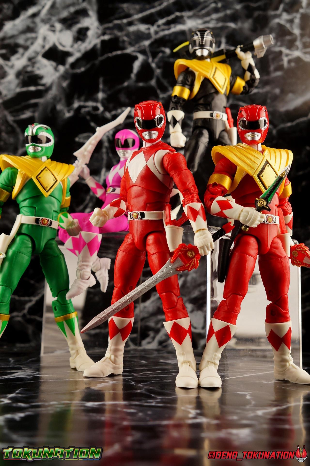 Jason Lee Scott, was just a normal high school student. That is until an inter-dimensional being and his robot sidekick recruited the budding martial artist to be a hero. Jason, along with 4 of his friends, were transported to the Command Center, bestowed with the powers of the ancient dinosaurs, and tasked with a mission. Defeat Rita Repulsa and her evil monsters and defend the Earth as the Mighty Morphin Power Rangers! With mighty Morphers and a massive Megazord, Jason lead the Power Rangers in their fight against Rita, and even greater evils to come! Packaging As we are all pretty familiar with the line by now, I'm sure I probably don't need to go through my usual list of reasons why it's awesome. Hasbro was keen to make sure these appealed to collectors and fans of the franchise from throughout it's various eras. And they also really pop thanks in no small part to some wonderful box art, lovingly crafted by artist Tom Whalen aka @strongstufftom on twitter. His artwork is breathtaking, and makes these figure's feel like just a bit more of a passion project from the folks at Hasbro. Main Figure It should be obvious by now, but this isn't the first time we've seen this mold. This is now the 4th outing of the male Mighty Morphin body. (MMPR White & Lord Drakkon share their own basic mold, differing from this one a bit.) What we have here is the exact same body type we got with the Dragon Shield Red Ranger, Dragon Shield Black Ranger, & Fighting Spirit Green Ranger, just sans the shield and armbands. This is a functionally identical toy, even more so without the armor, so if you want to skip the review portion and head straight down to the photos, feel free! As mentioned above, nothing has changed other than cosmetically. The Mighty Morphin Red Ranger features full rotating rocker ankles as well as a clicking swivel joint for them to go back and forth, giving us a solid start. Above this is a shin swivel as well at the boot cuff, allowing you to rotate that portion of the leg 360 degrees below the knee if you wish. Then we get a very playful double jointed knee which allows you to fully bend the leg back in on itself. This is already great but there's also a 360 thigh swivel as well as full hips with back/forth and outward motion. Going backward you will impact that good old sculpted butt plate again. But it far from kills the articulation. All of these cuts are executed in the now standard Lightning Collection styling, doing their best to not be obtrusive to the character's design. On the belt is the classic Power Morpher featuring the Tyrannosaurus coin, while a holster sits on the left hip for the included Blade Blaster. Like his mold mates, the Red Ranger features the same torso articulation, bot no Dragon Shield to restrict it's movement in any fashion. The lower half of the torso has the same satisfying ratchet ab joint I've come to appreciate from the line while the upper half sits on a ball joint. The combination of the two gives you quite a bit to work with when posing. The arms hit the sweet spot with that classic butterfly style shoulder joint. As you angle the shoulder back, the armor slides out to fill the gap and vice versa. There's a full 360 rotating bicep swivel, double jointed elbows, and the same peg style hands as the rest of the line. Honestly if nothing else the arms have been generally phenomenal on most of the Lightning figures. Making a great compromise of form and function. The head nails the sculpt and design of the Red Ranger/Tyranno Ranger design, though I do feel it could be a bit sharper. As with the SDCC release, the stripe around the visor edge doesn't fully come around as it should. A minor but certainly overlooked detail on the production side. As for articulation, the neck assembly is identical to the rest of the line. Nothing new, just solidly functional. Remember that LC figures are a bit larger than SHF's both in general height and in proportionality so just take that into account when mixing a figure like this into your collection, if that's part of your gameplan. I've still retained a handful of SHF's to compliment my Lightning figures and been pretty pleased with it for the most part. This figure represents a pretty great if slightly basic Red Ranger/Tyranno Ranger. Accessories 1 - Jason Lee Scott civilian head. Like most any Lightning Collection Ranger, the Red Ranger also comes with his alternate civilian head. Based on the likeness of actor Austin St. John. If this sculpt looks familiar that's because it is. We first saw it included with the SDCC 2-pack that featured Jason as both the Mighty Morphin Red Ranger & Zeo Gold Ranger. As before, I actually think the likeness is really good even if the expression is just a tiny bit dull. 1 - Power Sword. A straight repack of the weapon that came with the SDCC set, I still think this is a really nice 1/12 scale accessory. It feels about the right length, gets most of the paint apps right, and without losing it's definition is made of fairly pliable plastic. All in all it's a great representation that looks right at home in the Red Ranger's hands. 1 - Blade Blaster (Blaster Mode). Continuing an odd pattern, Hasbro has opted to include the Blade Blaster only in it's Blaster form. Meaning that when holstered in the Red Ranger's belt, it's entirely inaccurate. In all Zyuranger footage, and even in American produced MMPR suit footage, the Blade Blaster is always closed and usually fully collapsed when holstered. You can hide the butt of the gun at certain angles but it just isn't the right accessory. If we were going to get the blaster, then they should have also included the holstered form too, which is something that (so far) only the SDCC release of the Red Ranger came with. 1 - Lightning Effect part. Intended to use with the Power Sword, this part wraps around it's blade. Since the trend of this release is repacks as well, you guessed it, this part gets carried over from wave-mate Dino Charge Gold. Gold