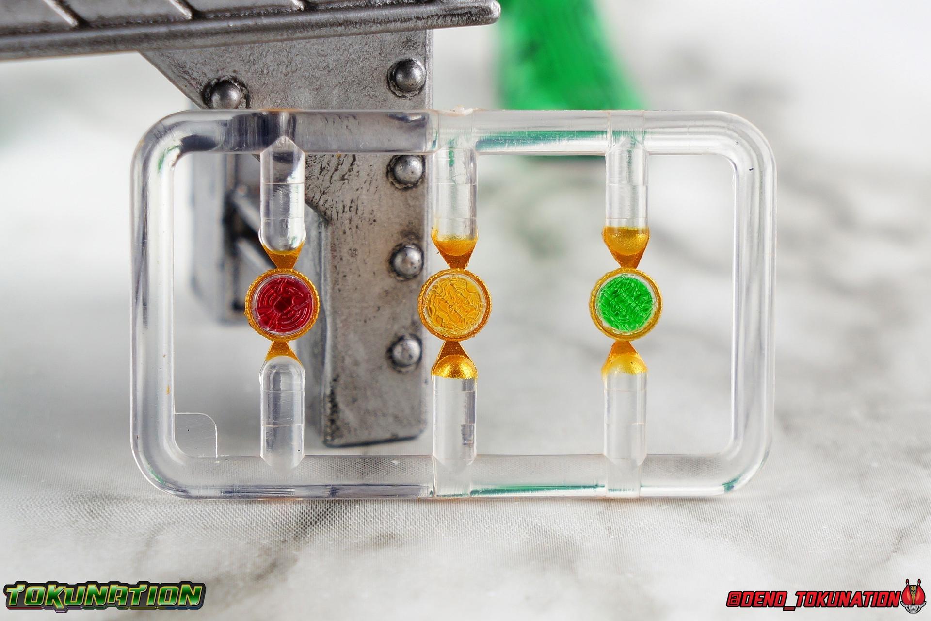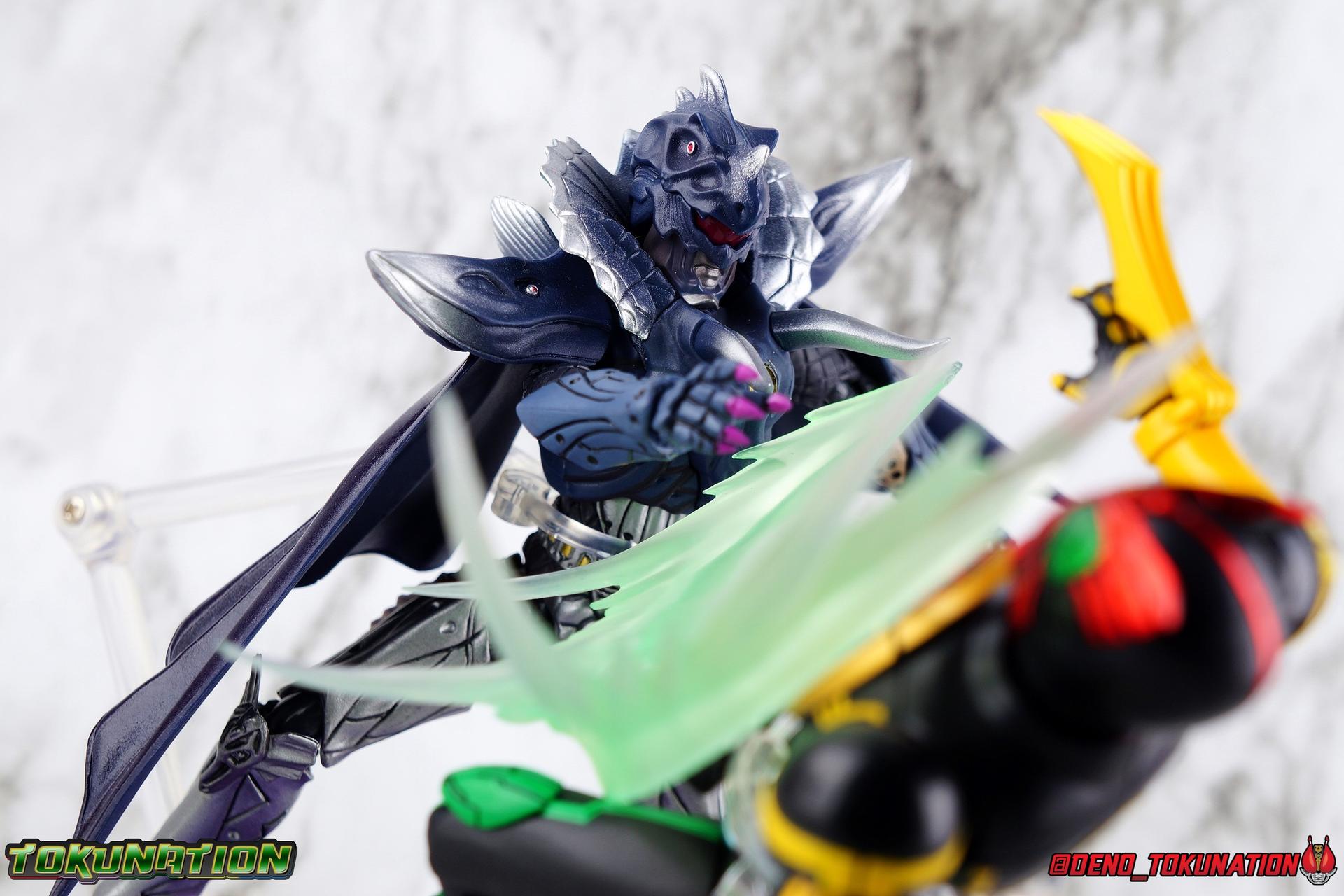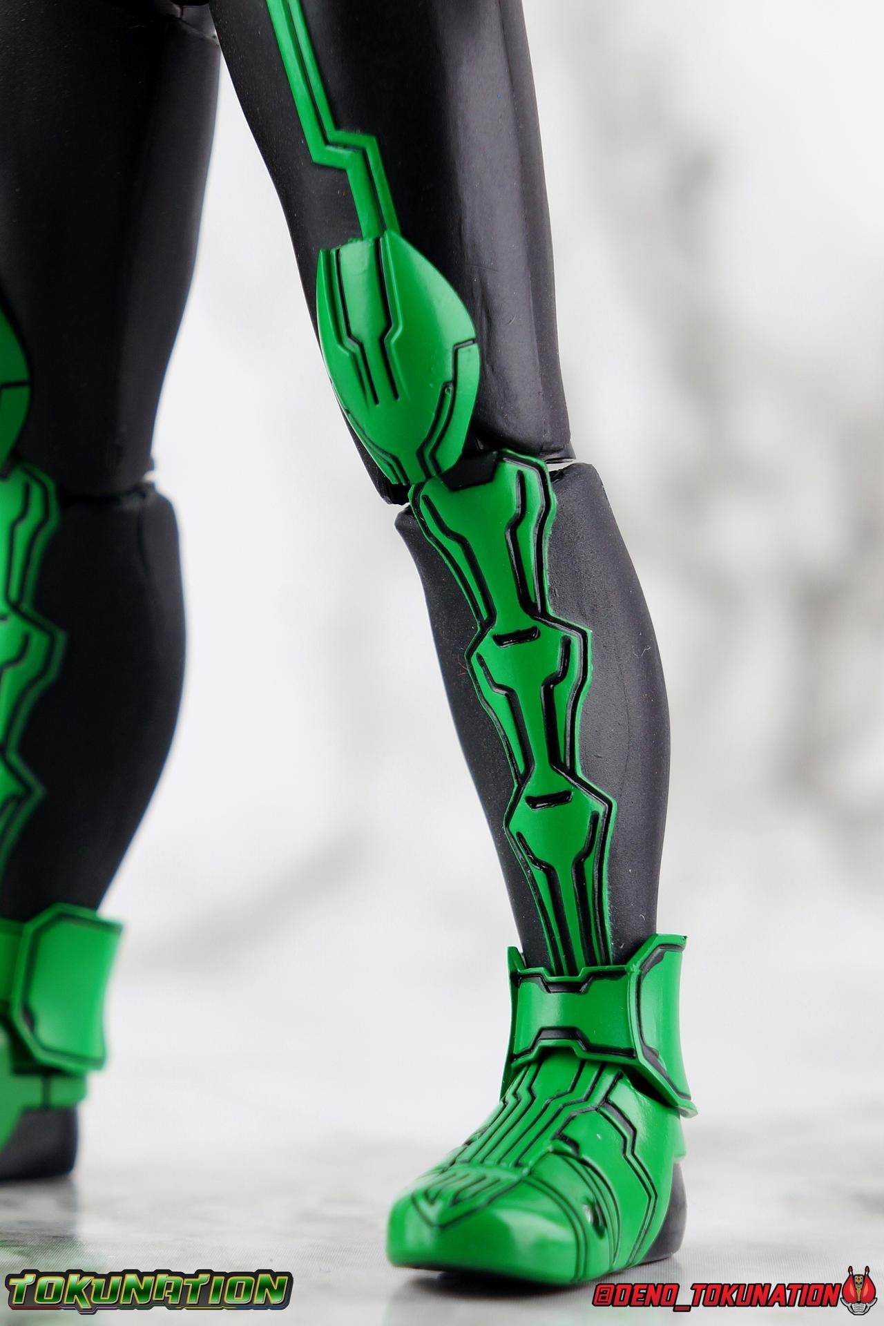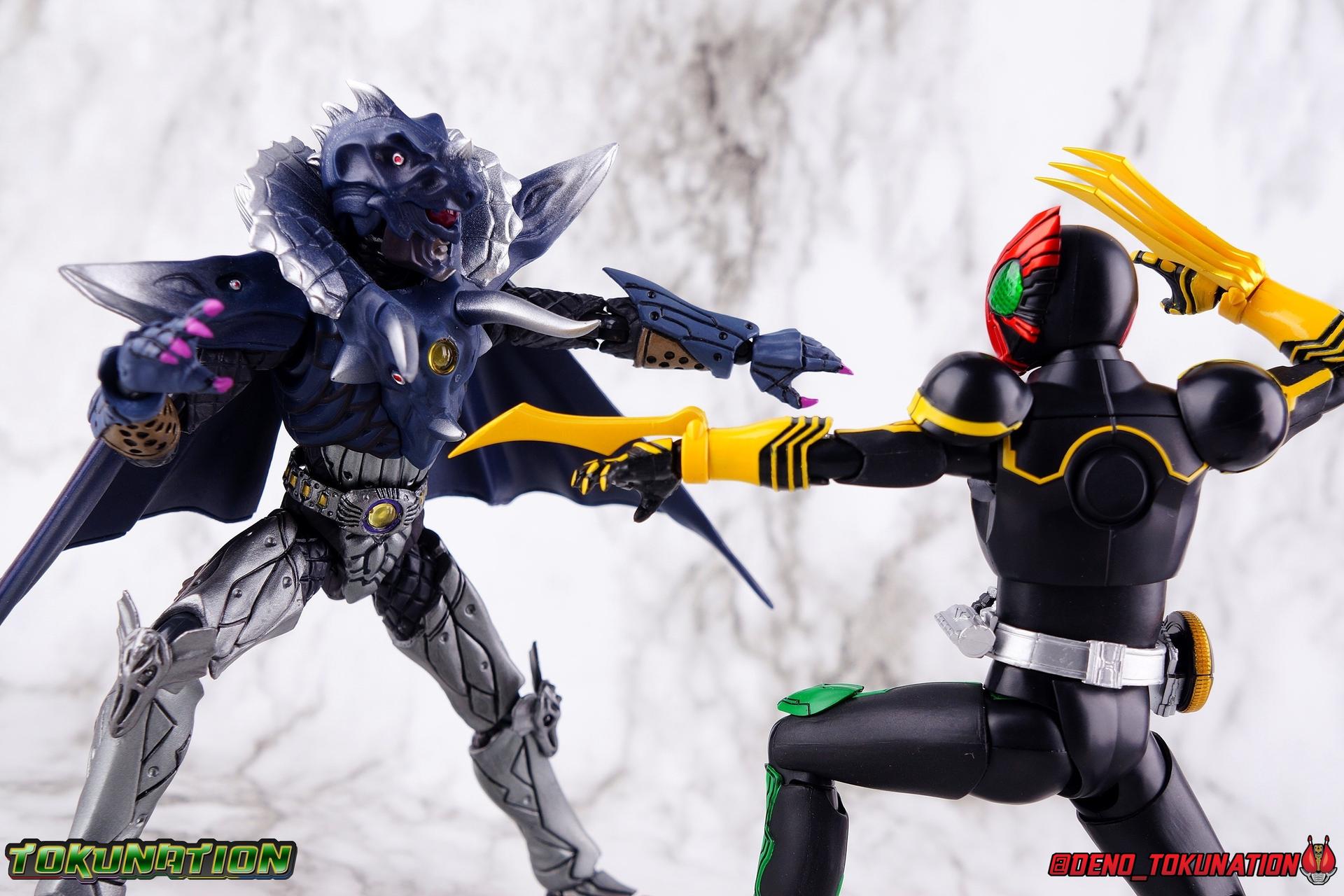 Long ago the King, the first OOO, instructed 4 alchemists to create life. Made from Core Medals these creatures, the Greeed, were filled with immense craving, unable to fill the voids within. Incapable of processing human emotions and senses, the Greeeds sought to consume the world of man to fill their sense of craving, but before they could they were sealed away by OOO. 800 years later, Eiji Hino was minding his own business as a part time security guard when the seal on the Greeed was broken, releasing them once more into the human world. Still craving to be whole, nothing could stand in their way without the power of the King. But one of their number, Ankh, took it upon himself to steal the Core Medals of his kind. Intending to find a human pawn, Ankh stumbles upon Eiji and a bond is born. Handing the Driver of the king and the Core Medals over, Ankh allows Eiji to become Kamen Rider OOO! What began as a begrudging alliance would spawn one of the greatest and truest friendships in Kamen Rider history, as the Greeed Ankh supported Eiji in his quest to save people wherever he could. Anything goes it's coming up OOO! Packaging Obviously, Seihou OOO comes in that familiar and collector friendly packaging this line has come to be known for. And it's quite the departure from what the original OOO line featured. It's much more subdued, which bothers me slightly, but it feels much sturdier and fits right in with an ever growing collection of Shinkocchou Seihou releases. As you can see in the gallery below, the two packaging types are very different, each with it's merits, but I welcome the change. Main Figure It's been quite a journey from the early days of the S.H. Figuarts toyline. Back in the day (2011) the original SHF Kamen Rider OOO TaToBa Combo was released, followed along eventually by every one of OOO other combos, and a variety of his mixed combo forms as well. Honestly it's astonishing how many OOO forms got Figuarts, but the mere fact that the 10 Main Combos from TV & Films happened is incredible. Flash forward to 2019 (though I'm getting to this review in 2020) and we're back to square one. Tamashii is finally treating us to a do-over for OOO, and giving us the figure we always hoped for. The original line was plagued by loose joints, gummy parts, inaccuracies, and more. Now, the Shinkocchou Seihou line is here to set things right. At a glance, there's no question, Shinkocchou Seihou OOO is absolutely an improvement in every single facet over the original figure. Let's start with the composition of the body. Seihou OOO goes the extra mile compared to the original by incorporating a Combo Change gimmick, hearkening back to the gimmick line of the show's day, aptly named Combo Change. Separating into Taka, Tora and Batta sections that means you'll be able to swap around the 3 components of the body between any of the current and future Seihou OOO releases. This is revolutionary, something I've always wanted to see Figuarts try more of. Though not as extensive as OOO, other recent releases have also begun to take on the form change aspect like Kamen Riders' Evol & Geiz Revive. What's really striking about the general look of the figure is it's proper proportions compared to the lanky and thin look of the original. Seihou OOO has all the beef of the actual suit, and so much more articulation than the previous release could have dreamed of. Each ankle has all the range necessary for OOO to get into his trademark wide stances, but it's really the double jointed knees that do a ton of the work. It's all about flexibility in the legs to make a figure feel dynamic, and no rider should feel more like that than OOO. The hips have that same genius sort of in set design type that Seihou's tend to have. The difference with OOO is that the Batta green markings extend up from the thigh across the separated hip joint and onto the waist. Each part can move independently so they may not always line up perfectly, but the attention to detail here is glorious, and the functionality far exceeds the limited range of the original figure's drop down hips. The black detailing on the green parts of the legs is crisp as well, but just rough enough to give it that ancient look that feels appropriate enough to be something from 800 years ago. And of course I'm a sucker for properly sculpted butt plates on riders, so I appreciate how the leg design doesn't take away from some correct anatomy. Around Eiji's waist, is the OOO Driver & Belt. I know the OOO Driver looks like it has a lot going on, but it's an incredibly well designed driver for this scale, even more so than some of my favorites like the Build Driver. The Driver in the center can accept the included 3 Core Medals or any other medals in the Seihou line, allowing you to fully and accurately recreate combo changes. A tool is included to remove and insert medals as you wish as well. The Driver can also tilt down to the figure's left accurately. On the left hip is a Cell Medal container, while the right hip has a holster for the included O Scanner. It's a bulky belt set up but one that feels undeniably perfect on a bulky body like OOO. Above the belt, at the point where OOO's chest emblem covers the torso, is where the figure can be taken apart. A firm plug holds the upper and lower torso together, but it's honestly the ingenious way the OOO emblem comes apart and un-pegs from the torso that blows my mind. While the head and neck can detached from the shoulders as one chunk. Even more astonishingly this entire gimmick doesn't impact the figure's design or articulation. Even the bottom section of the chest is hinged to move. It's just so satisfying all around. The emblem itself is exquisitely sculpted and painted as well. The arms are also a big attraction this go around for OOO. Far less gummy than the originals, these feel solid and extremely flexible. And that's in large part thanks to the hybrid shoulder pad design that incorporates them onto the arms