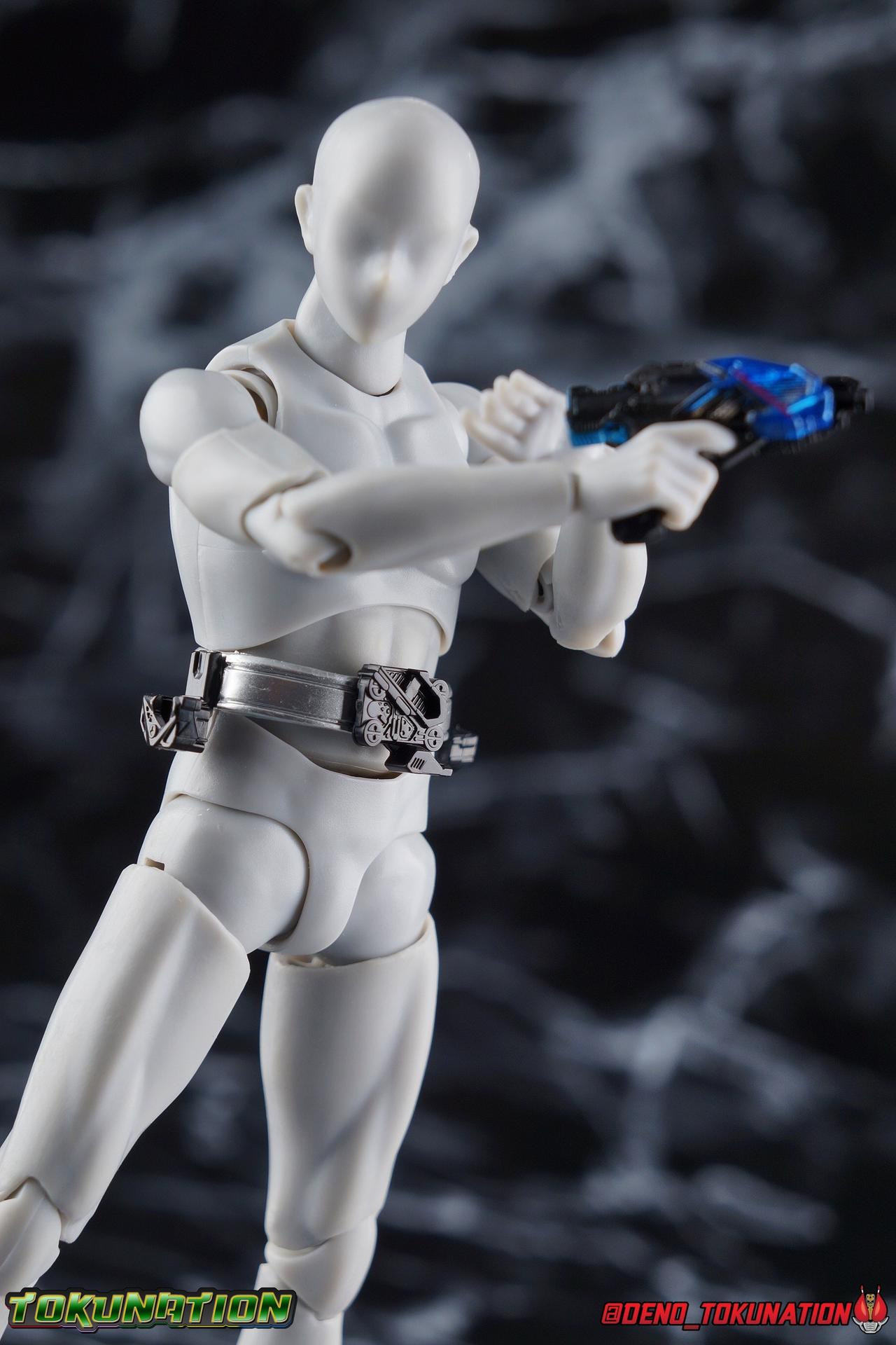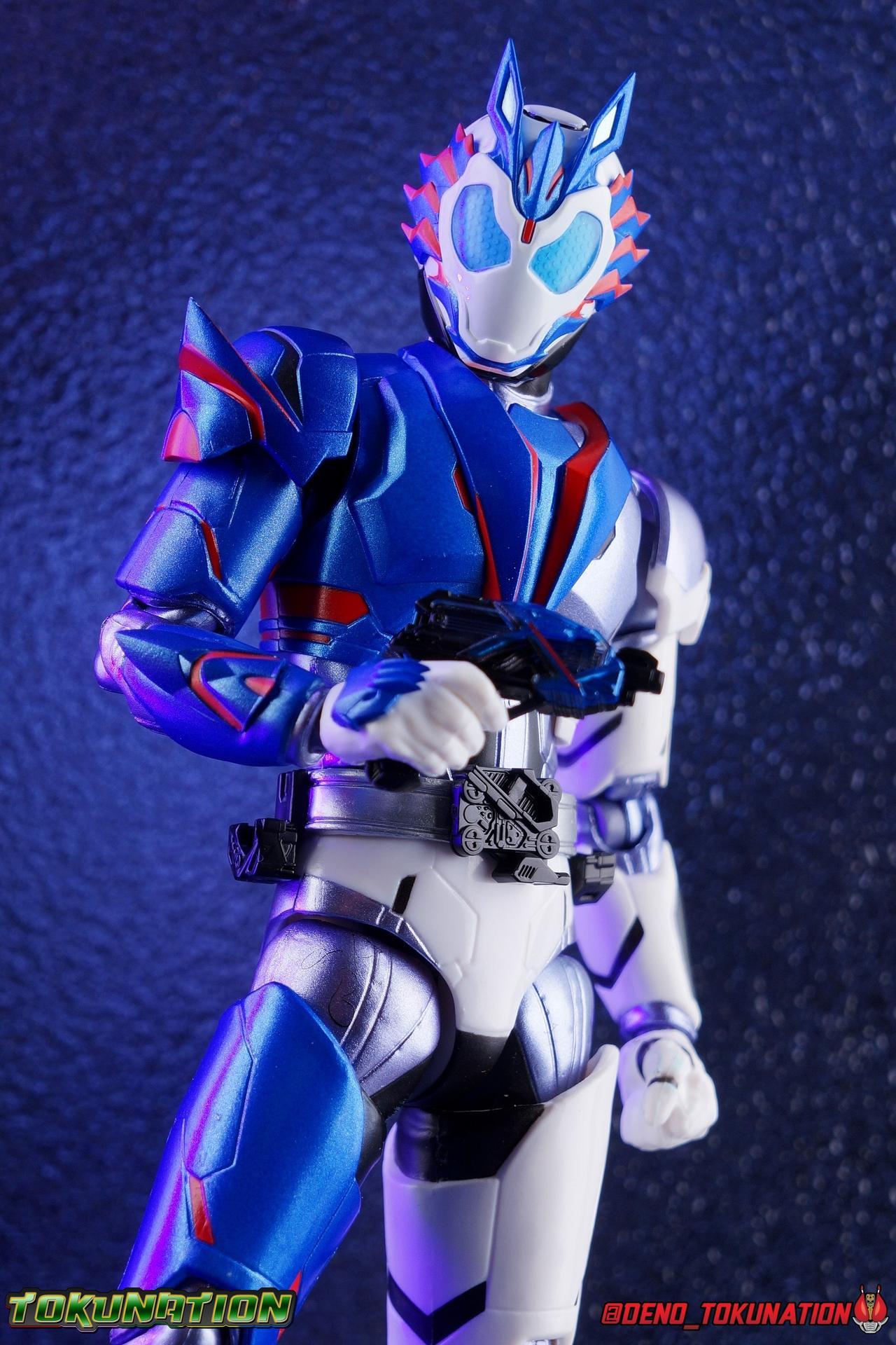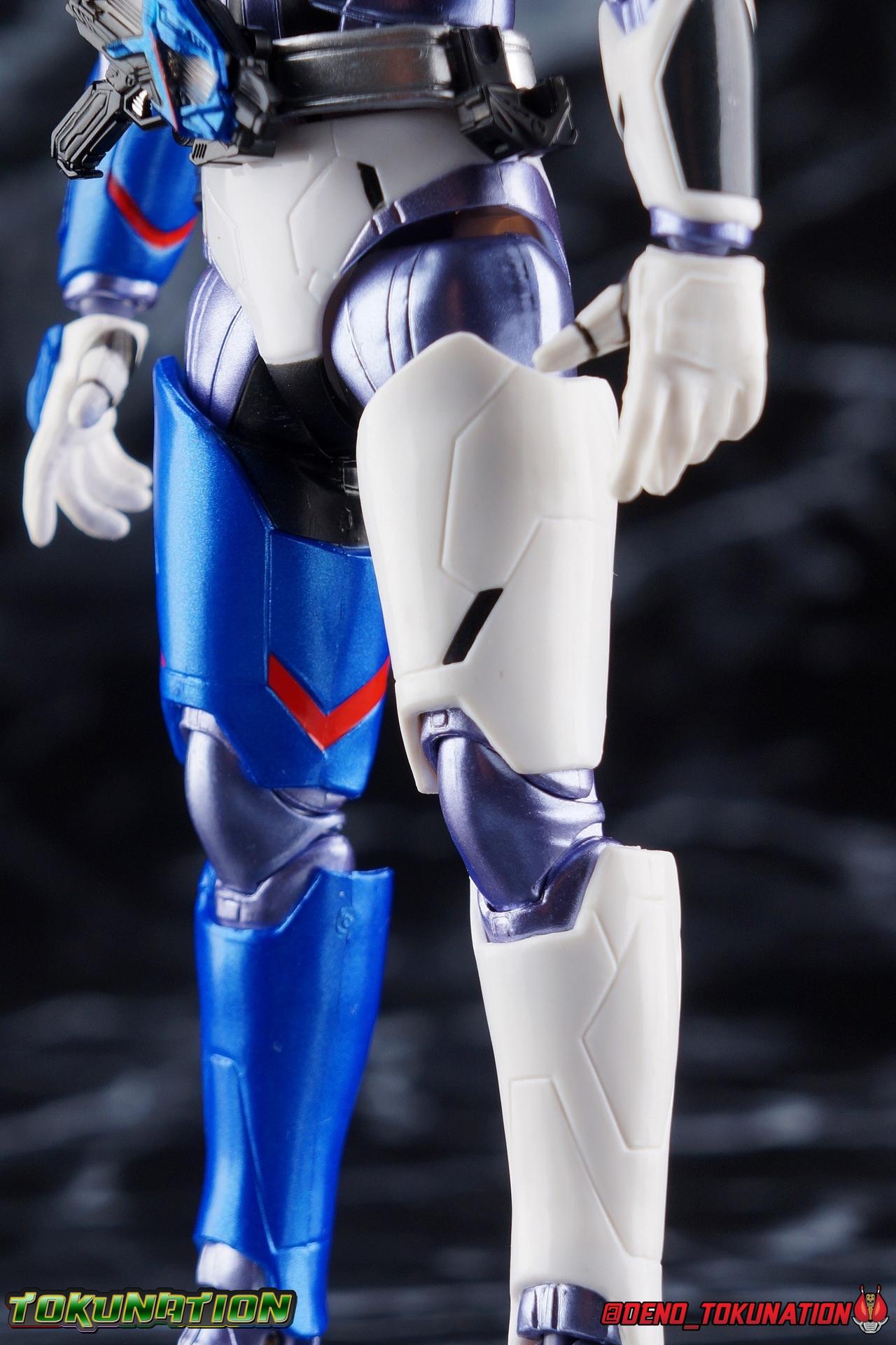 For as long as Fuwa Isamu could remember, his past was ruined by the berserk Humagears of Daybreak Town. Holding a grudge against them all because of this, Fuwa dedicated himself to their total destruction as a member of A.I.M.S. However, this was all a plot by president Gai Amatsu of ZAIA, to drive Fuwa to hate Humagears even more as he became a Kamen Rider. With the knowledge of his true past revealed, and both he and Naki free of ZAIA's control, Fuwa is ready to continue fighting free of the anger that drove him. Instead Fuwa will help defend Humagears with Aruto Hiden & Izu. He will realize his own dream, to truly be Kamen Rider Vulcan! Packaging While it's hard to say that there have been any real innovations in Kamen Rider Figuart packaging in recent years physically, Zero-One's box did something pretty cool with the black light reactive stripes. Vulcan however doesn't feature that same kind of touch. Zero-One is the only character in show to really be shown in that black light style in the opening though, so I'm not so surprised. The box design itself is very reminiscent of Vulcan's own Rising Impact attack. And I always welcome the annual change in rider box designs, so this is no different. Main Figure So Kamen Rider Zero-One really set quite the high bar for the riders of this series. Vulcan builds off that quite nicely as well. A new series always need to start strong and set the standard and two releases in, I believe Zero-One is going strong. The one thing Zero-One really has on Vulcan is the black light reactive parts. Despite being primarily colored white, Vulcan doesn't really have much reactivity to black lights. But that's not really a gimmick of his either, unlike Zero-One. But from functionality and detail stand points, Vulcan packs every bit of punch that Zero-One does. Vulcan's body is decked out in the same kinds of minute details as Zero-One. From the ground up it's a splendid recreation of the show costume. Much like Zero-One, Vulcan has feet that look an awful lot like actual sporty sneakers and function much the same, leaving the ankles to fully rotate and angle pretty freely back and forth. While toe bends can be easily overlooked, it's a big solid joint with plenty of surface coverage for support. For the legs we get a a really stellar backward bend in the knees giving us the ability to nearly lay the legs back parallel on themselves. Also like Zero-One, Vulcan has a ton of really well defined textured details on the body, though not really the same kinds. Zero-One's raised black textures are magnificent and add much depth to the design, but Vulcan has more of an armored appearance with nicely segmented components. This design looks much more like a suit of armor than Zero-One's more sporty look. One little not I adore is the slight creased folds on the knee joints giving them the appearance of real fabric. The thighs and hips themselves are also fantastically designed. While the hips are of the drop down variety, a kind I don't always like, these really are great and and leave plenty of leeway for posing particularly with that thick raised thigh armor. A similar design to Zero-One but clearly a different mold. Around the waist is the new Shot Riser! This A.I.M.S driver acts as both transformation device and weapon. About as functional as other recent driver's the Shot Riser is easily removable from the buckle around Vulcan's waist. A perfect fit for the hands included for it, this firearm can also except the same Progrise Keys that are present through out the Zero-One line. Like the Zero-One Driver there's a small window within the Shot Riser that shows the Progrise Key currently inserted, which is a fantastic detail. The Shot Riser of course has the Shooting Wolf Key pre-loaded. Both the left & right hips feature Progrise Holders like Zero-One, which may seem a bit odd given that so far we don't actually have any closed Progrise Keys in the line to use with them. I'm almost certain we'll see some included with future releases. The upper body is of a similar albeit slightly improved design over Zero-One. We get a complete 360 degree rotating waist joint, a floating upper body that can lean about 45 degrees to either side, and lots of room to arch the back with forward bends that are more pronounced than Zero-One. Vulcan also features some arms every bit as nice as his buddy. While he doesn't have the same kind of low profile shoulder pads as Zero-One, we get lots of play in the shoulder pads thanks to the same slide mechanism underneath. You can take advantage of it to angle the armor up over the main body and stretch the arms outward a bit more. There's a full 360 rotating bicep swivel, double jointed elbows and a great set of wrist ball joints. The arms may not do anything particularly new, but what they do accomplish makes them very solid. This finally brings us to Vulcan's head. The sculpt is certainly dead on, but I swear every time I look at it, it feels less like a wolf and more like a horse design to me? That may just be me, but still the head looks great, particularly those striking blue compound eyes. However I do feel the neck has a bit more limitation to it than Zero-One did. But Zero-One also has quite the extraordinarily designed neck as well. Even with it's slight limitation this is still a fantastic design that tops off the figure very nicely. Accessories Fuwa comes with everything he needs and then some: 4 - sets of hands. 1 pair each for holding either of the included weapons, 1 pair of open palms, and 1 pair of closed fists. The figure comes with another pair of open palms already attached as well. 1 - Attache Shotgun. A powerful sidearm wielded by both Kamen Rider's Vulcan & Jin, this Attache Shotgun is a non-transforming scale representation of the in-show weapon. While it's non-functional it's still pretty great to have it included when Zero-One didn't get his Attache weapon. Speaking of... 1 - Attache Calibur. Intended for use with you