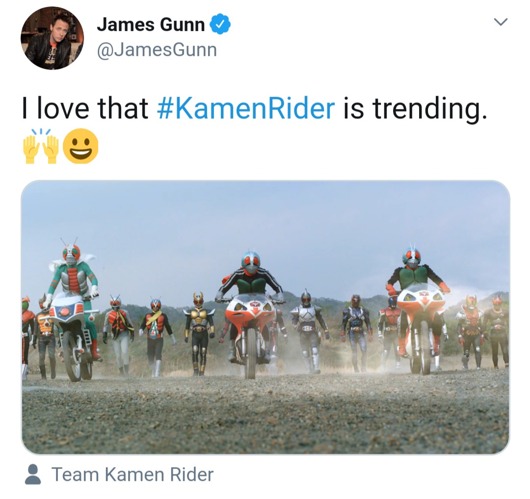 The genius behind Guardians of the Galaxy movies confirmed he's a huge fan of Kamen Rider Franchise. |