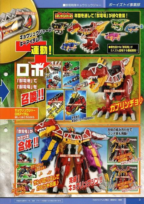 TokuNation citizens, meet your 2013 Super Sentai Team (Officially) Toei's official release image contains clear look of the Jyuuden Sentai Kyoryuger team as well as the Kamitsuki Gattai Kyoryujin's in-show look. The flyer also contains the synopsis of the show and the premiere date of February 17th, 2013