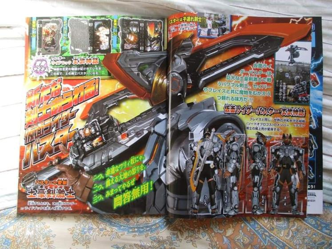 Speaking of which, now that I have a closer look at the two, why are the crossguards for both Saber and Caliber pointing down? The whole point of a crossguard is to stop your opponents weapon from sliding down the blade and cutting your hands. ----------------------------------------------------------------------------------------- Buster uses the Genbu wonder ride book, which is no surprise. Saber also gets another form using what I assume is the Needle Hedgehog book. Also, yeah interesting to see all three generals have monster forms right from the get-go (probably them avoiding what supposedly happened with the Time Jackers), I assume the monster forms are all based on a different genre like the wonder ride books. |