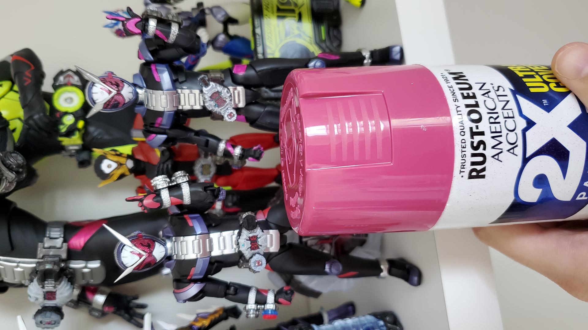 I'm not sure. I ended up painting Zi-o with a pink paint marker/sharpie before I was using sprays. Looks like it might be a little light for Zi-o, but I'm sure it would do. Here's some pics of the cap next to the anniversary riders.