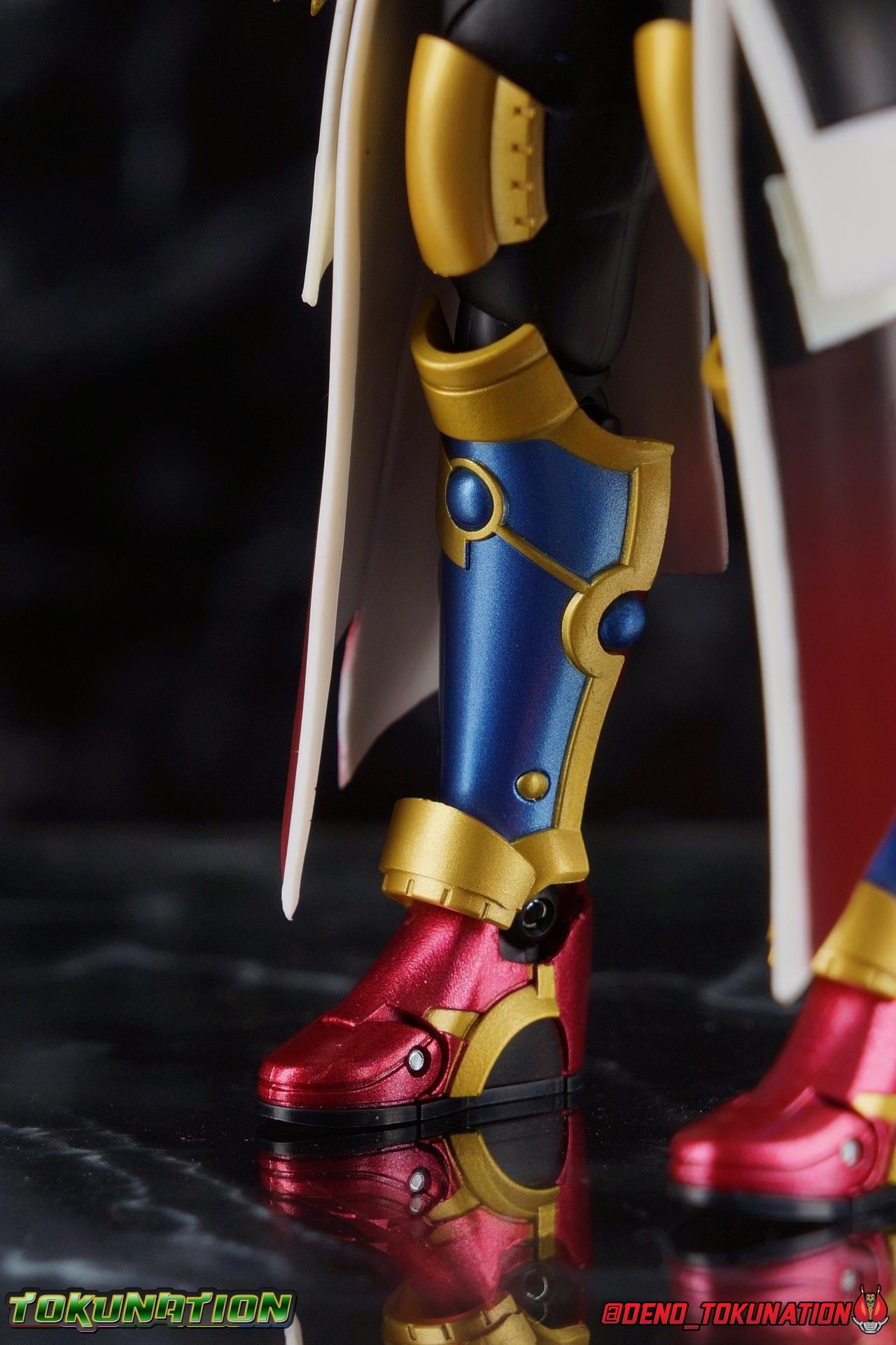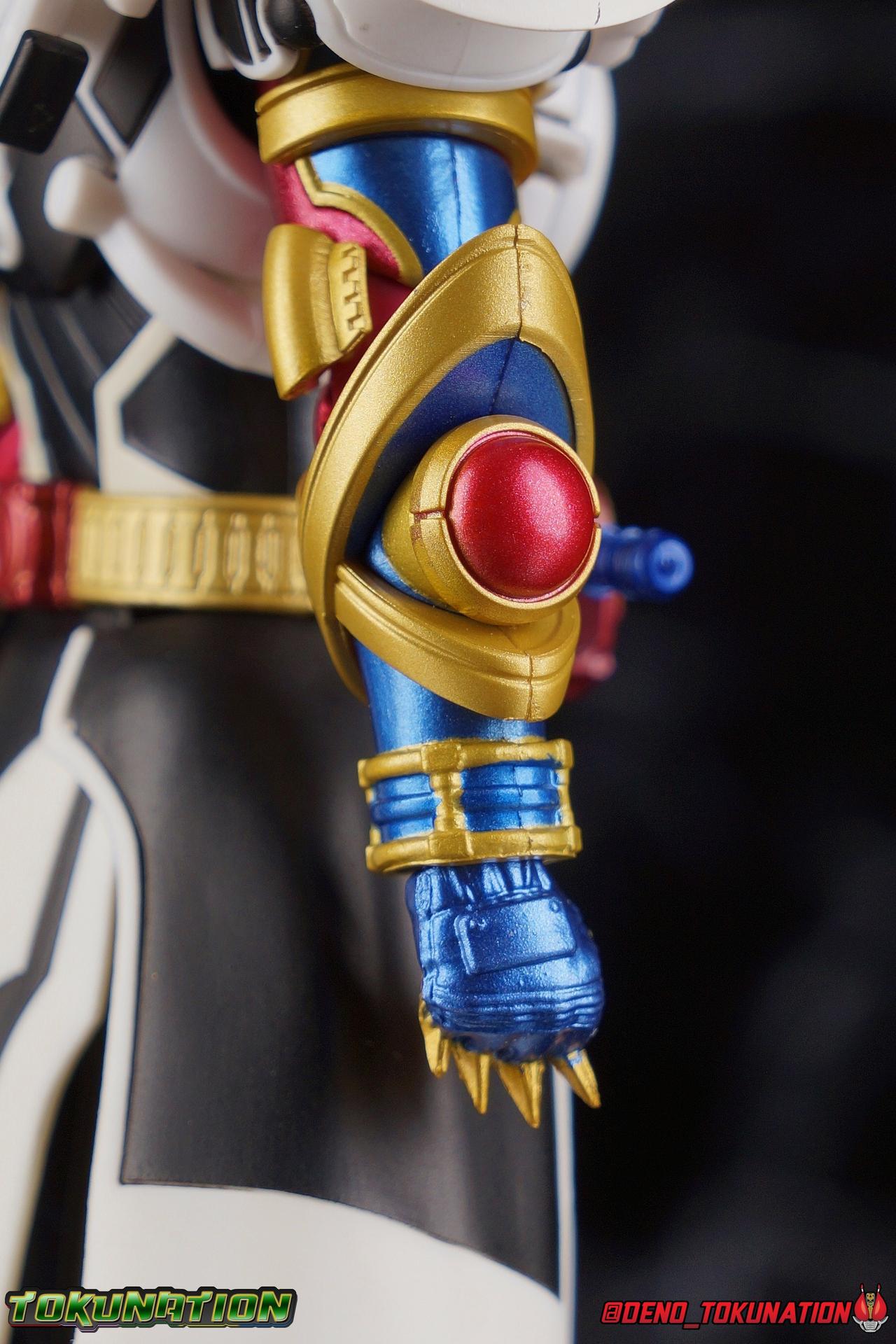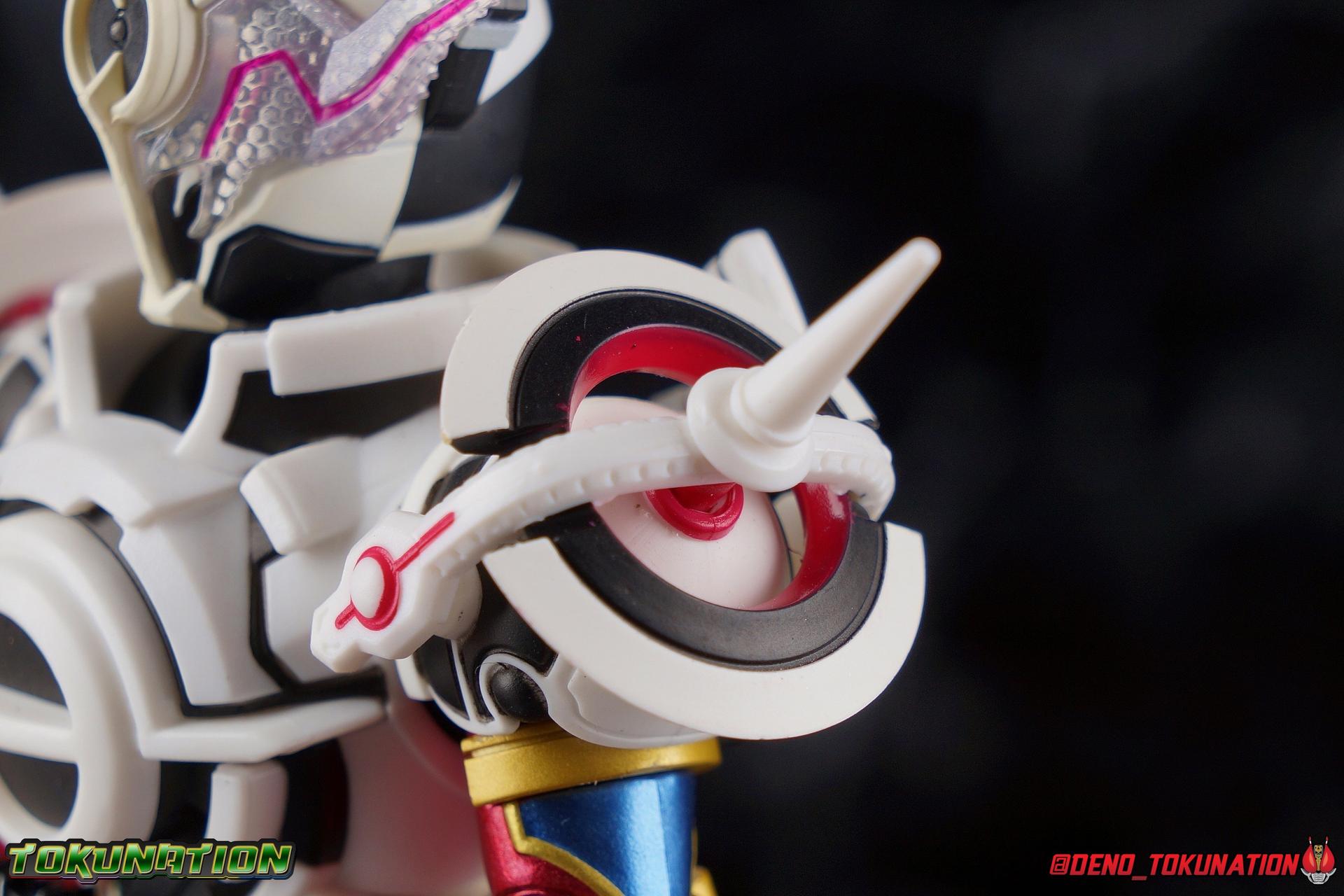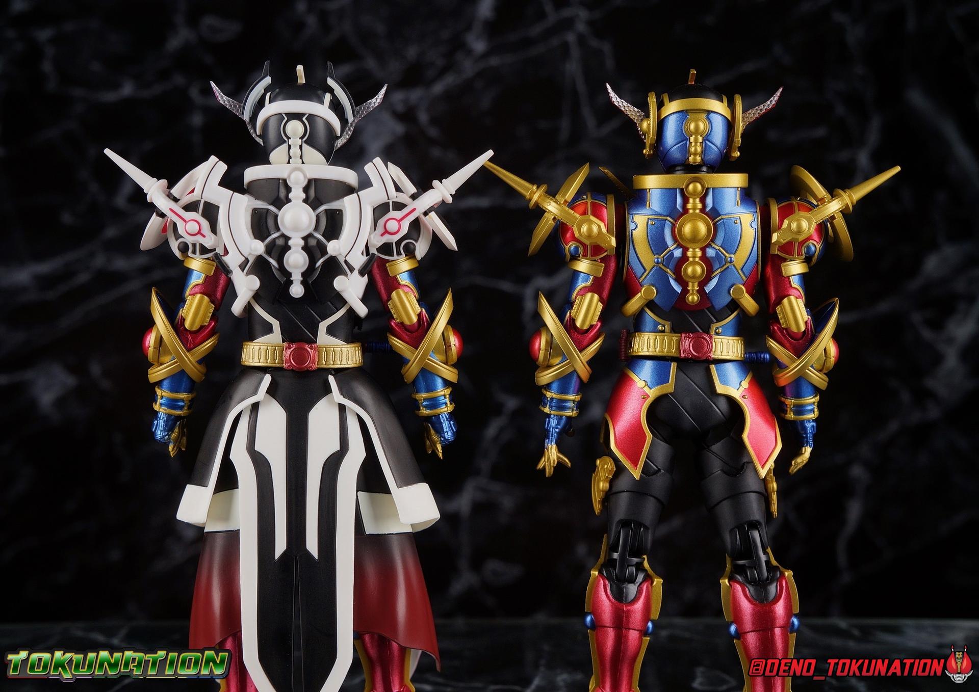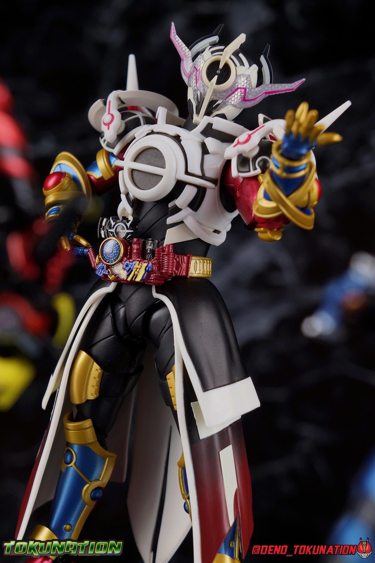 Manipulating the world around him since he arrived on Earth, the alien Evolt has continued to evolve. Shedding the skin of Blood Stalk thanks to the Evol Driver at Phase 1. Absorbing the rage of a dragon with Ryuga at Phase 2. And absorbing the rabbit genius with Sento at Phase 3. But with the powers of the Evol Trigger finally restored, an even greater evolution is revealed as Evolt enters Phase 4. The awesome power of Kamen Rider Evol Black Hole is reborn! Consuming everything in his path, this is the power that destroyed Mars, and will destroy the Earth if Kamen Rider Build and his allies fail. Are you ready? Packaging Nothing terribly new to report here after over 20 Kamen Rider Build figuarts releases. This box is very similar in general design to the Evol Phase 1 2 3 set packaging. The only difference being here that there isn't an extra layer of accessories in the bottom of the tray. So the overall box isn't as thick. The color scheme of this box is a bit more subdued than the prior release as well, but really that's not the part of the review you're here for. Main Figure A portion of the review for Evol Black Hole will be the same as my review for the Evol Phase 1 2 3 Set Largely because the majority of the body is unchanged for this release of the mold. The basic engineering and structures are the same, though some new armor is included this go around. Kamen Rider Evol's base form, Cobra, is an incredibly stylish suit design. While I like Dragon & Rabbit as well, Phase 1 is still the best of the 3, and thankfully that's the basis for Black Hole or Phase 4. Like the other 3 forms, Black Hole feels as alien as possible. The Riders feel like the earthly derivatives of Evol that they are, and while Black Hole changes some of what I liked about Phase 1, it really helps set it even further apart from the earthly riders while drawing a couple just a bit closer as well, like Mad Rogue & the Hell Bros. Phase 1 was littered with gold and orbs and circular lines and even had a star map emblazoned on it's forehead. It reminded me very much of theoretical Da Vinci machines as well as telescopes astrolabes sextants and more. Black Hold trades in much of those vibrant colors for the appropriately vacant and cold white and black color scheme of most of the body. Though the design definitely looks foreign because of all the armor bits, at the core Black Hole uses the Build/Cross-Z leg design. This is mostly evident in the thighs but really the general shape of the leg is there, just contoured by new gold armor. Surprisingly the armor on the legs doesn't really affect how they function though. The ankles are about as good as they've always been, not outstanding by any measure, but decent enough to get good poses out of. Despite the overhang of armor on the bottom of the shin, and added bulk around the knee joint, both remain largely unrestricted as well. We run into issues when we get to the hanging skirt armor though. Evol had some great thigh armor on the front and sides. Black Hole extends this even further, giving the form a sort of 2 layered coattails. Unfortunately, having not learned from their mistakes making capes and such out of hard plastic, these parts are thin rigid, somewhat flexible, plastic on a rather limited hinge. So you'll have to fiddle with it somewhat to get the legs in and around that. So just be careful not to break anything. This plastic can flex, but I do not at all recommend doing it for extending periods or you risk warping and stress fracturing it. Which would be a shame on a figure this extensive. Aside from the skirt armor, the legs themselves are 100% unchanged from their use in the previous Evol set. On his waist, Evol Black Hole features his eponymous Evol Driver. This is now the 3rd time we've seen this exact same Driver in the line too. We got it with Mad Rogue as well as the last Evol. The shade of red appears identical to Evol, though Mad Rogue's is still curiously slightly different. The Evol Driver also includes the same Evol Bottles this go around with the Cobra & Rider System Bottles. Once again this driver is functional, bottles can be swapped out as desired, and the handle can be cranked. Finally the one big change for the Driver is the inclusion of the Evol Trigger, the original basis for the Hazard Trigger. Once again I love seeing these parts of Evol's technology and piecing together how the earth made equipment was derived from it. The Evol Trigger looks very alien indeed. I wish it was removeable, perhaps it is even. But the paint's rather thick on mine and it just won't budge. at this point I'd rather not break it attempting to remove it. The lower torso also features that same black striated form we've come to know from the Build Rabbit/Tank torso. Only this time it's encased in the alien armor of Evol. Despite what you may assume, or in fact what I assumed about the chest armor, that chunk of the body is entirely new. It's not just a remold of the previous one. As you can see in my comparison photos below, not only is it larger and bulkier making Black Hole seem even more imposing, it actually makes him slightly taller as well, just slightly taller than Evol Phase 1. The spherical structures of this chest are more refined and symmetrical now, which is a bit of a shame considering how much I loved the last form, but it looks unquestionably nice as well. The general contour of the armor is the same as the old one but like I said it's much bulkier. The articulation of the torso may leave a bit to be desired because of all this bulk, but it could be much worse as well. There's a surprising amount room to play with. Black Hole's arms feature new parts only in the shoulder pads. While the basic mold is the same, some of the surface details have been changed to match the new aesthetic and they're now white to match the torso color. Oddly enough, these pads didn't affect articulation much on the first Evol, but because of the new torso armor bulk they 