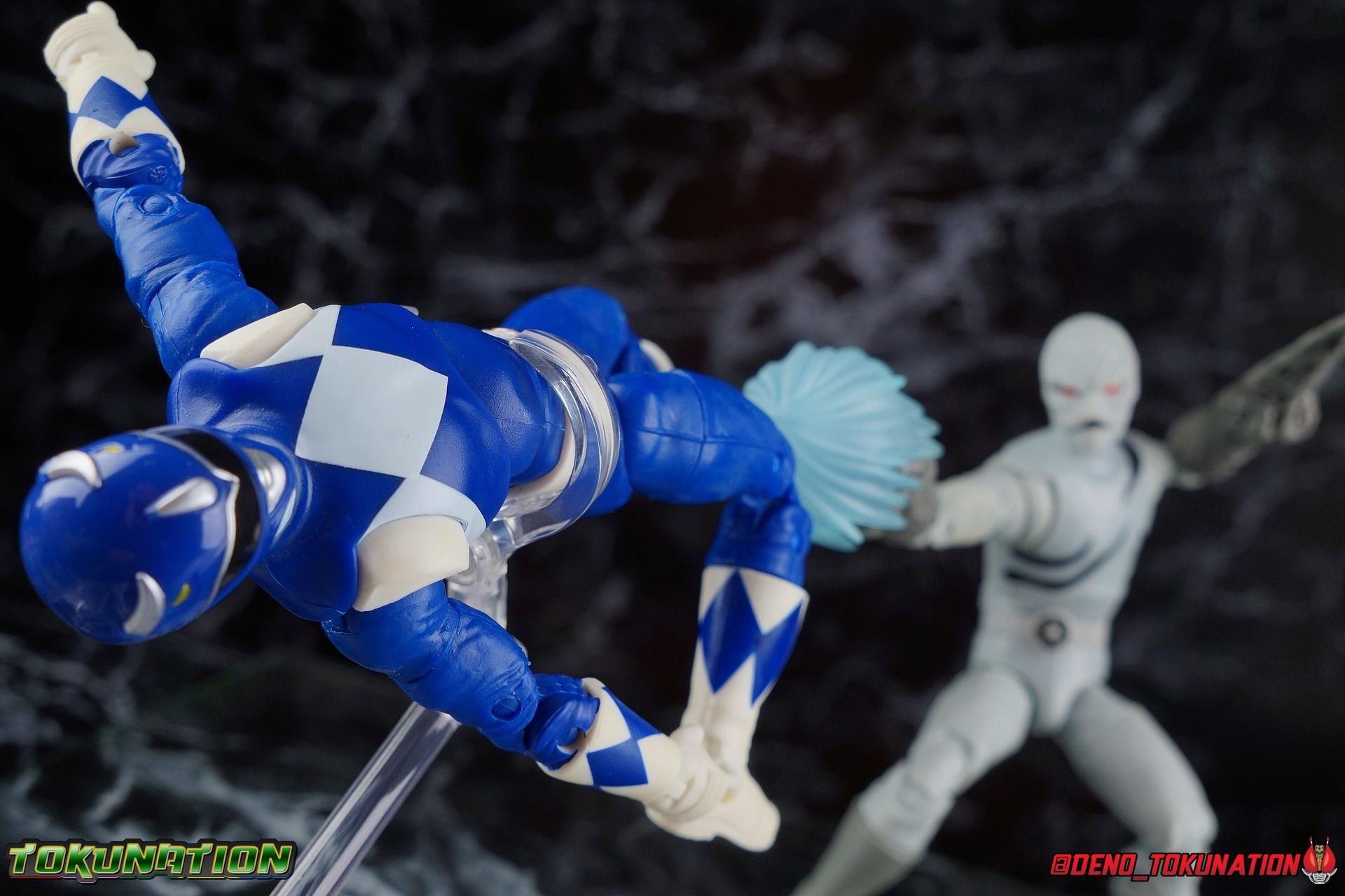 Billy Cranston was an average kid with a way beyond average intellect. Making his way through high school with his friends was hard enough, before a benevolent inter-dimensional being chose him and 4 others to protect the Earth from an ancient evil sorceress! Patient & wise, Billy was gifted the powers of the Mighty Morphin Blue Ranger & the powerful Triceratops Dinozord! Part of an incredible team, Billy defended the Earth for years to come as it's one and only Blue Ranger. When things changed, Billy was always there with a steady hand and strong mind to help guide the Power Rangers towards victory. Packaging As we are all pretty familiar with the line by now, I'm sure I probably don't need to go through my usual list of reasons why it's awesome. Hasbro was keen to make sure these appealed to collectors and fans of the franchise from throughout it's various eras. And they also really pop thanks in no small part to some wonderful box art, lovingly crafted by artist Tom Whalen aka @strongstufftom on twitter. His artwork is breathtaking, and makes these figure's feel like just a bit more of a passion project from the folks at Hasbro. Main Figure It should be obvious by now, but this isn't the first time we've seen this mold. This is now the 4th outing of the male Mighty Morphin body. (MMPR White & Lord Drakkon share their own basic mold, differing from this one a bit.) What we have here is the exact same body type we got with the Dragon Shield Red Ranger, Dragon Shield Black Ranger, & Fighting Spirit Green Ranger, just sans the shield and armbands. This is a functionally identical toy in every single way to the standard Red Ranger released in Wave 3. As mentioned above, nothing has changed other than cosmetically. The Mighty Morphin Blue Ranger features full rotating rocker ankles as well as a clicking swivel joint for them to go back and forth, giving us a solid start. Above this is a shin swivel as well at the boot cuff, allowing you to rotate that portion of the leg 360 degrees below the knee if you wish. There's a very playful double jointed knee which allows you to fully bend the leg back in on itself. This is already great but there's also a 360 thigh swivel as well as full hips with back/forth and outward motion. All of these cuts are executed in the now standard Lightning Collection styling, doing their best to not be obtrusive to the character's design. On the belt is the classic Power Morpher featuring the Triceratops Power Coin, while a holster sits on the left hip for the included Blade Blaster. Like his mold mates, the Blue Ranger features the same torso articulation. The lower half of the torso has the same satisfying ratcheting ab joint I've come to appreciate from the line while the upper half sits on a ball joint. The combination of the two gives you quite a bit to work with when posing. The arms hit the sweet spot with that classic butterfly style shoulder joint. As you angle the shoulder back, the armor slides out to fill the gap and vice versa. There's a full 360 rotating bicep swivel, double jointed elbows, and the same peg style hands as the rest of the line. The head also nails the sculpt and design of the Blue Ranger design. It feels a bit stronger and more well defined than the Red Ranger for sure. As for articulation, the neck assembly is identical to the rest of the line. Nothing new, just solidly functional. Accessories 1 - Billy Cranston civilian head. Like most any Lightning Collection Ranger, the Blue Ranger comes with an alternate civilian head. Based on the likeness of actor David Yost. Now I've seen lots of complaining about this head online, but I'm not sure I get the distaste of it. I think this winds up being a pretty great likeness of Mr. Yost ala MMPR season 1. It's lifelike, there's an expression which many heads in the line lack, and there's a great attention to detail particularly with the glasses. Is it perfect? No. But I don't think this one deserves much of the derision is gets. It's nothing like the generally terrible Dino Charge Gold & Zeo Blue civillian heads. 2 - Power Lances (separate). These are straight repacks of the ones that came with the SDCC Red Ranger in the Power Blaster set. While I know they don't have a specific name for when they're separated like this, there more like sai's in this form than lances. As is they feel a little more rigid than the ones that came in the Power Blaster. 1 - Power Lance (full length). Now this is more like it. While I find it difficult for Billy to hold it with two hands in pose that doesn't bend it substantially, it's certainly nice to have both versions of the Lance included. And this one being the proper length really does it for me as well. It would have been a real shame if it weren't scaled properly. 1 - Blade Blaster (Blaster Mode). Continuing an unfortunate pattern, Hasbro has opted to include the Blade Blaster only in it's Blaster form. Meaning that when holstered in the any of the MMPR Ranger's belts, it's entirely inaccurate. In all Zyuranger footage, and even in American produced MMPR suit footage, the Blade Blaster is always closed and usually fully collapsed when holstered. You can hide the butt of the gun at certain angles but it just isn't the right accessory. If we were going to get the blaster, then they should have also included the holstered form too but I've said that with what, like 5 MMPR releases at this point as well? 1 - Energy Effect part. This one's been recast in different colors a couple times in the line, mostly recently with the single pack version of the Zeo Gold Ranger. It's maybe my least favorite effect as well. It's just really flimsy and doesn't secure around anything very well. Particularly something as spindly as Billy's lance. 2 - Alternate hands. Continuing another recent trend with Lightning Collection figures, the Blue Ranger comes with his two weapon holding hands attached in box. And his alternates are both closed fists, giving us two matching sets. As alw