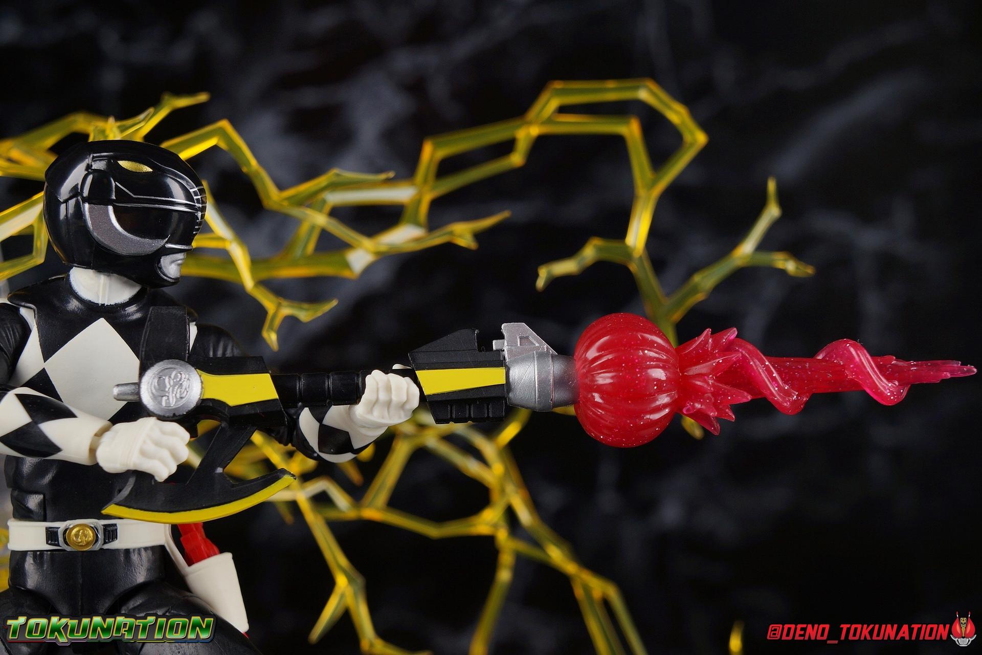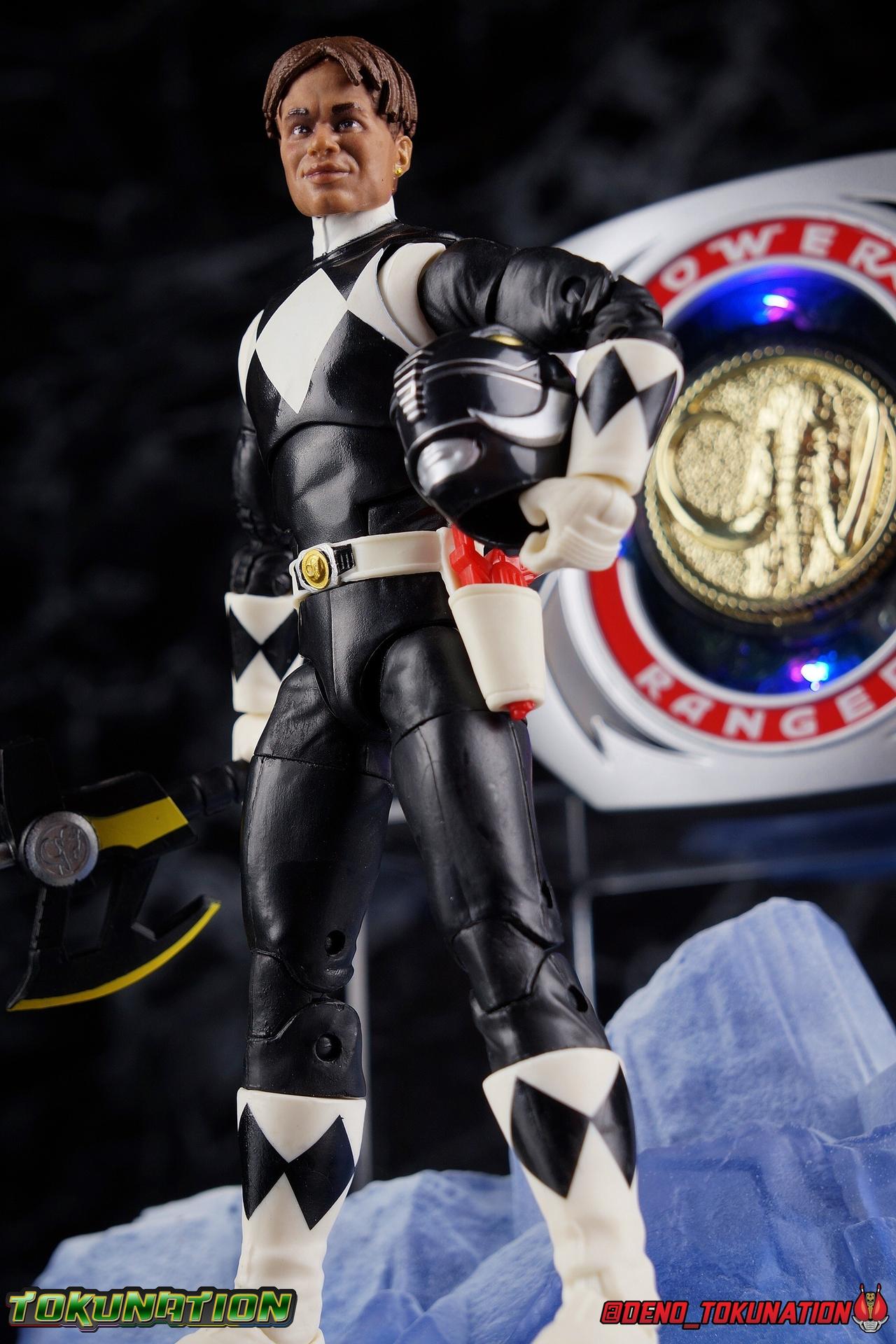 An interdimensional wizard asking him to defend the earth from a 10,000 year old witch may have been just too weird for Zack Taylor, at first. But faced with a choice, let monsters attack him and his friends or step up and defend the Earth, he was always going to do the right thing. Clever & brave, Zack was gifted the powers of the Mighty Morphin Black Ranger & the powerful Mastodon Dinozord! Protecting Earth from the likes of Rita Repulsa and Lord Zedd, Zack was the first in a long line of Black Powers Rangers and powerful black heroes. Packaging As we are all pretty familiar with the line by now, I'm sure I probably don't need to go through my usual list of reasons why it's awesome. Hasbro was keen to make sure these appealed to collectors and fans of the franchise from throughout it's various eras. And they also really pop thanks in no small part to some wonderful box art, lovingly crafted by artist Tom Whalen aka @strongstufftom on twitter. His artwork is breathtaking, and makes these figure's feel like just a bit more of a passion project from the folks at Hasbro. Main Figure The mold that never dies, returns again! This is now the 7th outing of the male Mighty Morphin body, including the second Green Ranger that I've yet to get in hand. (MMPR White & Lord Drakkon share their own basic mold, differing from this one a bit.) What we have here is the exact same body type we got with the Dragon Shield Red Ranger, Dragon Shield Black Ranger, & Fighting Spirit Green Ranger, just sans the shield and armbands. And it is exactly what we got before with the Red Ranger & Blue Ranger, the only differences being cosmetics and a new helmet. As mentioned above, nothing has changed other than cosmetically. The Mighty Morphin Black Ranger features full rotating rocker ankles as well as a clicking swivel joint for them to go back and forth, giving us a solid start. Above this is a shin swivel as well at the boot cuff, allowing you to rotate that portion of the leg 360 degrees below the knee if you wish. There's a very playful double jointed knee which allows you to fully bend the leg back in on itself. This is already great but there's also a 360 thigh swivel as well as full hips with back/forth and outward motion. All of these cuts are executed in the now standard Lightning Collection styling, doing their best to not be obtrusive to the character's design. On the belt is the classic Power Morpher featuring the Mastodon Power Coin, while a holster sits on the left hip for the included Blade Blasters. Like his mold mates, the Black Ranger features the same torso articulation. The lower half of the torso has the same satisfying ratcheting ab joint I've come to appreciate from the line while the upper half sits on a ball joint. The combination of the two gives you quite a bit to work with when posing. The arms hit the sweet spot with that classic butterfly style shoulder joint. As you angle the shoulder back, the armor slides out to fill the gap and vice versa. There's a full 360 rotating bicep swivel, double jointed elbows, and the same peg style hands as the rest of the line. The head also nails the sculpt and design of the Black Ranger design. It is of course carried over directly from the Dragon Shield Black Ranger release. As for articulation, the neck assembly is identical to the rest of the line. Nothing new, just solidly functional. Accessories 1 - Zack Taylor civilian head. Joining an exclusive club of only a few characters which have had multiple head sculpts in the line, Zack gets his 2nd one here. It seem Hasbro was probably going for an MMPR Season 3 look, roughly around the White Light storyline with this head. Whereas the head that came with Dragon Shield Black Ranger represents Zack at some point roughly during the first season. I have to say that this new Zak likeness isn't nearly as strong as the first one. It still gets the point across that it's based on actor Walter Jones, but it definitely could have been better. Luckily the head that came with the previous release works just fine on this one. 1 - Power Axe. A re-pack of the accessory included with the SDCC Red Ranger and with the Dragon Shield Black Ranger, the Power Axe is a nice beefy compliment to the Black Ranger. What I really appreciate about it though is that it's functional. The sliding mechanism of the barrel allows you to display it as either the Axe or Blaster modes. The grip for blaster mode is a little bit too large to be held properly by the included hands, but this is even more apparent with the axe handle. It's an incredibly thick handle, and you will have to stretch the hands a bit to make him hold it correctly. Since this is a repack of the weapon as we've seen it previously, it can also combine with the other individual Power Weapons if you so choose. 1 - Power Axe Blaster Effect. Another reuse from a prior release, we get the Power Axe blast effect again, but this time recast in a swirling red with glittery accents. IT plugs directly into the blaster end of the axe and could be use either for the individual blaster or for the combined Power Blaster. I think the intent may have been to use this read one for the combined mode given how that effect is generally rendered in the show. 1 - Blade Blaster (Blaster Mode). Continuing an unfortunate pattern, Hasbro has opted to include the Blade Blaster in it's Blaster form. Meaning that when holstered in the any of the MMPR Ranger's belts, it's entirely inaccurate. In all Zyuranger footage, and even in American produced MMPR suit footage, the Blade Blaster is always closed and usually fully collapsed when holstered. You can hide the butt of the gun at certain angles but it just isn't the right accessory. 1 - Blade Blaster (Sword Mode). Now this is unique. The standard Black Ranger is the first and only ranger to include this version of the Blaster. The SDCC Red Ranger came with the only fully collapsed Dagger Mode, while every other ranger in the line came with the Blast
