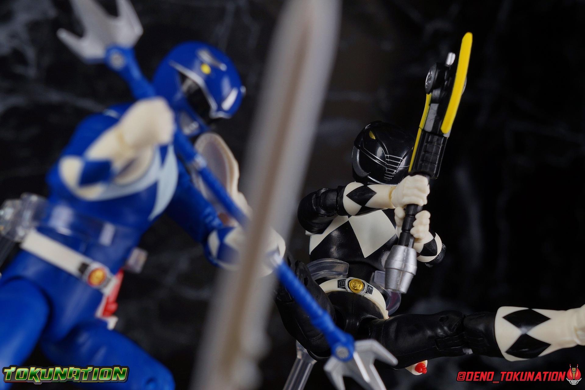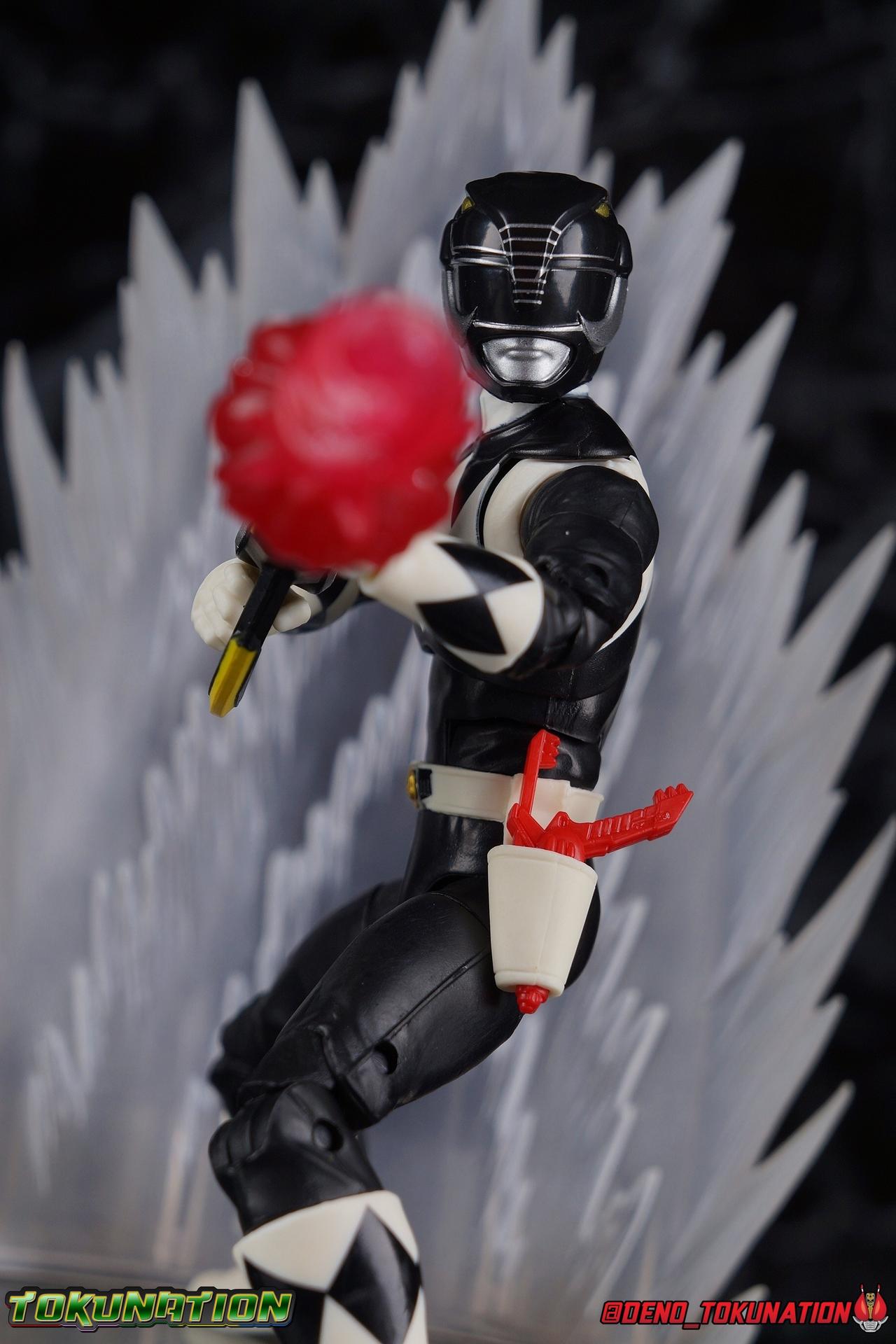 An interdimensional wizard asking him to defend the earth from a 10,000 year old witch may have been just too weird for Zack Taylor, at first. But faced with a choice, let monsters attack him and his friends or step up and defend the Earth, he was always going to do the right thing. Clever & brave, Zack was gifted the powers of the Mighty Morphin Black Ranger & the powerful Mastodon Dinozord! Protecting Earth from the likes of Rita Repulsa and Lord Zedd, Zack was the first in a long line of Black Powers Rangers and powerful black heroes. Packaging As we are all pretty familiar with the line by now, I'm sure I probably don't need to go through my usual list of reasons why it's awesome. Hasbro was keen to make sure these appealed to collectors and fans of the franchise from throughout it's various eras. And they also really pop thanks in no small part to some wonderful box art, lovingly crafted by artist Tom Whalen aka @strongstufftom on twitter. His artwork is breathtaking, and makes these figure's feel like just a bit more of a passion project from the folks at Hasbro. Main Figure The mold that never dies, returns again! This is now the 7th outing of the male Mighty Morphin body, including the second Green Ranger that I've yet to get in hand. (MMPR White & Lord Drakkon share their own basic mold, differing from this one a bit.) What we have here is the exact same body type we got with the Dragon Shield Red Ranger, Dragon Shield Black Ranger, & Fighting Spirit Green Ranger, just sans the shield and armbands. And it is exactly what we got before with the Red Ranger & Blue Ranger, the only differences being cosmetics and a new helmet. As mentioned above, nothing has changed other than cosmetically. The Mighty Morphin Black Ranger features full rotating rocker ankles as well as a clicking swivel joint for them to go back and forth, giving us a solid start. Above this is a shin swivel as well at the boot cuff, allowing you to rotate that portion of the leg 360 degrees below the knee if you wish. There's a very playful double jointed knee which allows you to fully bend the leg back in on itself. This is already great but there's also a 360 thigh swivel as well as full hips with back/forth and outward motion. All of these cuts are executed in the now standard Lightning Collection styling, doing their best to not be obtrusive to the character's design. On the belt is the classic Power Morpher featuring the Mastodon Power Coin, while a holster sits on the left hip for the included Blade Blasters. Like his mold mates, the Black Ranger features the same torso articulation. The lower half of the torso has the same satisfying ratcheting ab joint I've come to appreciate from the line while the upper half sits on a ball joint. The combination of the two gives you quite a bit to work with when posing. The arms hit the sweet spot with that classic butterfly style shoulder joint. As you angle the shoulder back, the armor slides out to fill the gap and vice versa. There's a full 360 rotating bicep swivel, double jointed elbows, and the same peg style hands as the rest of the line. The head also nails the sculpt and design of the Black Ranger design. It is of course carried over directly from the Dragon Shield Black Ranger release. As for articulation, the neck assembly is identical to the rest of the line. Nothing new, just solidly functional. Accessories 1 - Zack Taylor civilian head. Joining an exclusive club of only a few characters which have had multiple head sculpts in the line, Zack gets his 2nd one here. It seem Hasbro was probably going for an MMPR Season 3 look, roughly around the White Light storyline with this head. Whereas the head that came with Dragon Shield Black Ranger represents Zack at some point roughly during the first season. I have to say that this new Zak likeness isn't nearly as strong as the first one. It still gets the point across that it's based on actor Walter Jones, but it definitely could have been better. Luckily the head that came with the previous release works just fine on this one. 1 - Power Axe. A re-pack of the accessory included with the SDCC Red Ranger and with the Dragon Shield Black Ranger, the Power Axe is a nice beefy compliment to the Black Ranger. What I really appreciate about it though is that it's functional. The sliding mechanism of the barrel allows you to display it as either the Axe or Blaster modes. The grip for blaster mode is a little bit too large to be held properly by the included hands, but this is even more apparent with the axe handle. It's an incredibly thick handle, and you will have to stretch the hands a bit to make him hold it correctly. Since this is a repack of the weapon as we've seen it previously, it can also combine with the other individual Power Weapons if you so choose. 1 - Power Axe Blaster Effect. Another reuse from a prior release, we get the Power Axe blast effect again, but this time recast in a swirling red with glittery accents. IT plugs directly into the blaster end of the axe and could be use either for the individual blaster or for the combined Power Blaster. I think the intent may have been to use this read one for the combined mode given how that effect is generally rendered in the show. 1 - Blade Blaster (Blaster Mode). Continuing an unfortunate pattern, Hasbro has opted to include the Blade Blaster in it's Blaster form. Meaning that when holstered in the any of the MMPR Ranger's belts, it's entirely inaccurate. In all Zyuranger footage, and even in American produced MMPR suit footage, the Blade Blaster is always closed and usually fully collapsed when holstered. You can hide the butt of the gun at certain angles but it just isn't the right accessory. 1 - Blade Blaster (Sword Mode). Now this is unique. The standard Black Ranger is the first and only ranger to include this version of the Blaster. The SDCC Red Ranger came with the only fully collapsed Dagger Mode, while every other ranger in the line came with the Blast