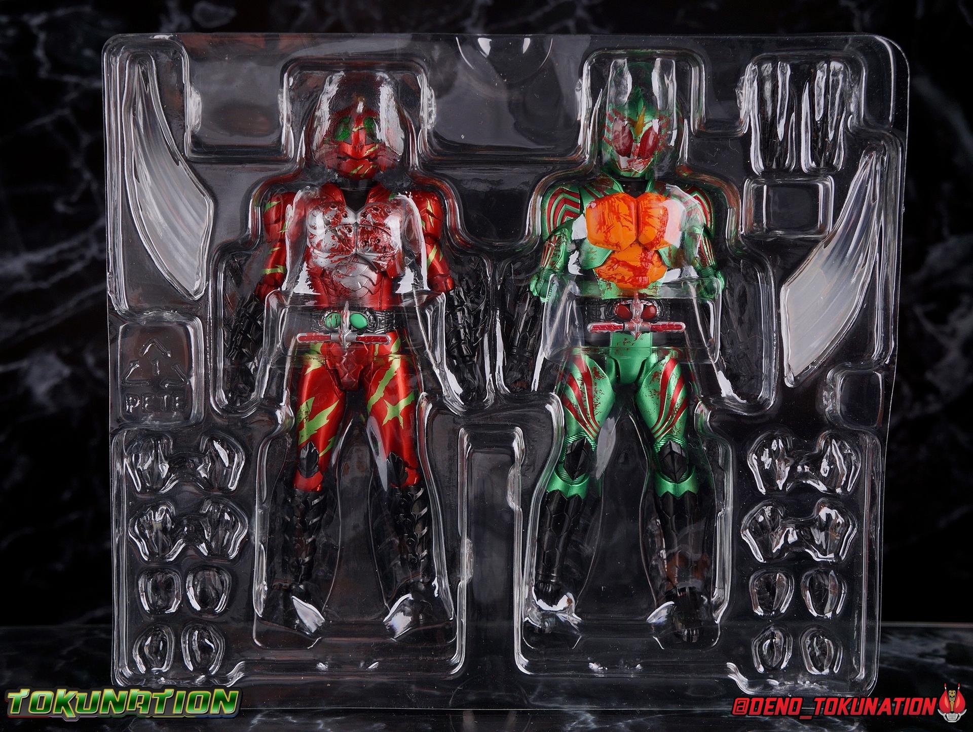 Continually hunted by 4C, Haruka Mizusawa stumbles onto the darkest secret yet in the history of the Amazon Cells. In a quiet mountain village children are cared for until they can find new homes. At least, that's the cover story. In reality this is a farm for growing meat. Young Amazons are grown and sold to wealthy humans as livestock, eaten as a delicacy. Darker still, these children are bred from the blood of Jin Takayama, miraculously still alive. This horrific new iteration of the Sigma Project brings Amazon Alpha & Amazon Omega together for their final climactic battle. The Final Judgement is here. Packaging Now this is an unusual one for sure, among all Figuarts. As a two-pack this set was bound to be a bit different but everything about it is unusual. Rather than being made of the standard thin single layer cardboard, this box is actually a pretty thick corrugated double layer box. This unique box opens up and out with a tabbing flap that reveals a cardboard insert covering the figures. And beneath that we have both riders in a large clam shell case with all of their accessories. It's super unorthodox in both presentation and material construction. But it makes this feel like the premium exclusive that is as well. Main Figures Honestly, there isn't a lot to say here. This is now the third out for both of these molds. Amazon Alpha and Amazon Omega have each gotten 3 releases over the course of the Amazons franchise. And as these Last Judgement releases suggest with their name, this is likely their final outing so it's back to basics. Back to the original version of each mold. Functionally they're identical the first Alpha & Omega we got from the line. These two are just made to look as though they have extensive battle damage, which is mostly accomplished with paint apps, though there are a handful of newly sculpted components as well. But if you've handled any of the variations of this mold over the last few years then you know what to expect of these two. So feel free to skip down to the gallery below. So rather than just copy and paste my previous reviews into this one, let's copy and paste some links instead! Here's a handy compilation of every single Amazons related gallery I've published for TokuNation. The Alpha & Omega reviews will more than adequately capture what to expect out of these Last Judgement versions of their molds as well. Kamen Rider Amazons Galleries: S.H. Figuarts Kamen Rider Amazon Alpha S.H. Figuarts Kamen Rider Amazon Alpha (2nd Season Version) S.H. Figuarts Kamen Rider Amazon Omega S.H. Figuarts Kamen Rider Amazon New Omega S.H. Figuarts Kamen Rider Amazons Alpha & Omega The Last Judgement Set S.H. Figuarts Kamen Rider Amazon Sigma S.H. Figuarts Kamen Rider Amazon Neo S.H. Figuarts Kamen Rider Amazon Neo Alpha S.H. Figuarts Mole Amazon S.H. Figuarts Crow Amazon S.H. Figuarts Jungraider Gallery S.H. Figuarts Shinkocchou Seihou Kamen Rider Amazon The only thing I'll take a bit of time to really talk about is the lavish new paint applications and slight remolds. Both of these figures are meant to represent Alpha & Omega, right at the end. In the heat of their final battle. Carrying over damage sustained to their human forms, each of them has fresh deep wounds, and blood pouring out. They both feature blood splatter across their limbs, but particularly across their torso and and heads. In particular their torsos are quite gruesome as Alpha features still bleeding bullet holes and Omega features deep scars. These parts are newly molded and are the only physical difference from the original releases of these molds. While that isn't exactly a ton of new stuff to report on, it's worth mentioning just how much care was put into making sure each of these Riders fully represented their final appearances. Accessories Between the two figures we get a huge pile of accessories even if there isn't really a big variety of difference between the two: 8 - Pairs of hands. That's 4 sets for each rider. The grips of each hand are identical, and as with all prior releases of these molds only the surface details on the backs of each hand is unique to each rider. But that's quite a number of options to play with for each of them. We even have hands to use with the old Jungraider, or even the Battle Grip Blade & Spear that originally came with Omega. 2 - Slash effects. This is actually the first time Alpha has included this effect as it's normally only been included with Omega previously. The mold is the same, it's just a repack, but it works surprisingly well with Alpha. Omega of course needs alternate parts to use his effect piece. 2 - foreram blades. These cosmetic bits need to be swapped out for Omega's standard gauntlet blades to be able to use the included slash effect parts. This is exactly the same as the first Omega Figuart. That really is quite a lot of stuff for a web exclusive two-pack. I really wish the set had included 1 or both of the Battle Grip weapons or even a couple of the flame effects that the Amazon.JP exclusives came with. Of course I own every release from Amazons so I had them on hand as is. But for people who maybe haven't been on top of buying all these sporadic releases over the last several years, it would have been nice. Final Thoughts It's been a long journey to get here. When this series premiered in 2016 I instantly fell in love. 4 years later and I'm eternally grateful that Bandai has been so dedicated to making so many Figures from the Kamen Rider Amazons series and film. It's insane to me that we've gotten every rider the series and film have ever featured, 2 of them in all of their various forms, and we even got the two most well known Amazons in figure form with Mole & Crow. I'd still love to see a few more things come to pass. Like Neo's Jungraider and his Amazon Origin form, and Mole's upgraded form as well. And I would love love love to get Omega's wild/origin form as well. As is however, this is is one of the most complete series of rid