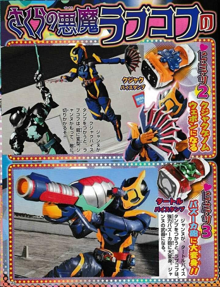 So Evil is coming back, good, I prefer this suit to Live. Also a Peacock Vistamp, looking at the eyes on it, I believe this may be based on Super 1. Also how Sakura is using two, like Super 1 having two powered gloves. |
